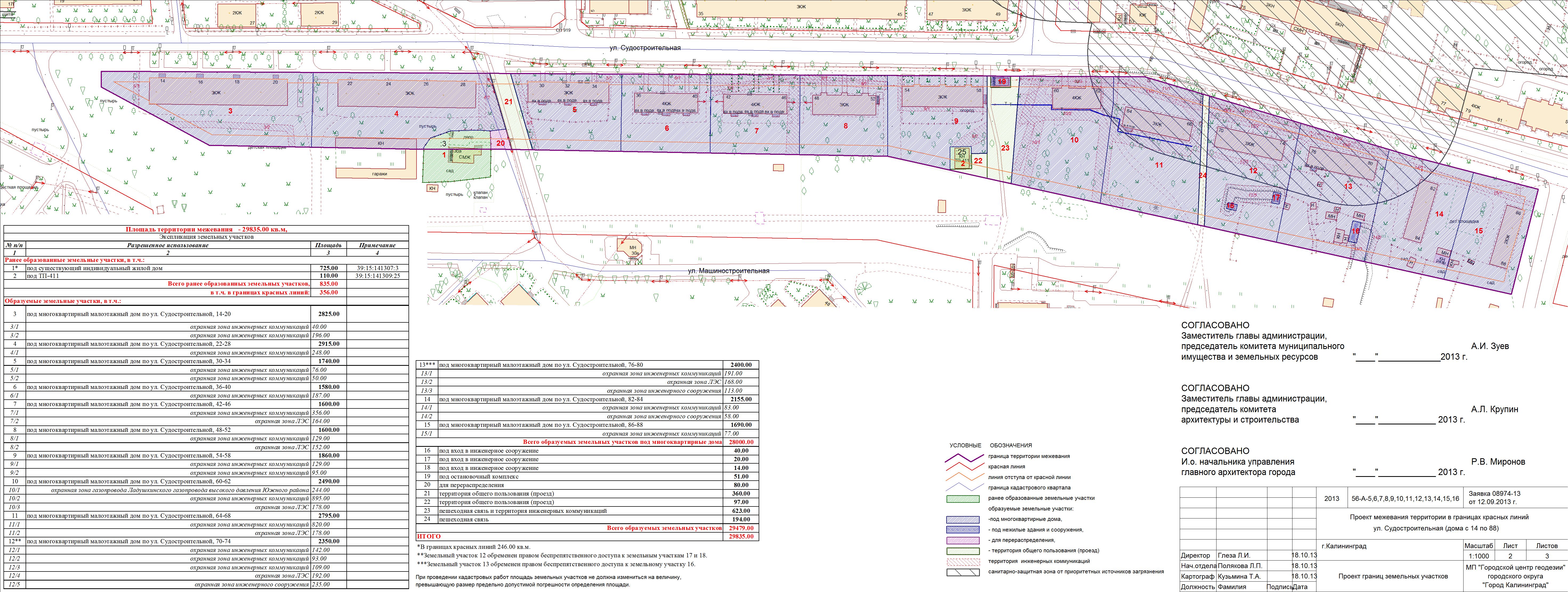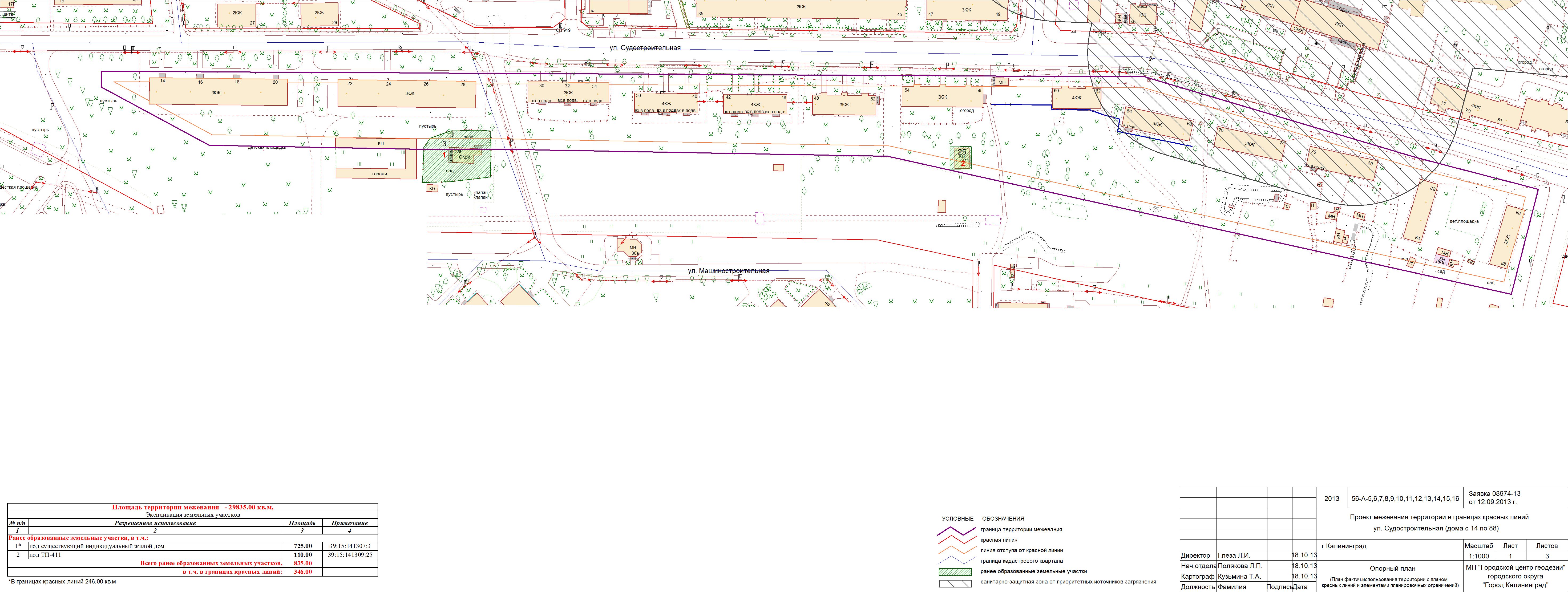 | Материалы проекта: | Постановление № 2019 от 24.12.2013 Данные по нормативным и проектным площадям земельных участков Опорный план План красных линий Проект границ Пояснительная записка |