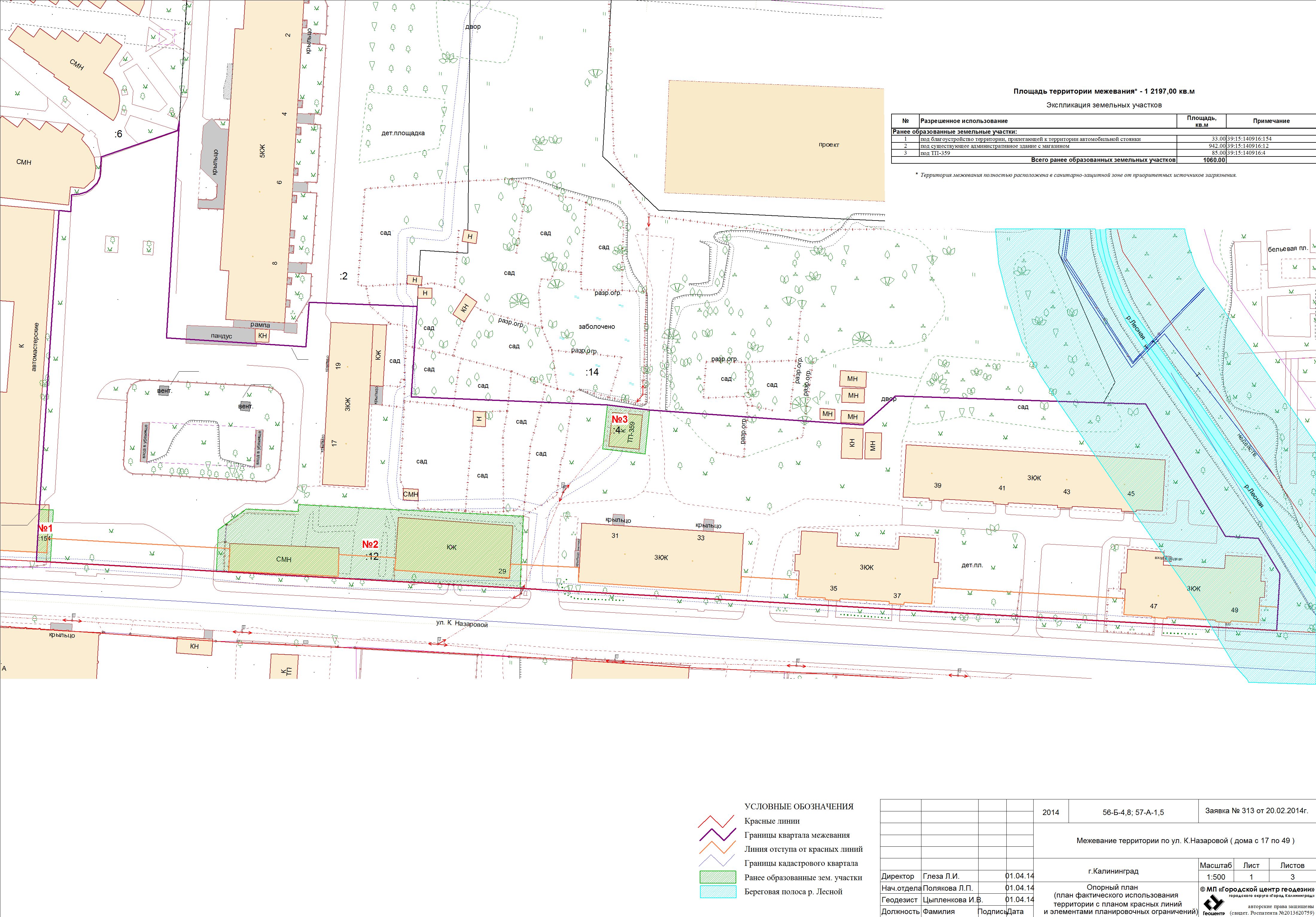 | Материалы проекта: | Постановление № 779 от 21.05.2014 Данные по нормативным и проектным площадям земельных участков Опорный план Разбивочный чертеж красных линий Проект границ земельных участков Пояснительная записка |