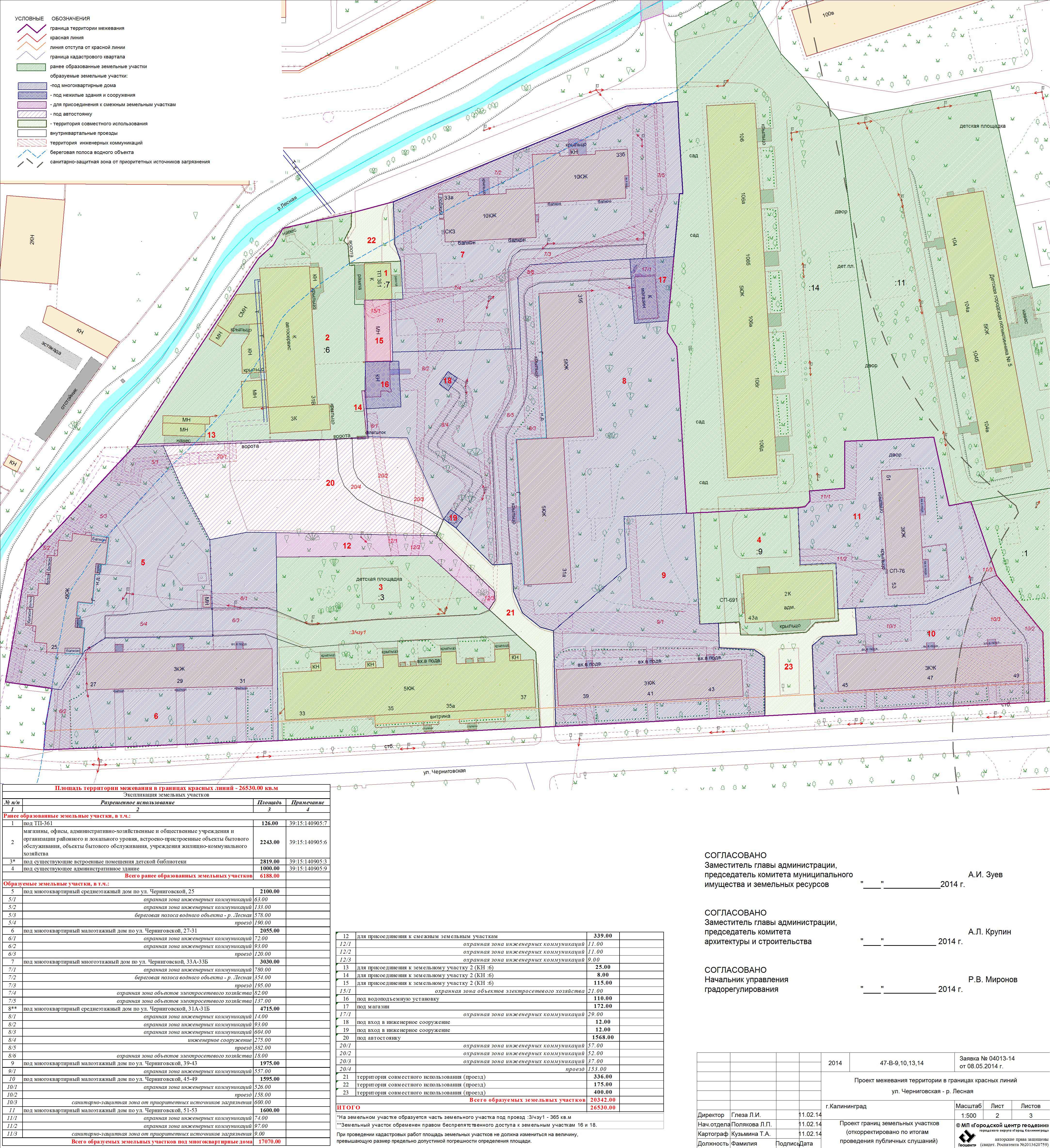 | Материалы проекта: | Постановление № 806 от 03.06.2014 Данные по нормативным и проектным площадям земельных участков Опорный план Разбивочный чертеж красных линий Проект границ земельных участков Пояснительная записка |