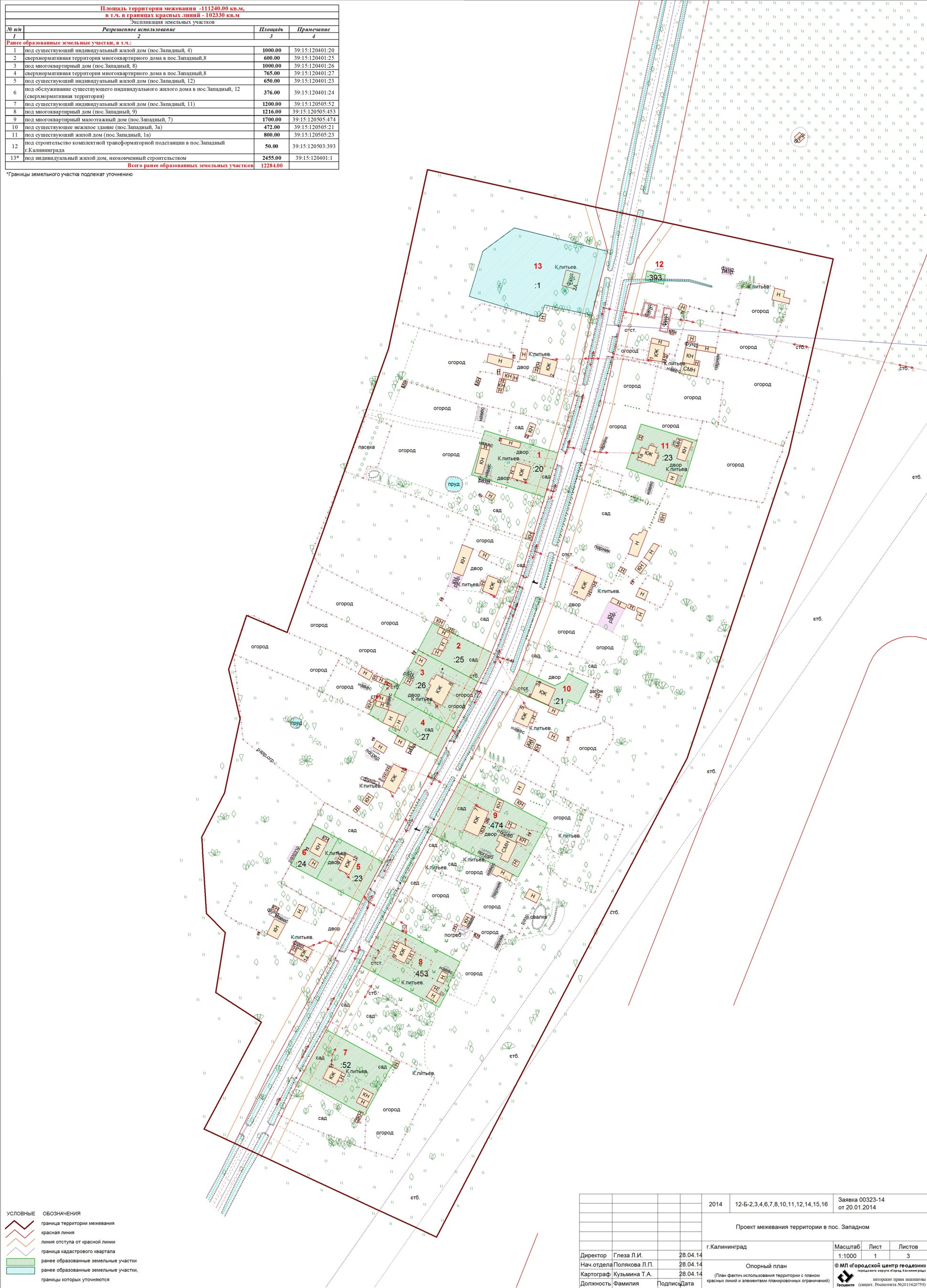 | Материалы проекта: | Постановление № 1058 от 10.07.2014 Данные по нормативным и проектным площадям земельных участков Опорный план Проект границ земельных участков Пояснительная записка |