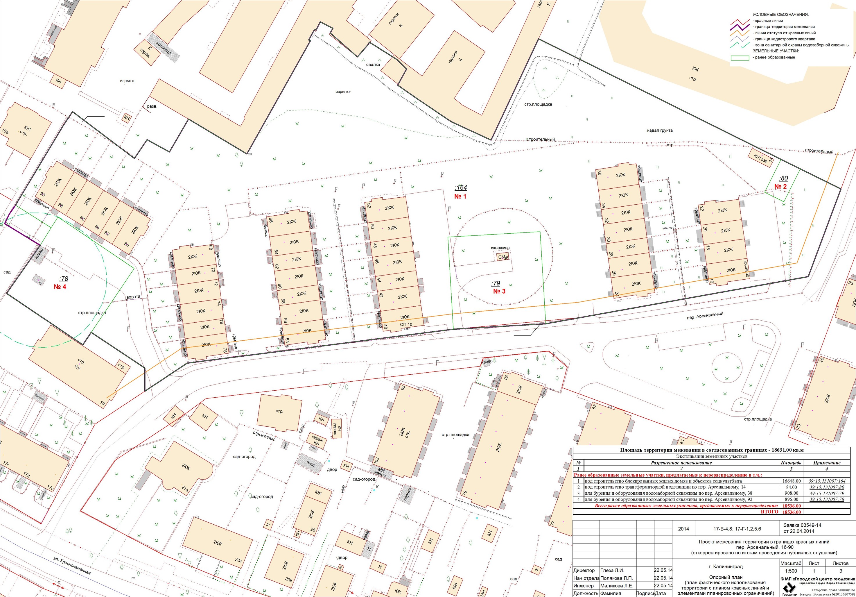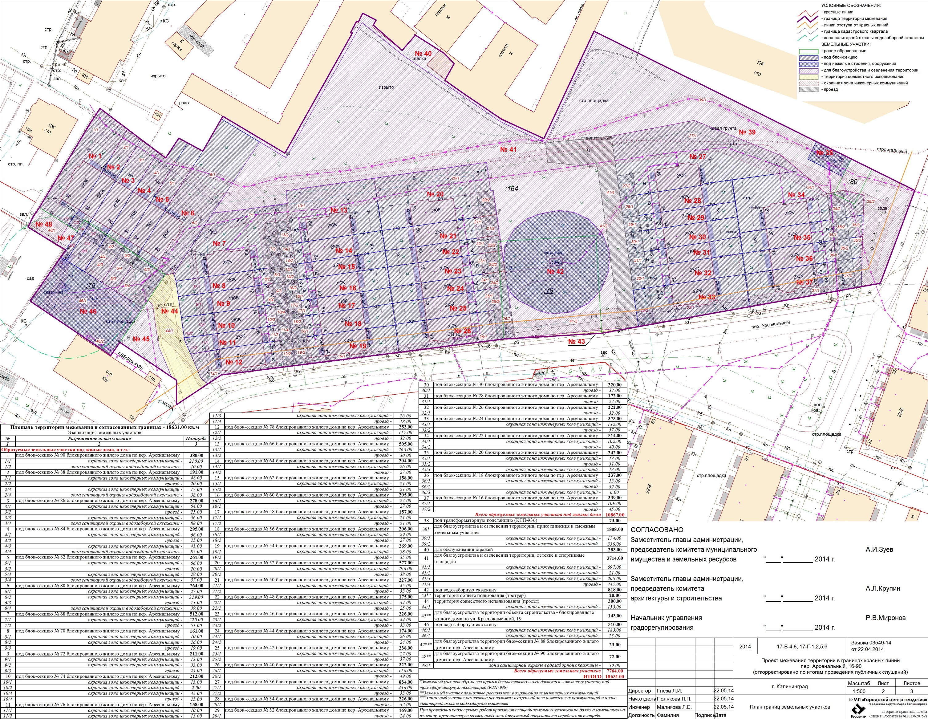 | Материалы проекта: | Постановление № 1251 от 19.08.2014 Проект границ земельных участков Опорный план Разбивочный чертеж красных линий Пояснительная записка Данные по нормативным и проектным площадям земельных участков |