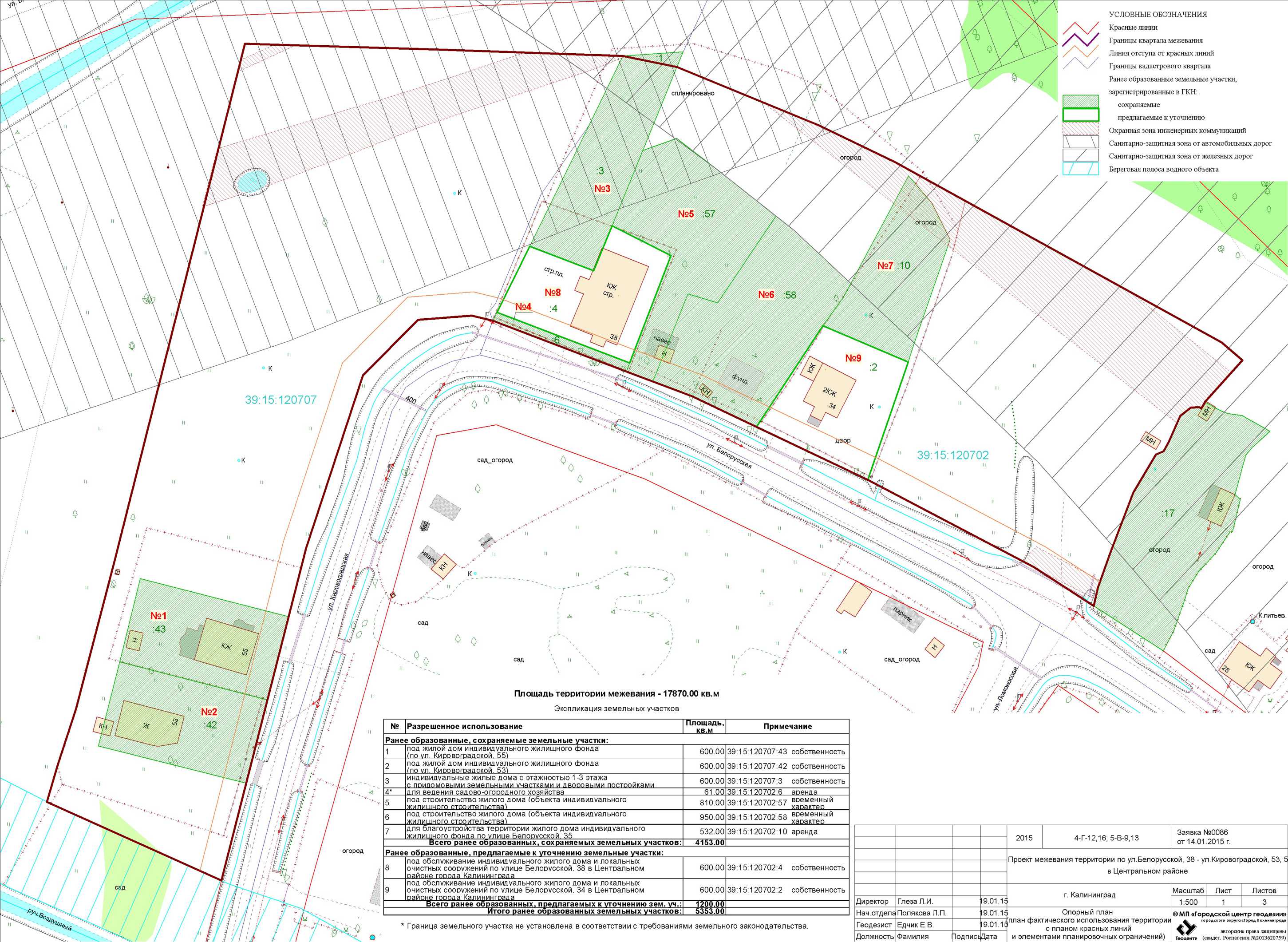 | Материалы проекта: | Постановление № 1258 от 04.08.2015 Опорный план Проект границ земельных участков Разбивочный чертеж красных линий Пояснительная записка Данные по нормативным и проектным площадям земельных участков |