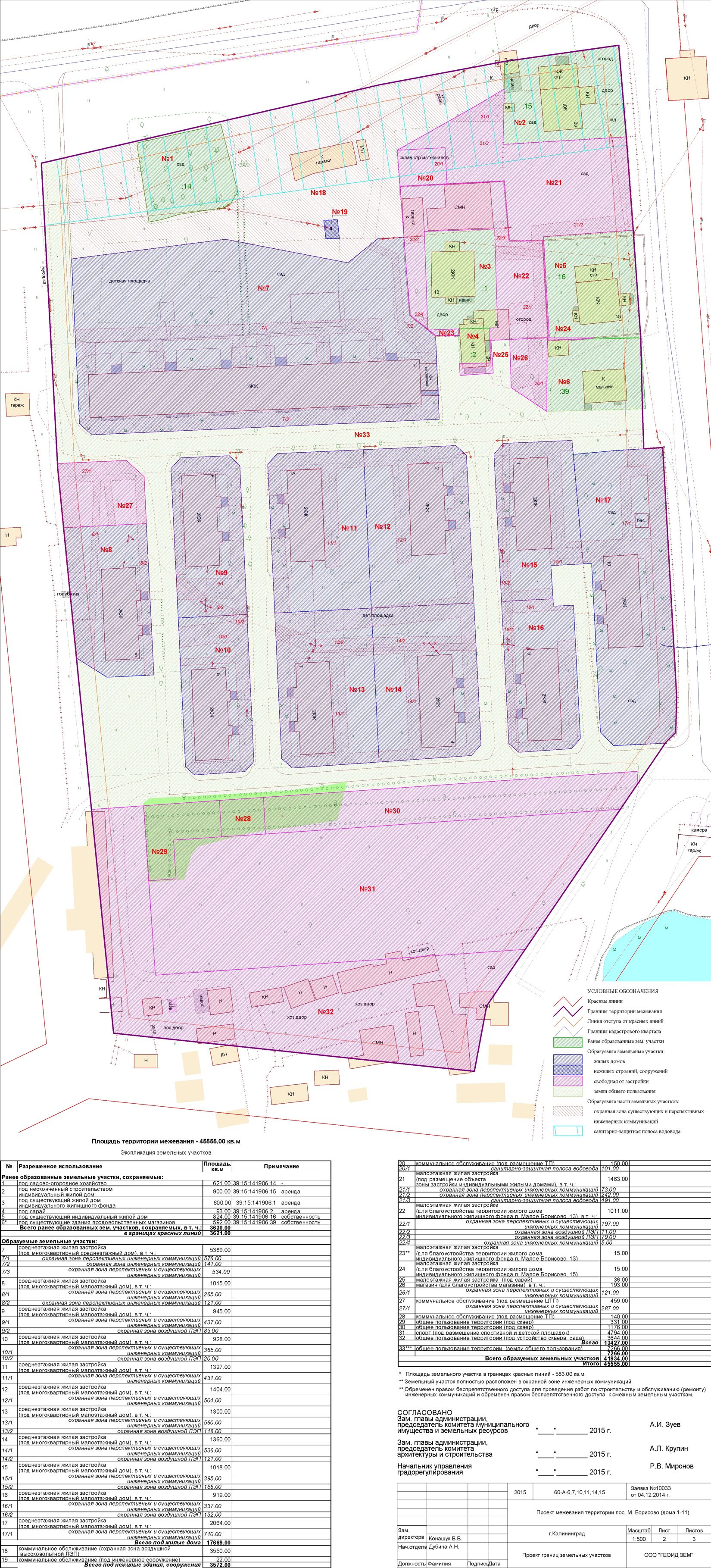 | Материалы проекта: | Постановление № 747 от 08.05.2015 Проект границ земельных участков Опорный план Разбивочный чертеж красных линий Данные по нормативным и проектным площадям земельных участков Пояснительная записка |