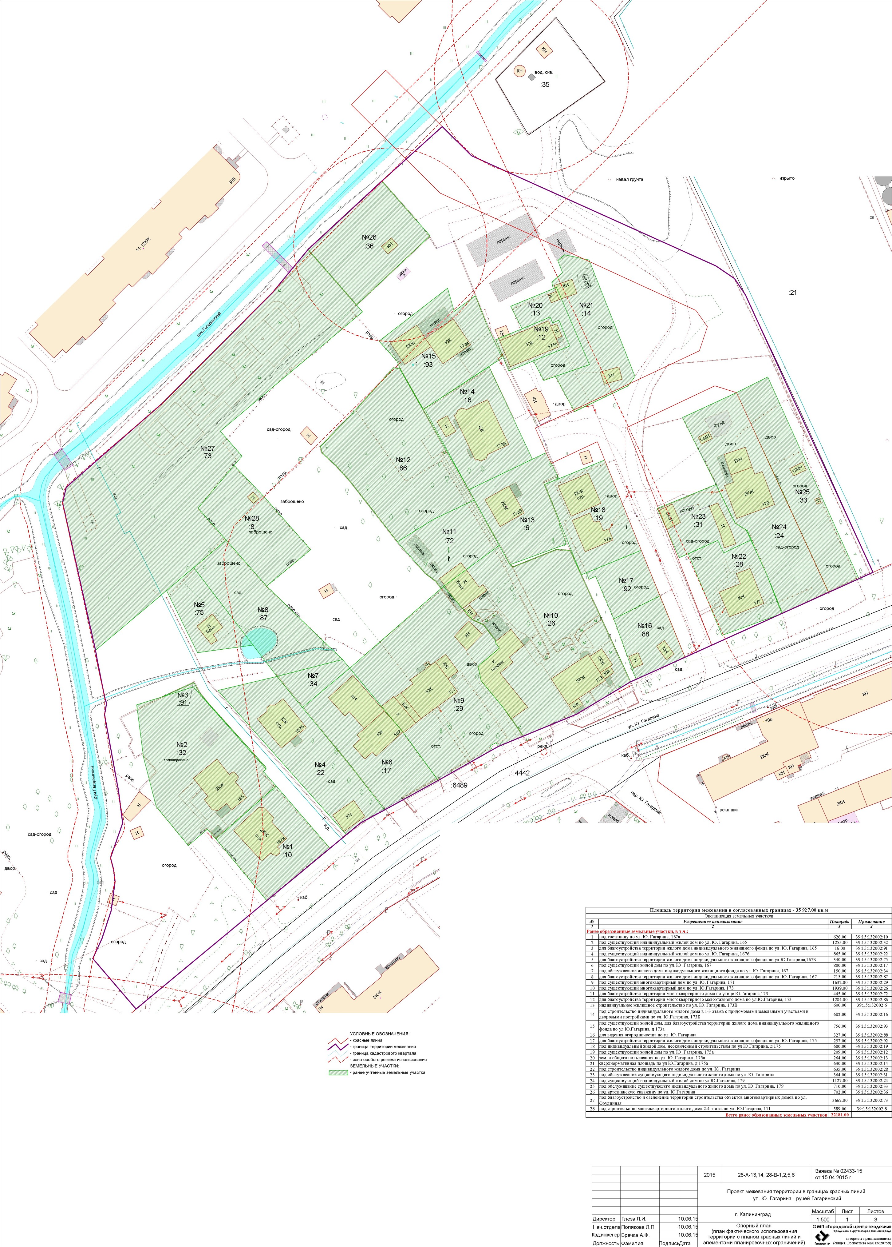 | Материалы проекта: | Постановление № 1906 от 18.11.2015 Опорный план Проект границ земельных участков Разбивочный чертеж красных линий Пояснительная записка Данные по нормативным и проектным площадям земельных участков |