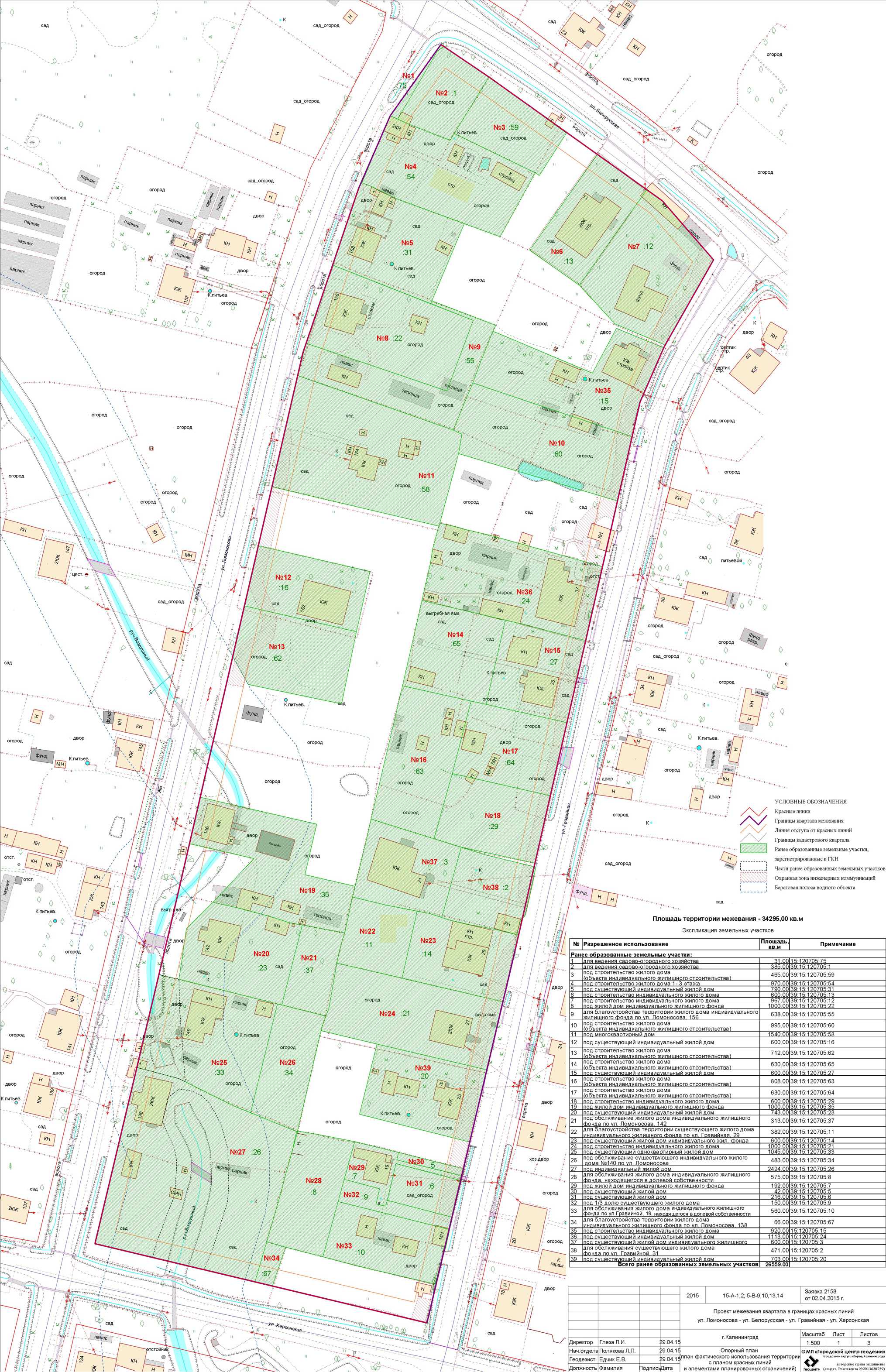 | Материалы проекта: | Постановление № 1402 от 19.08.2015 Опорный план Проект границ земельных участков Разбивочный чертеж красных линий Пояснительная записка Данные по нормативным и проектным площадям земельных участков |