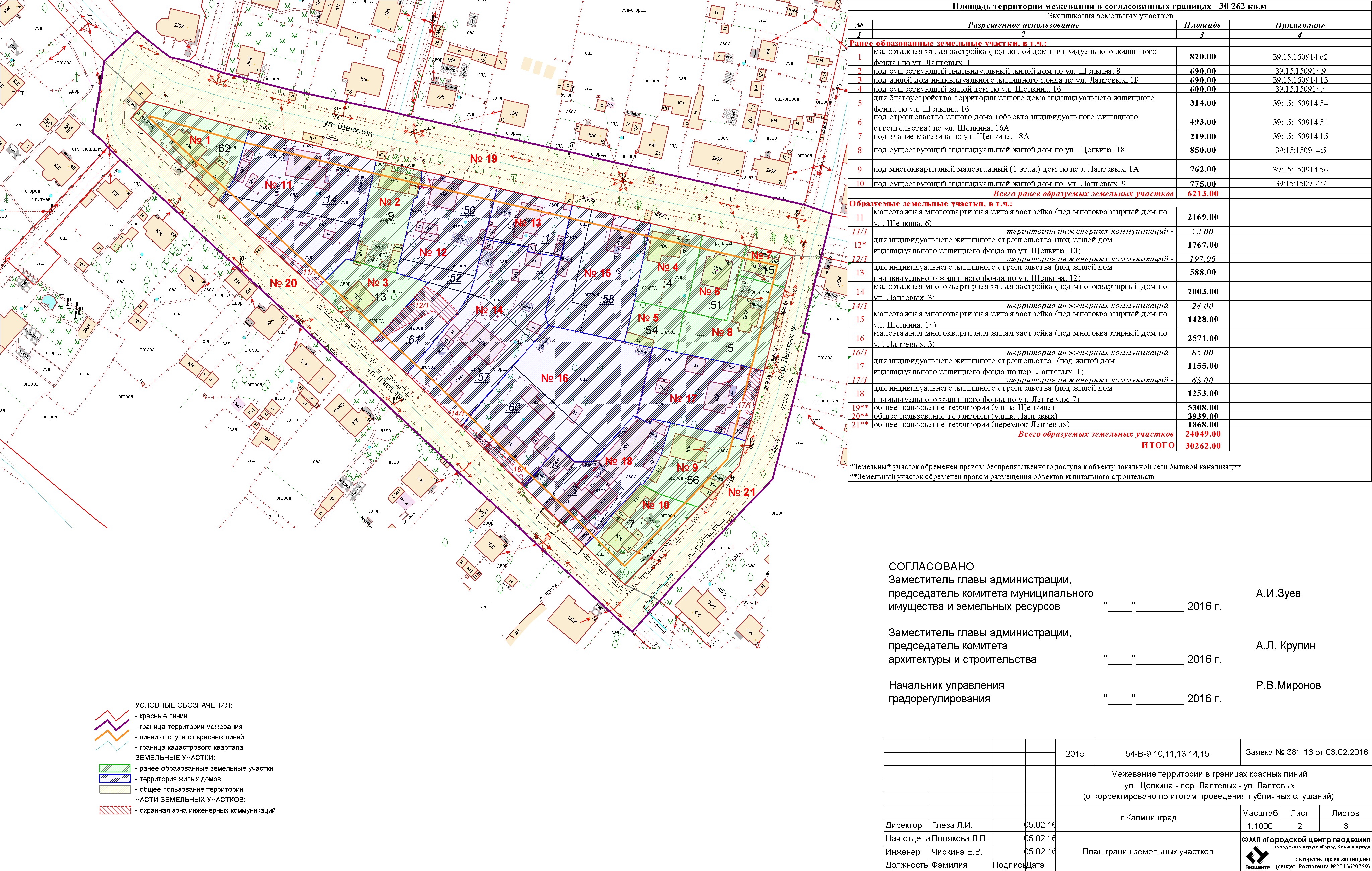 | Материалы проекта: | Постановление № 293 от 11.03.2016 Опорный план План границ земельных участков Разбивочный чертеж красных линий Пояснительная записка Данные по нормативным и проектным площадям земельных участков |