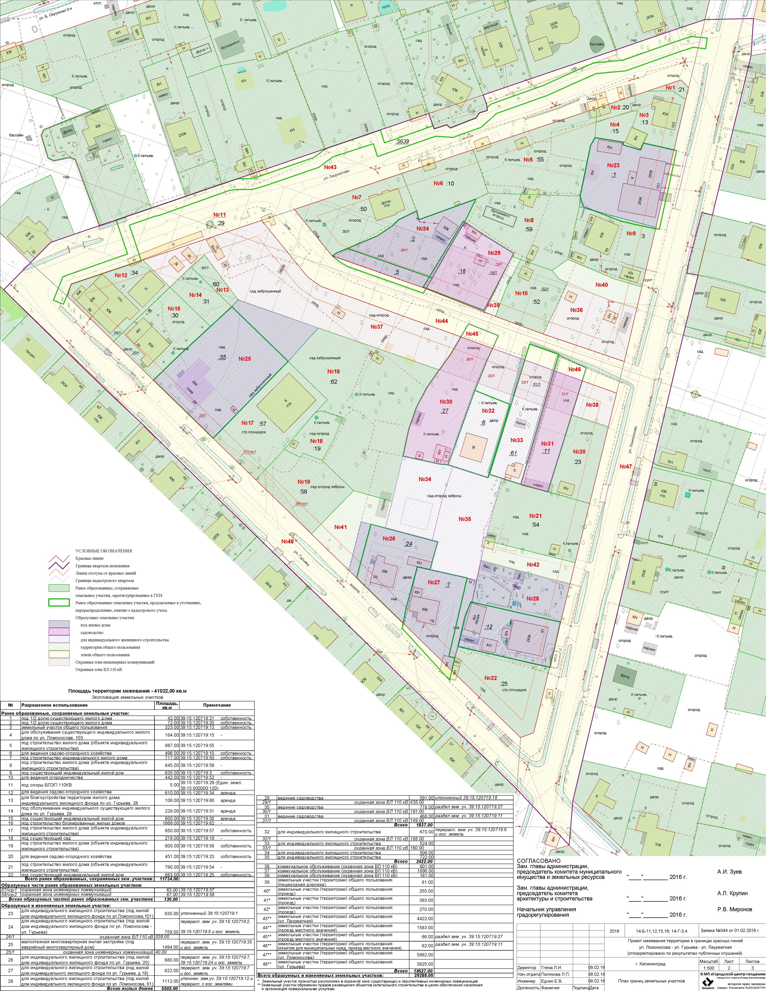 | Материалы проекта: | Постановление № 382 от 31.03.2016 Опорный план План границ земельных участков Разбивочный чертеж красных линий Пояснительная записка |