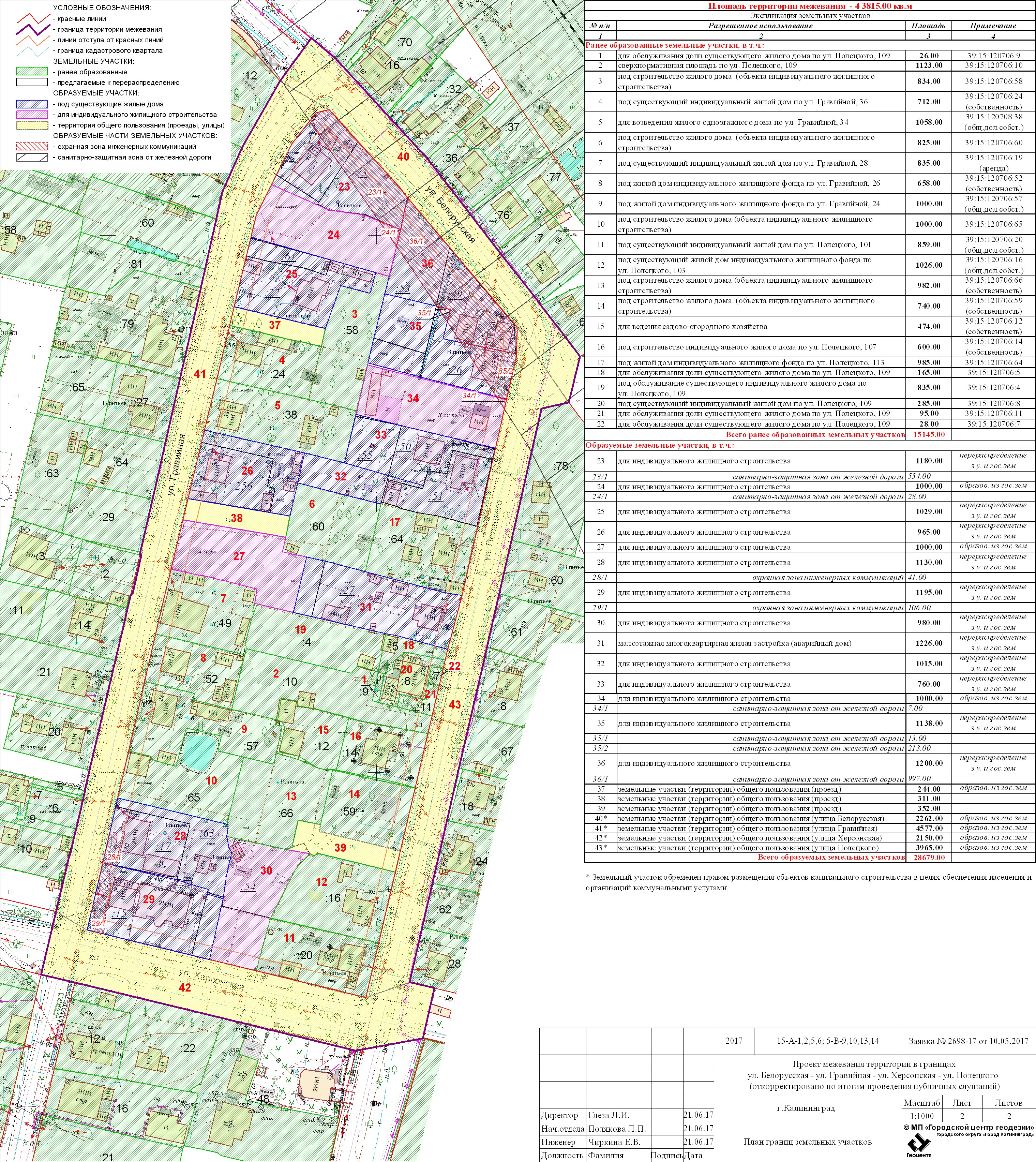 | Материалы проекта: | Постановление № 1088 от 19.07.2017 Опорный план Основной чертеж Пояснительная записка Данные по нормативным и проектным площадям земельных участков |