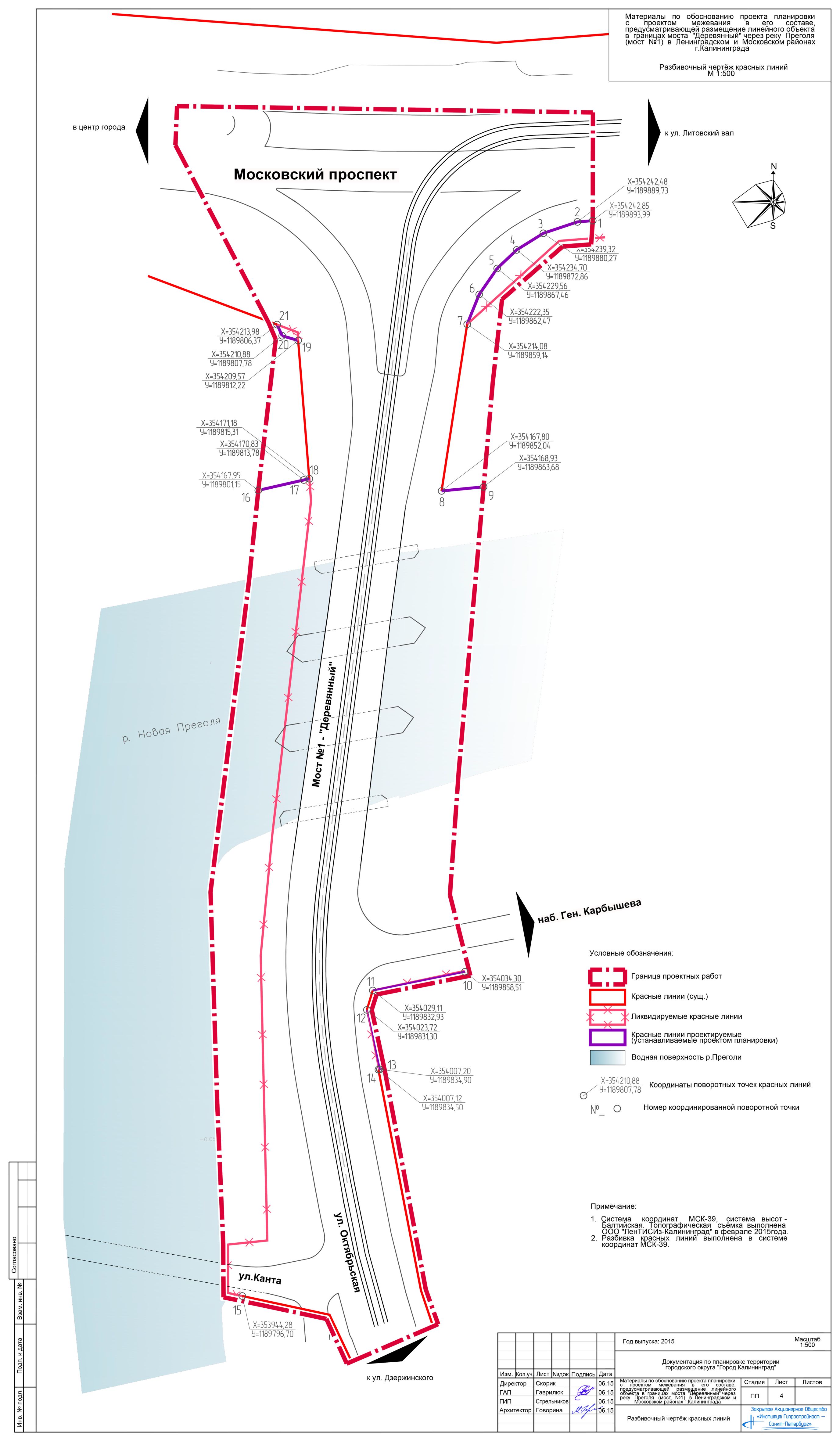 | Материалы проекта: | Постановление № 1655 от 30.09.2015 Основной чертёж Разбивочный чертёж красных линий Пояснительная записка |