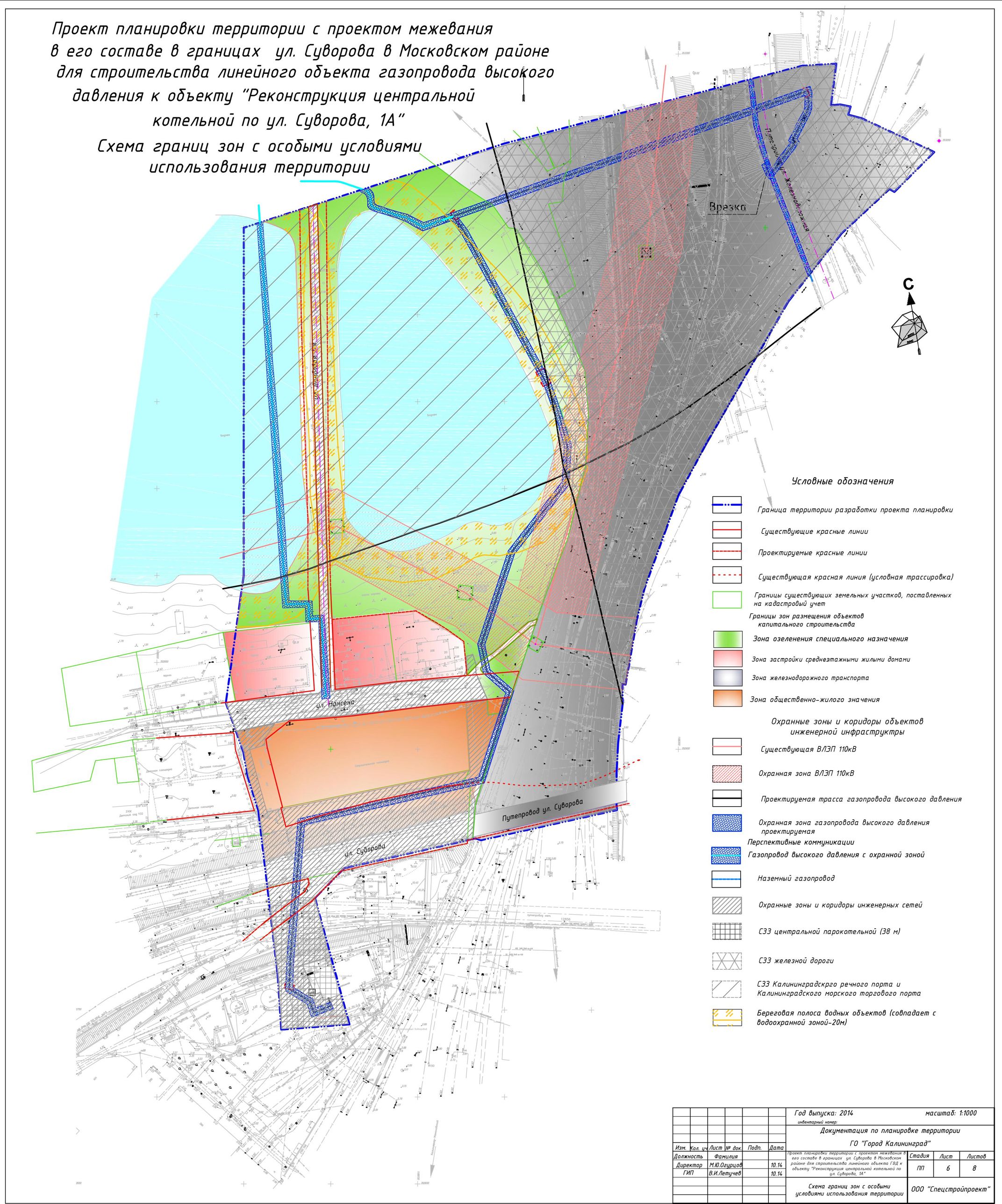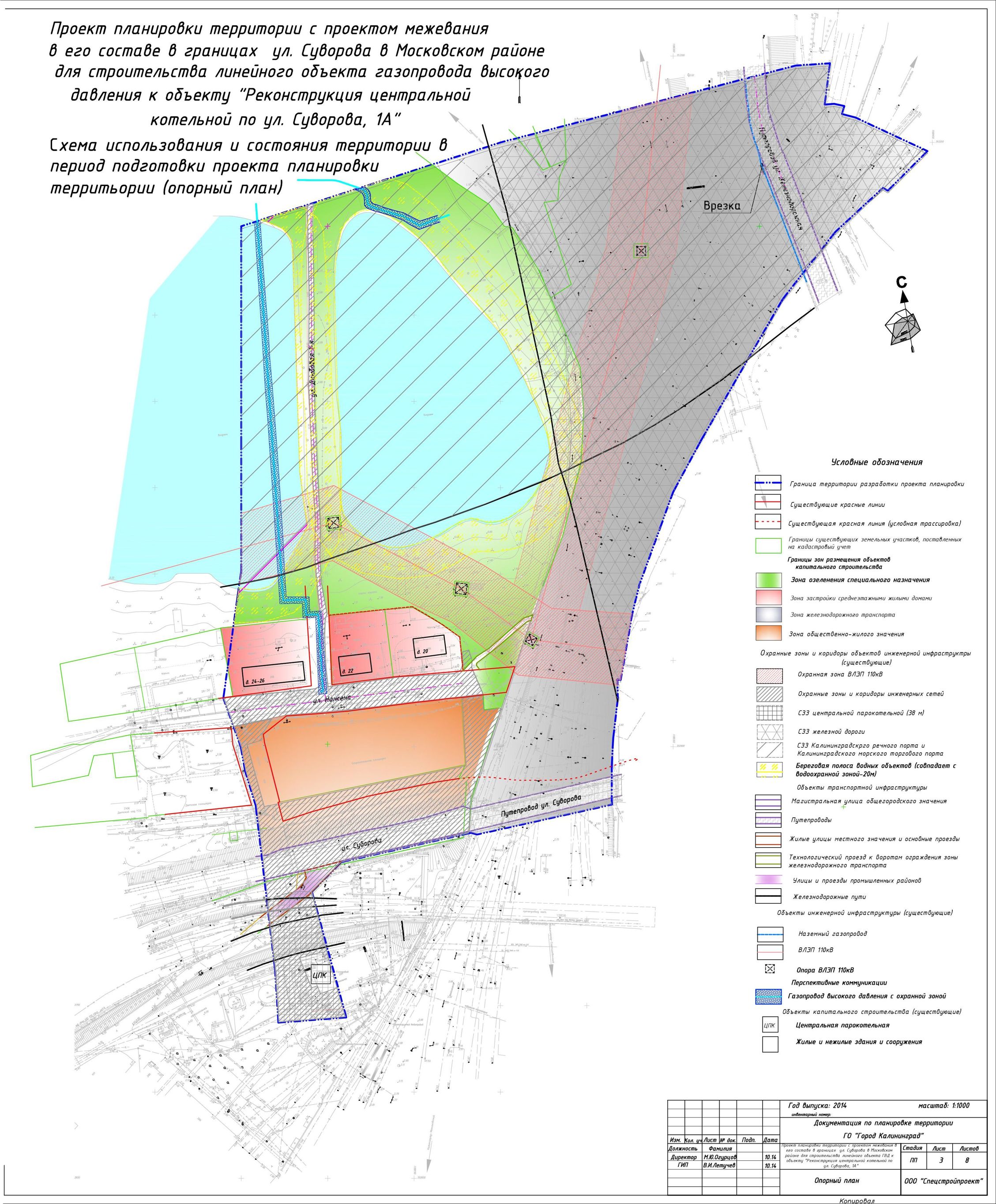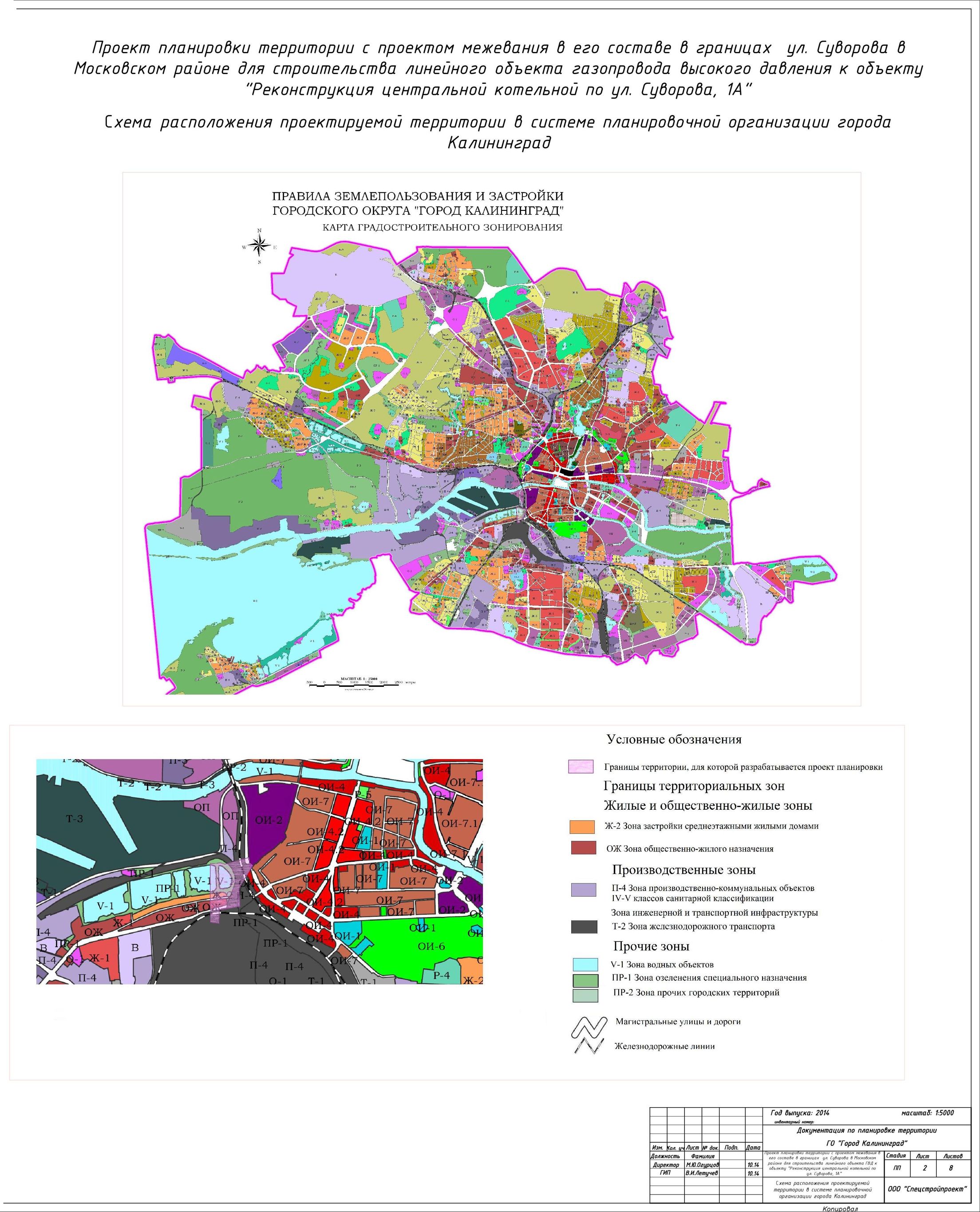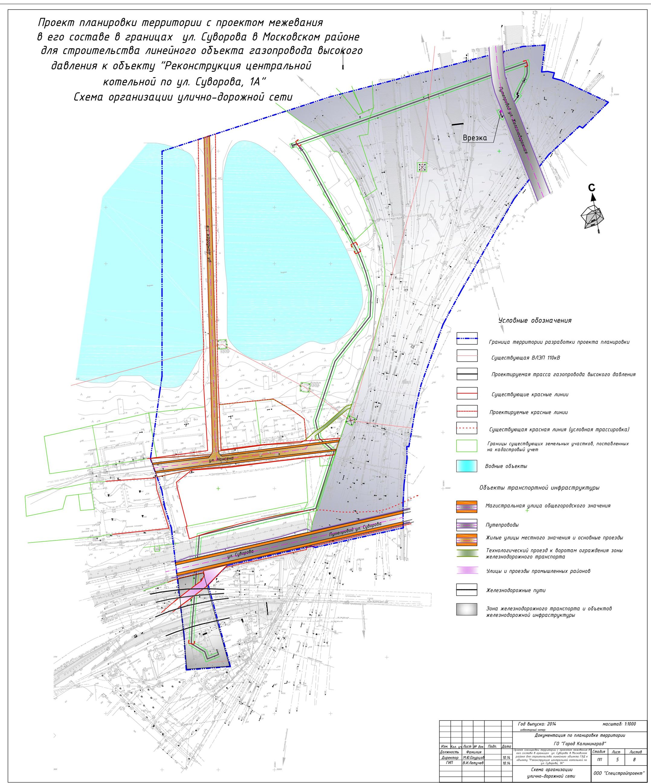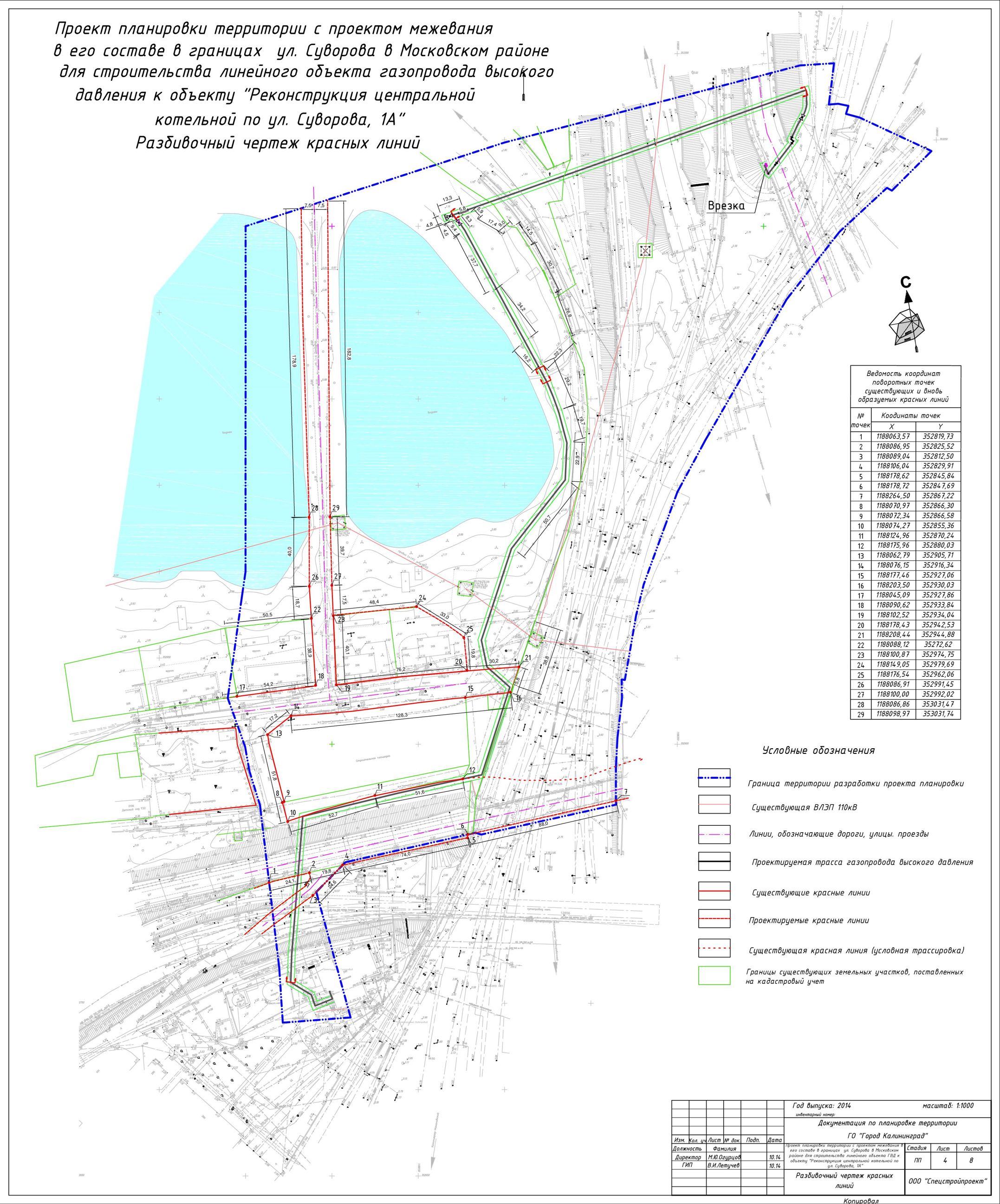Проект планировки территории с проектом межевания в его составе в границах ул. Суворова в Московском районе для строительства ЛО - газопровода высокого давления к объекту "Реконструкция центральной котельной по ул. Суворова, 1А" |