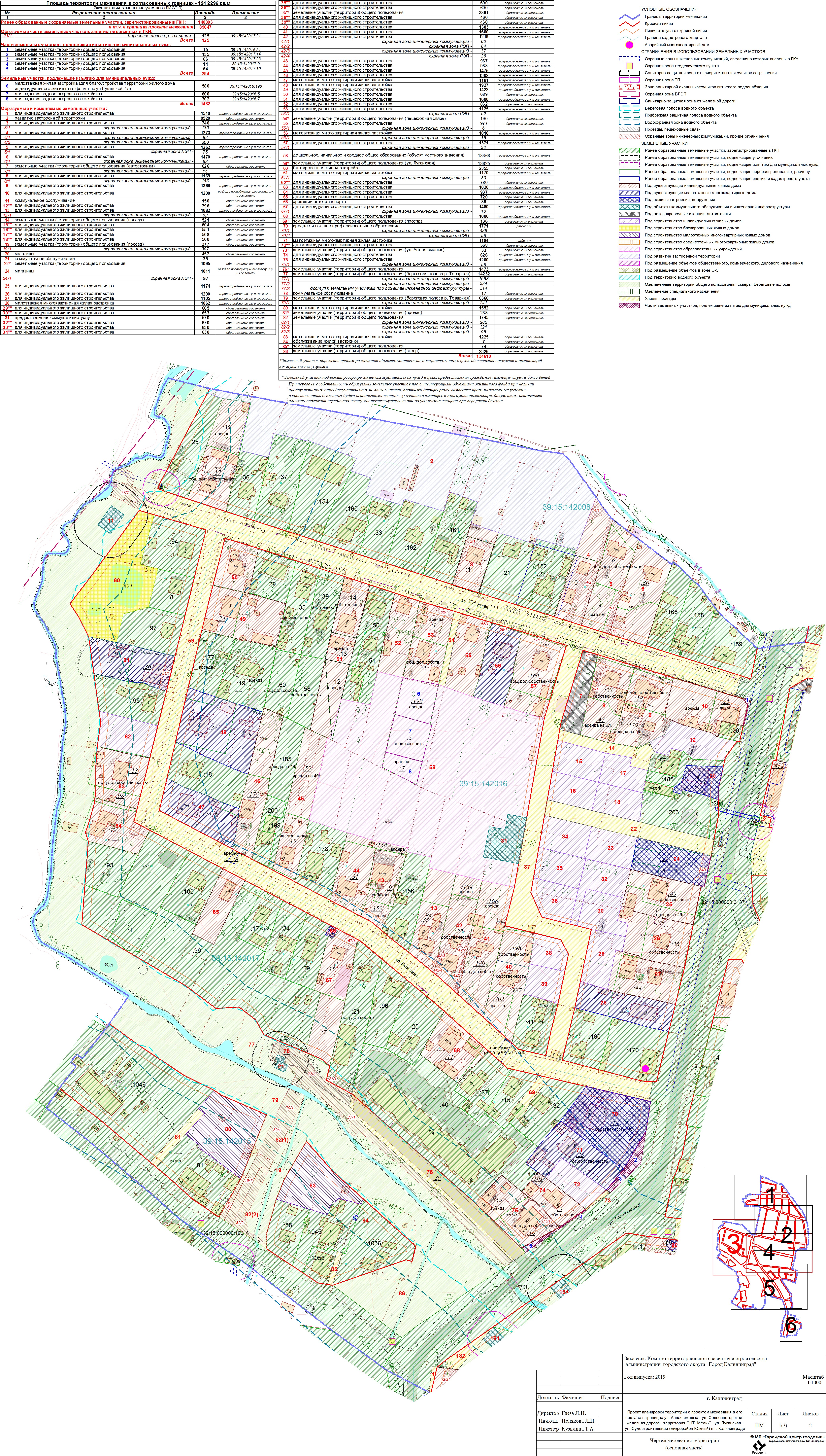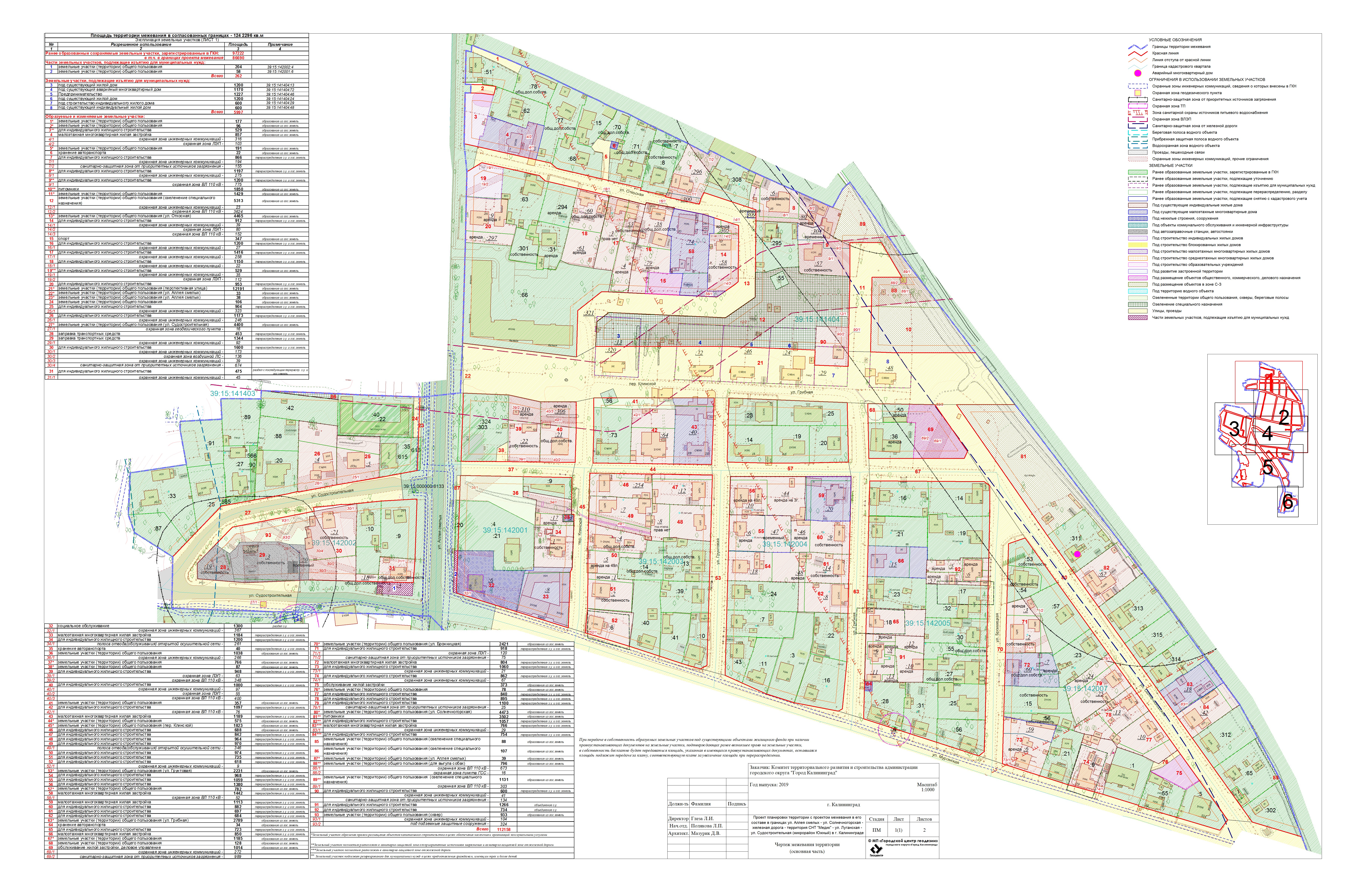 Проект планировки территории с проектом межевания в его составе в границах ул. Аллея смелых – ул. Солнечногорская – железная дорога – территория СНТ «Медик» – ул. Луганская – ул. Судостроительная (микрорайон Южный) в г. Калининграде |