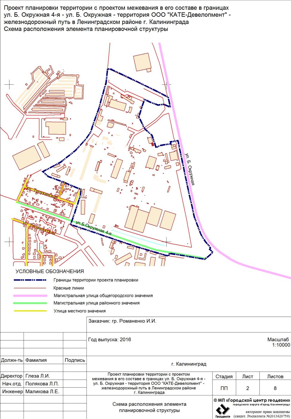 Проект планировки территории с проектом межевания в его составе в границах ул. Б. Окружная 4-я - ул. Б. Окружная - территория ООО "КАТЕ-Девелопмент" - железнодорожный путь в Ленинградском районе г. Калининграда |
