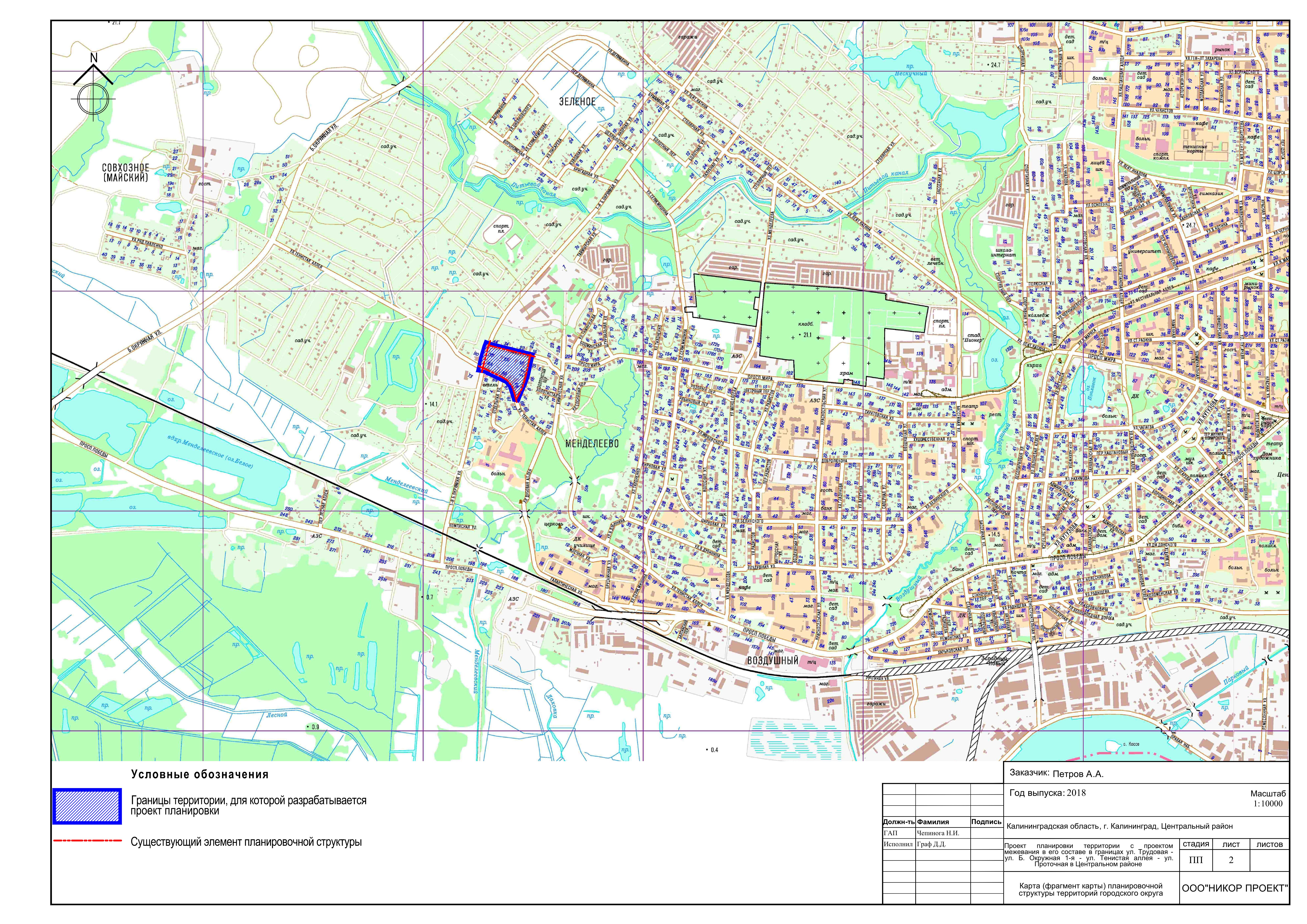 165 Проект планировки территории с проектом межевания в его составе в границах ул. Каштановая аллея – ручей Воздушный – пруд Нескучный – ул. Спортивная – ул. Олимпийская – ул. Марш. Борзова в Центральном районе 27 июля 2018 г. в 17-00 часов по адресу: г. Калининград, ул. Чайковского, 50-52, каб. 206