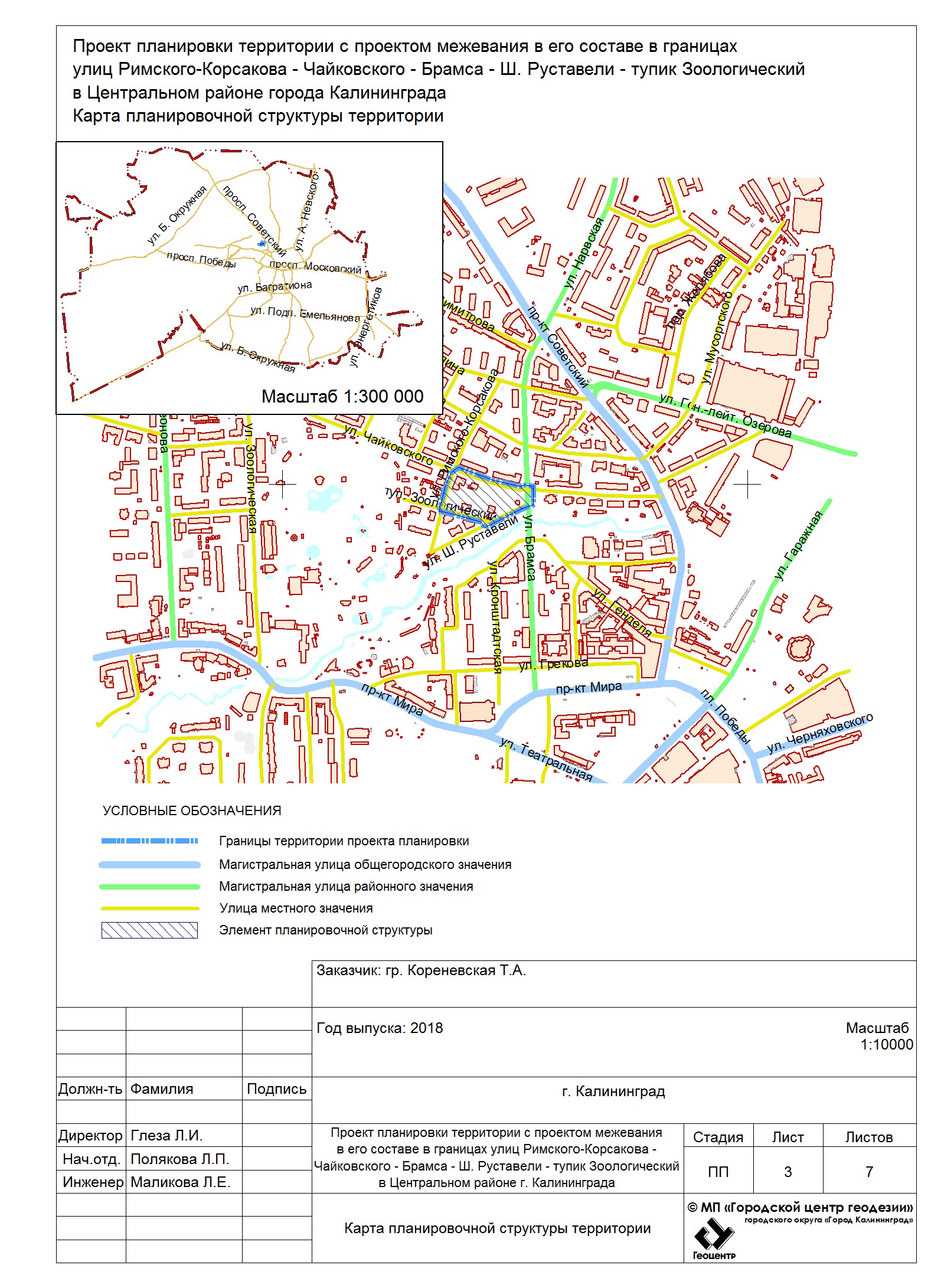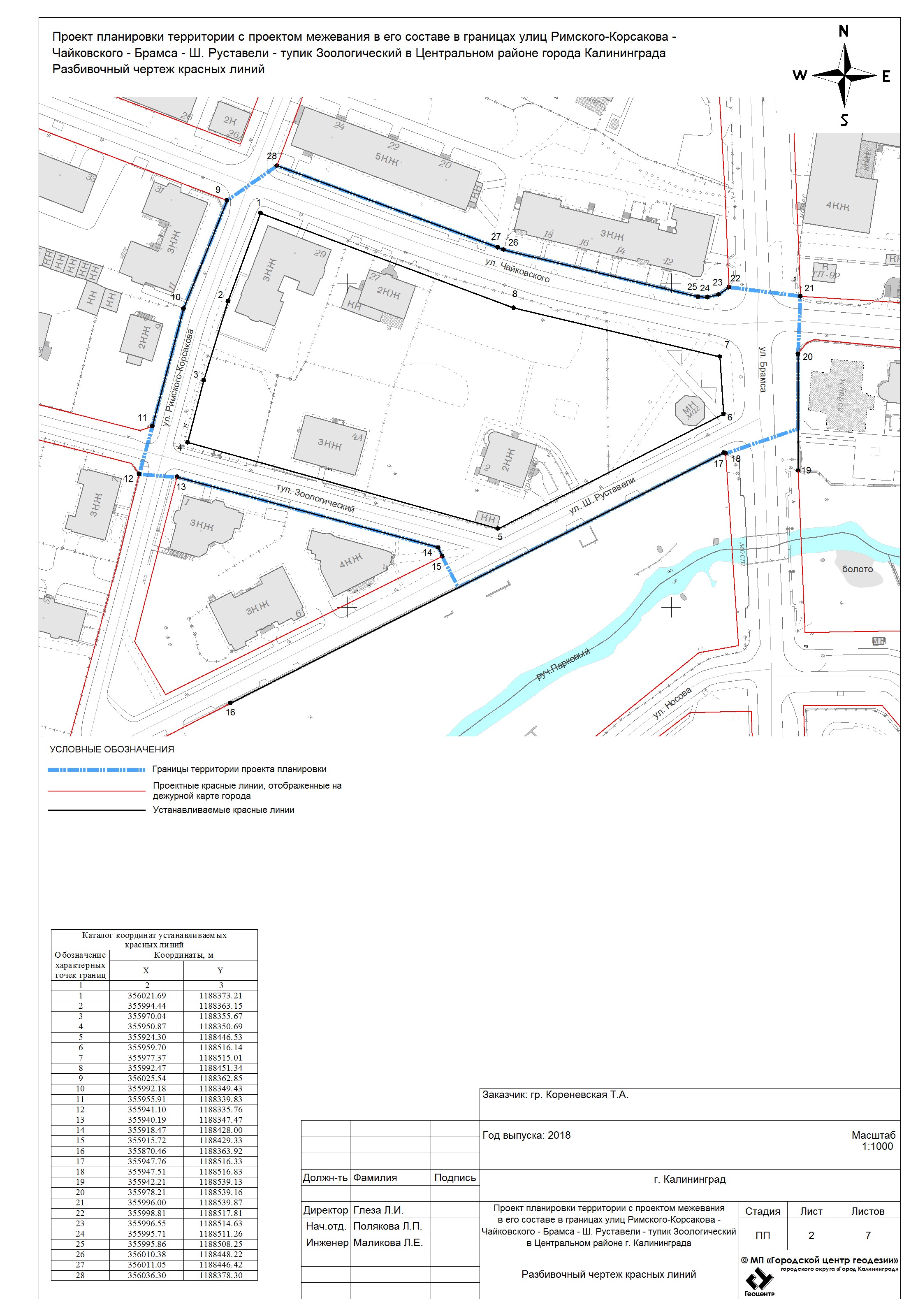 177пр Проект планировки территории с проектом межевания в его составе в границах улиц Римского-Корсакова – Чайковского – Брамса – Ш. Руставели – тупика Зоологического в Центральном районе города Калининграда 03 августа 2018 г. в 17-00 часов по адресу: г. Калининград, ул. Чайковского, 50-52, каб. 206