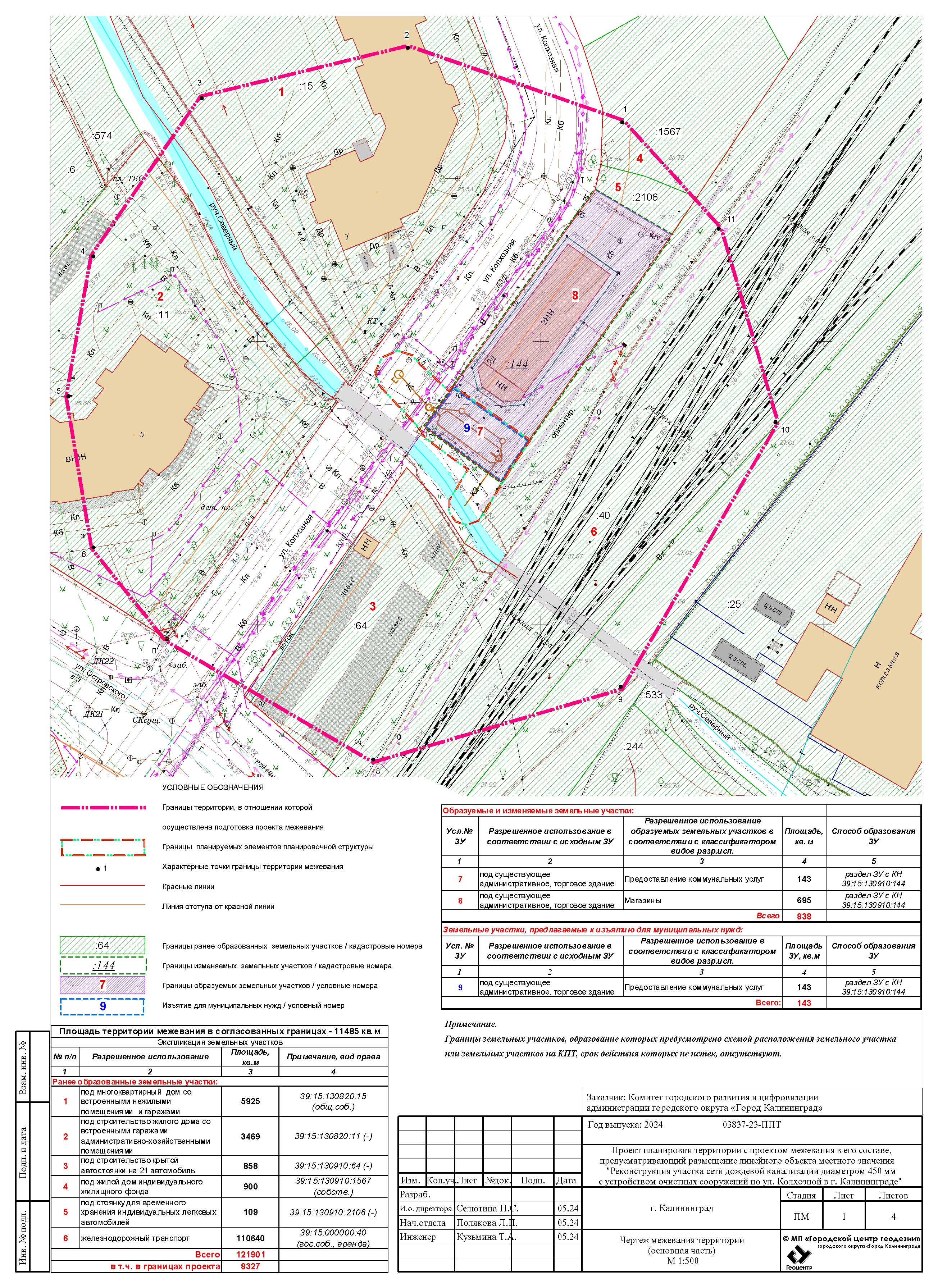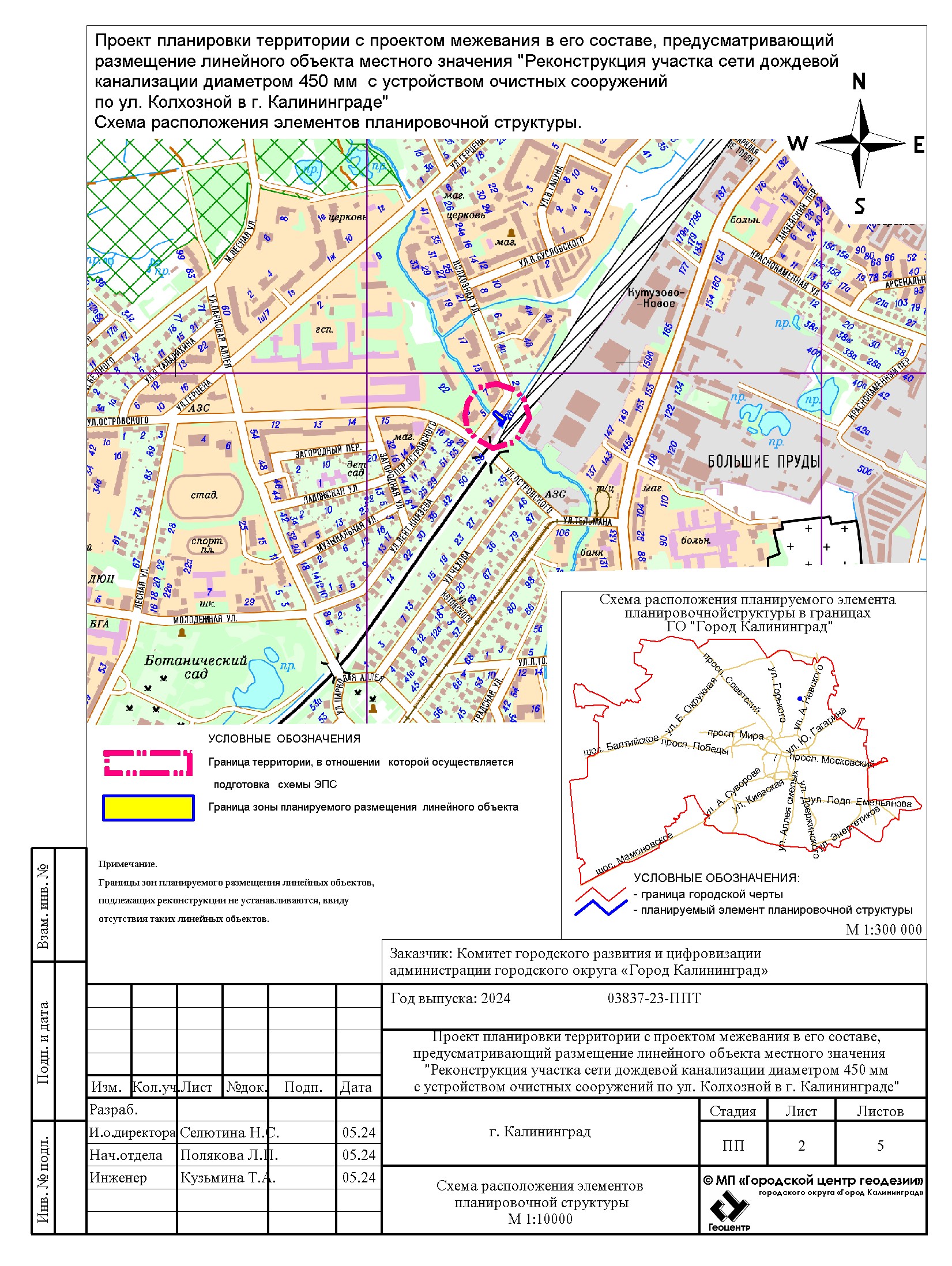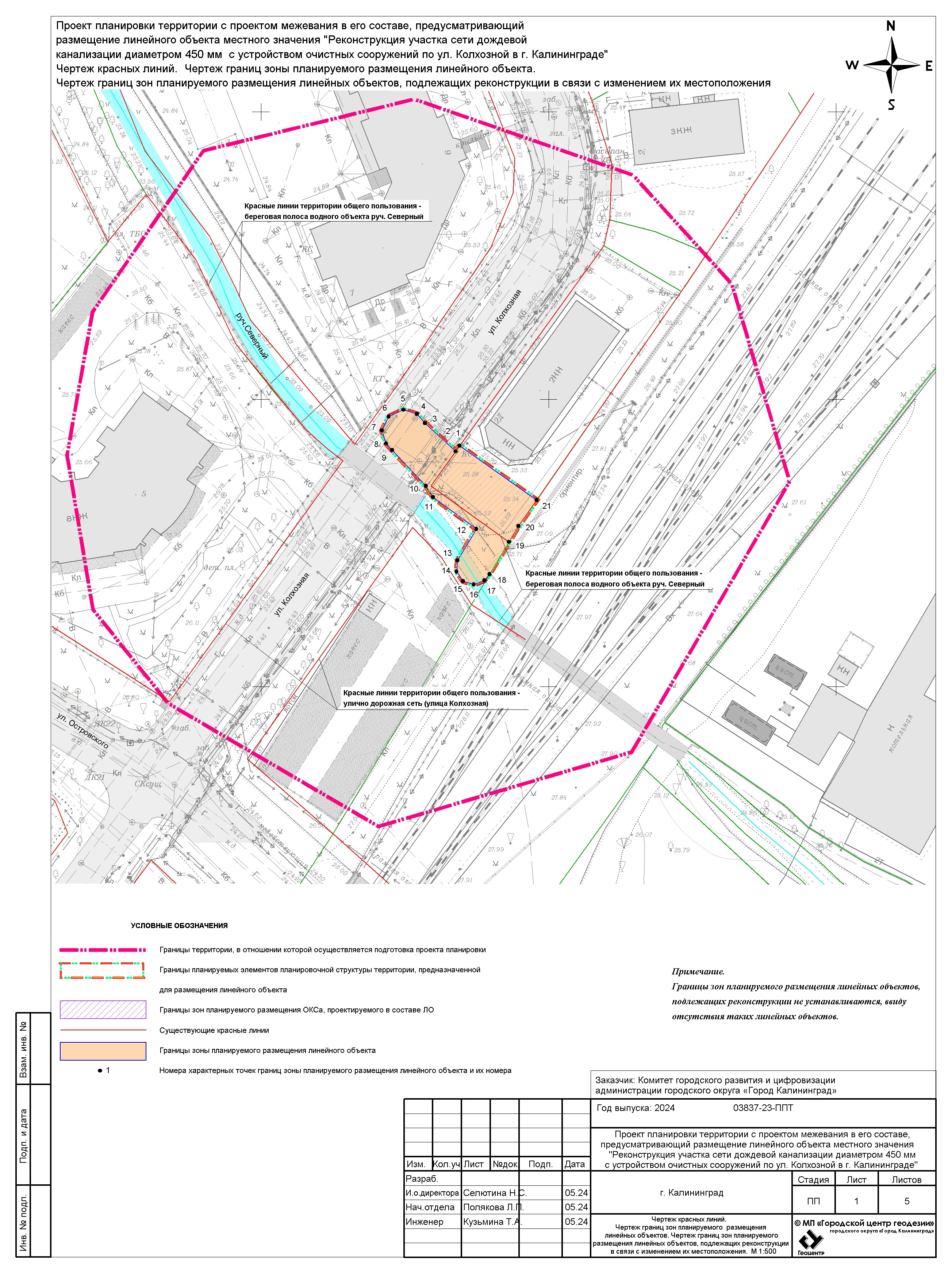 б/н. Проект планировки территории с проектом межевания в его составе, предусматривающий размещение линейного объекта местного значения «Реконструкция участка сети дождевой канализации диаметром 450 мм с устройством очистных сооружений по ул. Колхозной в г. Калининграде» Центральная городская библиотека им. А.П. Чехова (г.Калининград, пр-кт Московский, 39),