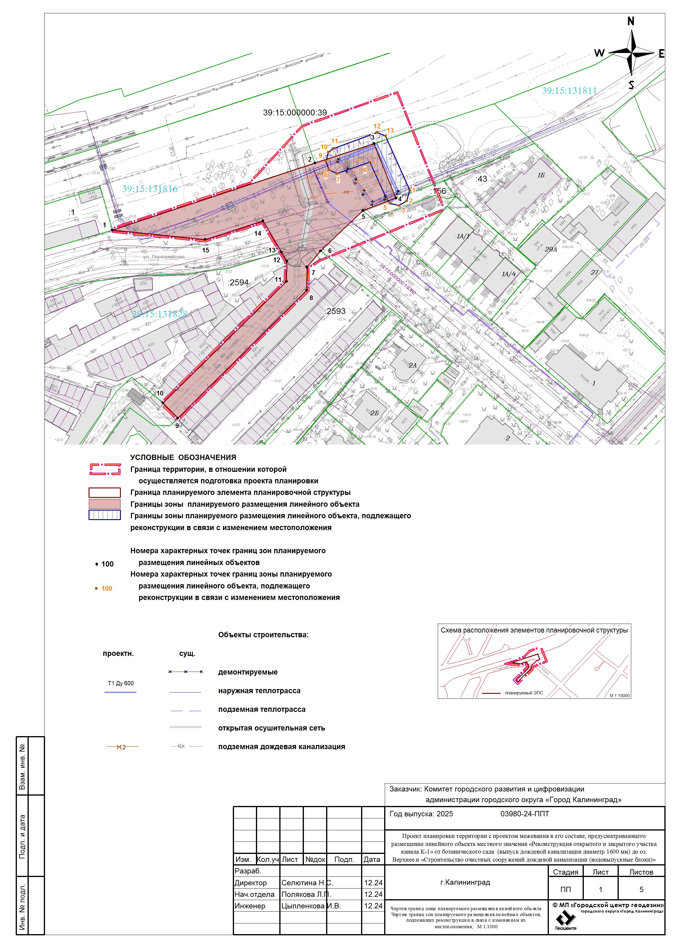 планировки территории с проектом межевания в его составе, предусматривающий размещение линейного объекта местного значения «Строительство проезда от пр-кта Ленинского в районе домов №№ 9-11» в границах городского округа «Город Калининград»