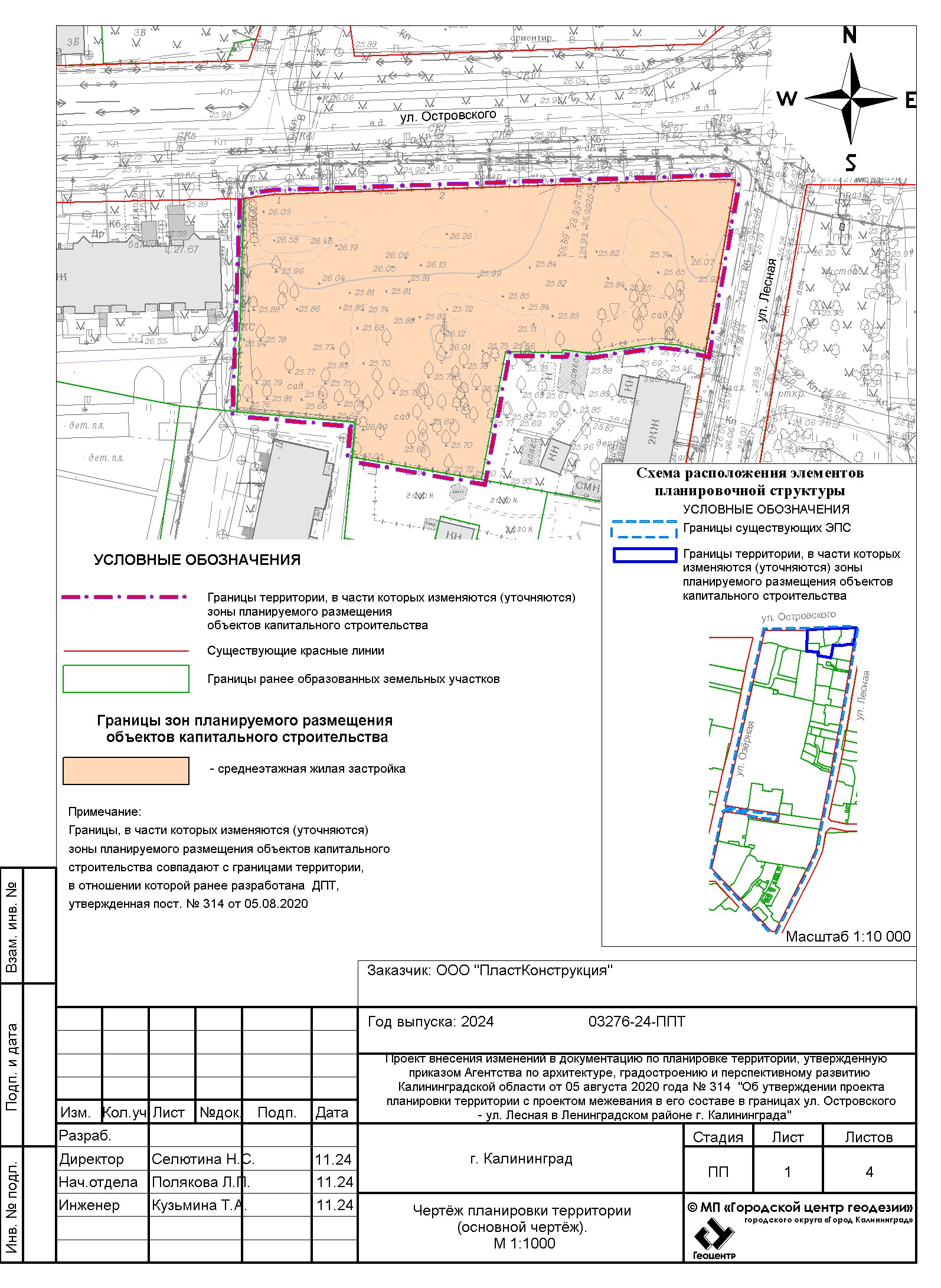 Проект внесения изменений в документацию по планировке территории, утвержденную постановлением администрации городского округа «Город Калининград» от 13.10.2020 № 14 «Об утверждении документации по планировке территории «Проект планировки территории с проектом межевания в его составе в границах ул. Парковая аллея – ул. Онежская – ул. Платова – ул. Малая Лесная – ул. Б. Окружная 3-я – железная дорога – ул. Островского в г. Калининграде»