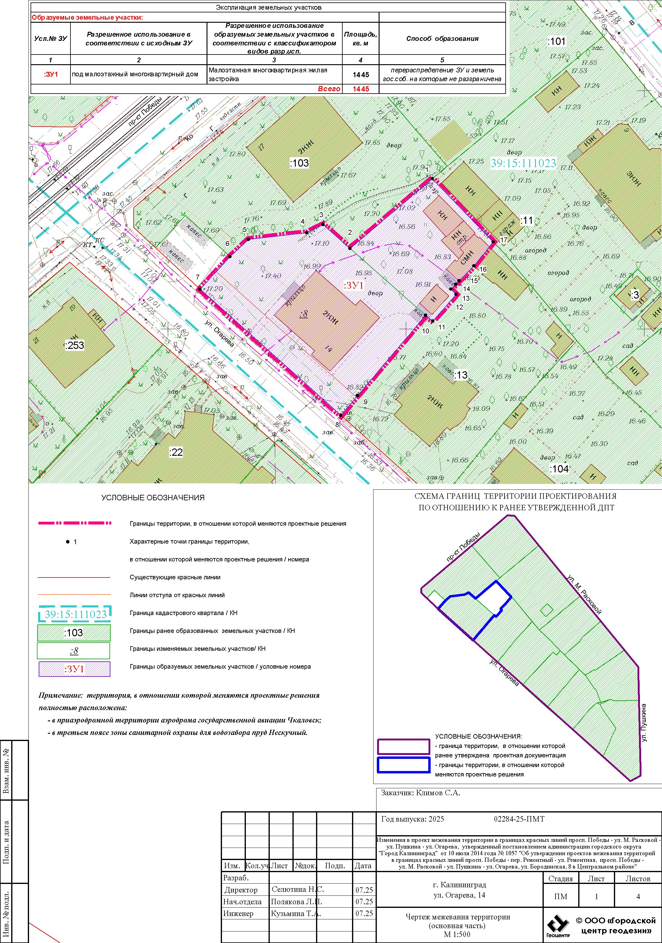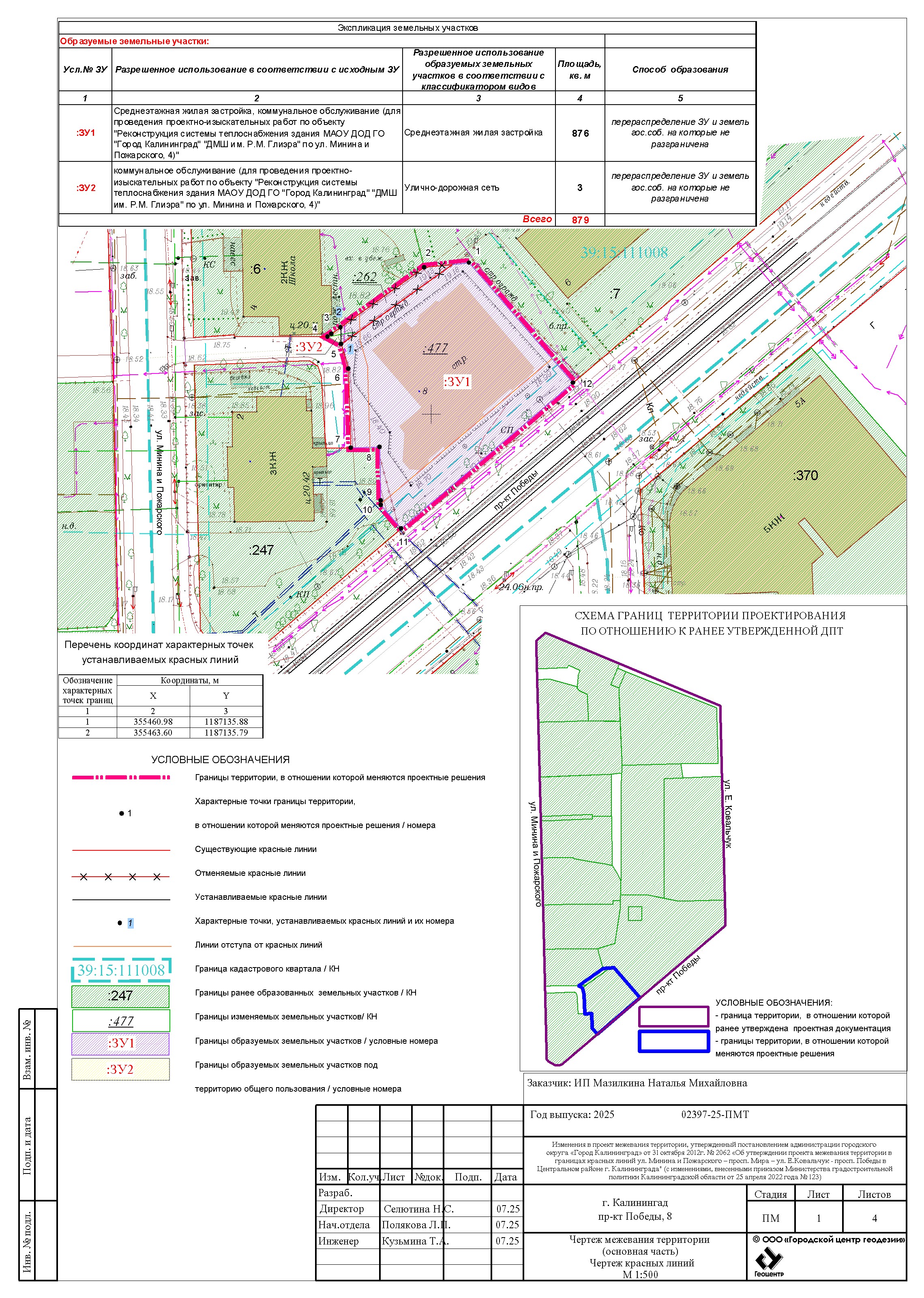 Проект внесения изменений в проект межевания территории, утвержденный постановлением администрации городского округа «Город Калининград» от 10.07.2014 № 1057 «Об утверждении проектов межевания территорий в границах красных линий просп. Победы – пер. Ремонтный – ул. Ремонтная, просп. Победы – ул. М. Расковой – ул. Пушкина – ул. Огарева, ул. Бородинская, 8 в Центральном районе»