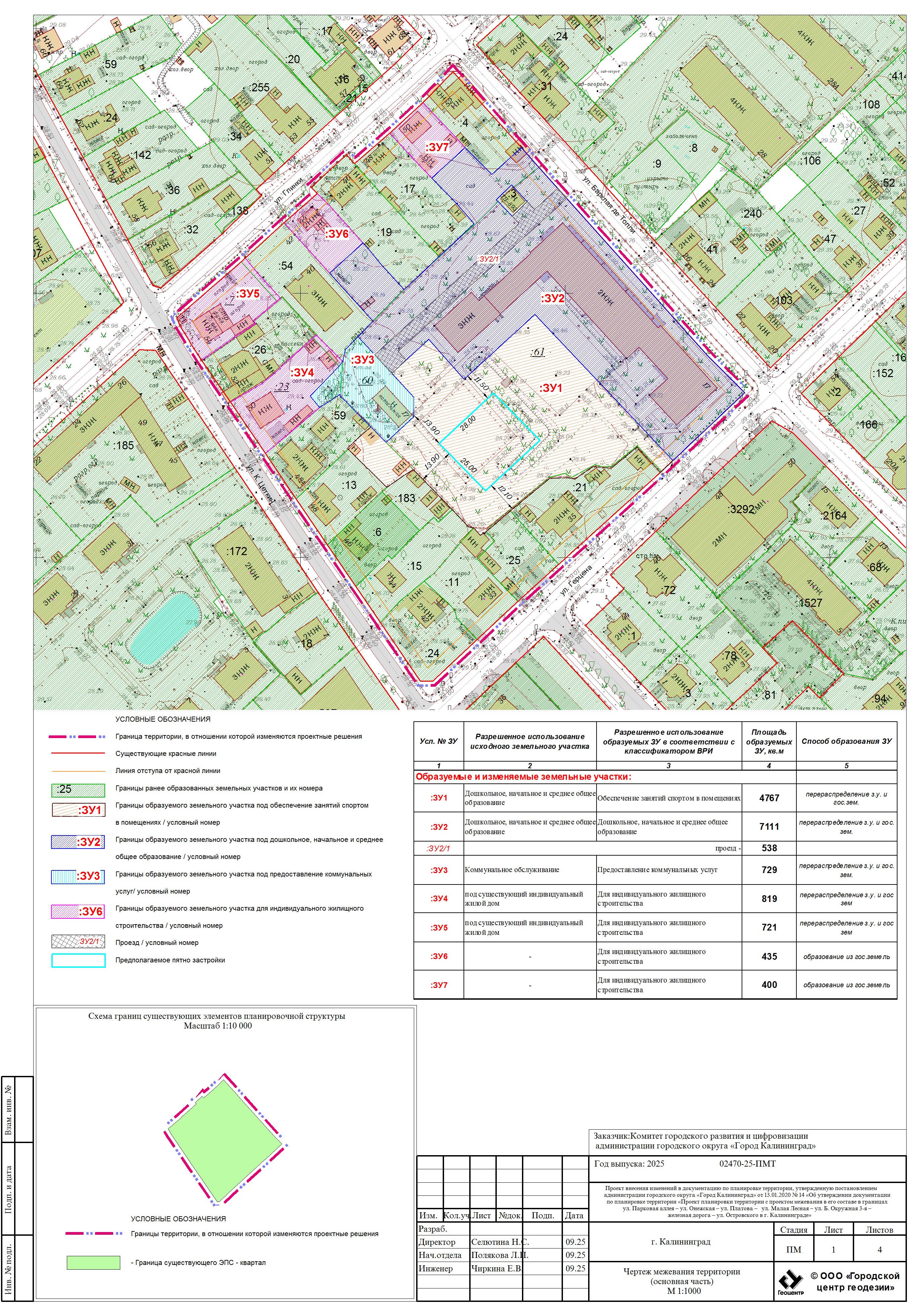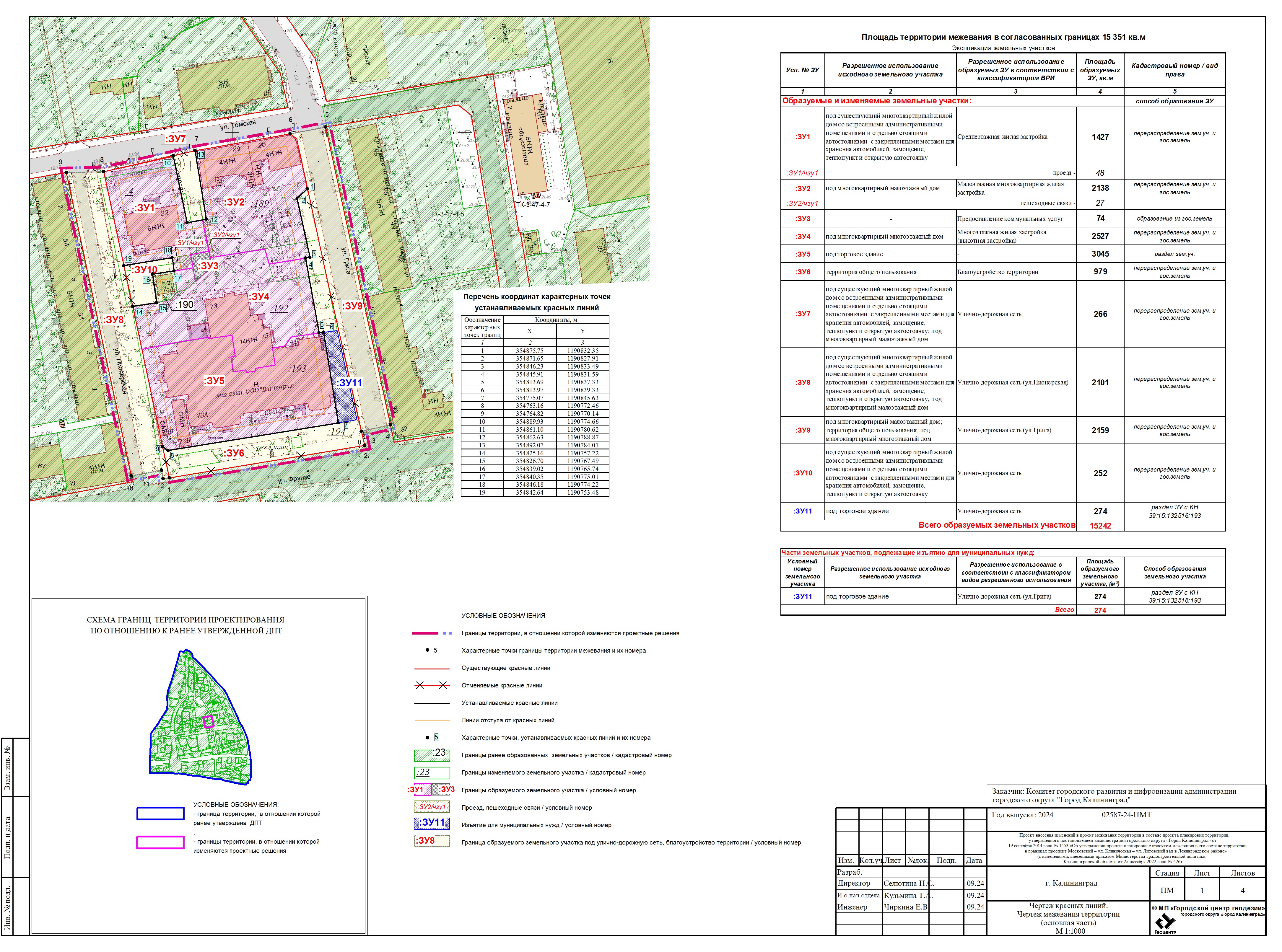 Проект внесения изменений в проект межевания территории в составе проекта планировки территории, утвержденного постановлением администрации городского округа «Город Калининград» от 19.09.2014 № 1453 «Об утверждении проекта планировки с проектом межевания в его составе территории в границах проспект Московский – ул. Клиническая – ул. Литовский вал в Ленинградском районе»