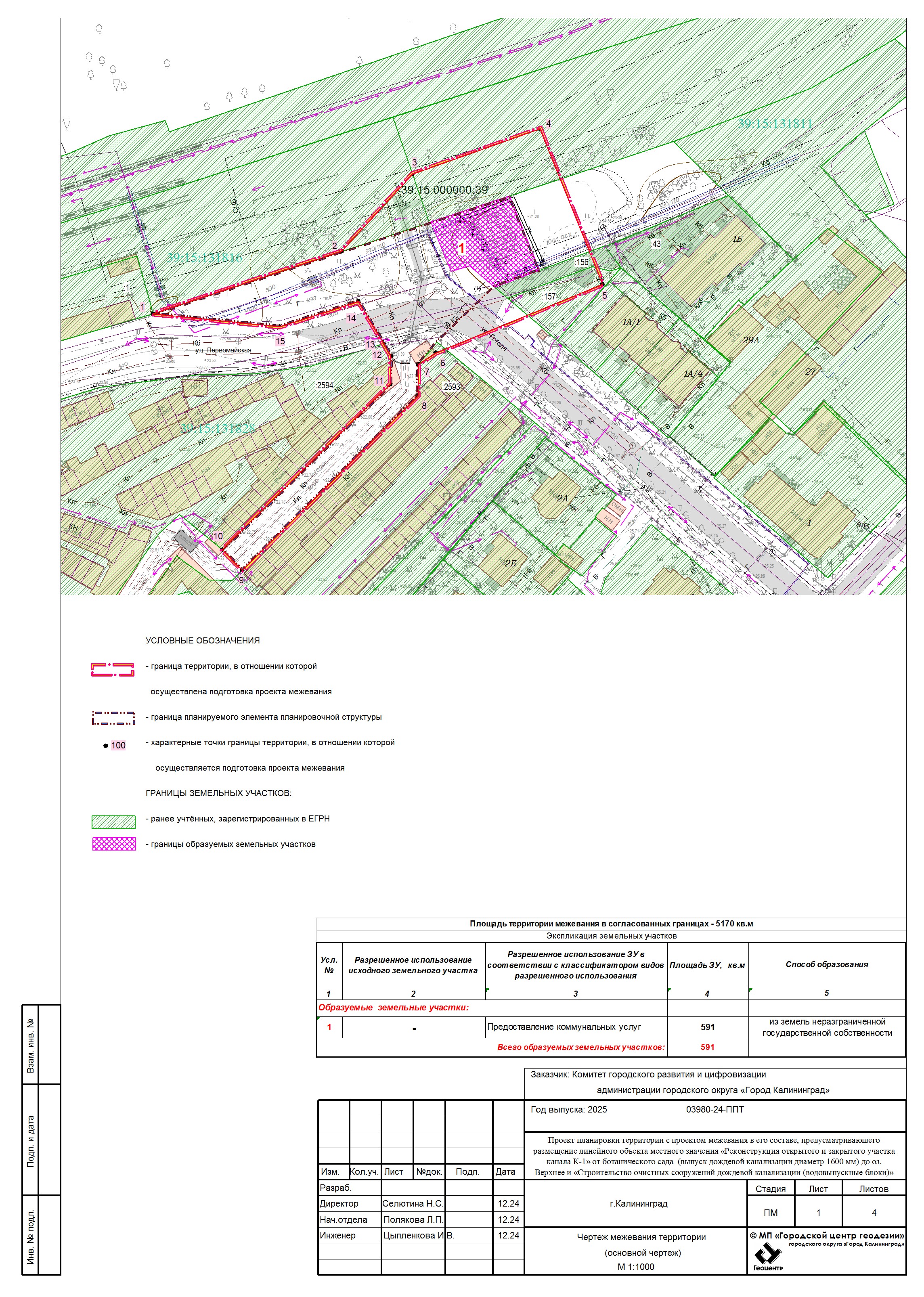 Проект планировки территории с проектом межевания в его составе, предусматривающий размещение линейного объекта местного значения «Строительство ул. Благовещенская в г. Калининграде»