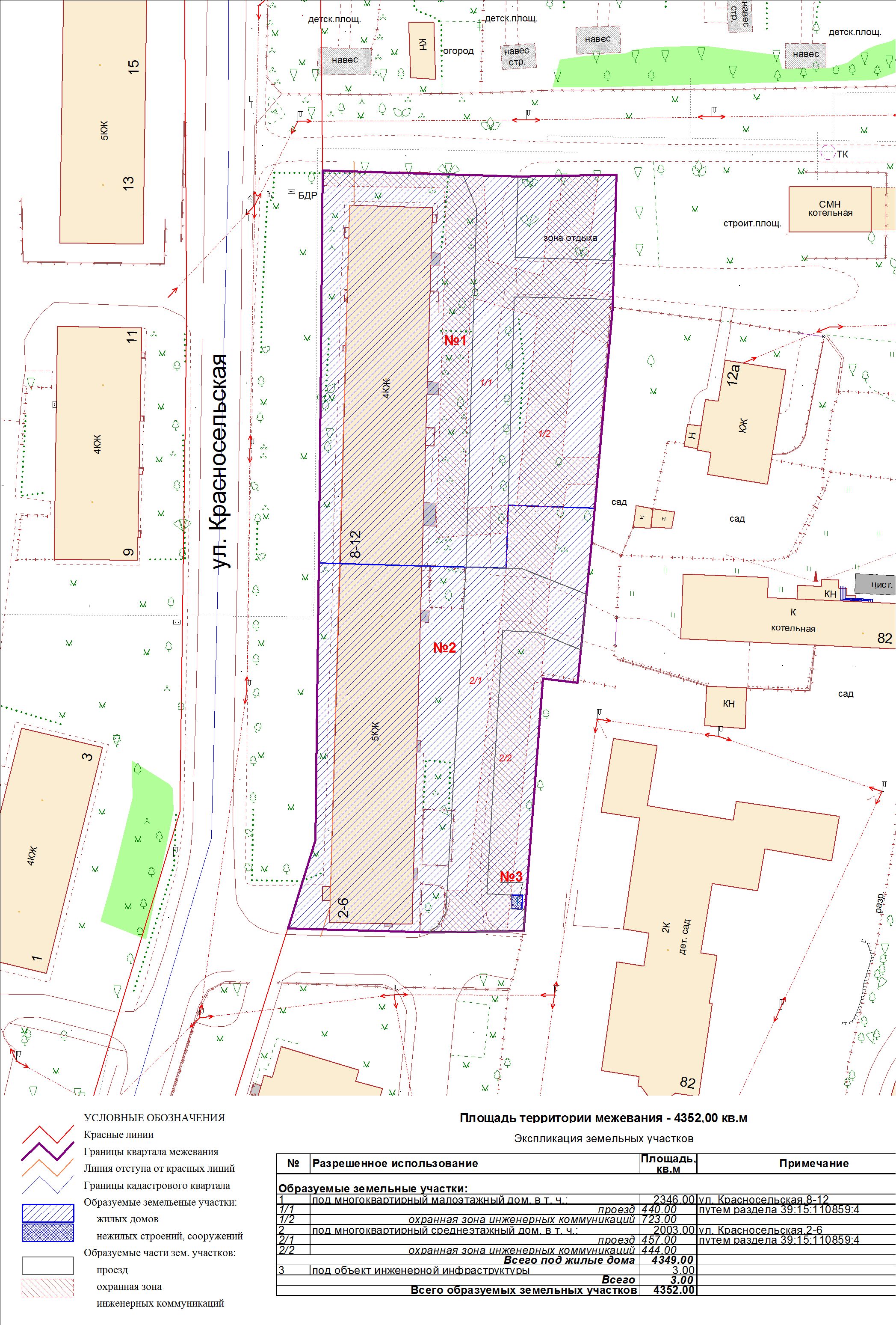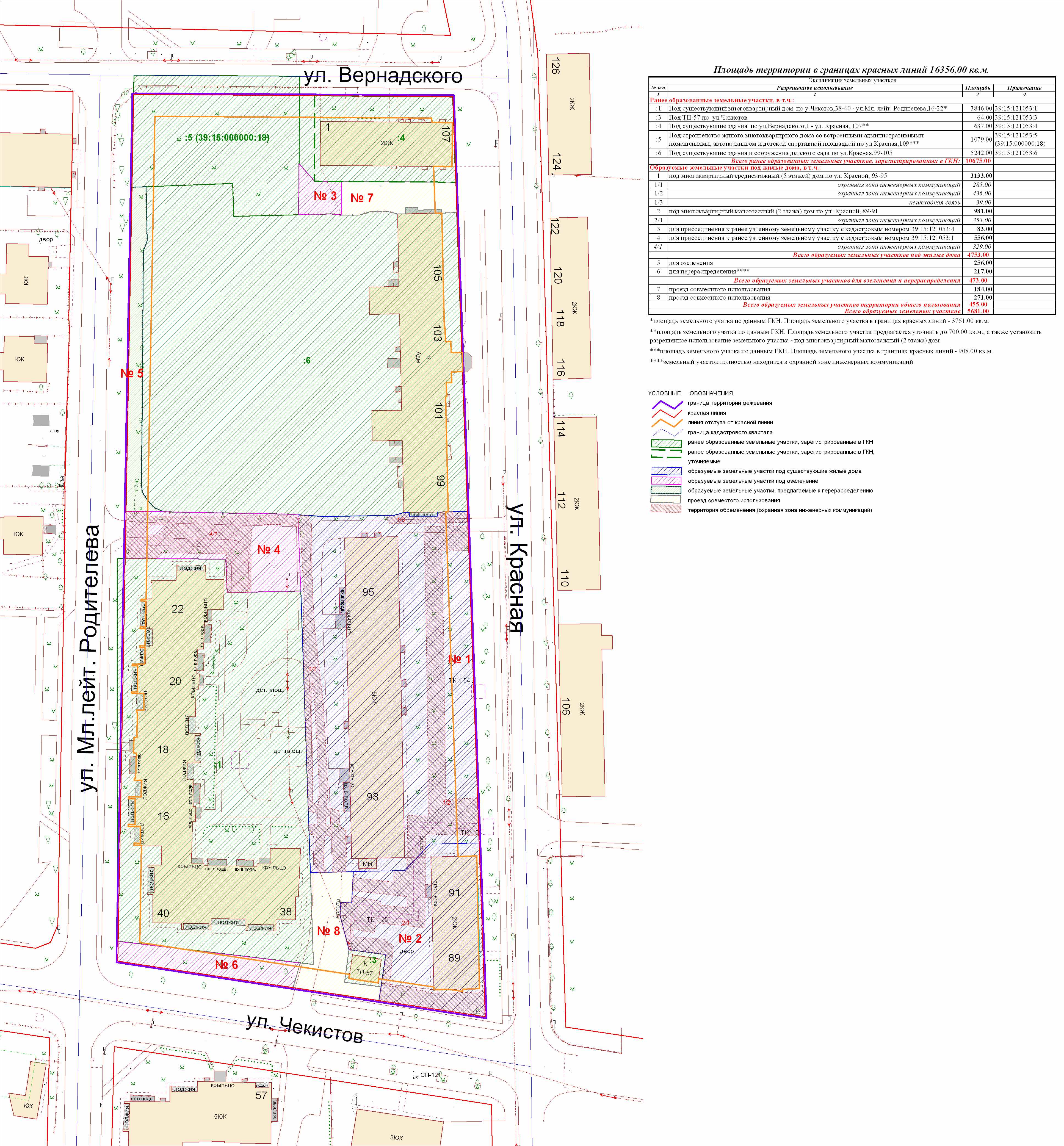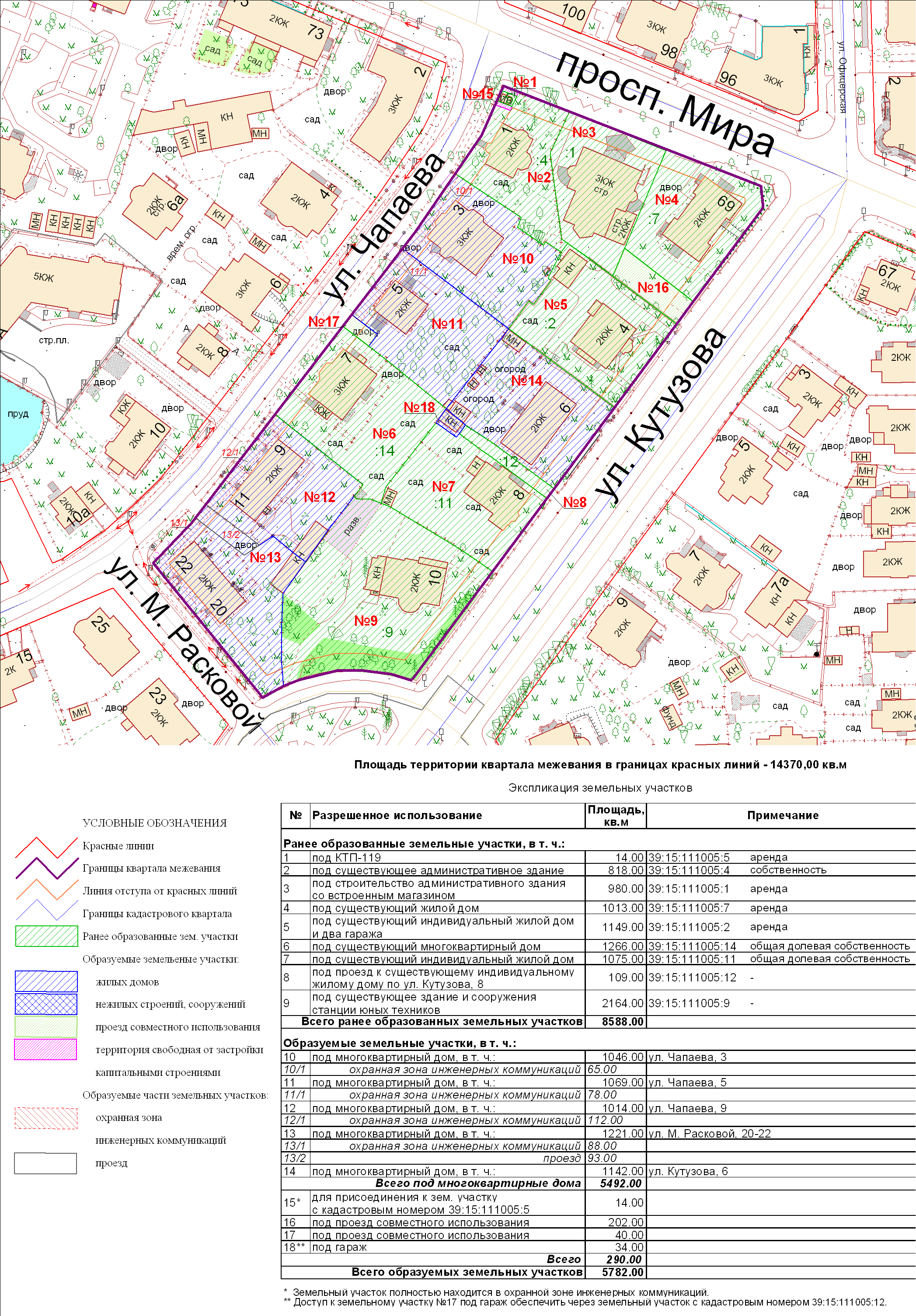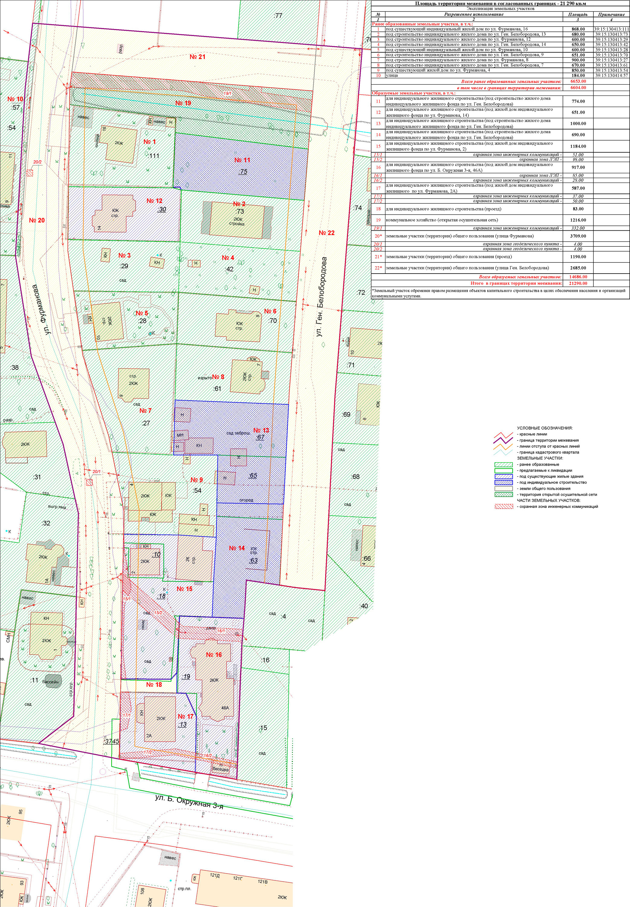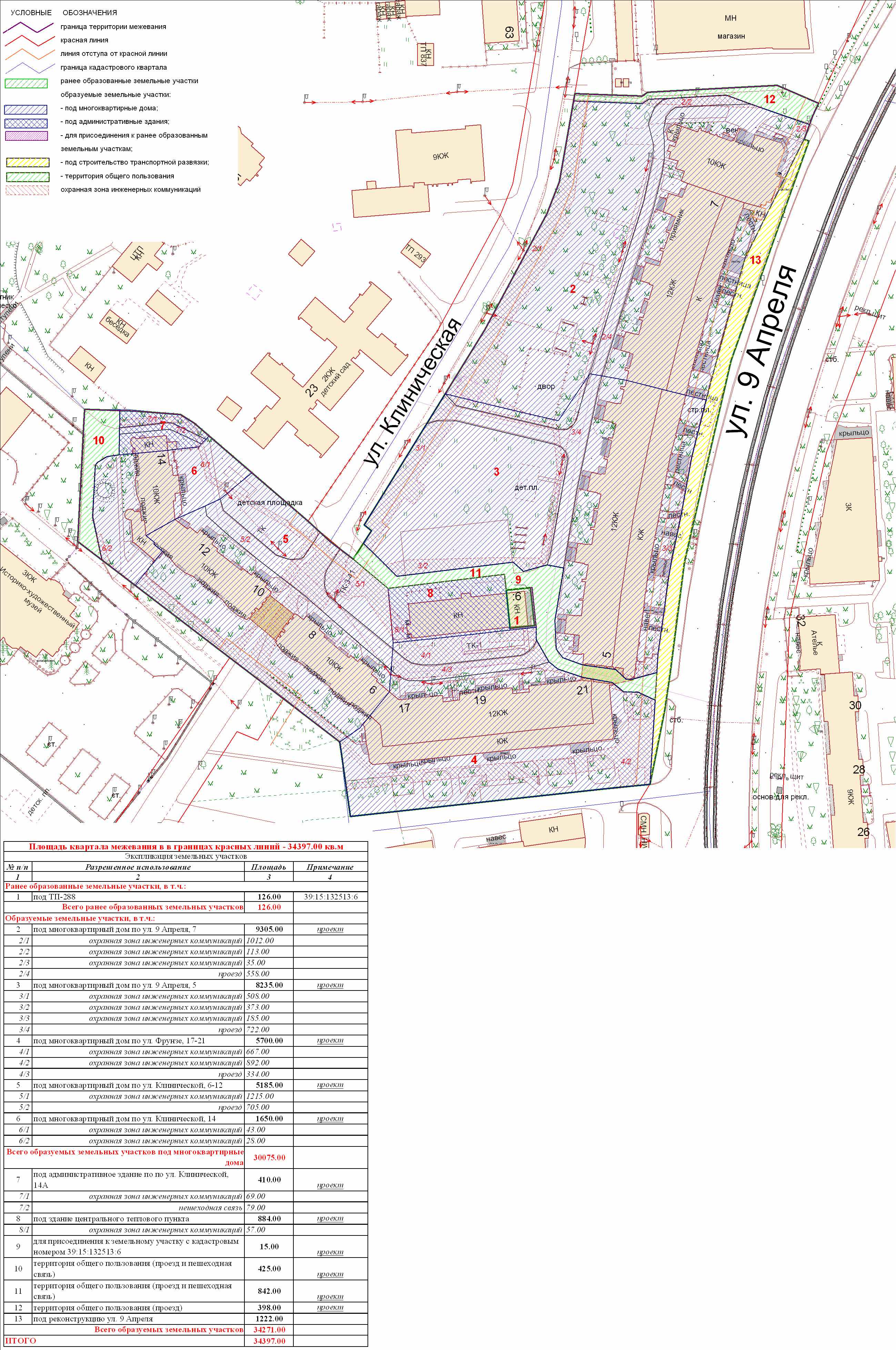 | Проект межевания территории в границах ул. Куйбышева – внутриквартального проезда – южной границы земельного участка с кадастровым номером 39:15:131931:77 по ул. Еловая аллея – пер. Куйбышева Ленинградского района города Калининграда | Оповещение Проект границ | Заключение | ||