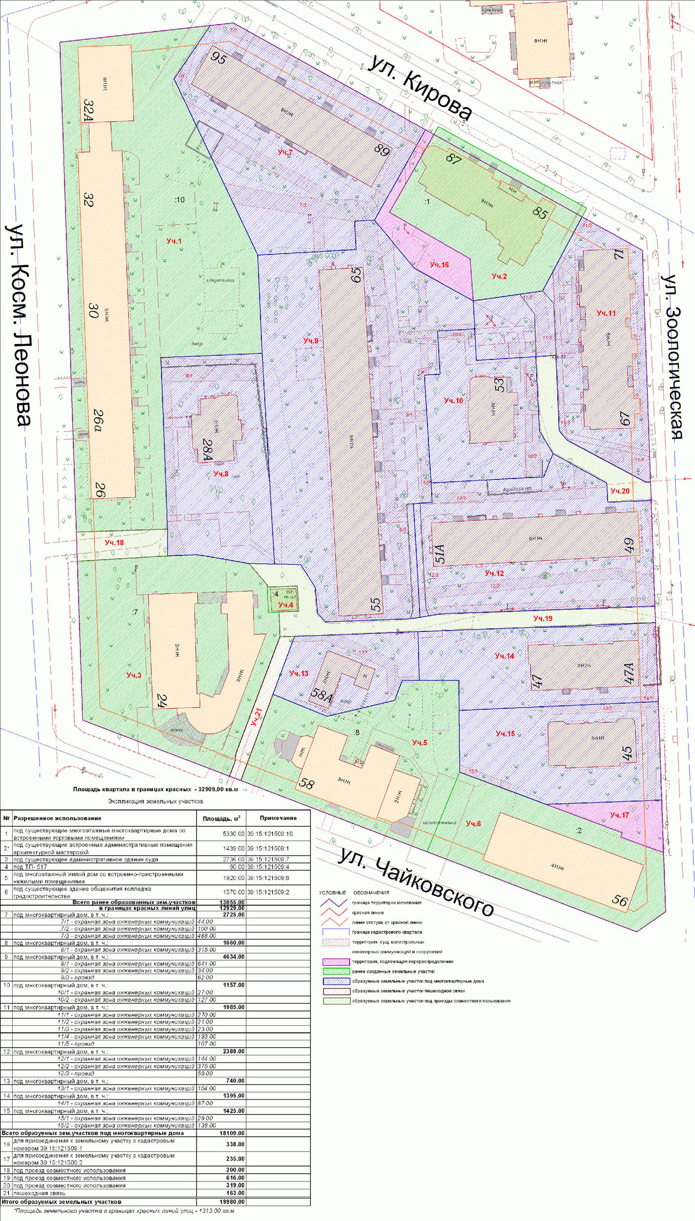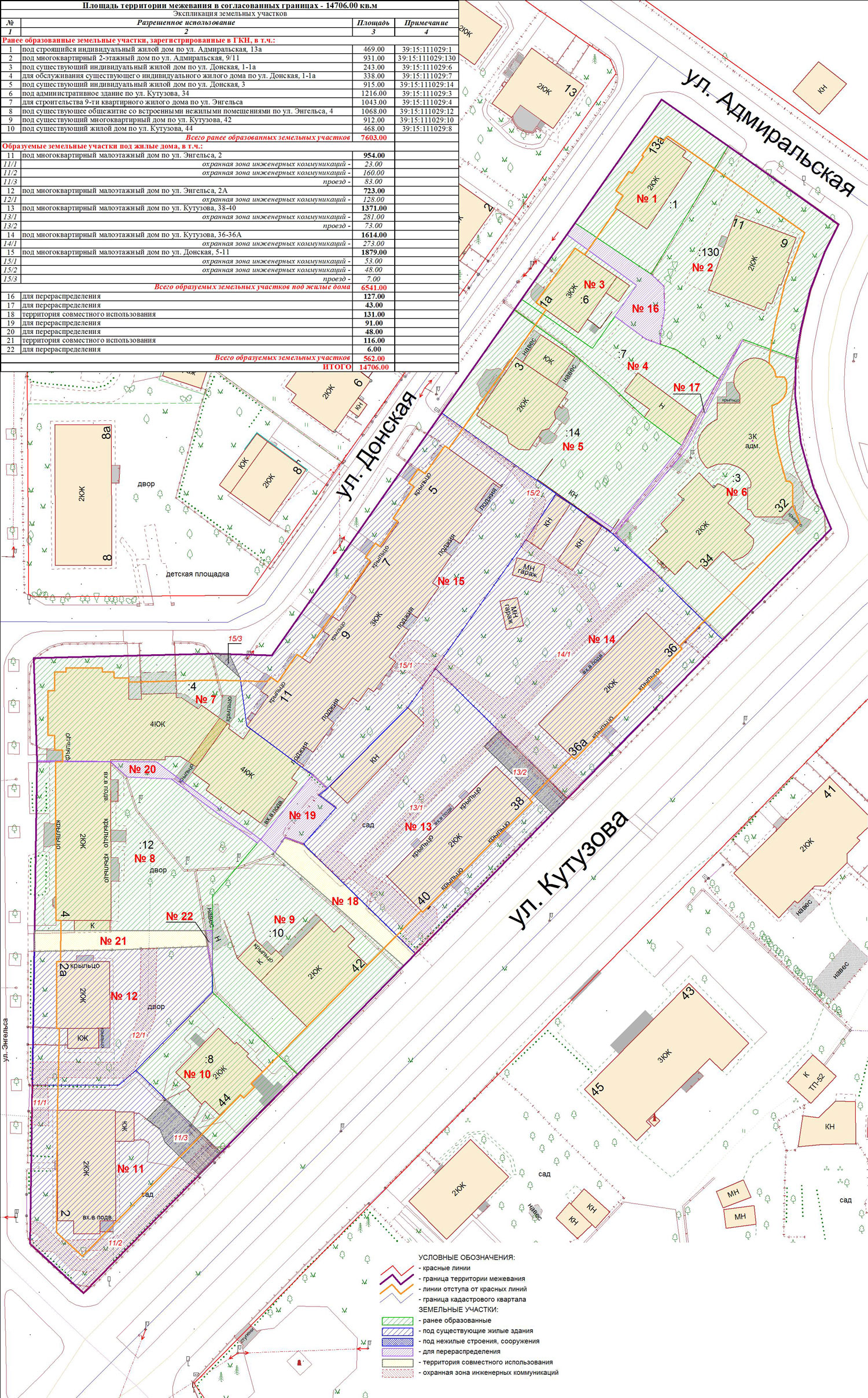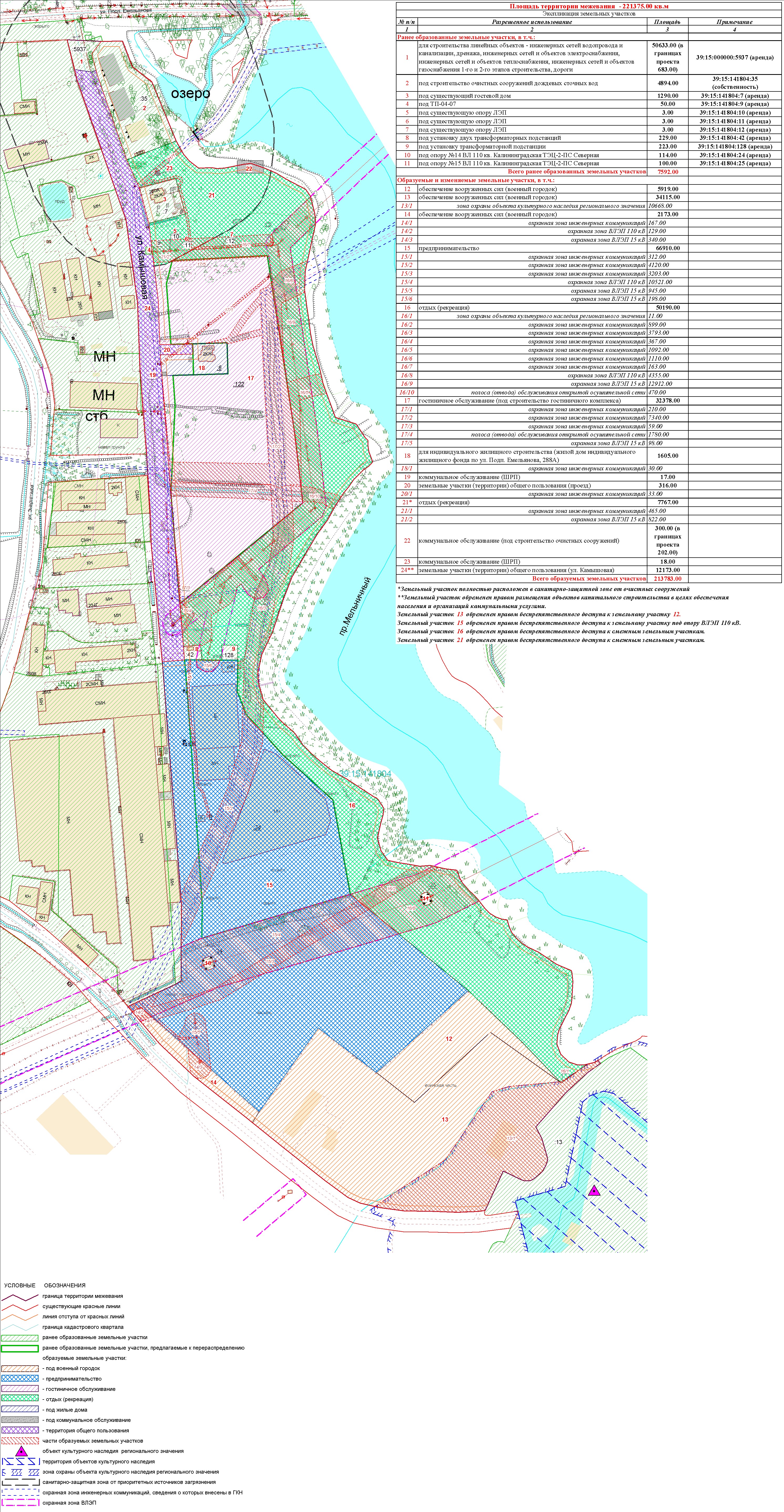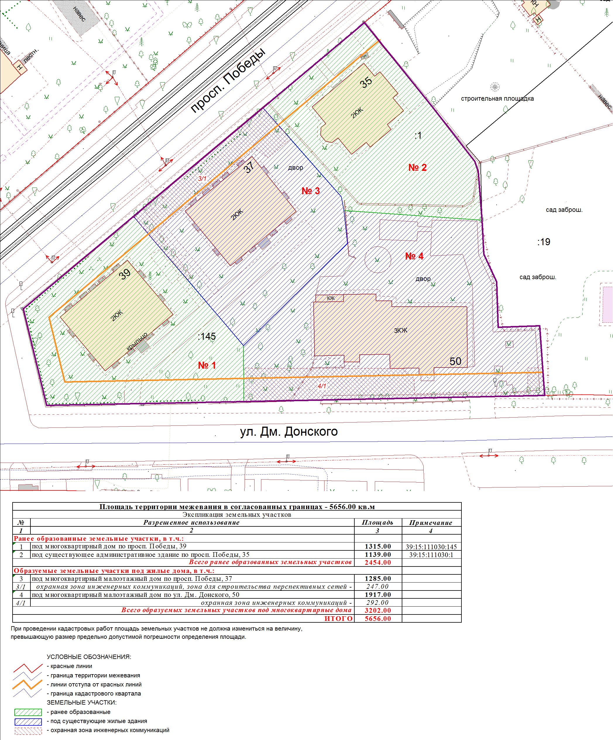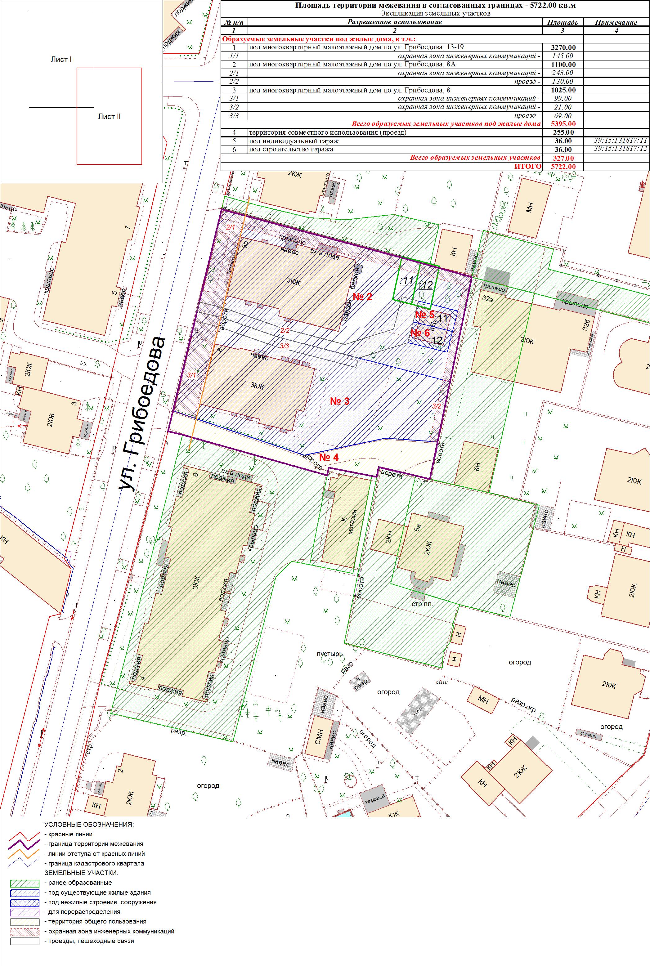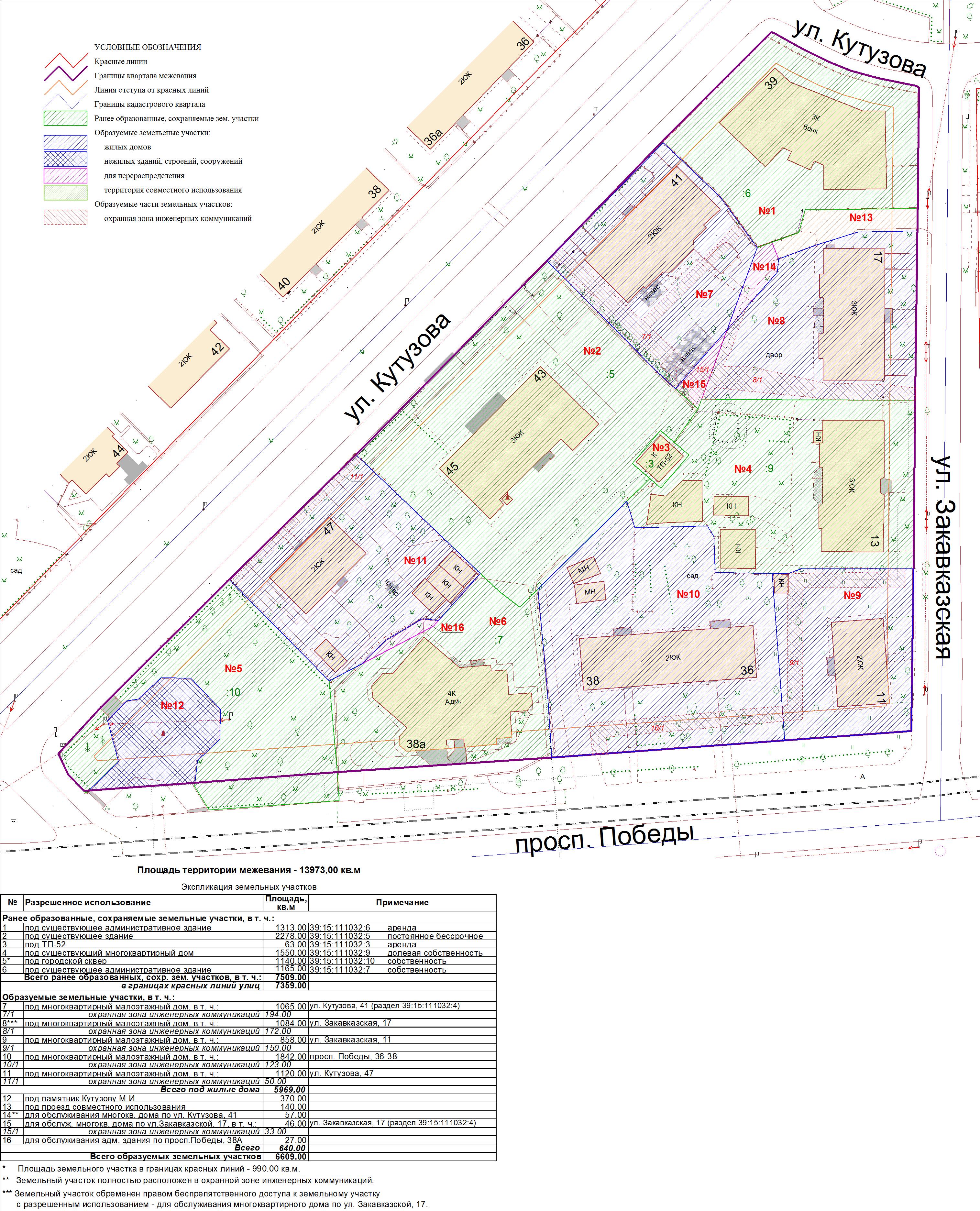 | Проект межевания территории в границах ул. Куйбышева – внутриквартального проезда – южной границы земельного участка с кадастровым номером 39:15:131931:77 по ул. Еловая аллея – пер. Куйбышева Ленинградского района города Калининграда | Оповещение Проект границ | Заключение | ||