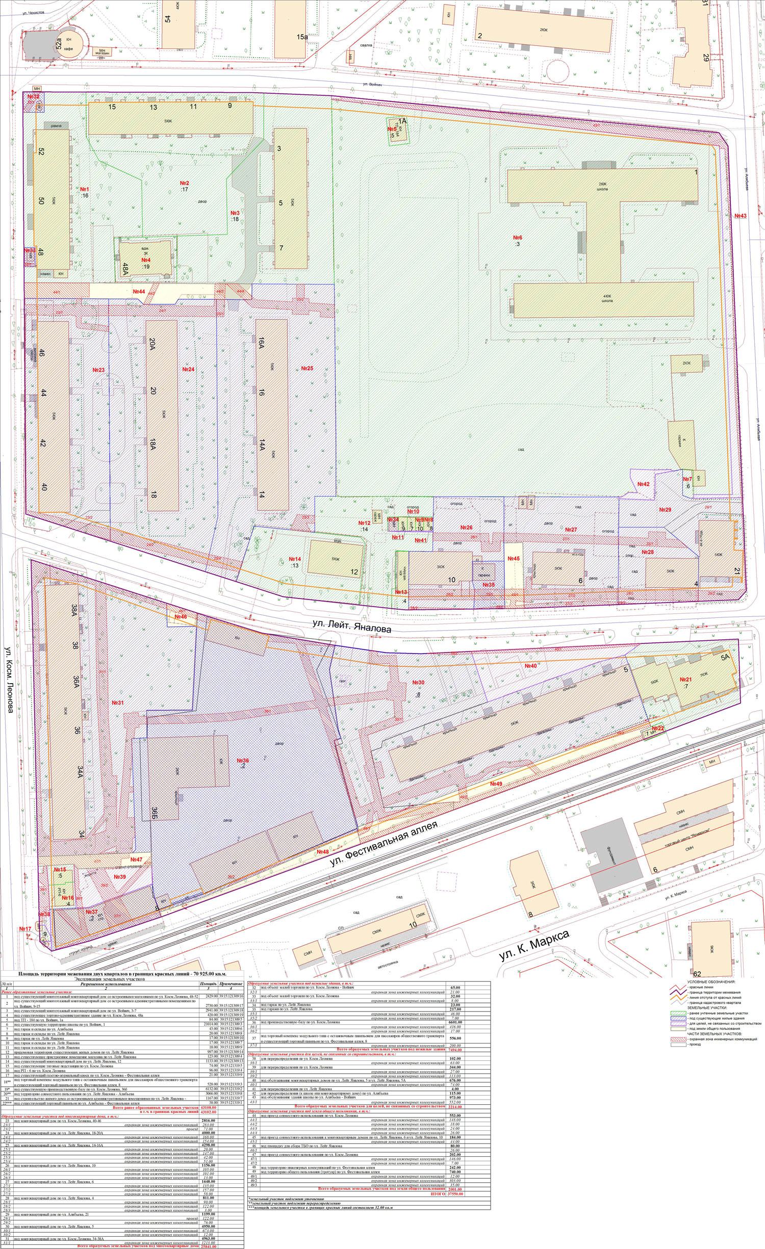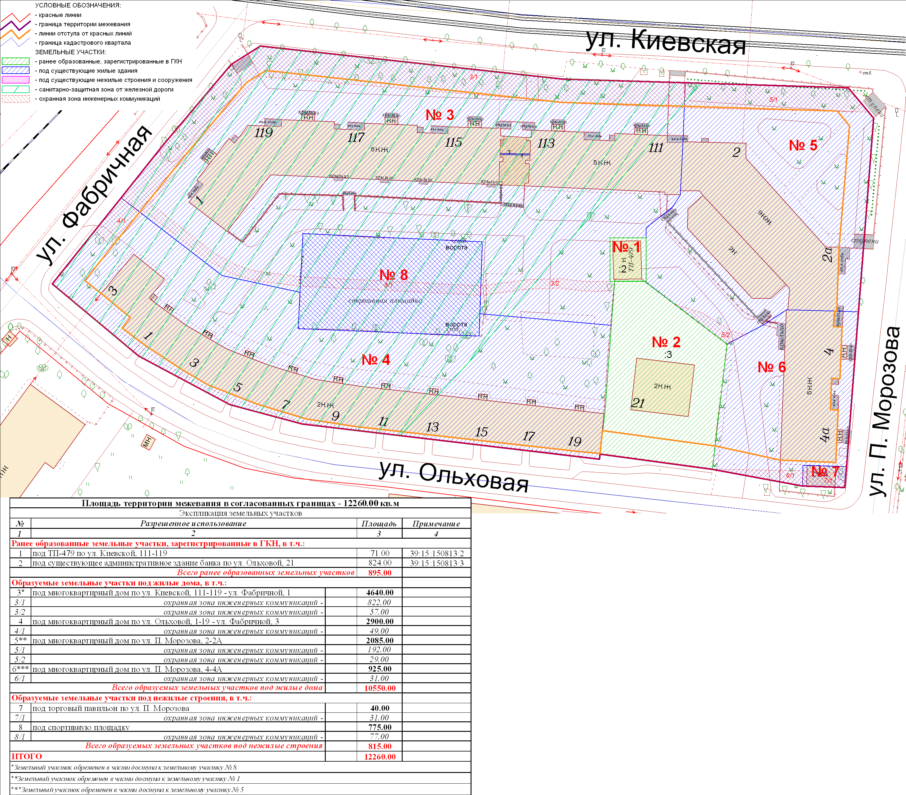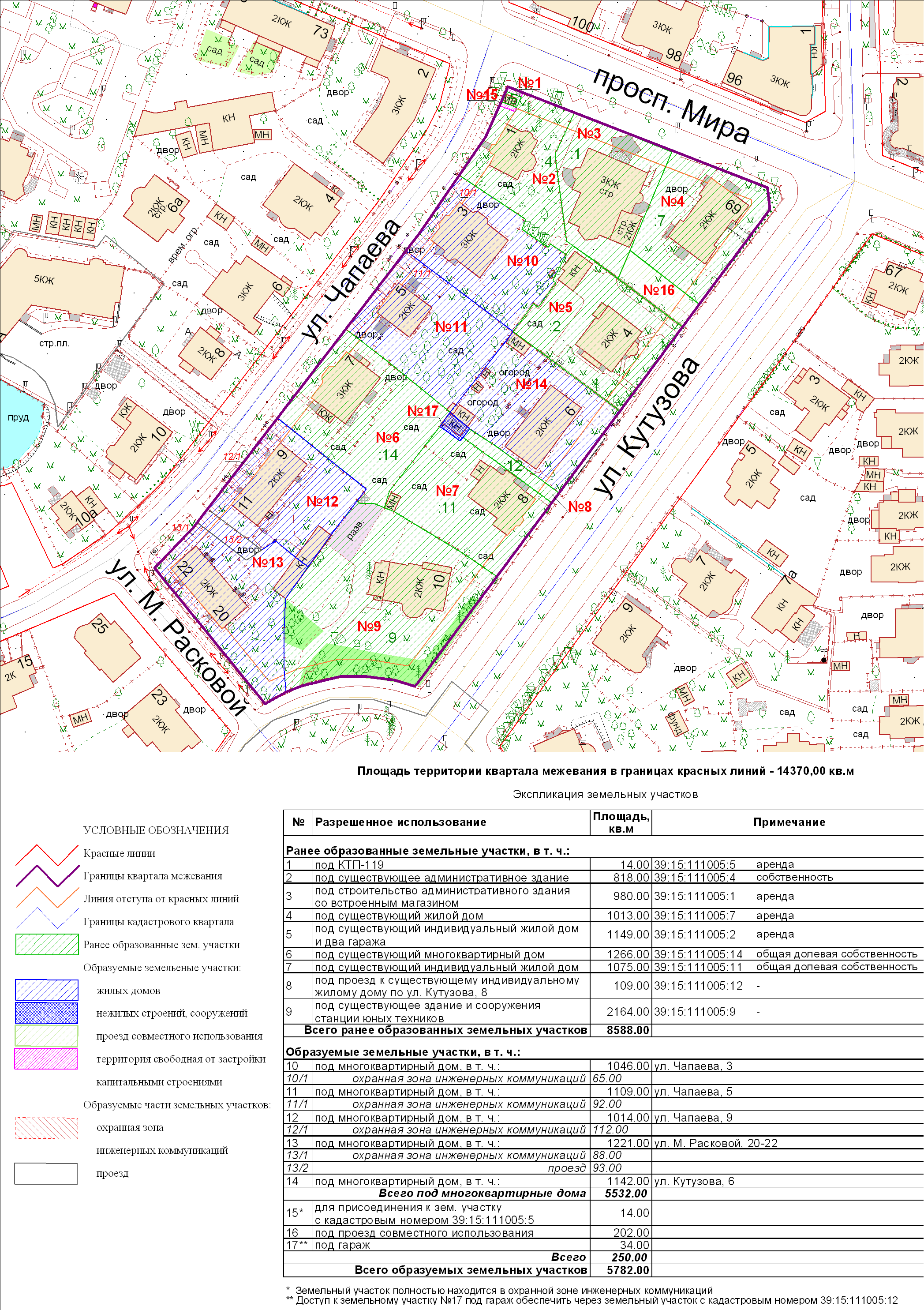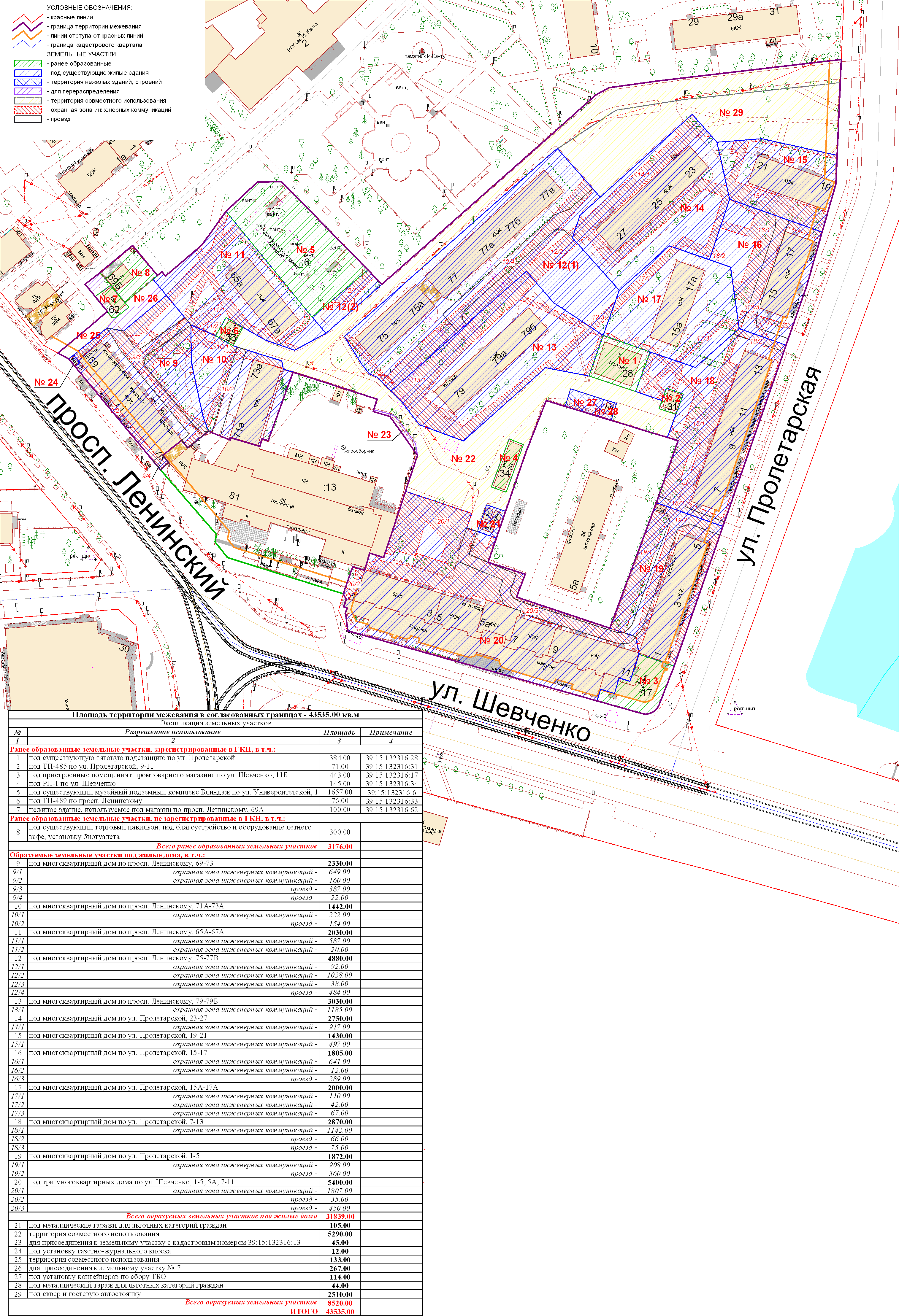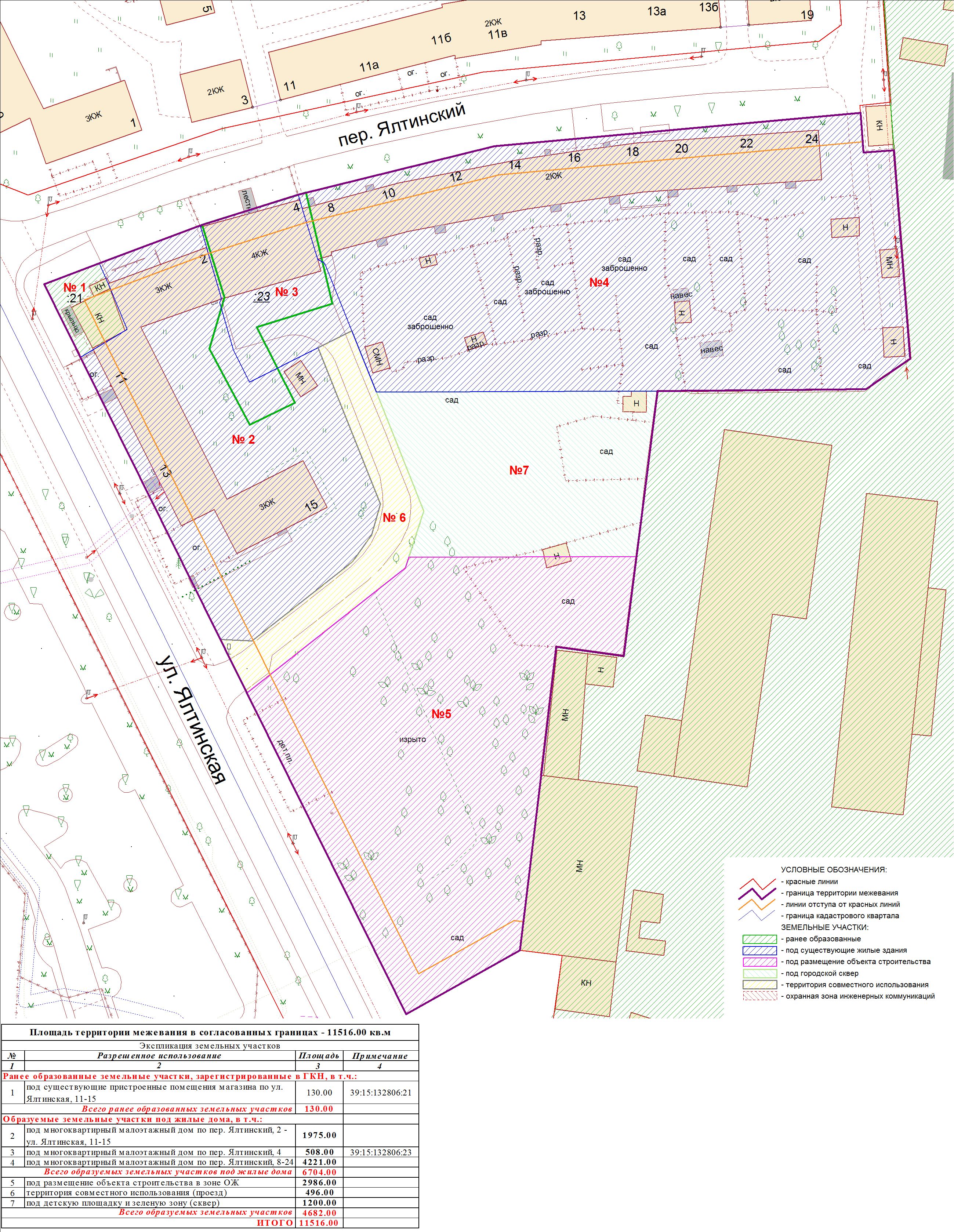 | Проект межевания территории в границах ул. Куйбышева – внутриквартального проезда – южной границы земельного участка с кадастровым номером 39:15:131931:77 по ул. Еловая аллея – пер. Куйбышева Ленинградского района города Калининграда | Оповещение Проект границ | Заключение | ||