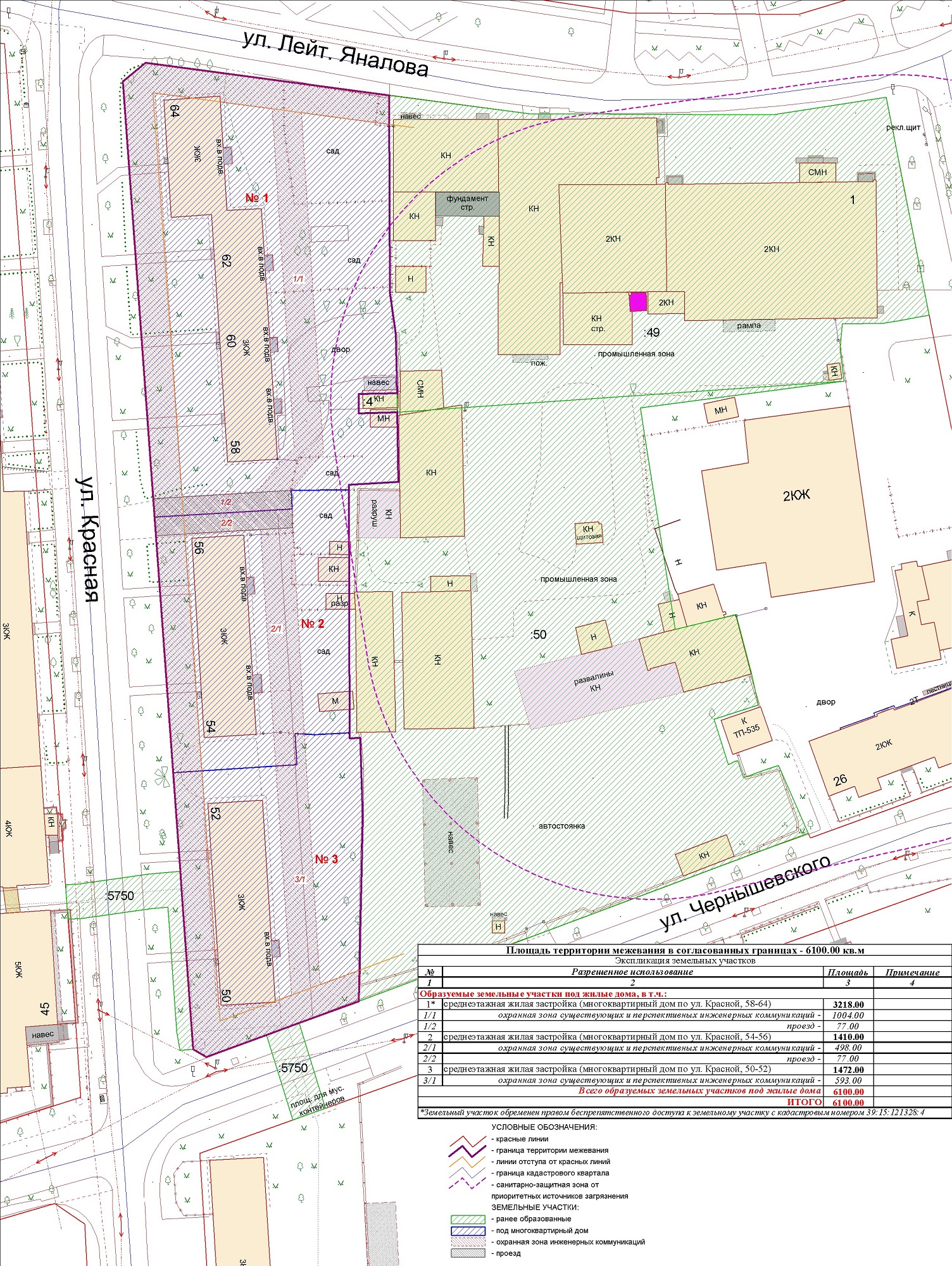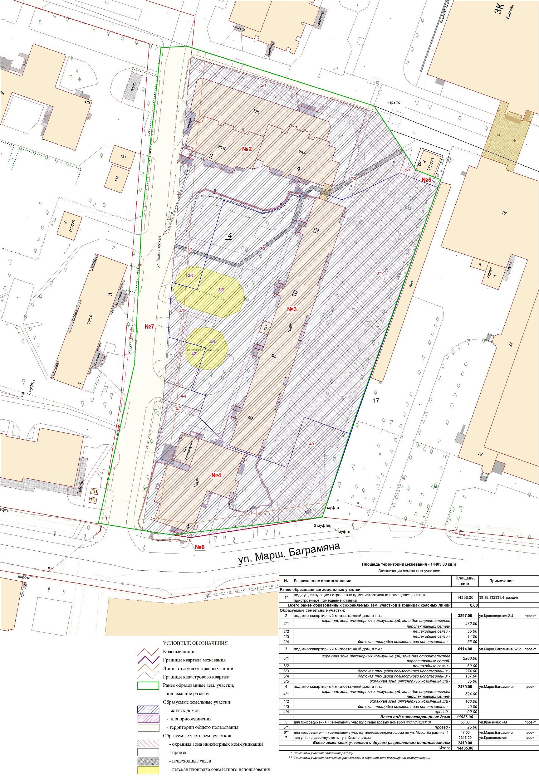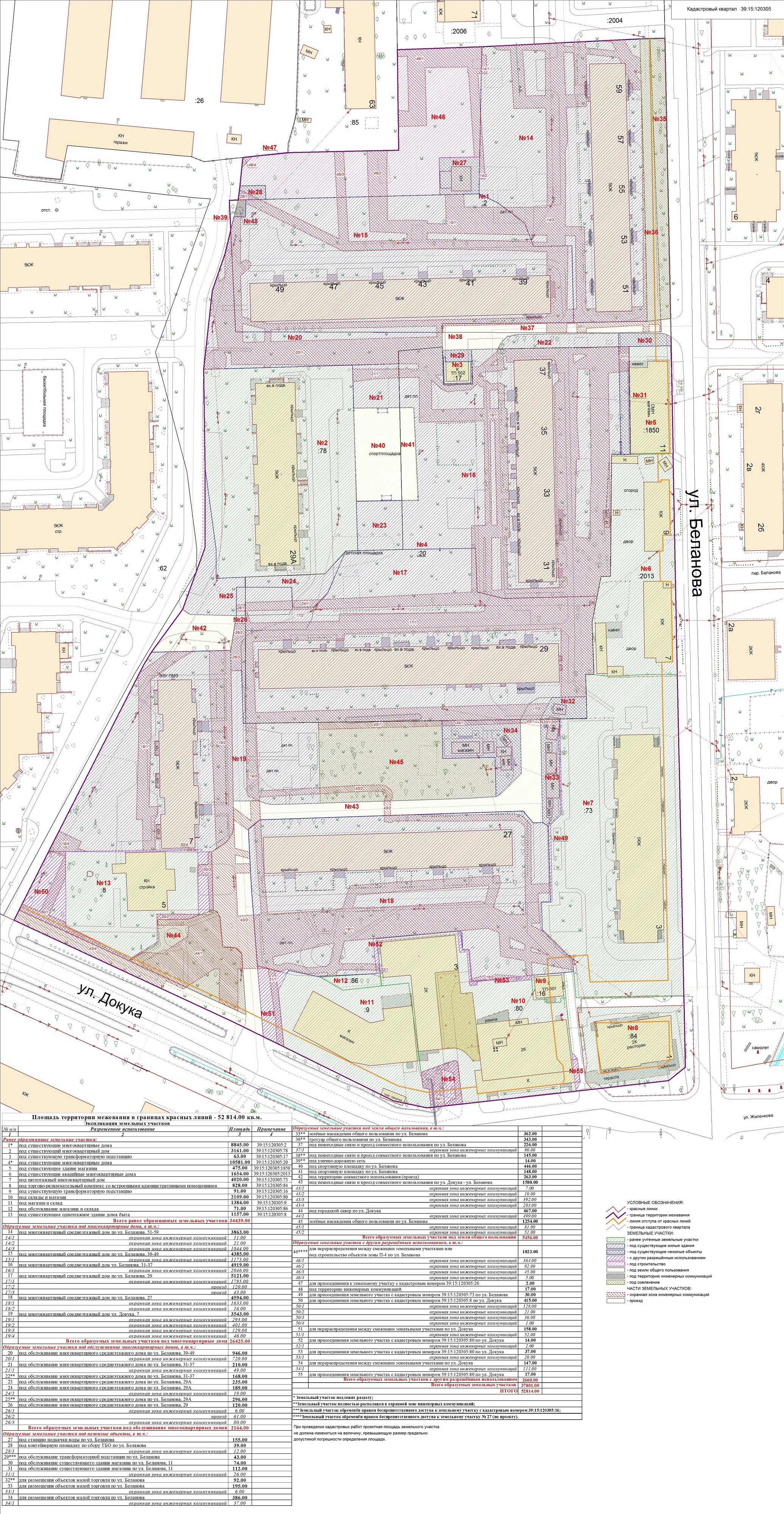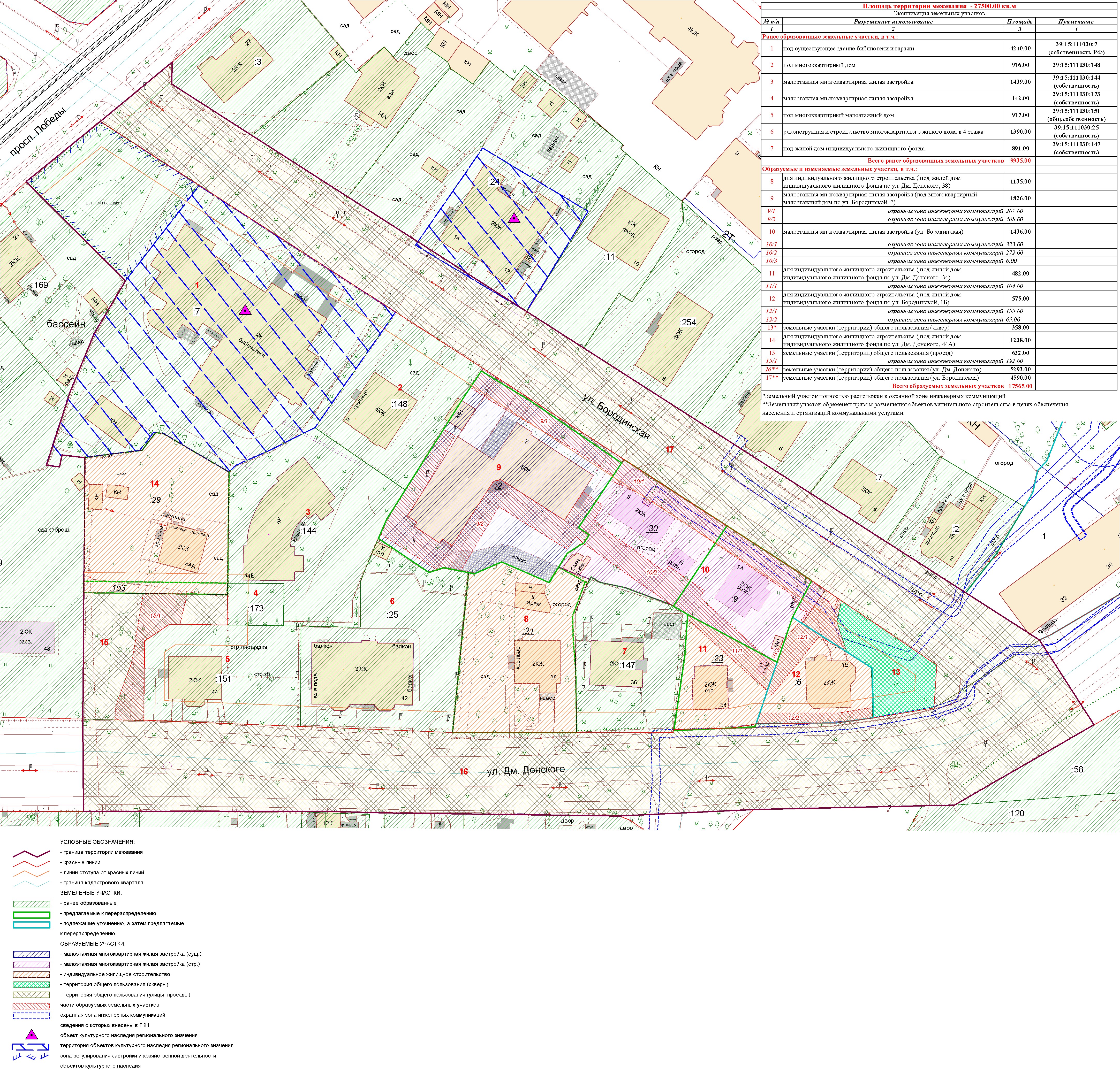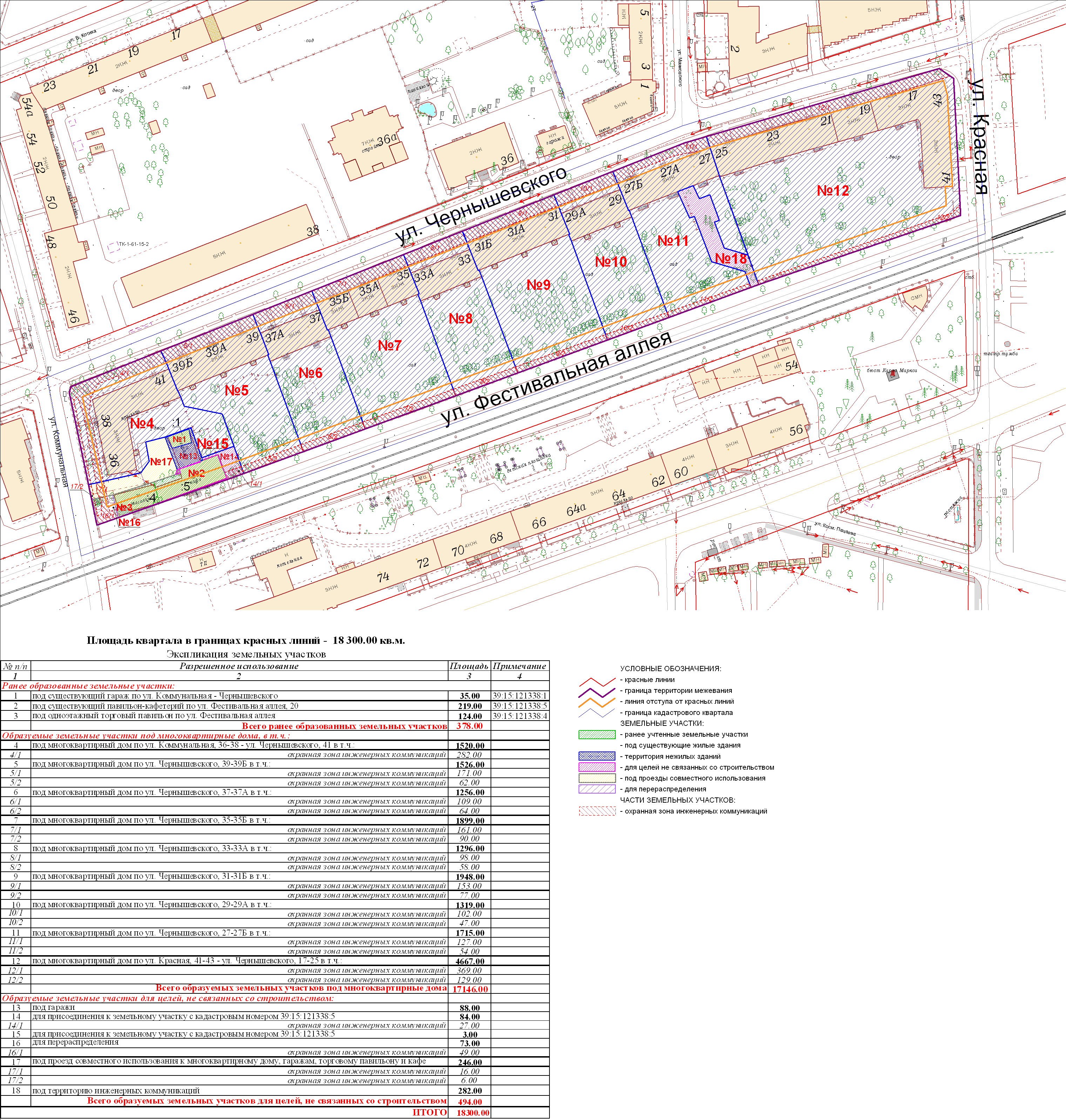 | Проект межевания территории в границах ул. Куйбышева – внутриквартального проезда – южной границы земельного участка с кадастровым номером 39:15:131931:77 по ул. Еловая аллея – пер. Куйбышева Ленинградского района города Калининграда | Оповещение Проект границ | Заключение | ||