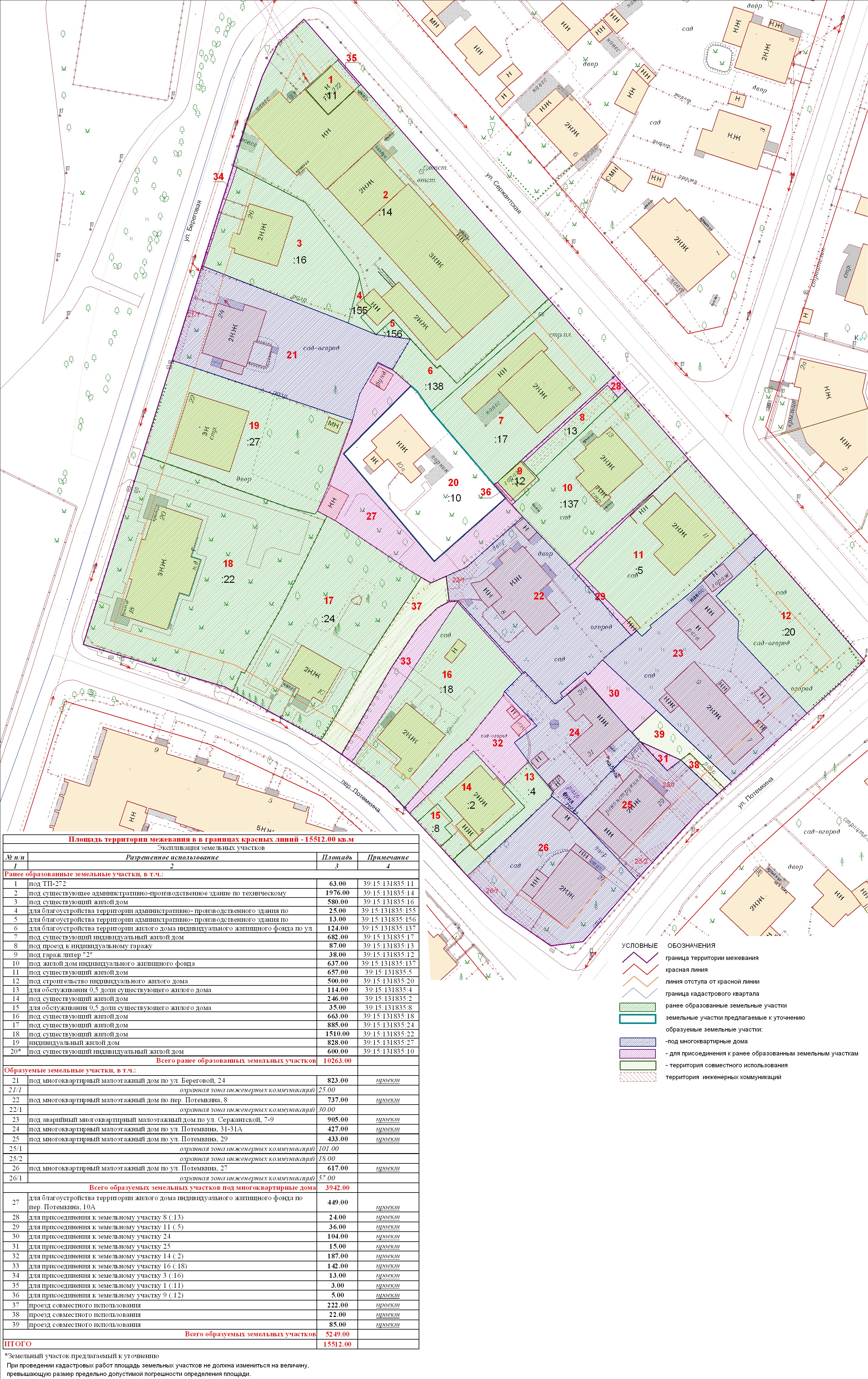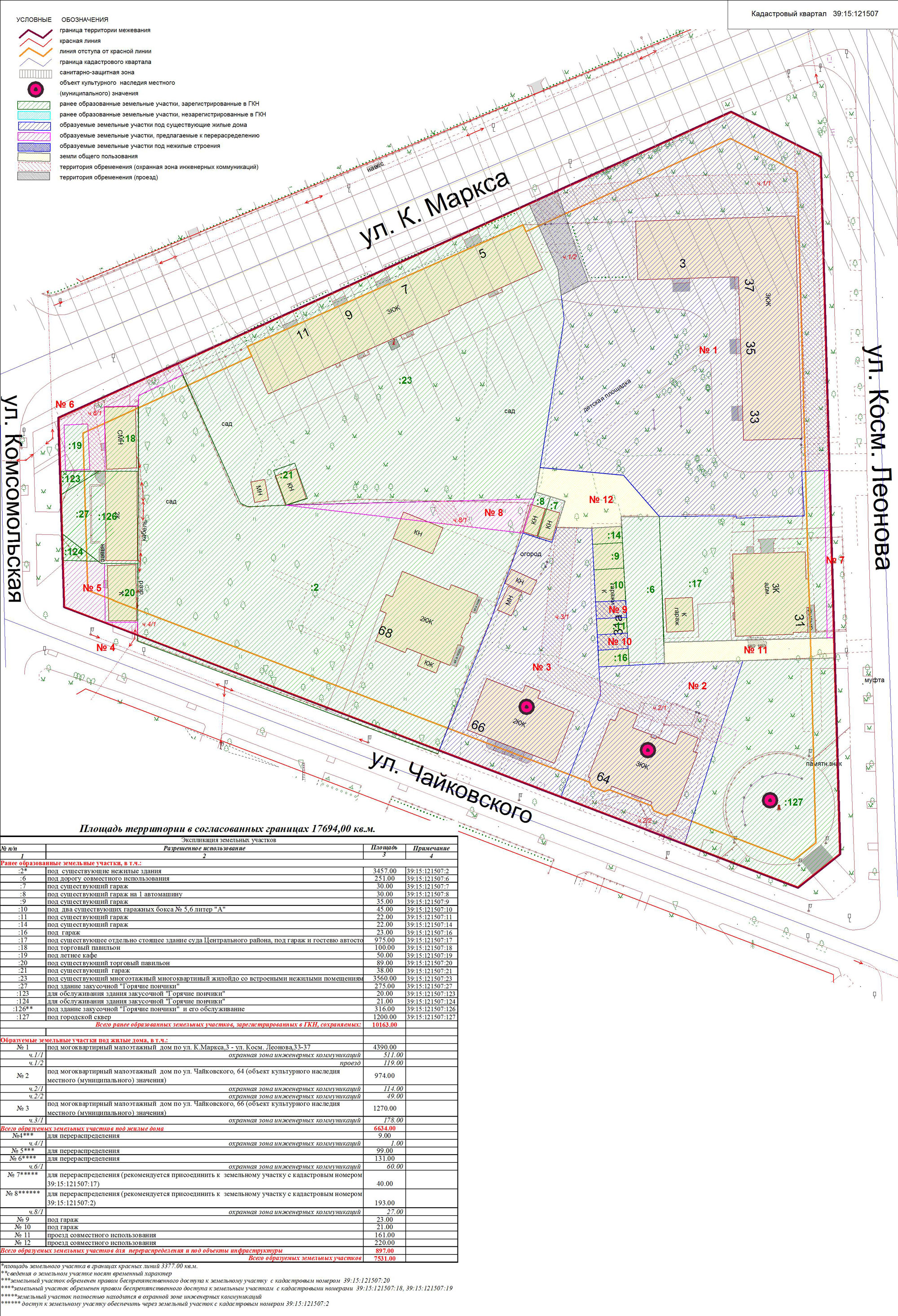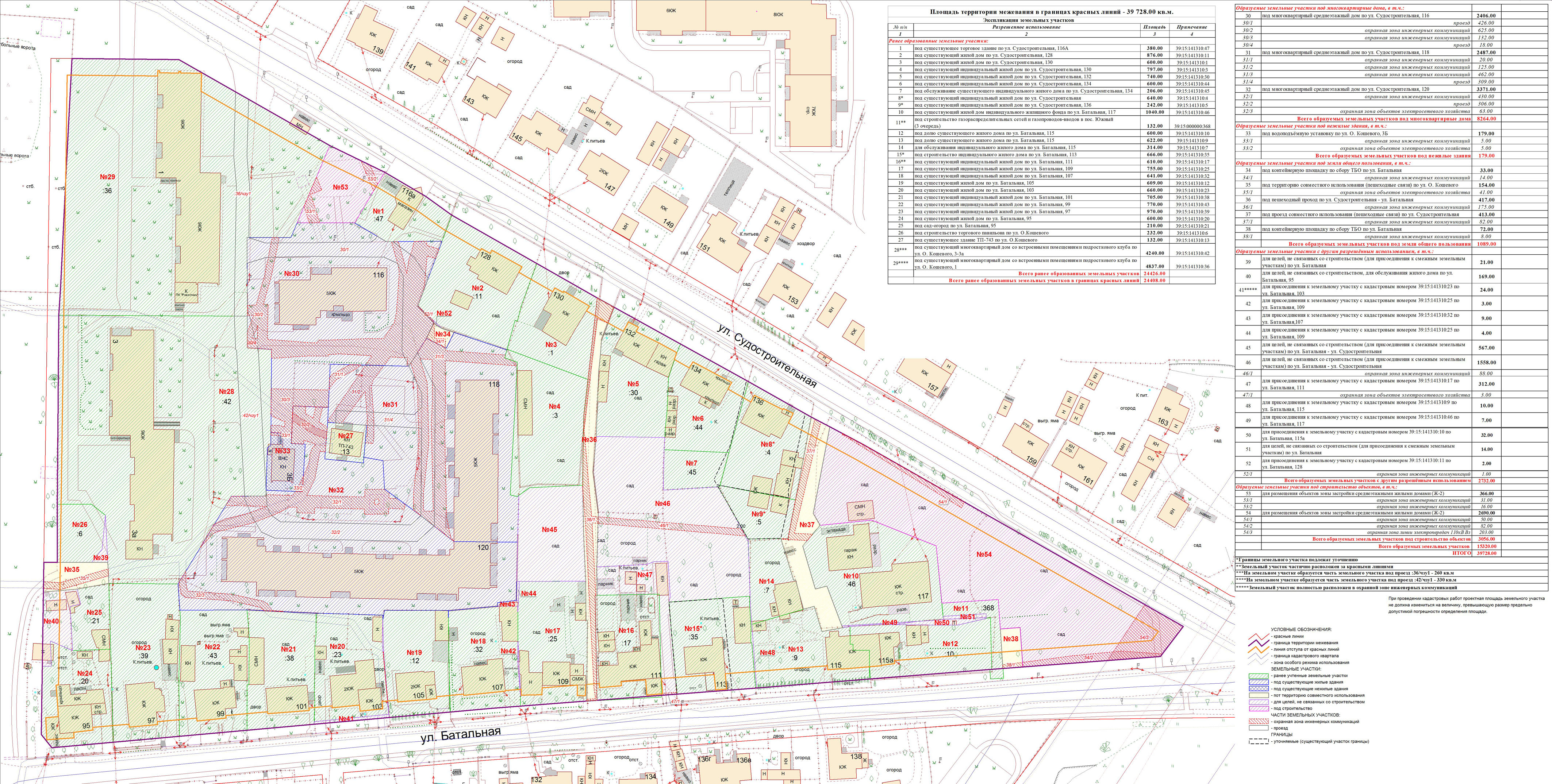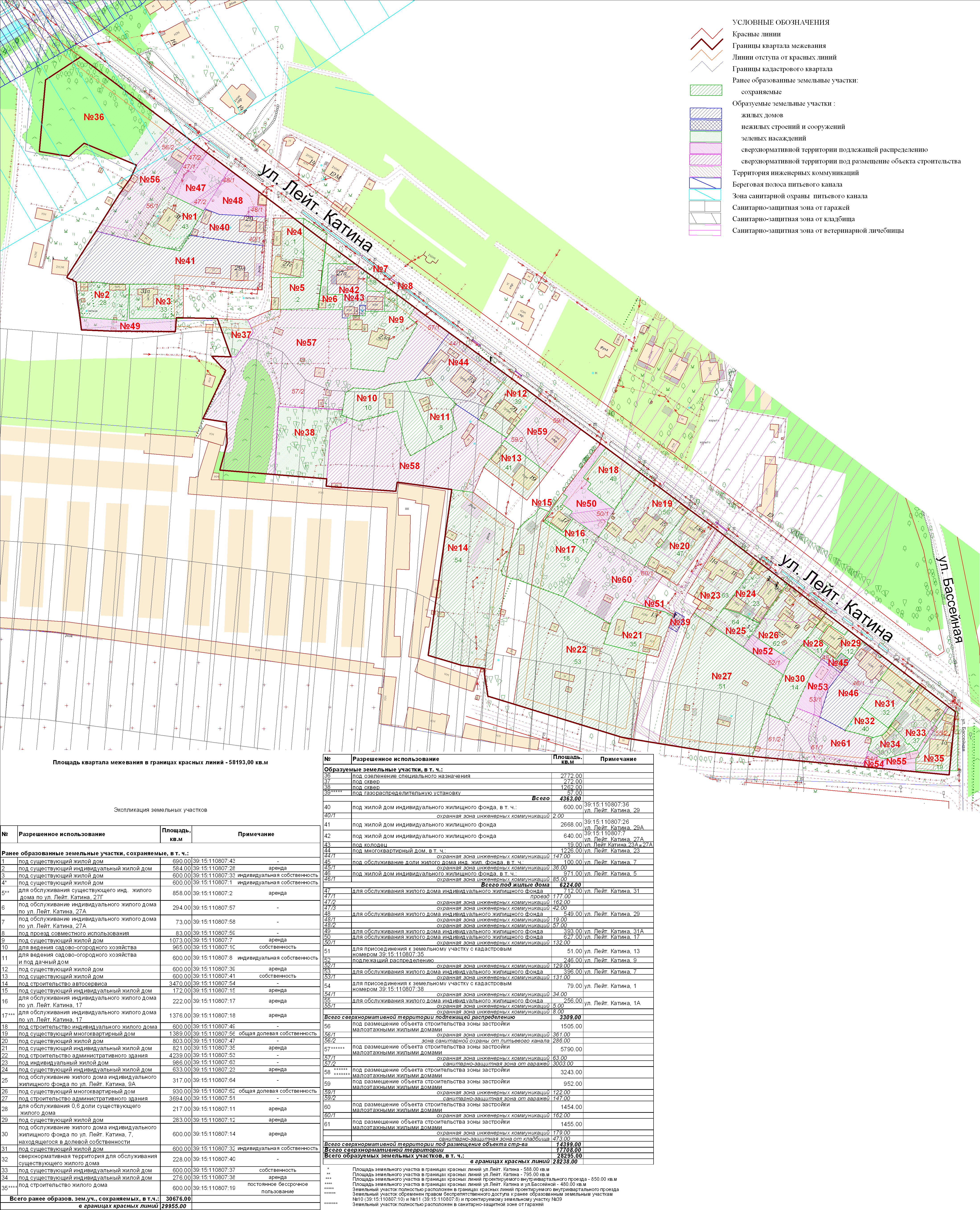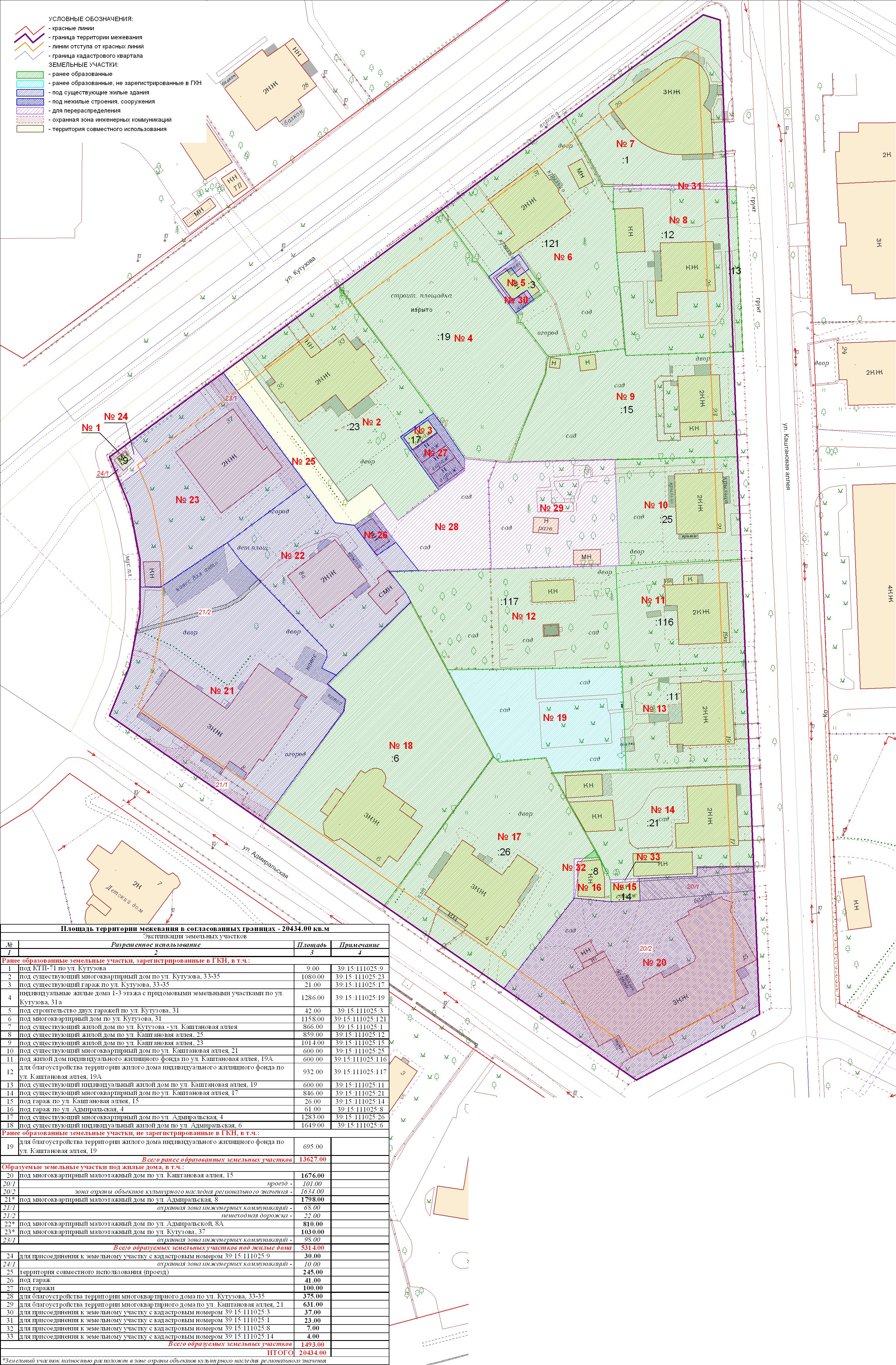 | Проект межевания территории в границах ул. Куйбышева – внутриквартального проезда – южной границы земельного участка с кадастровым номером 39:15:131931:77 по ул. Еловая аллея – пер. Куйбышева Ленинградского района города Калининграда | Оповещение Проект границ | Заключение | ||