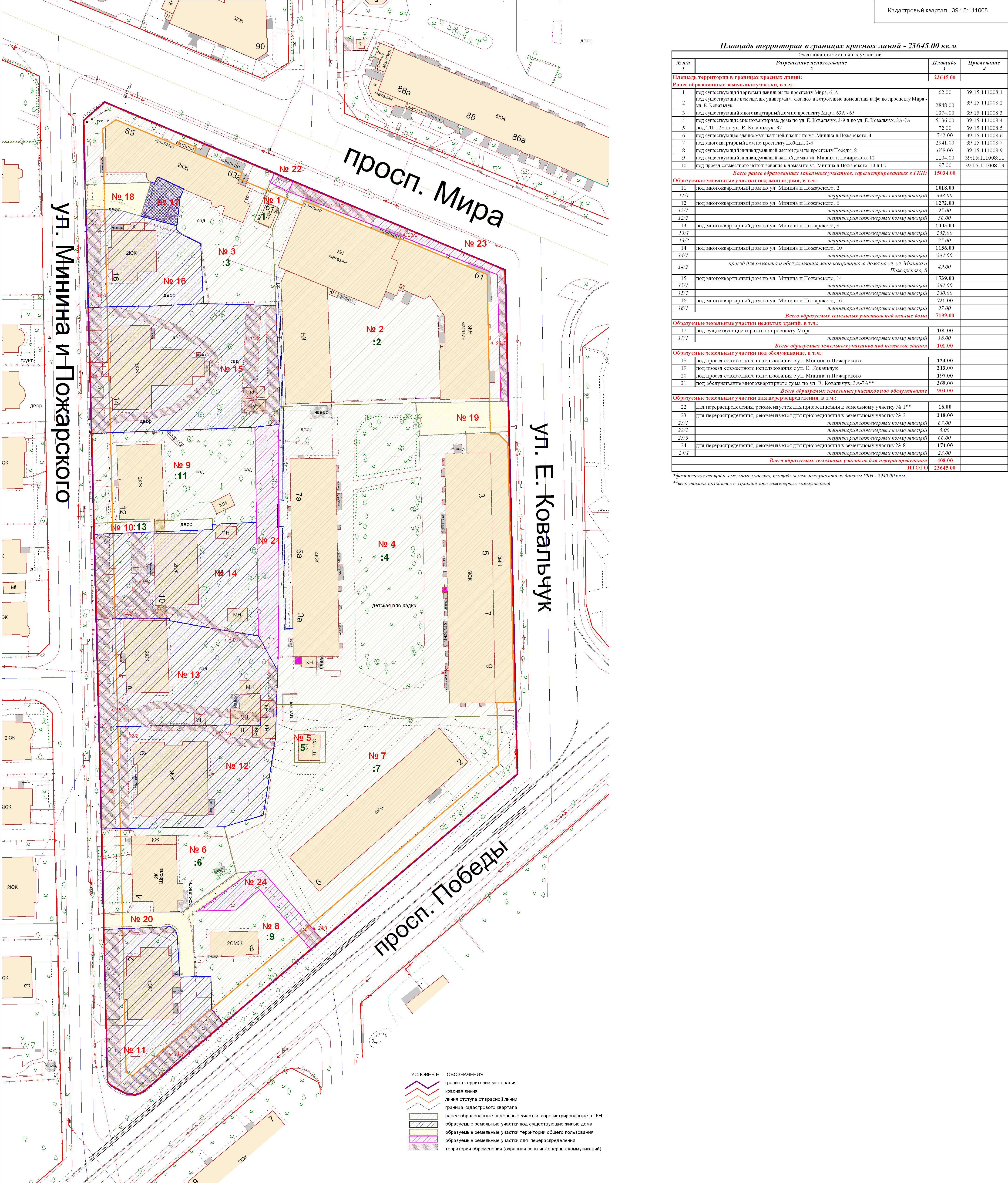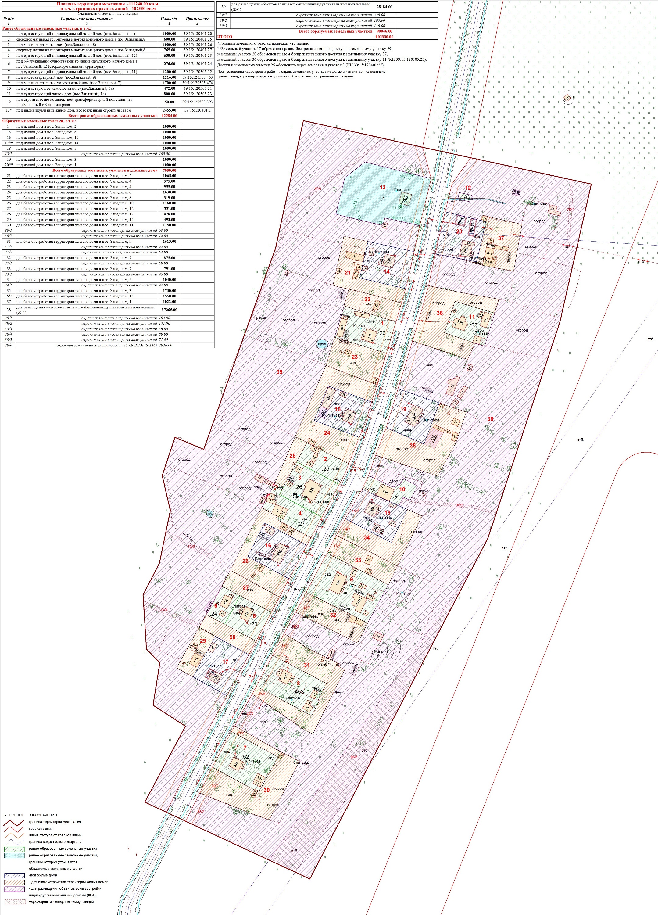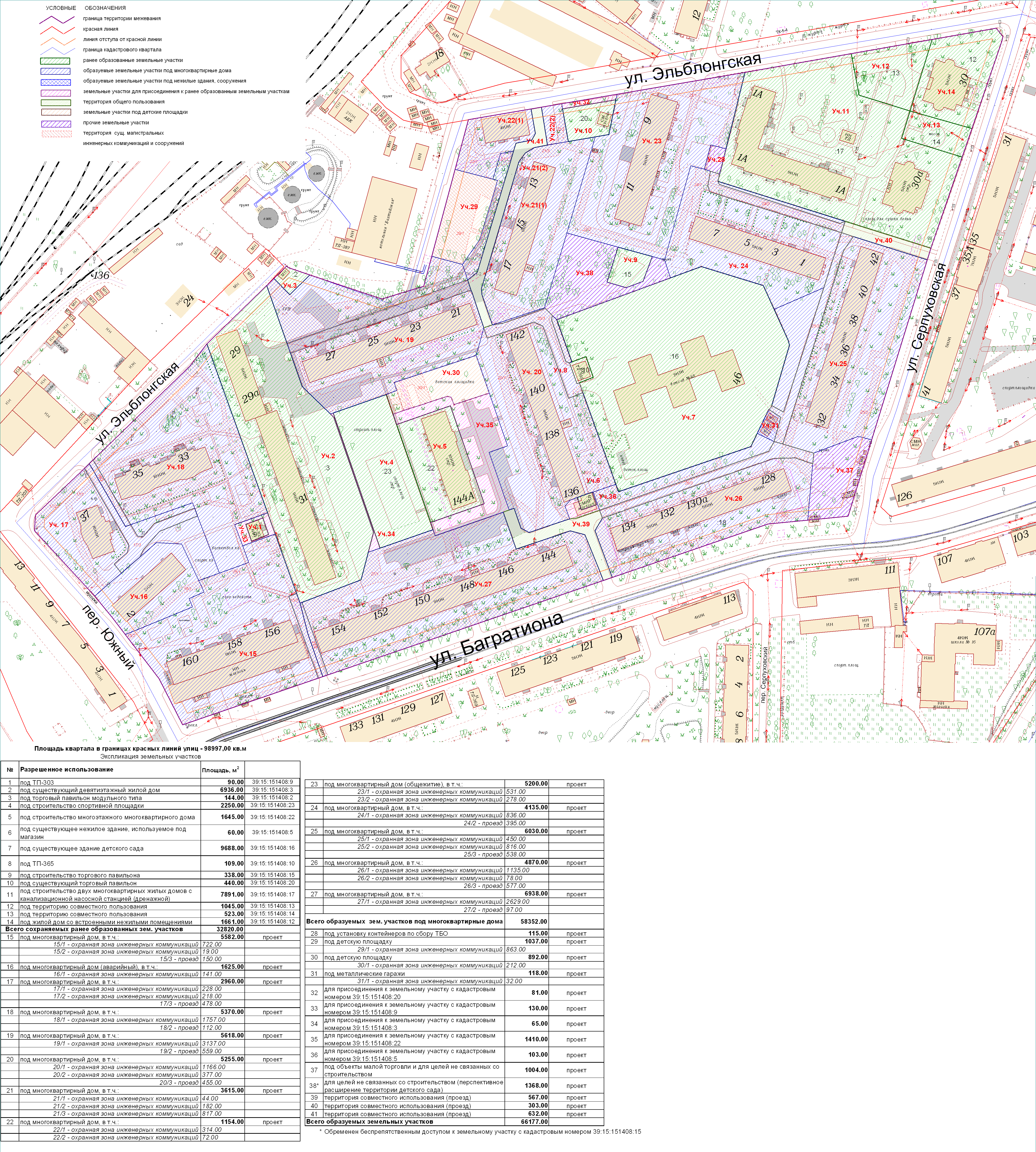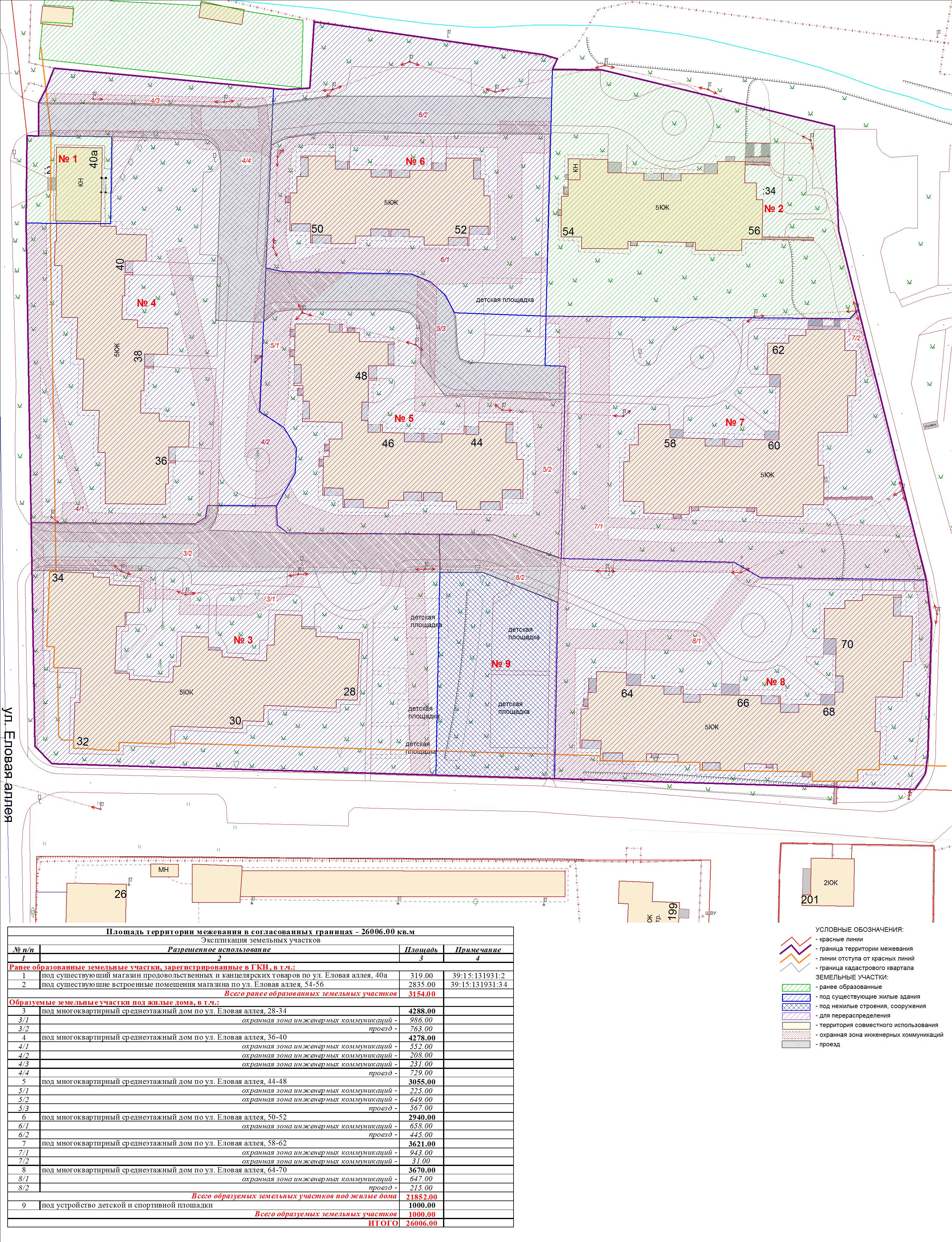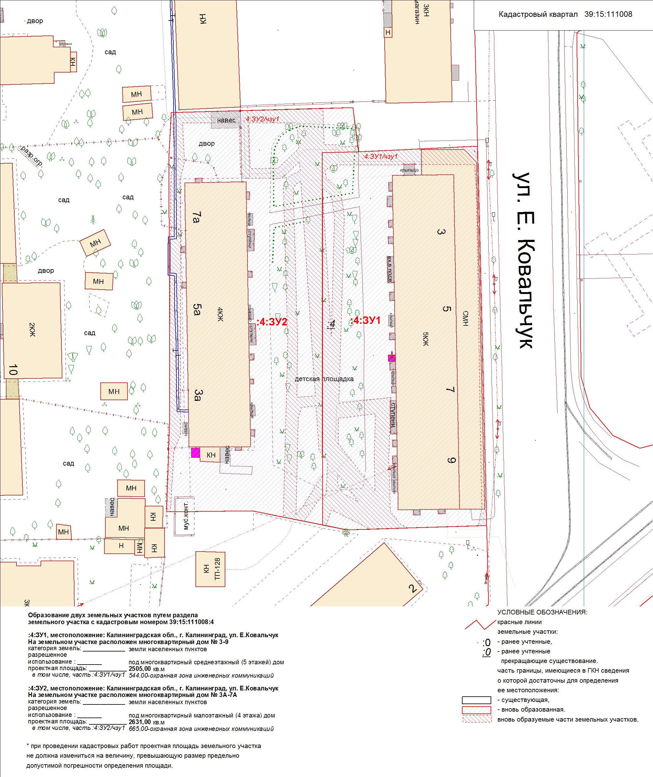 | Проект межевания территории в границах ул. Куйбышева – внутриквартального проезда – южной границы земельного участка с кадастровым номером 39:15:131931:77 по ул. Еловая аллея – пер. Куйбышева Ленинградского района города Калининграда | Оповещение Проект границ | Заключение | ||