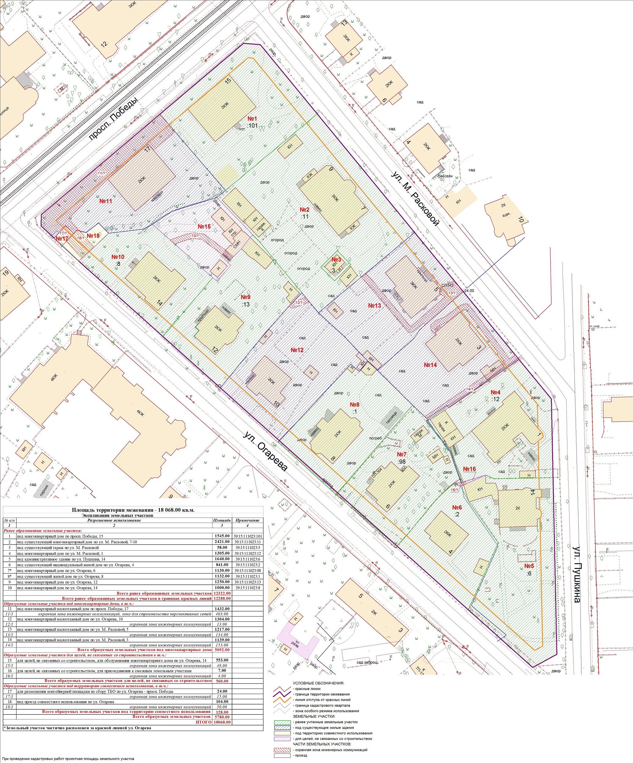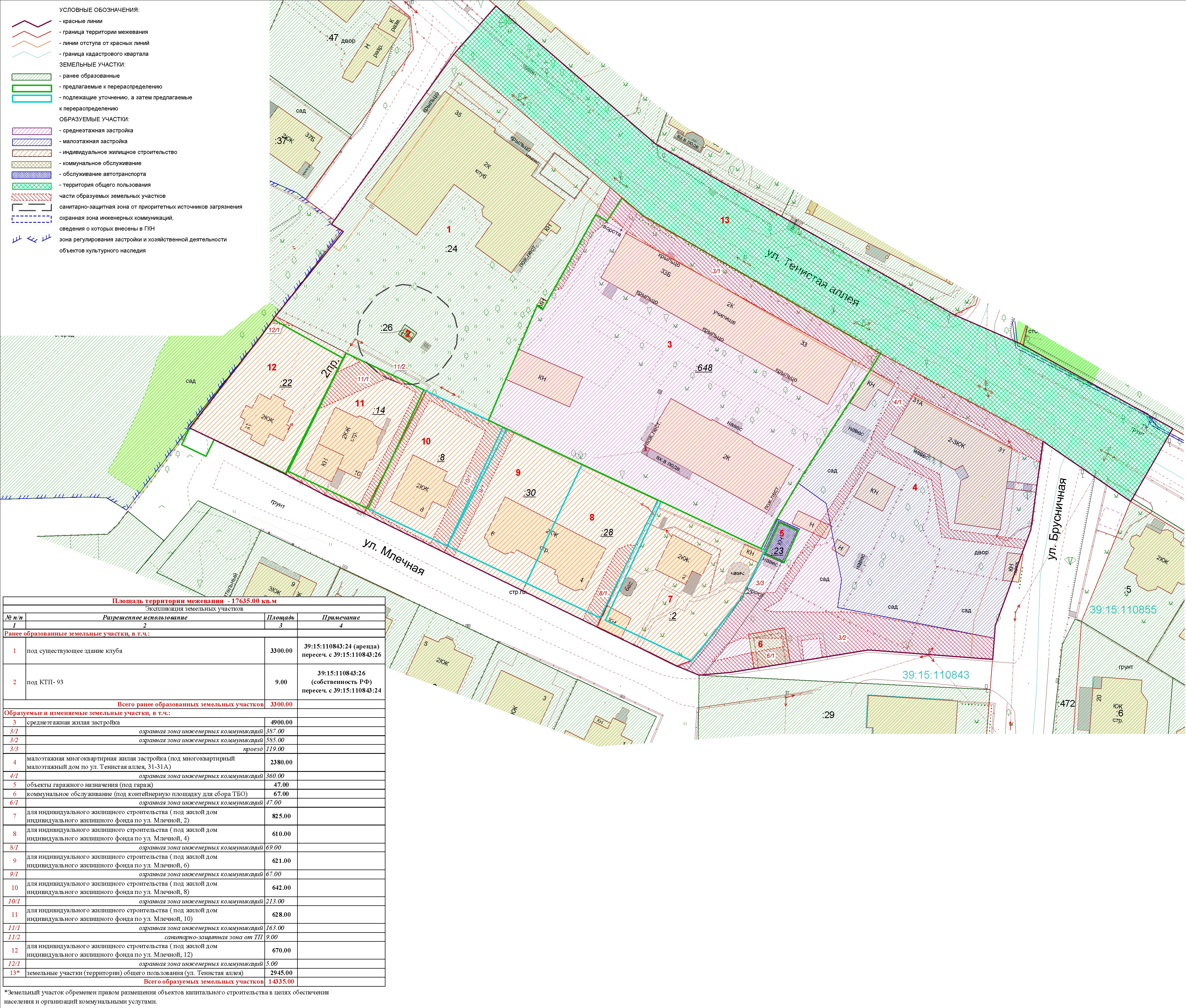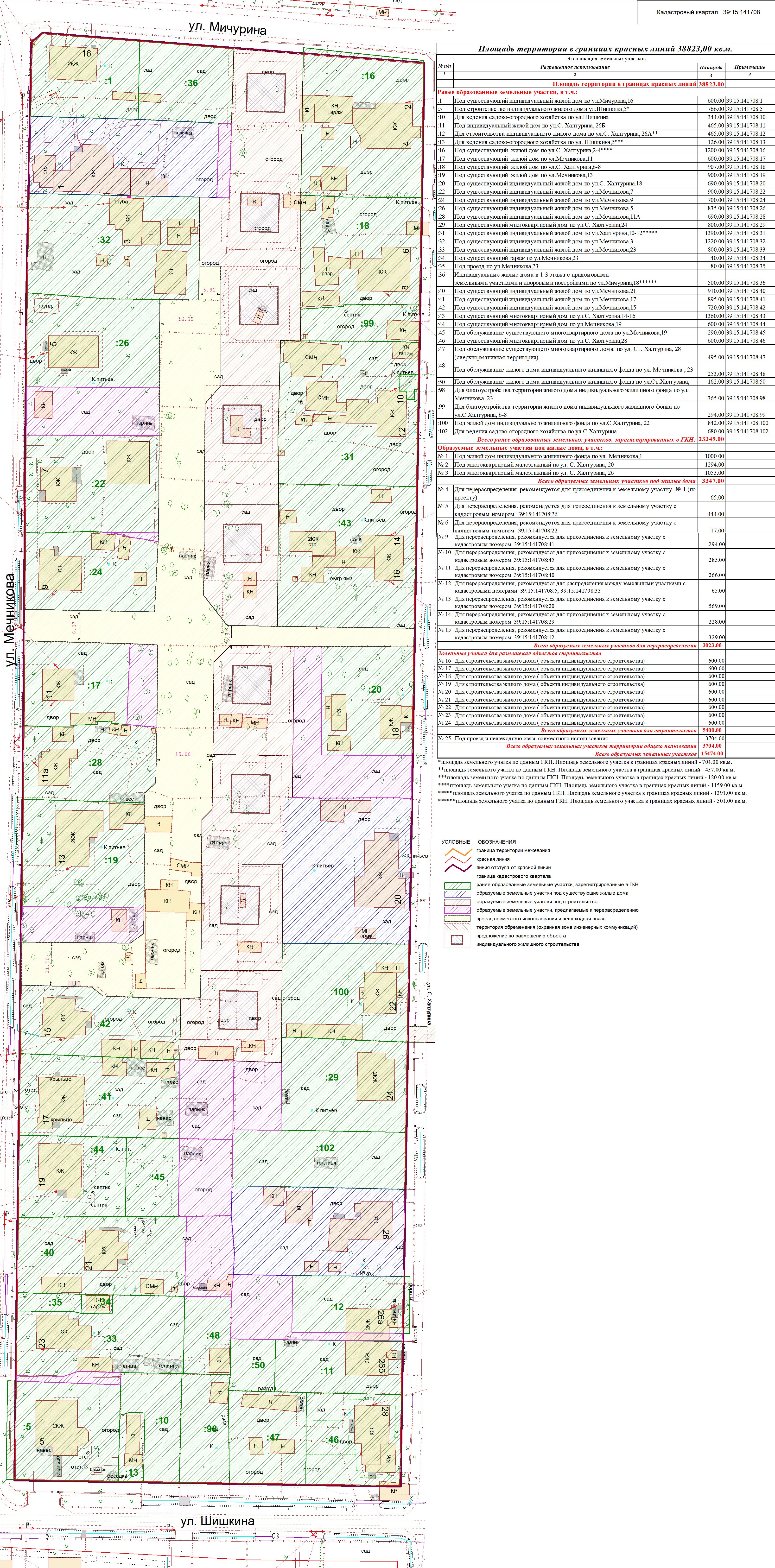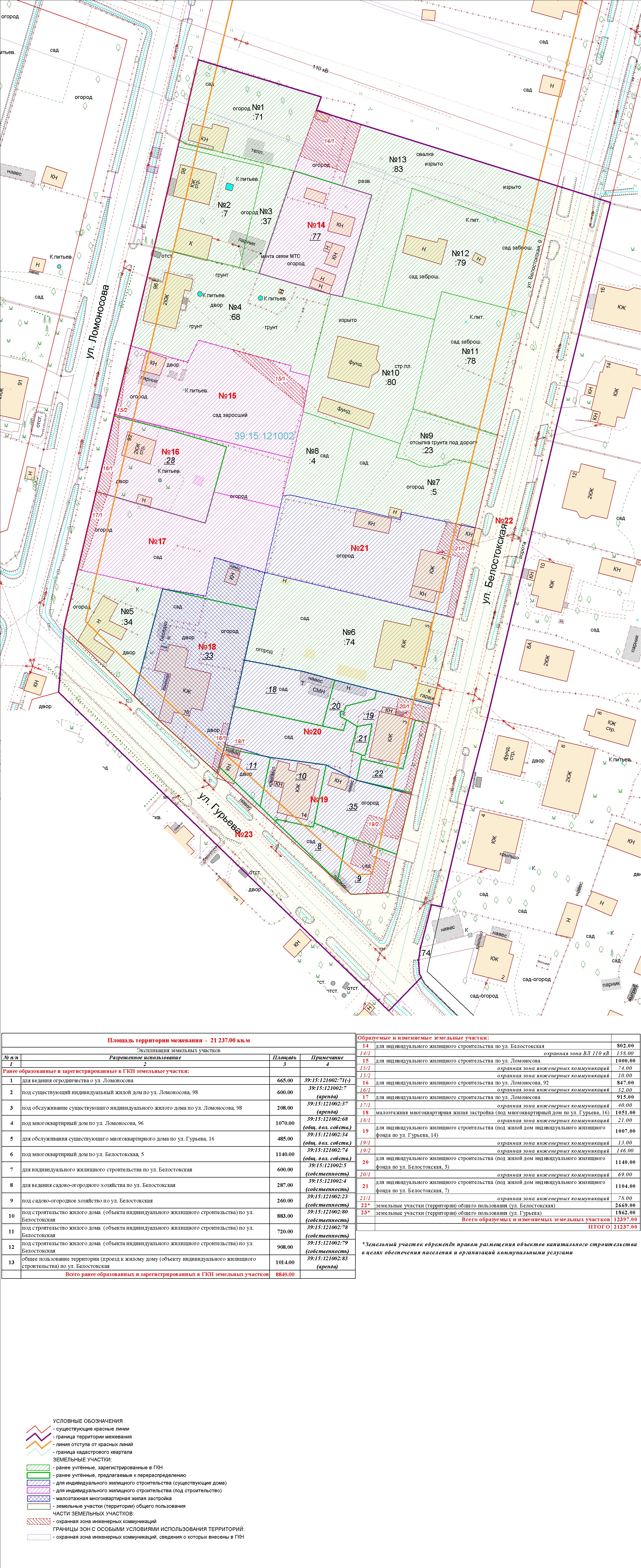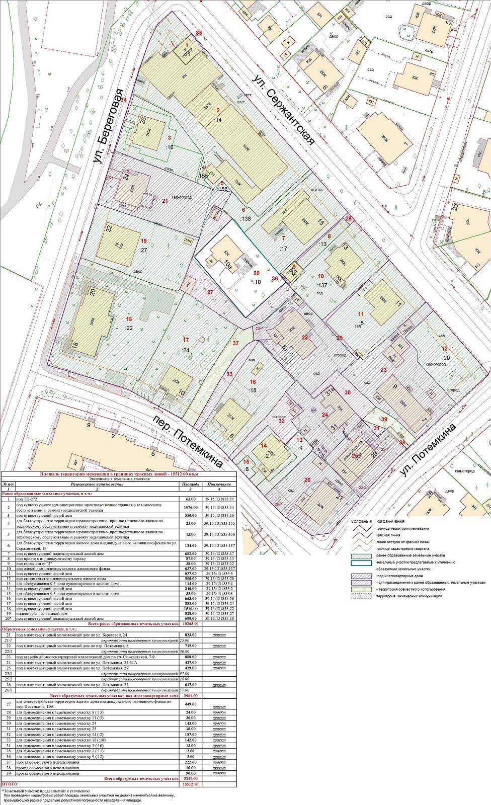 | Проект межевания территории в границах ул. Куйбышева – внутриквартального проезда – южной границы земельного участка с кадастровым номером 39:15:131931:77 по ул. Еловая аллея – пер. Куйбышева Ленинградского района города Калининграда | Оповещение Проект границ | Заключение | ||