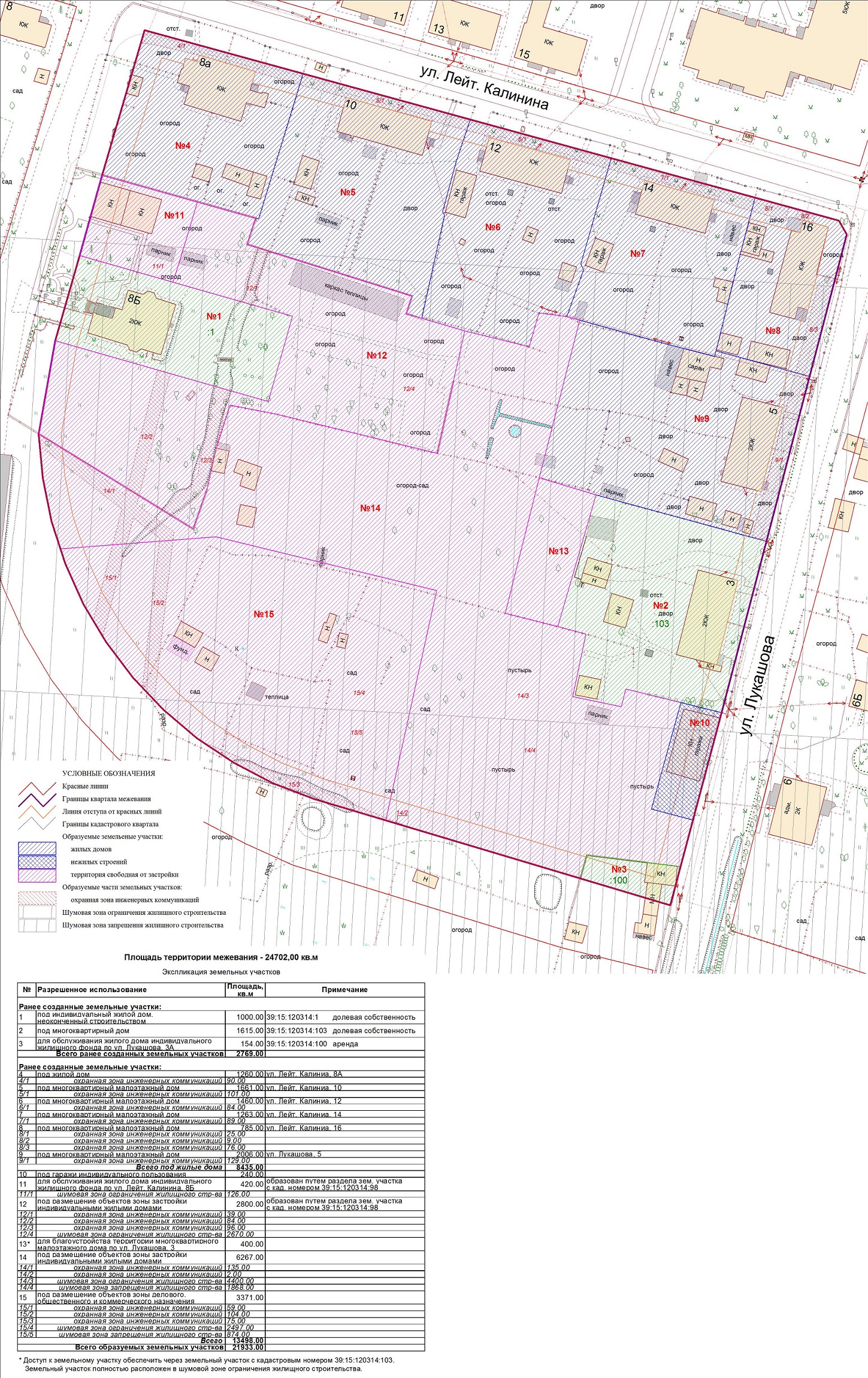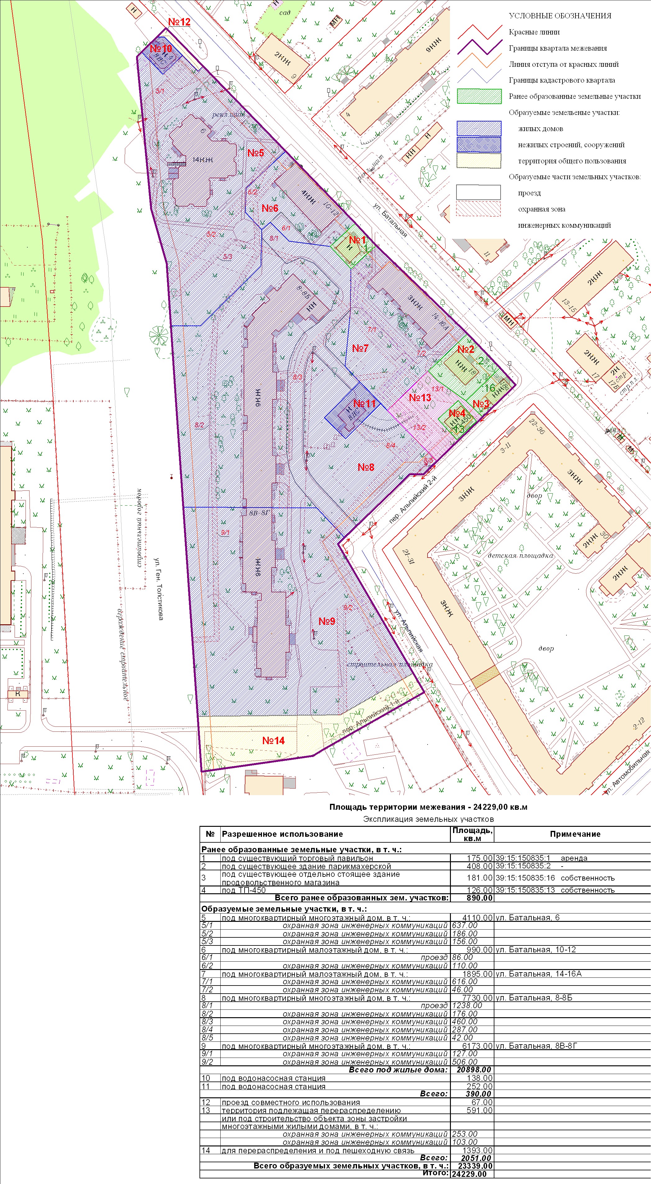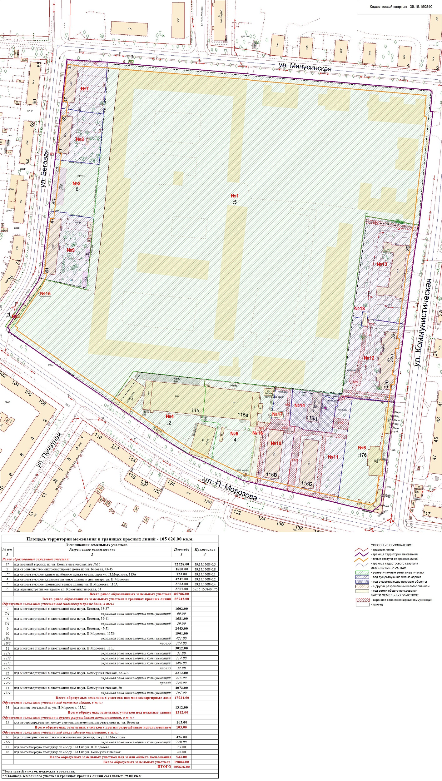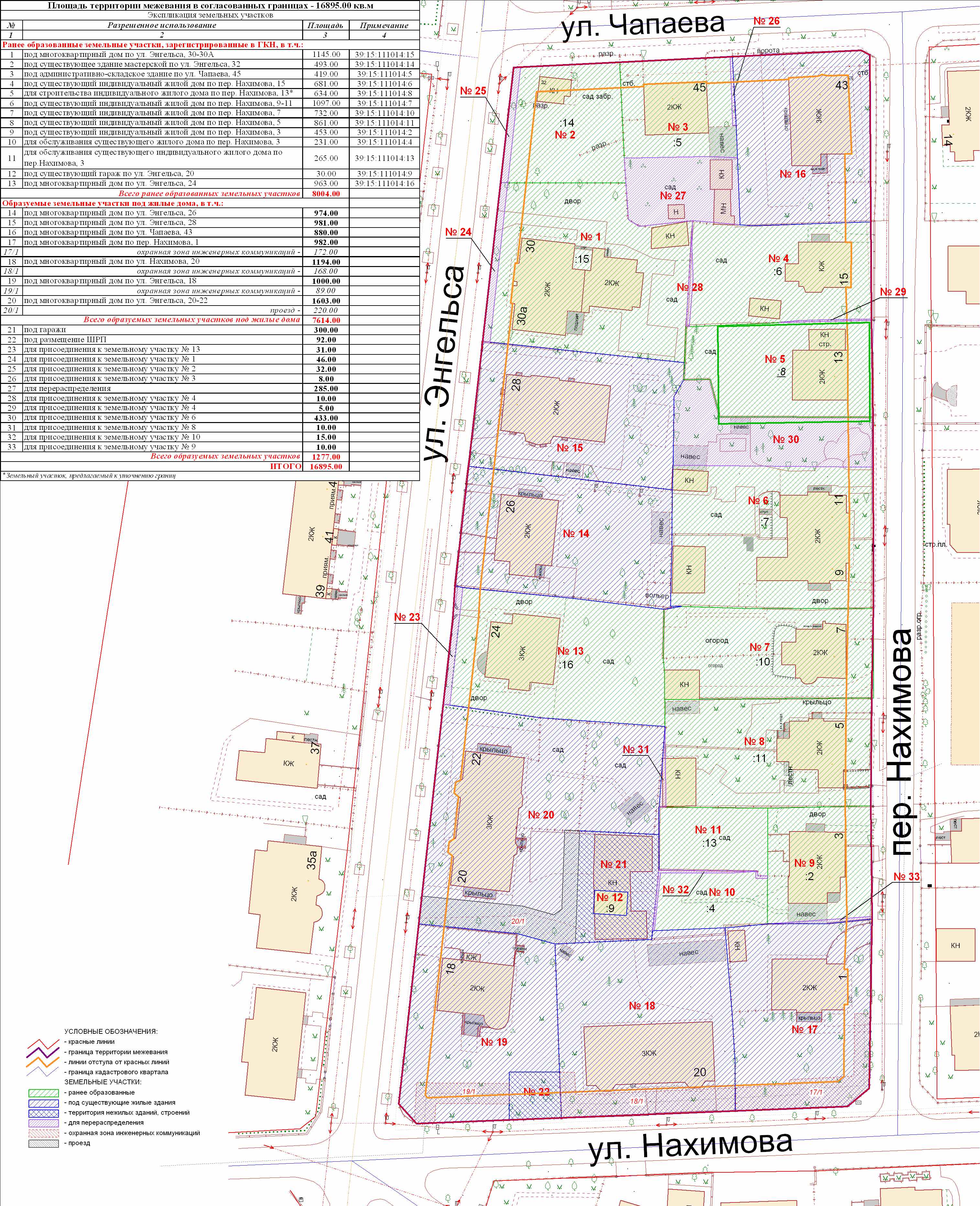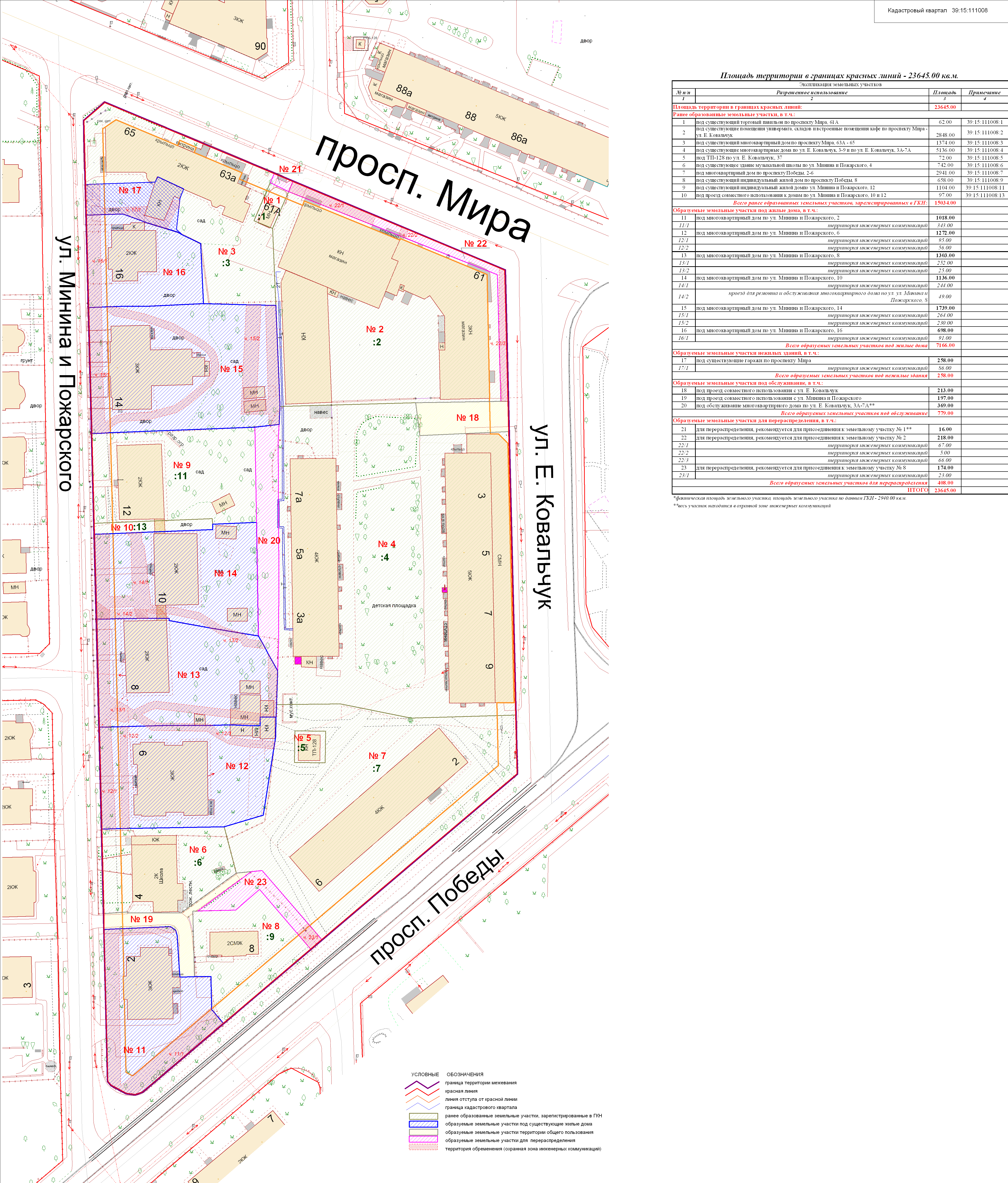 | Проект межевания территории в границах ул. Куйбышева – внутриквартального проезда – южной границы земельного участка с кадастровым номером 39:15:131931:77 по ул. Еловая аллея – пер. Куйбышева Ленинградского района города Калининграда | Оповещение Проект границ | Заключение | ||