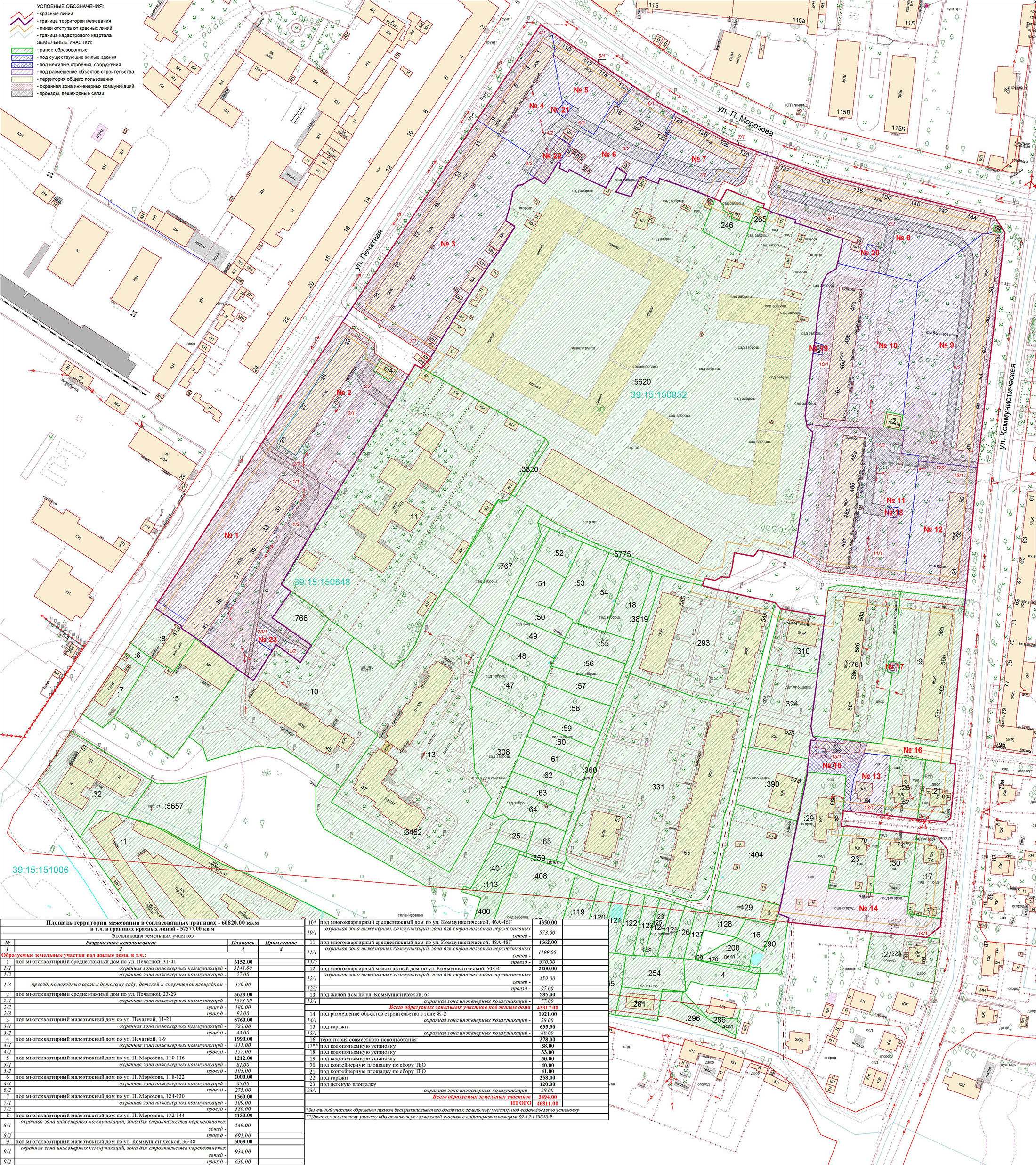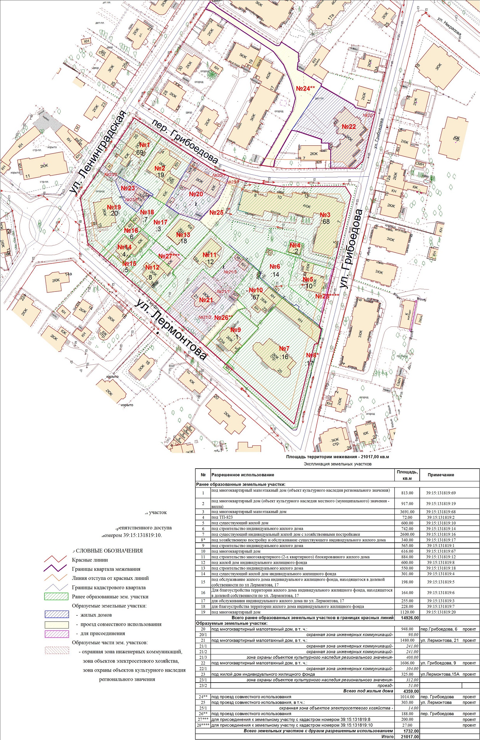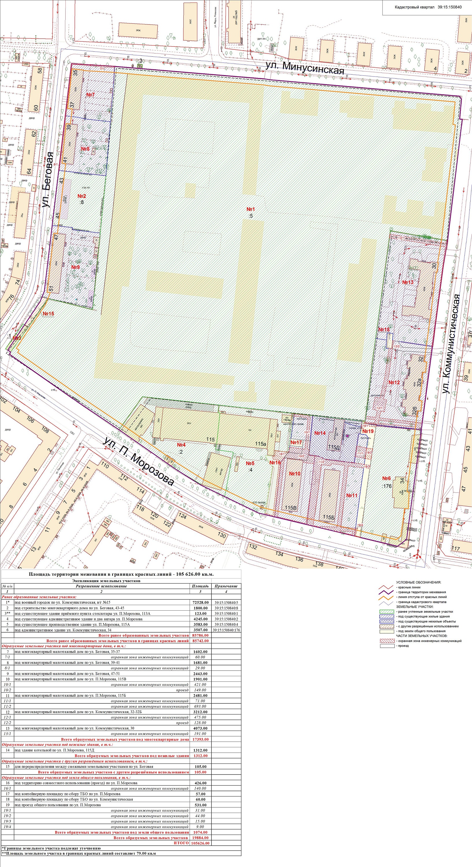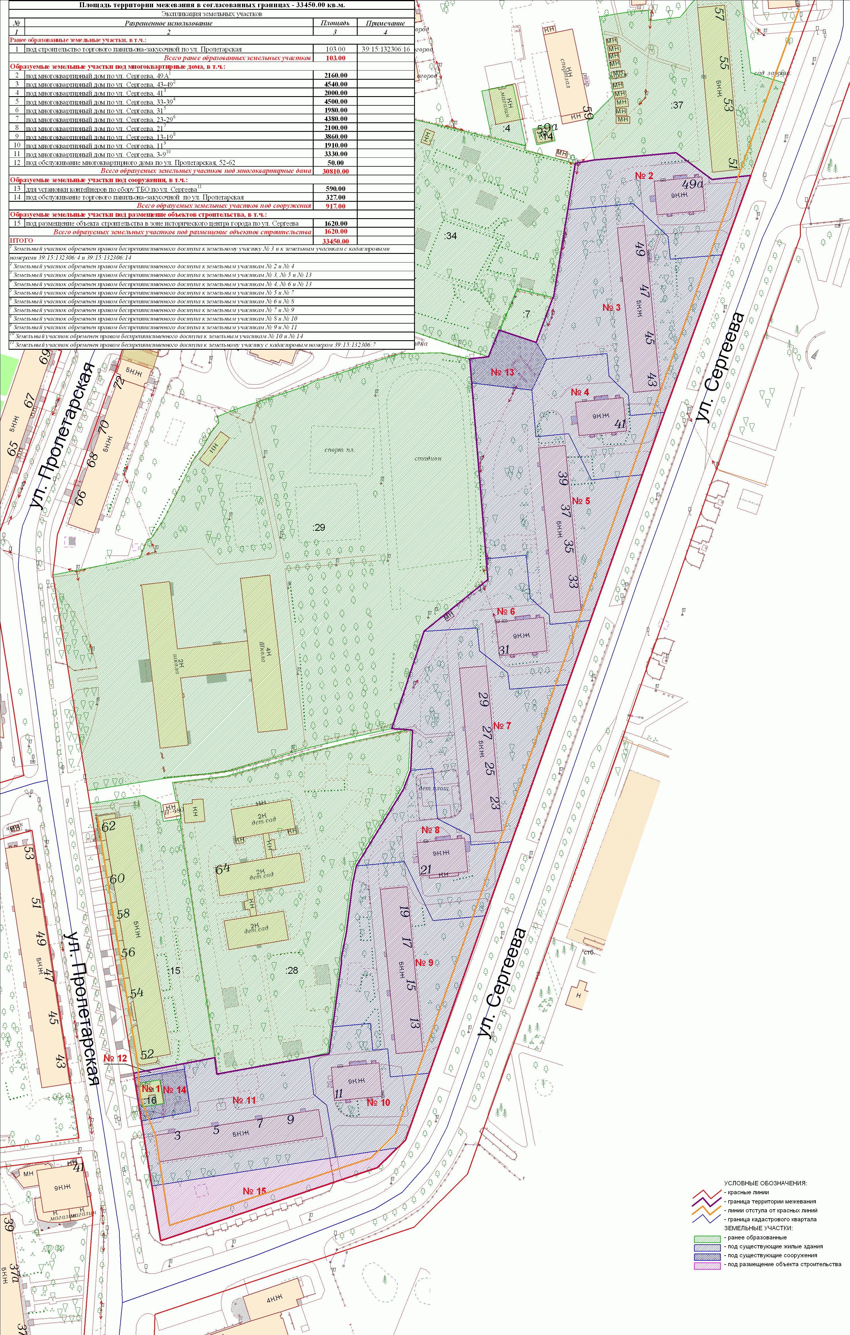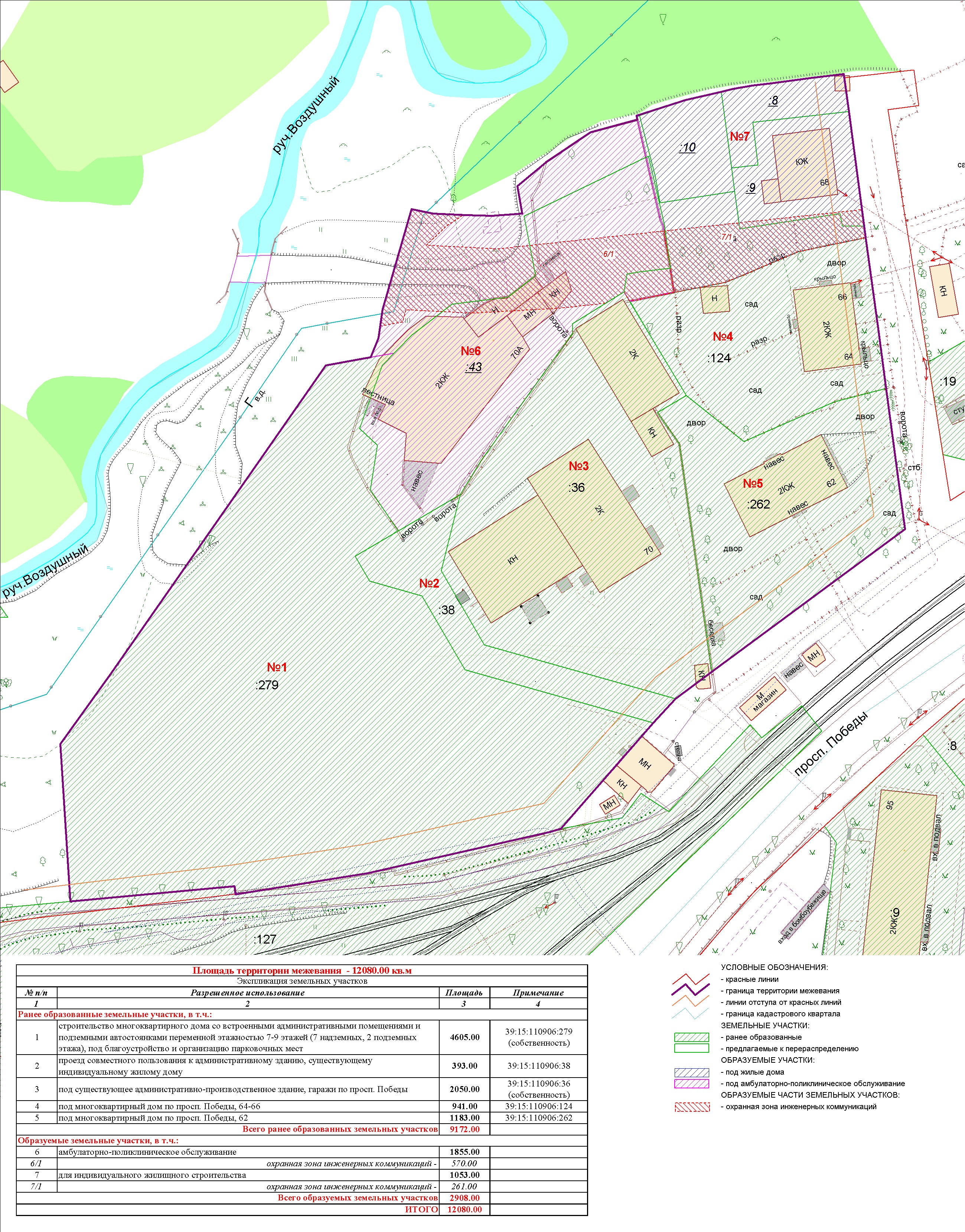 | Проект межевания территории в границах ул. Куйбышева – внутриквартального проезда – южной границы земельного участка с кадастровым номером 39:15:131931:77 по ул. Еловая аллея – пер. Куйбышева Ленинградского района города Калининграда | Оповещение Проект границ | Заключение | ||