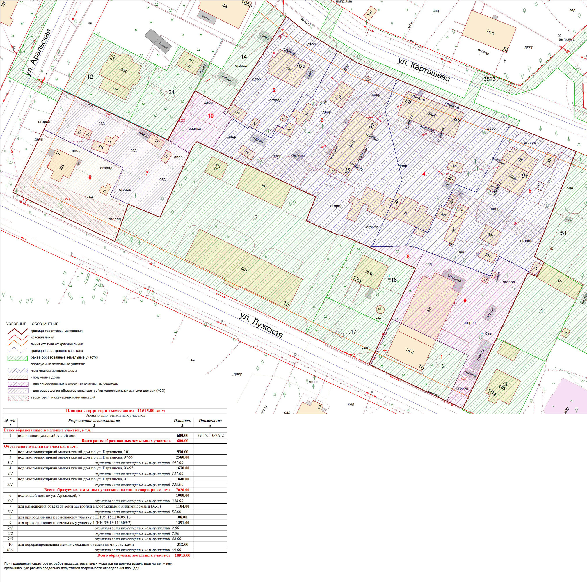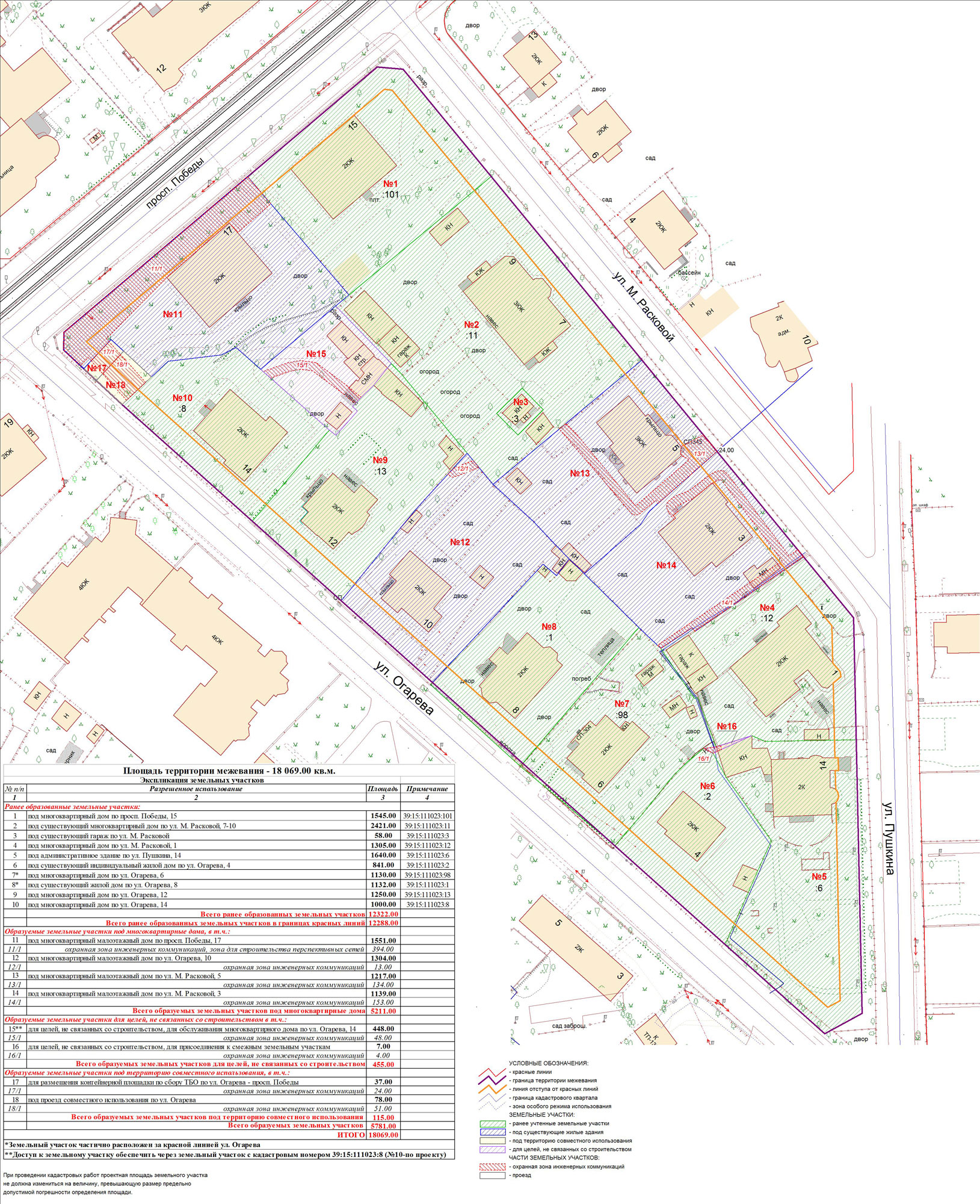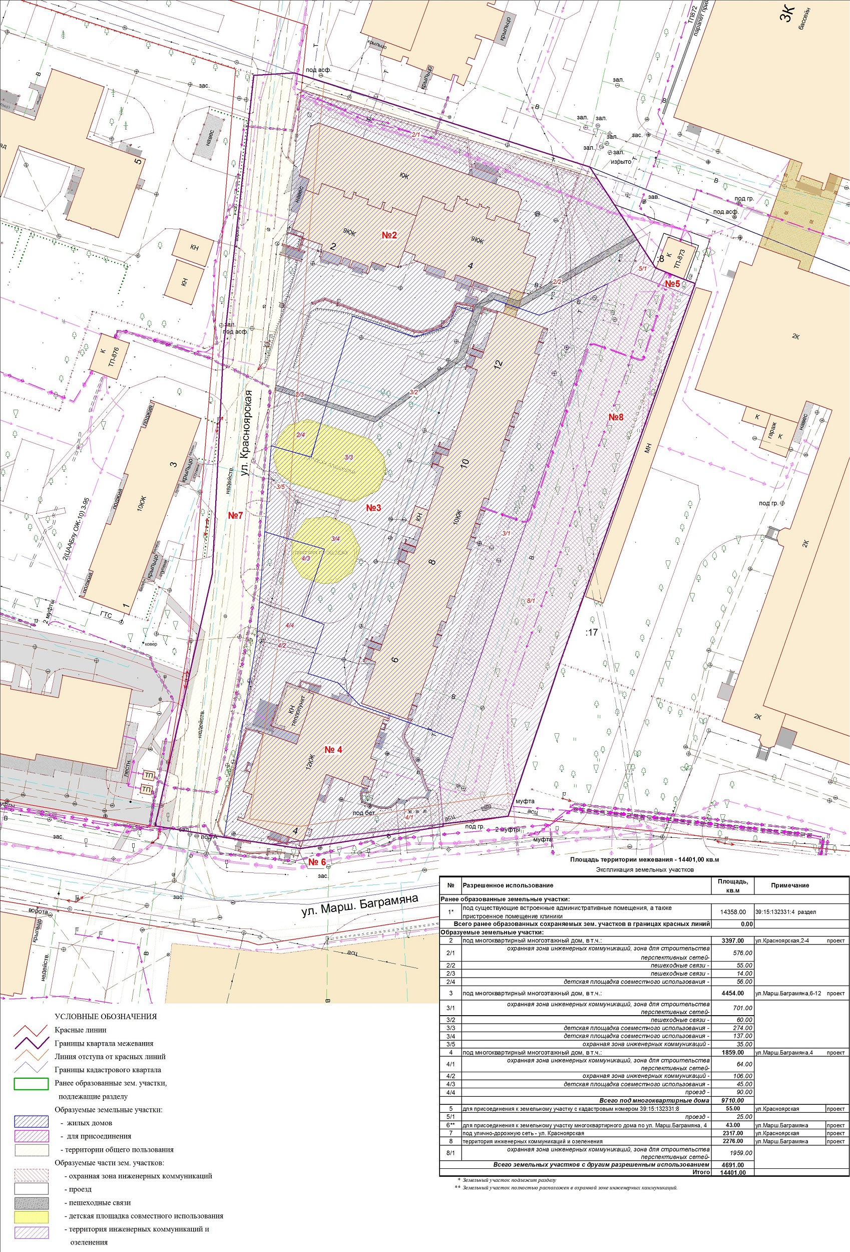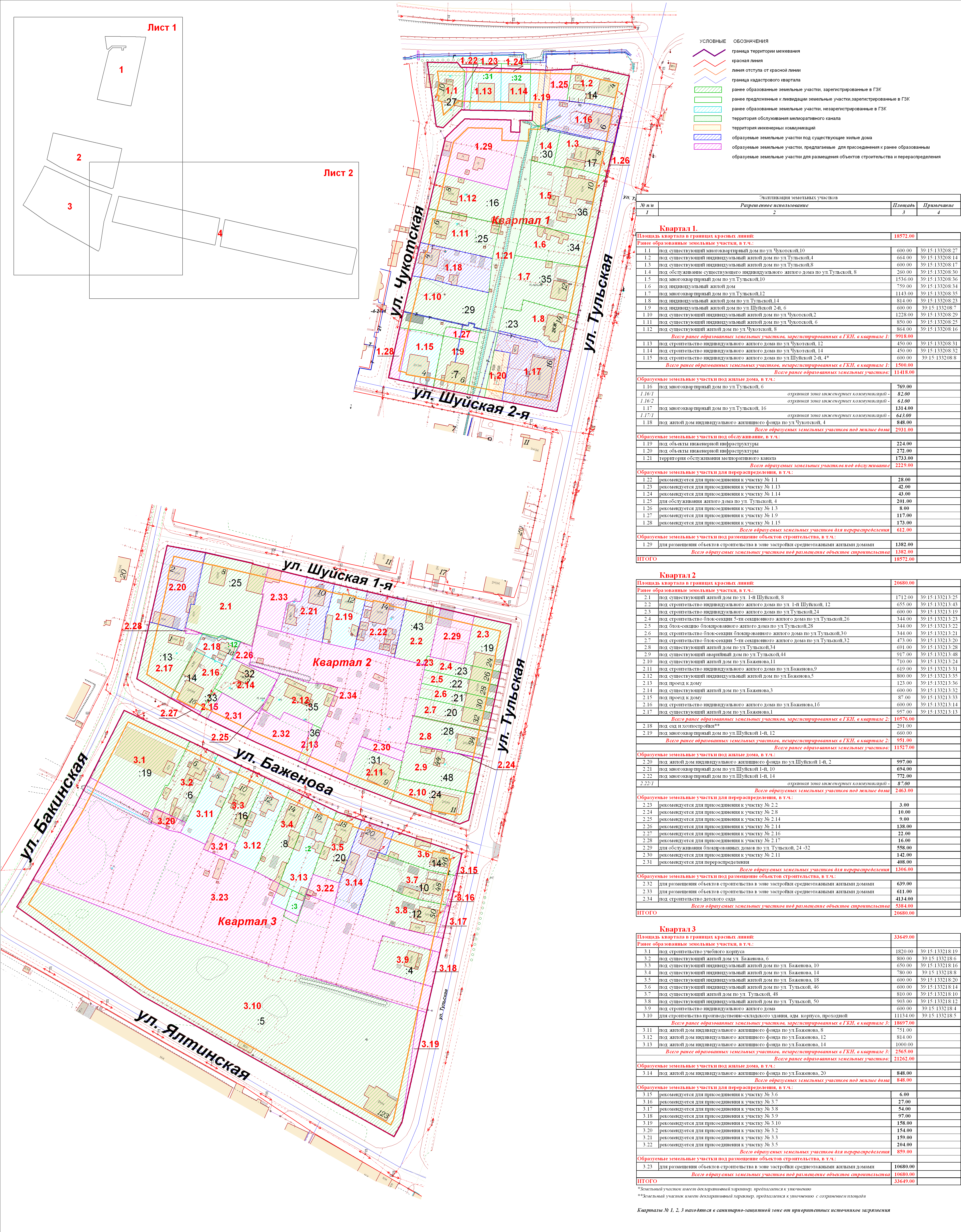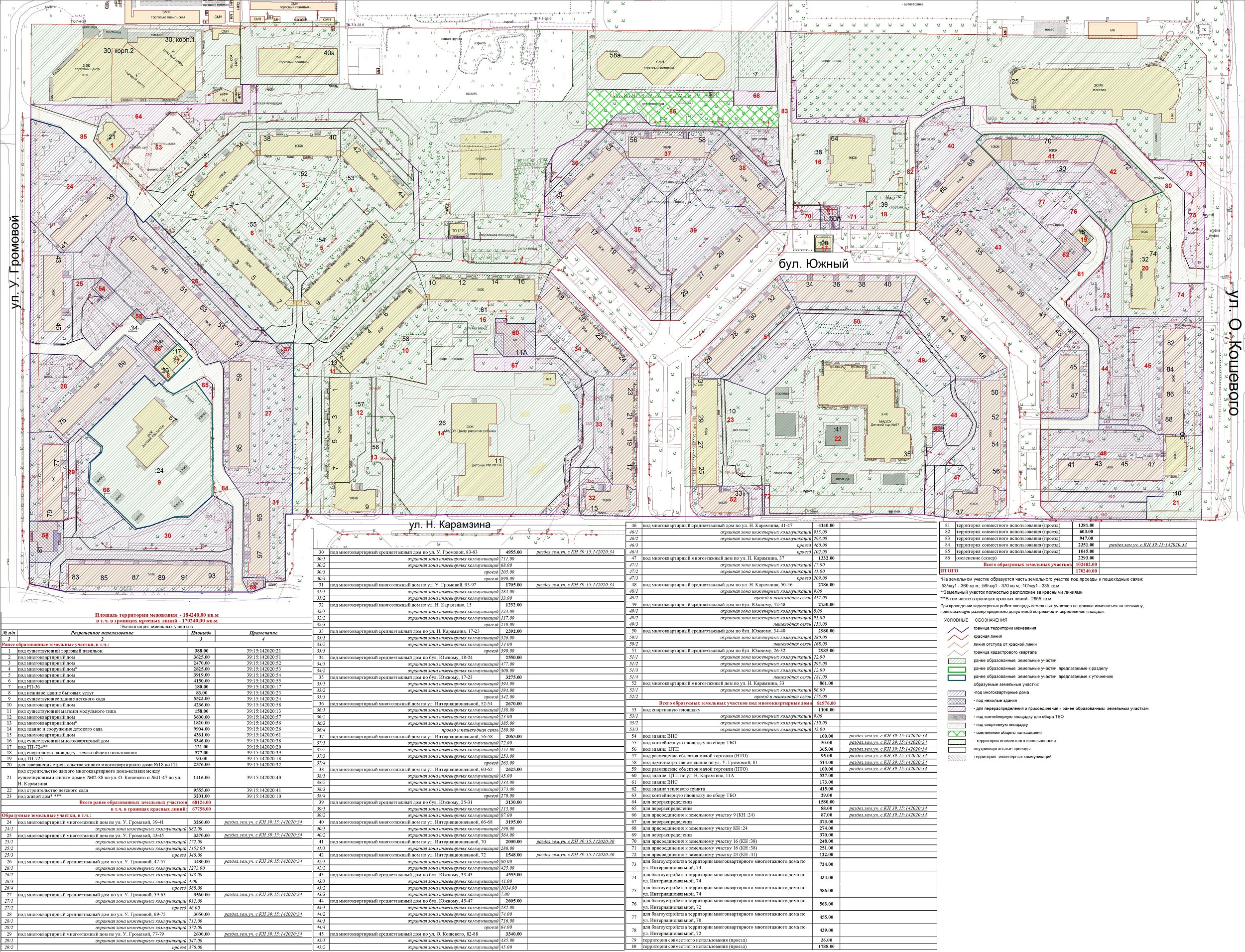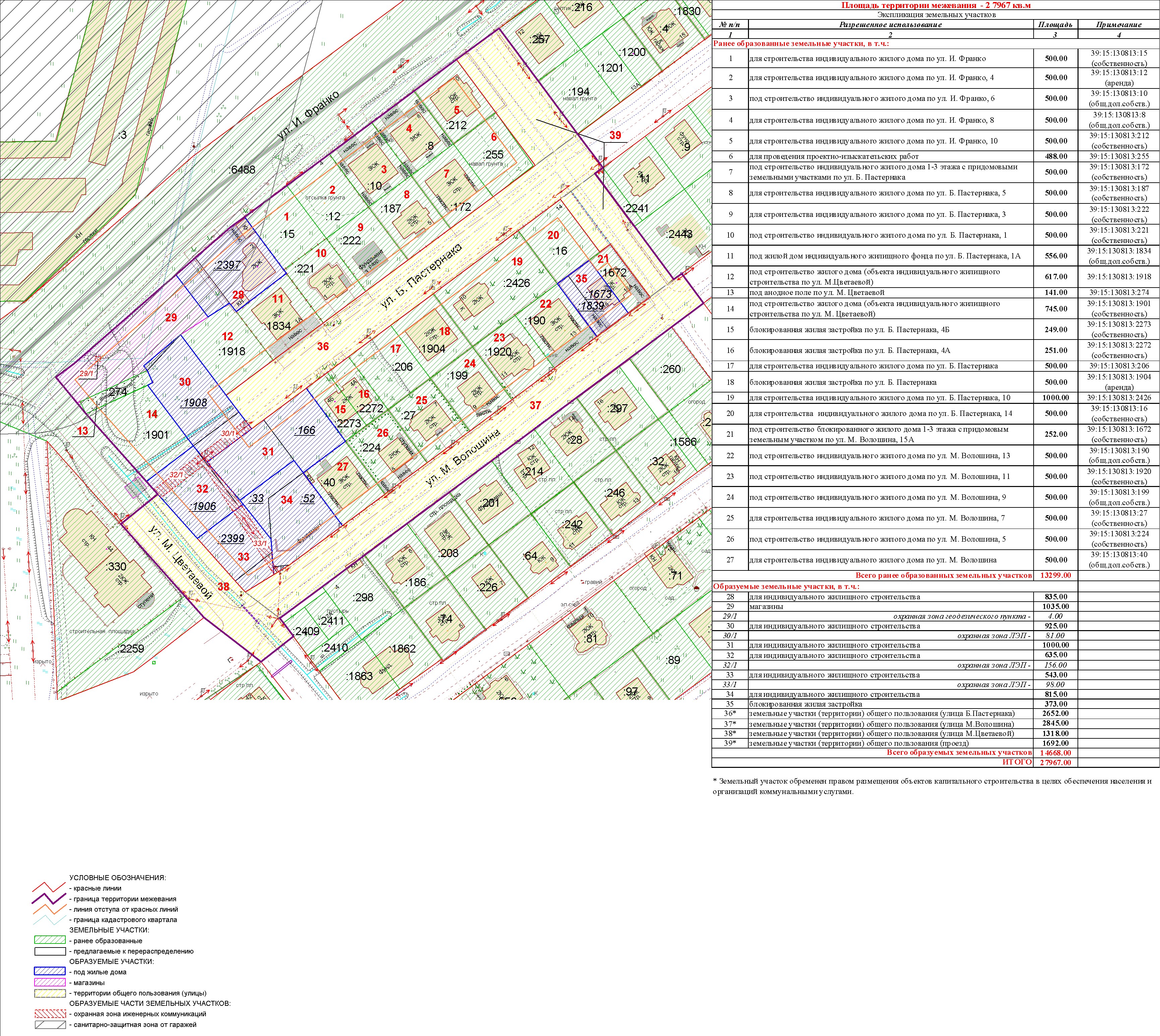 | Проект межевания территории в границах ул. Куйбышева – внутриквартального проезда – южной границы земельного участка с кадастровым номером 39:15:131931:77 по ул. Еловая аллея – пер. Куйбышева Ленинградского района города Калининграда | Оповещение Проект границ | Заключение | ||