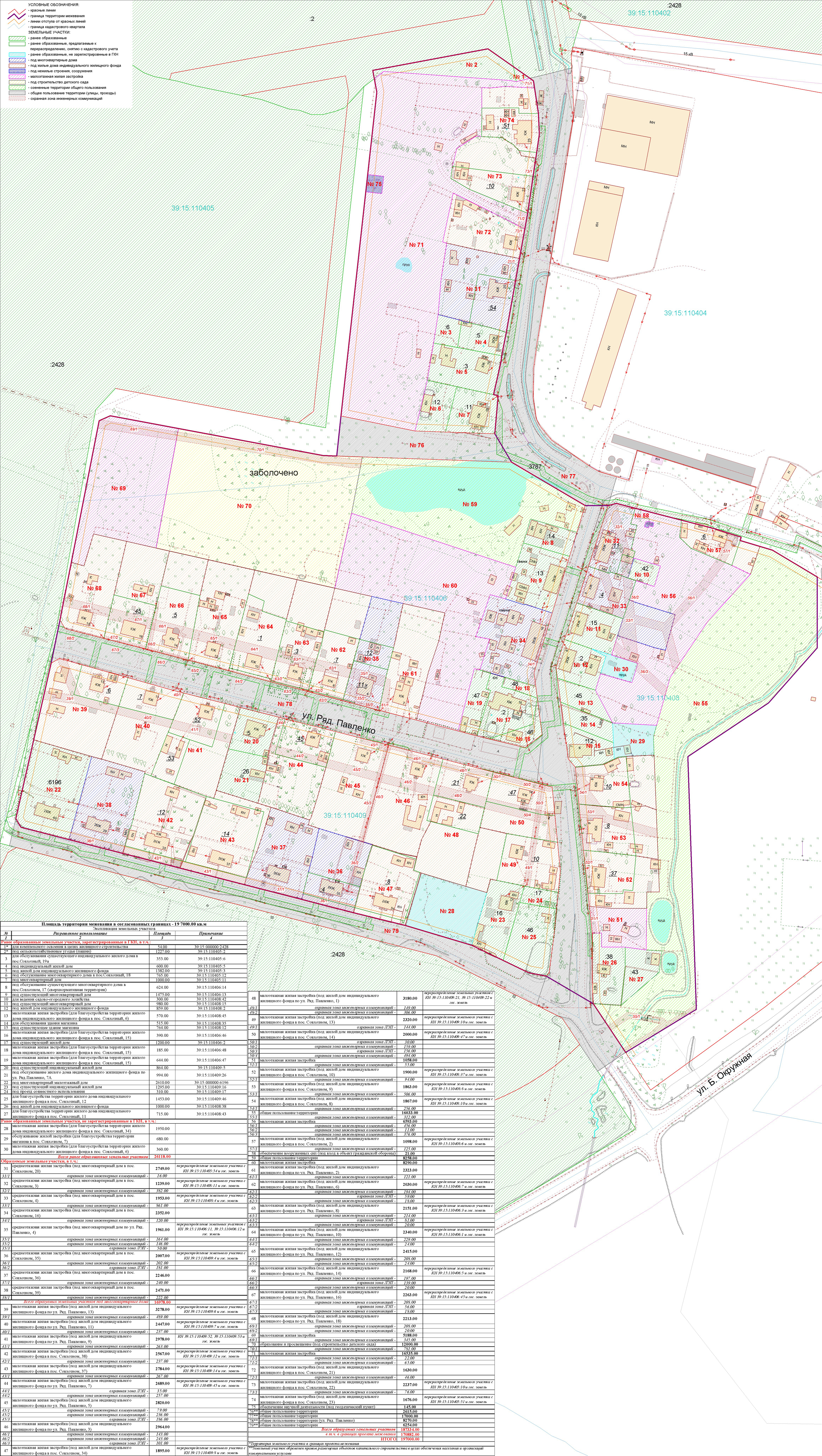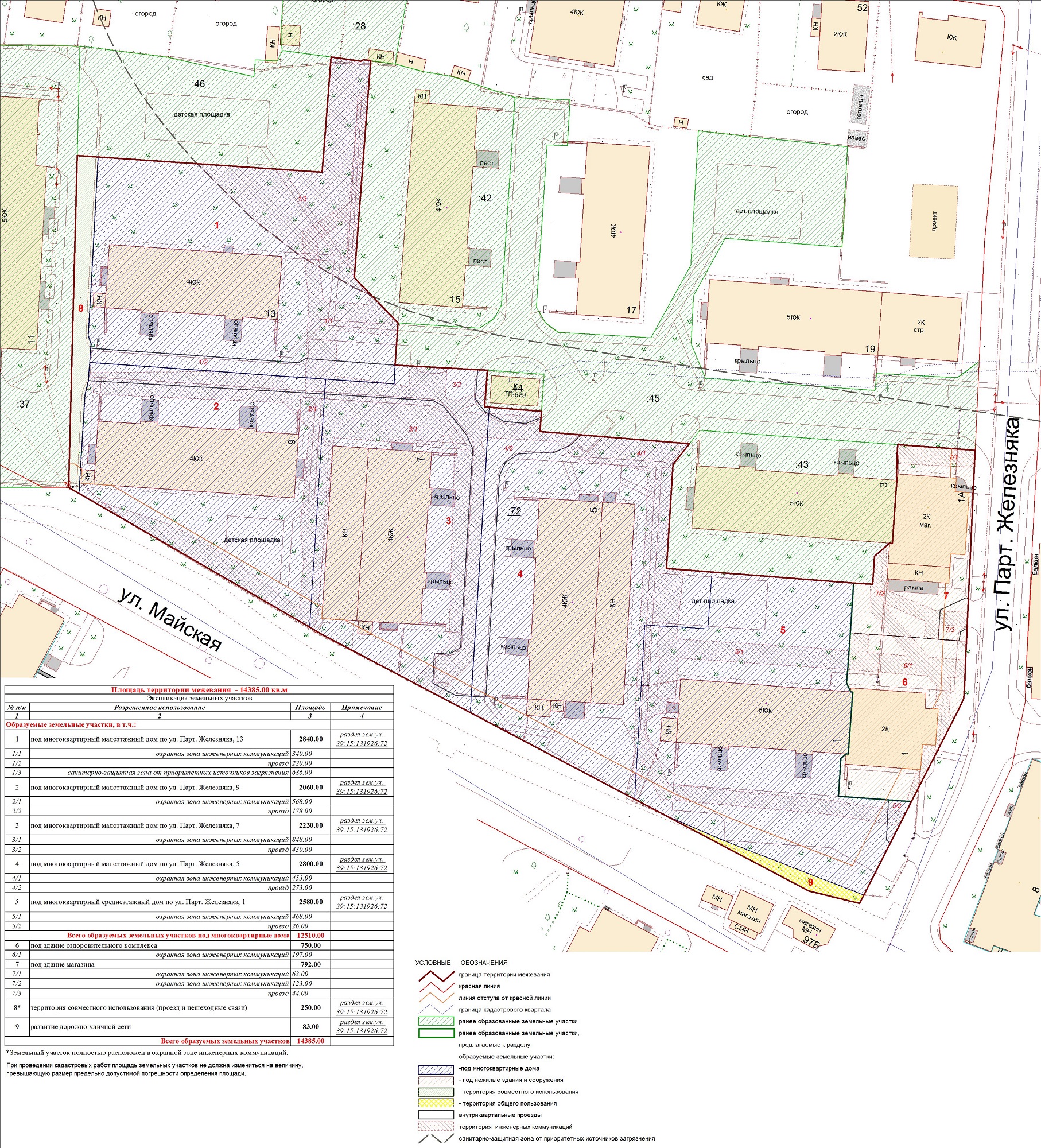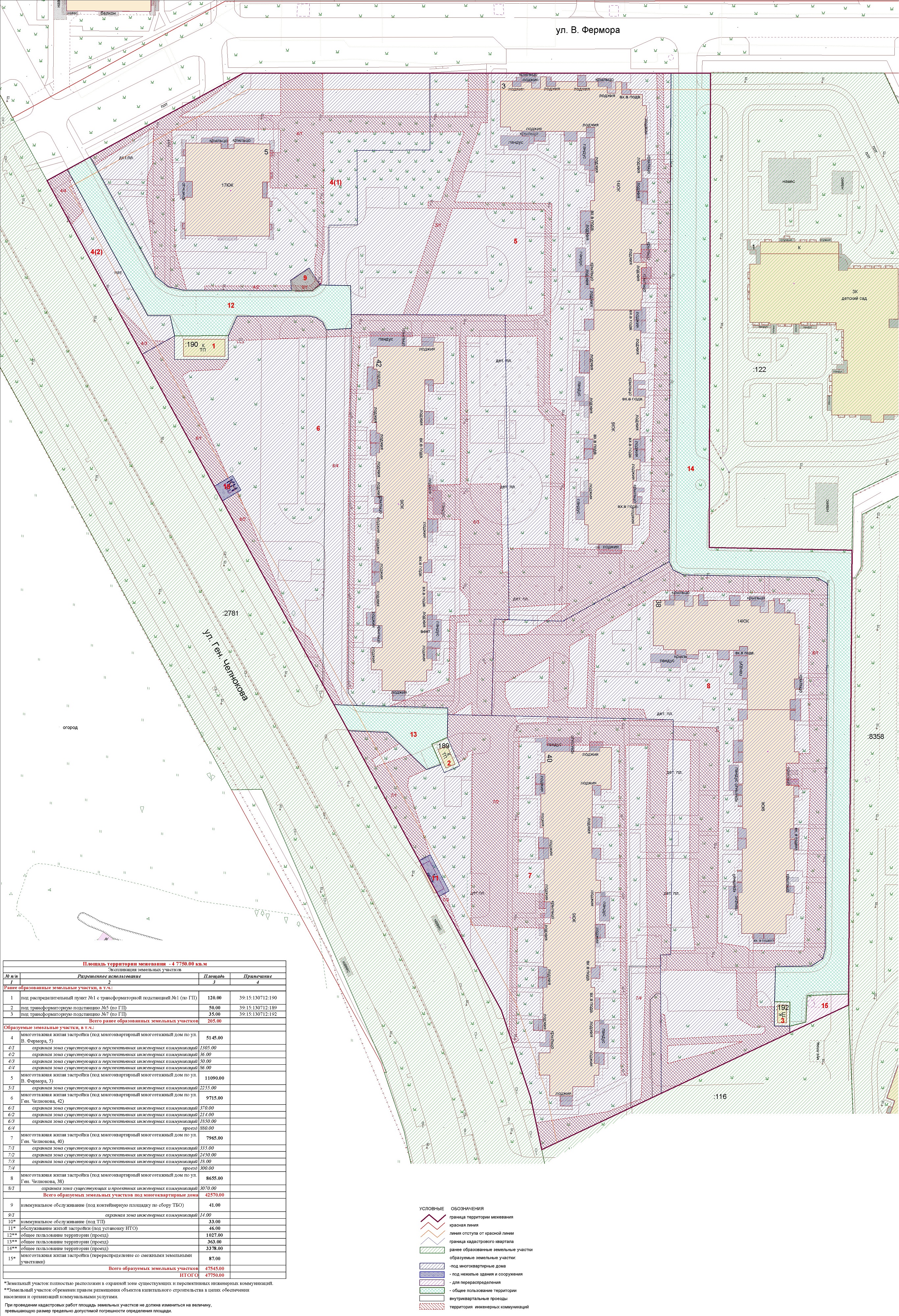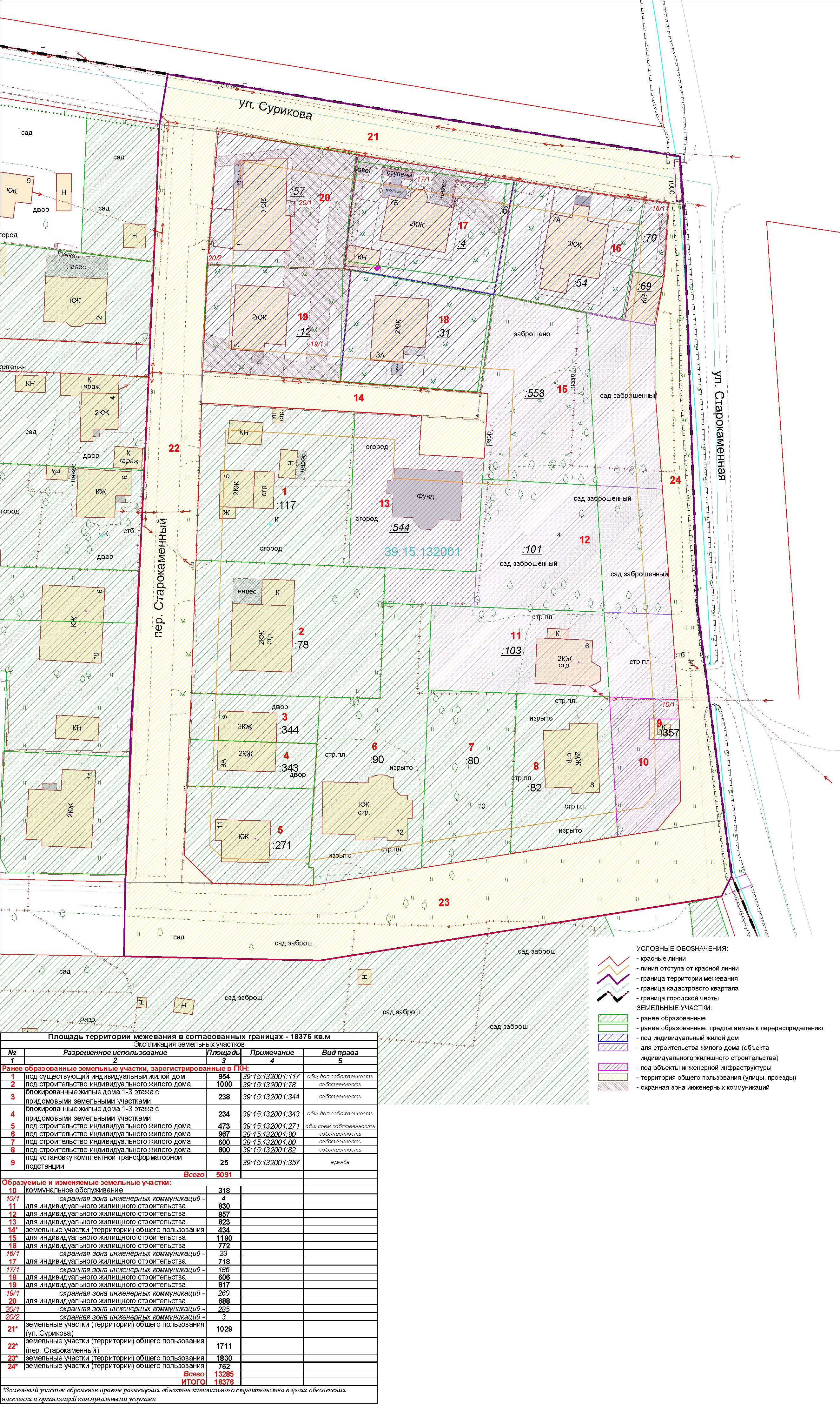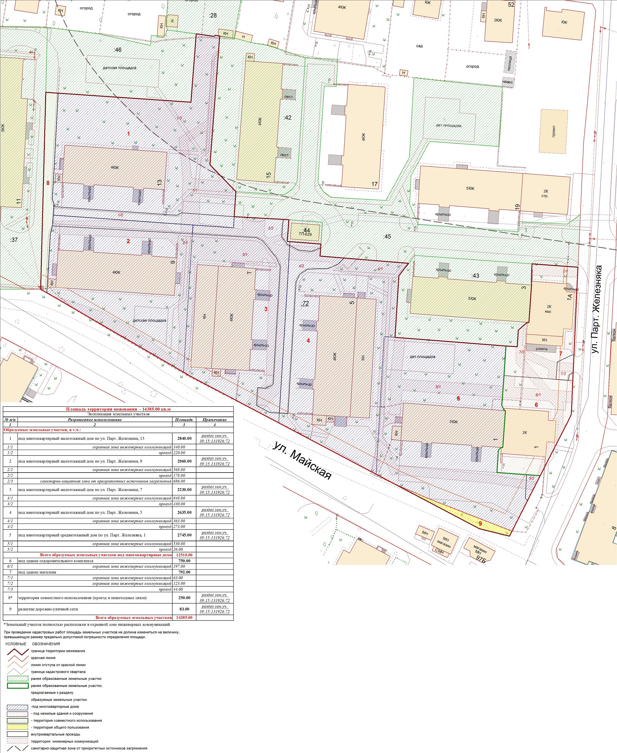 | Проект межевания территории в границах ул. Куйбышева – внутриквартального проезда – южной границы земельного участка с кадастровым номером 39:15:131931:77 по ул. Еловая аллея – пер. Куйбышева Ленинградского района города Калининграда | Оповещение Проект границ | Заключение | ||