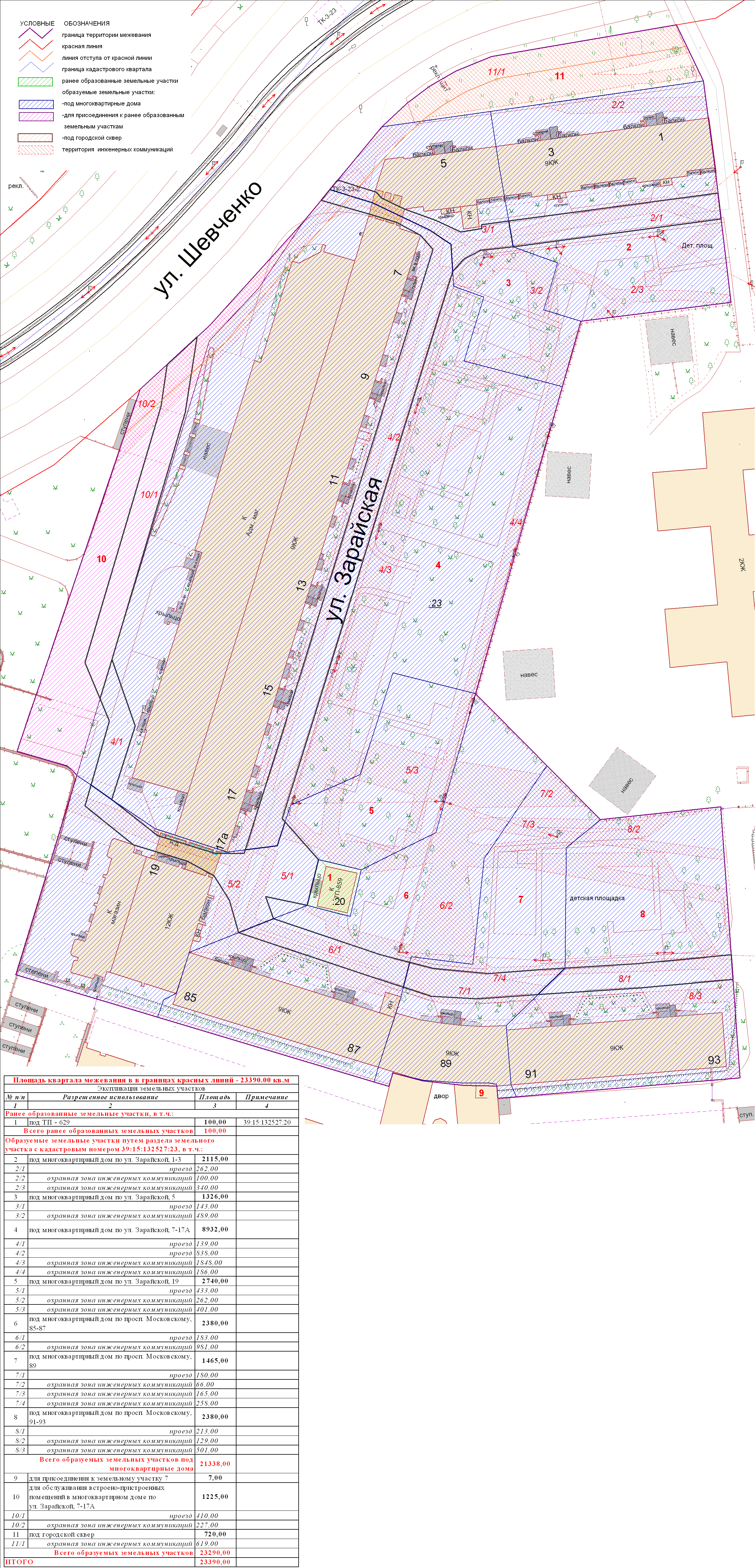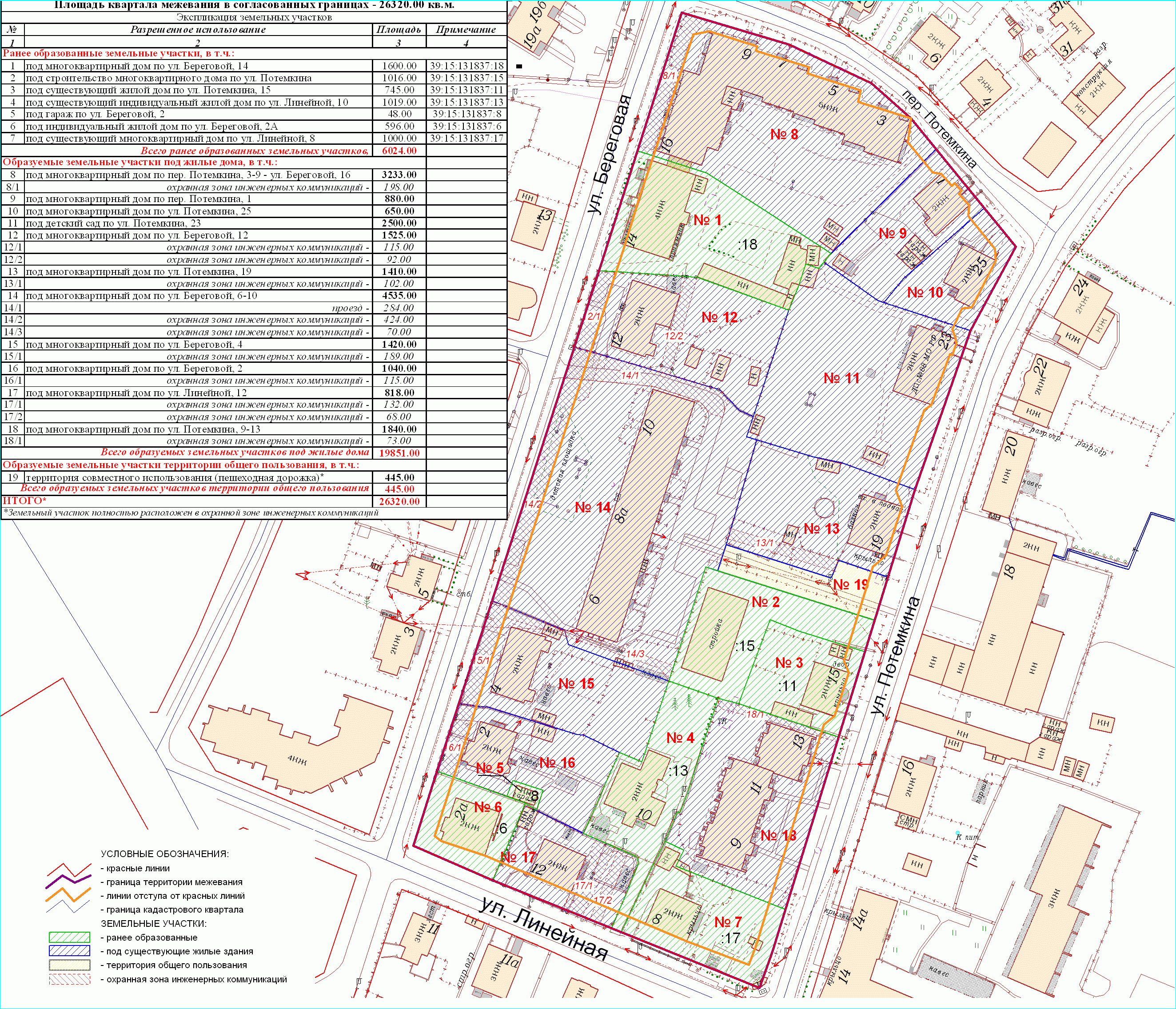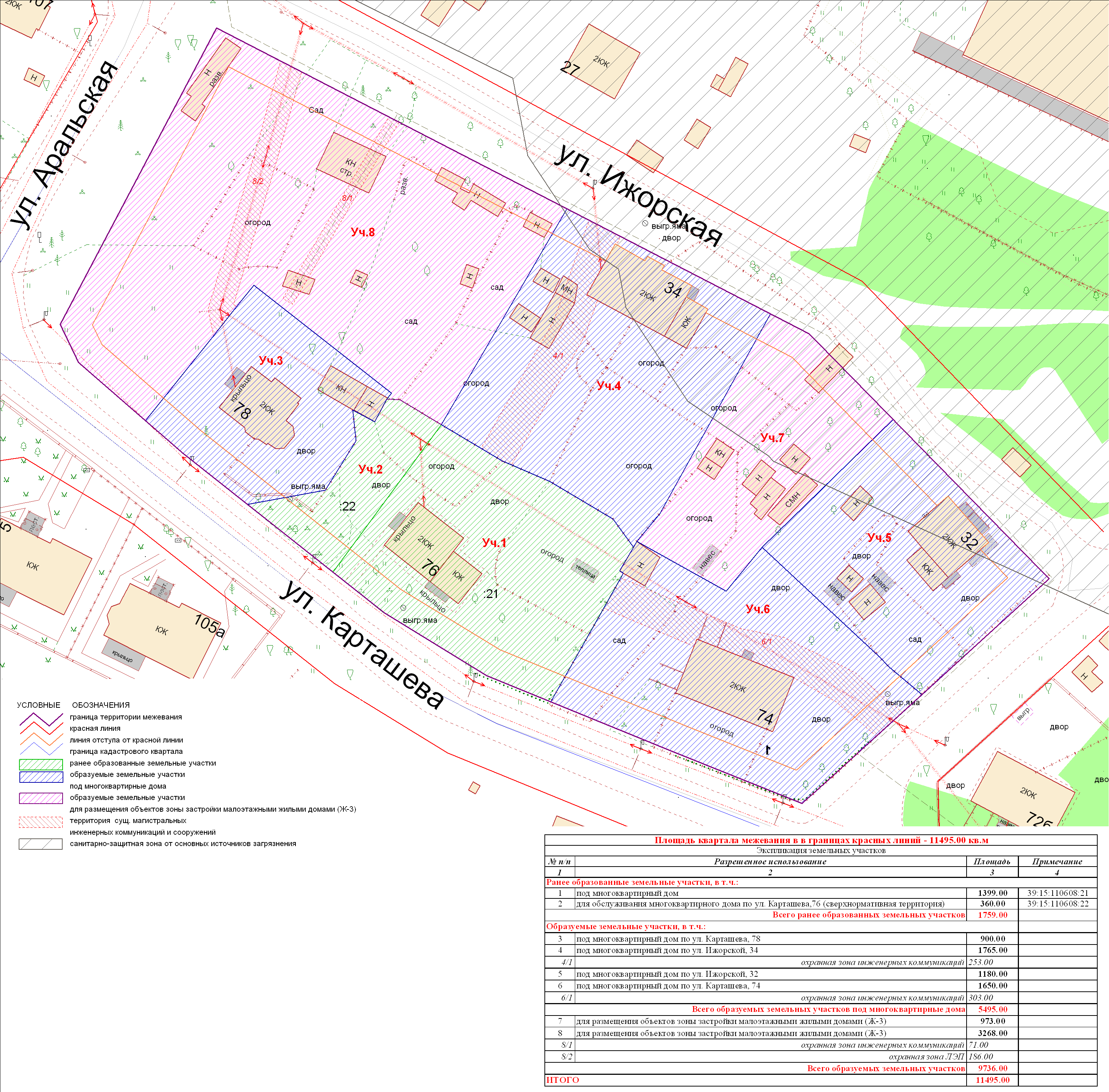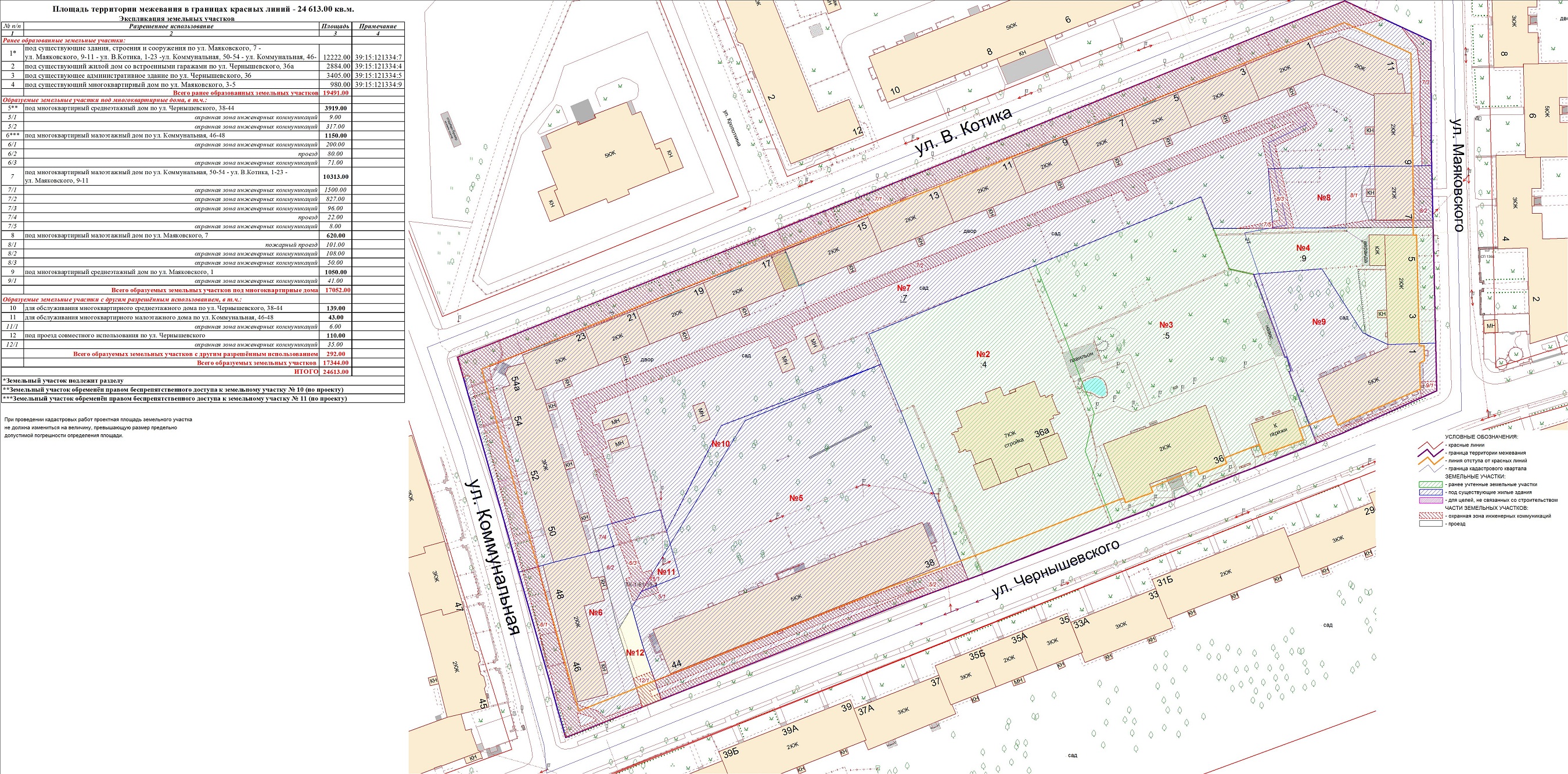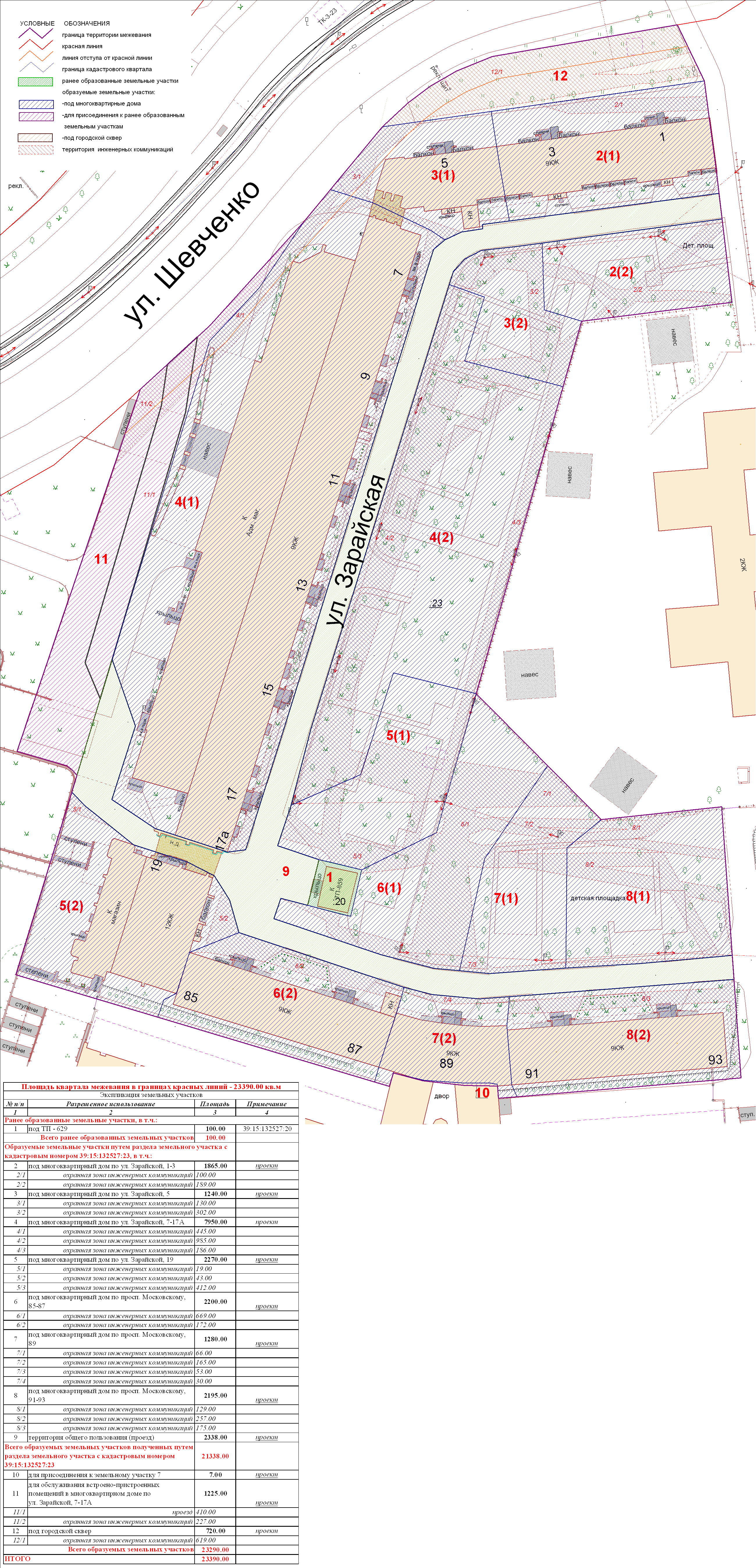 | Проект межевания территории в границах ул. Куйбышева – внутриквартального проезда – южной границы земельного участка с кадастровым номером 39:15:131931:77 по ул. Еловая аллея – пер. Куйбышева Ленинградского района города Калининграда | Оповещение Проект границ | Заключение | ||