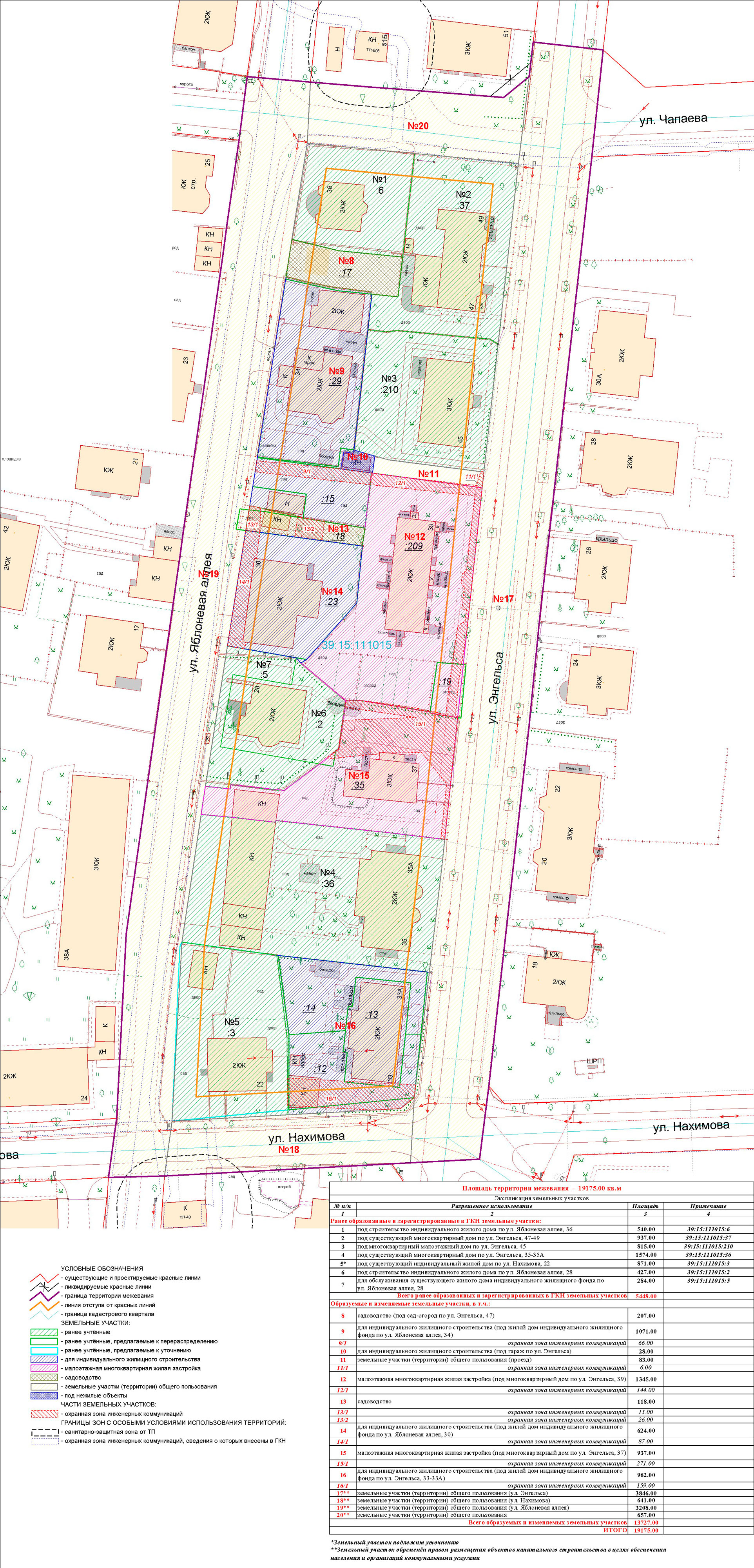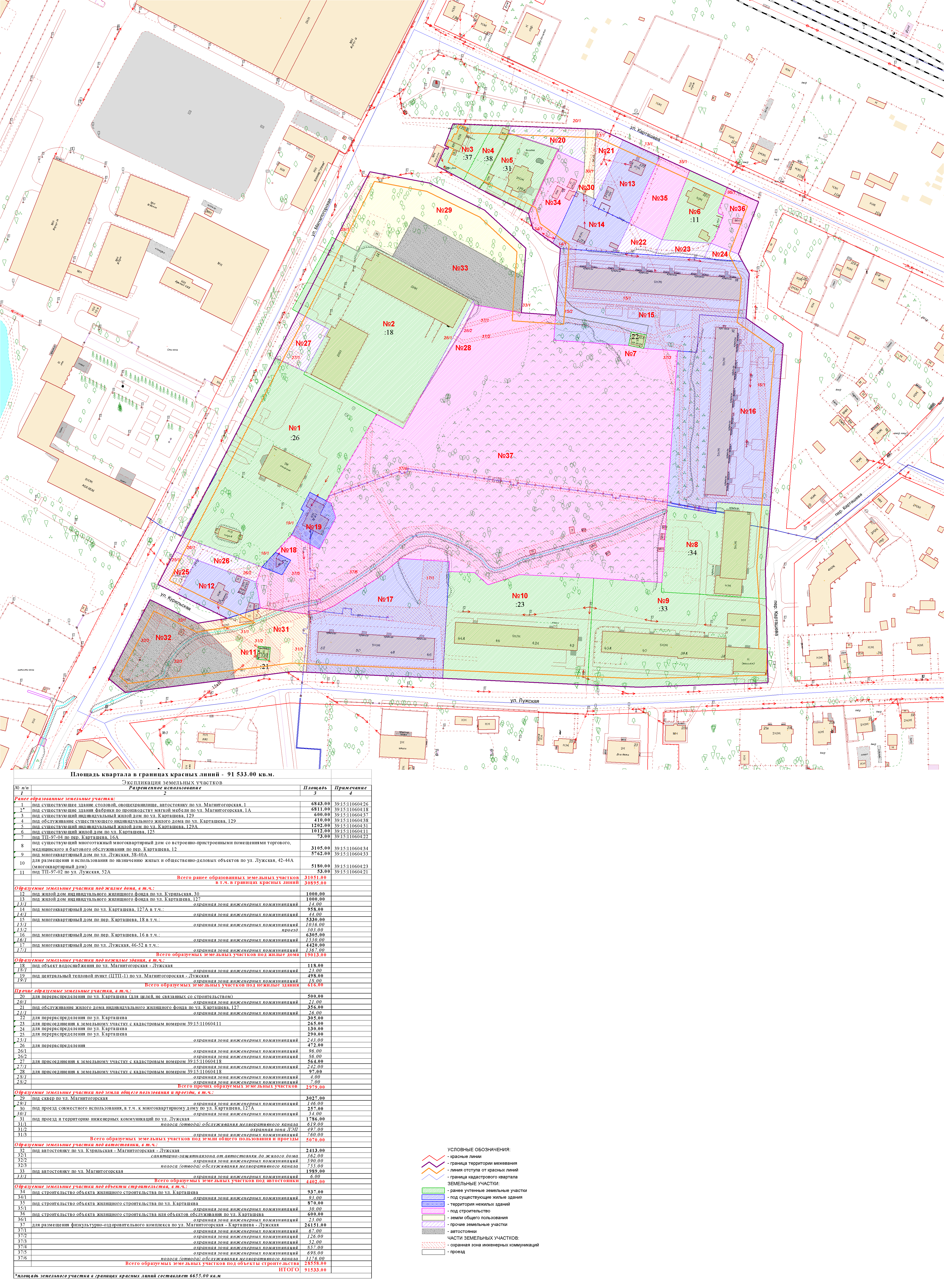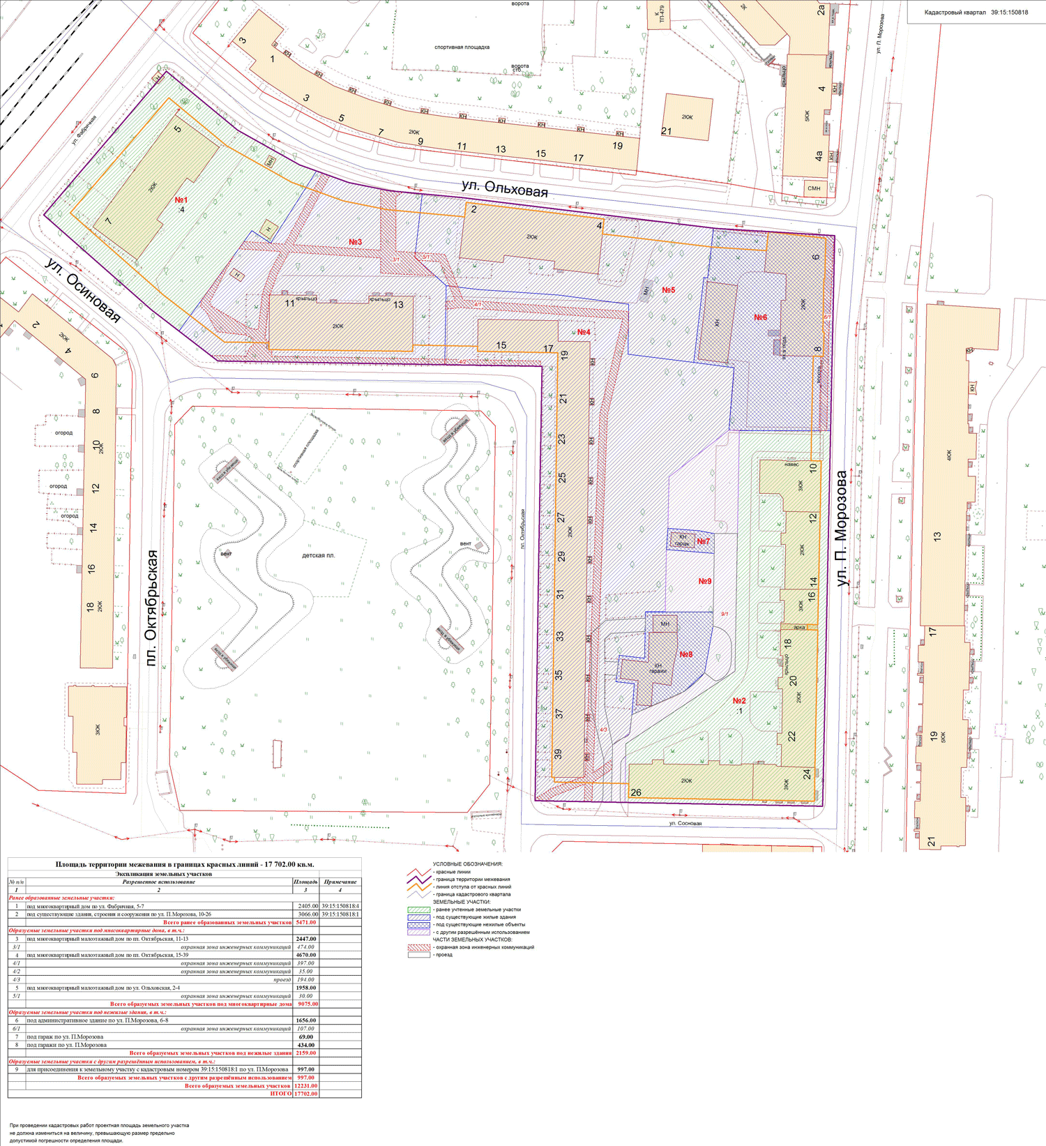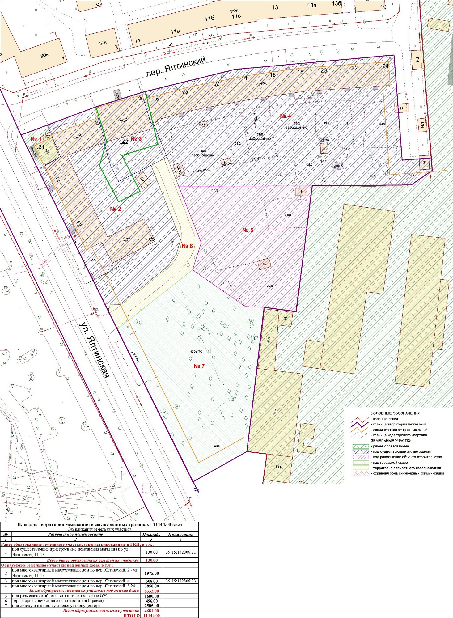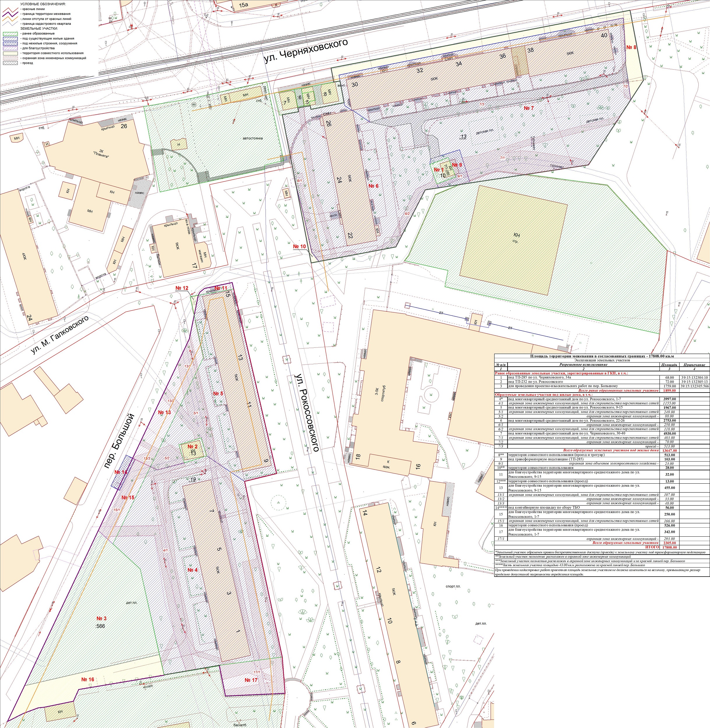 | Проект межевания территории в границах ул. Куйбышева – внутриквартального проезда – южной границы земельного участка с кадастровым номером 39:15:131931:77 по ул. Еловая аллея – пер. Куйбышева Ленинградского района города Калининграда | Оповещение Проект границ | Заключение | ||