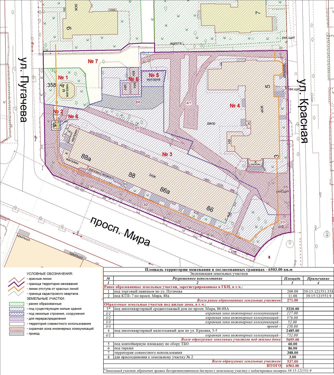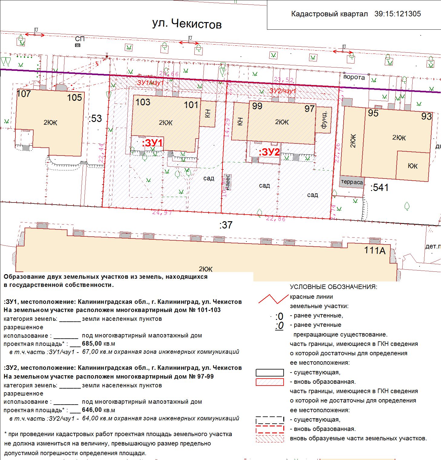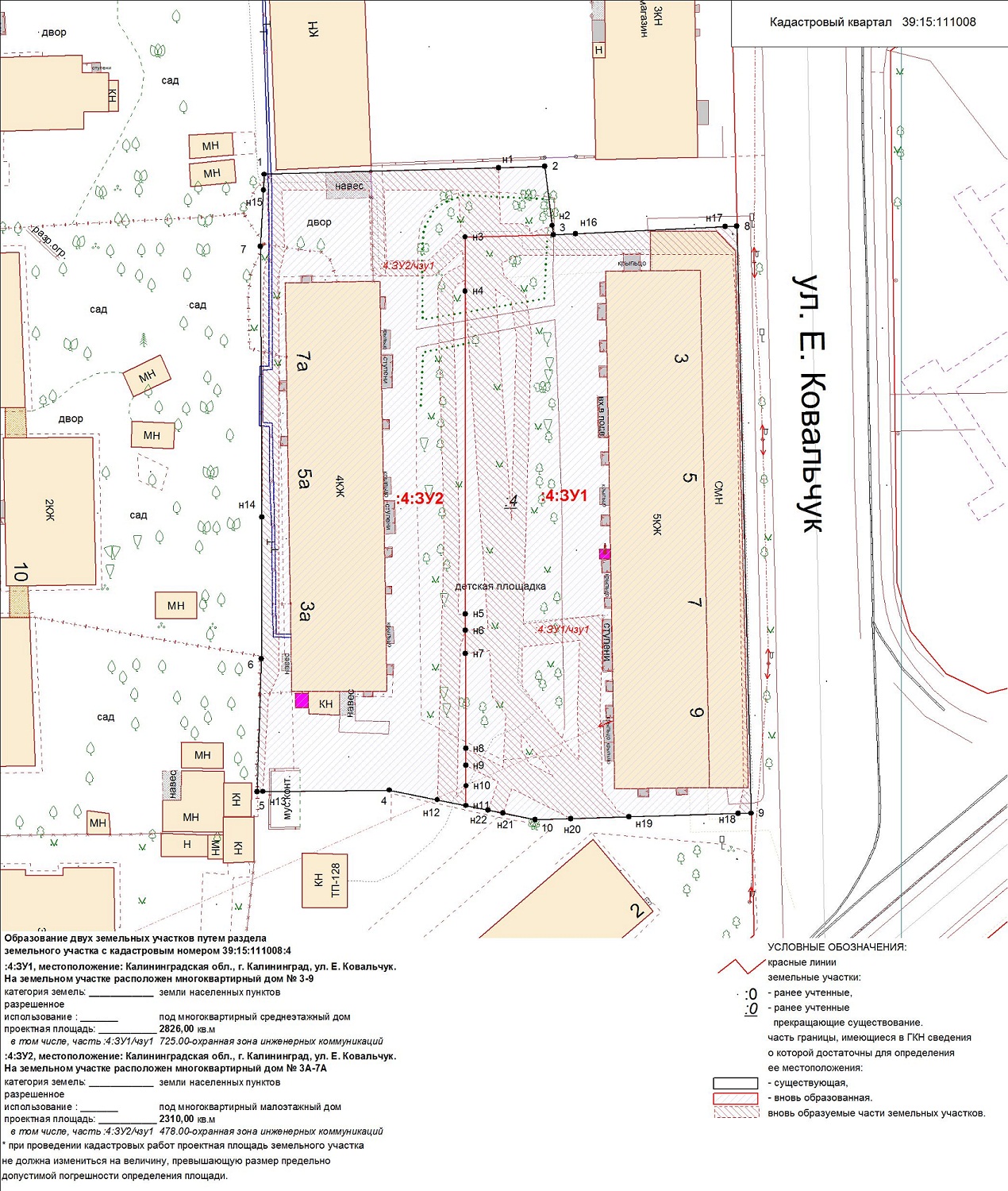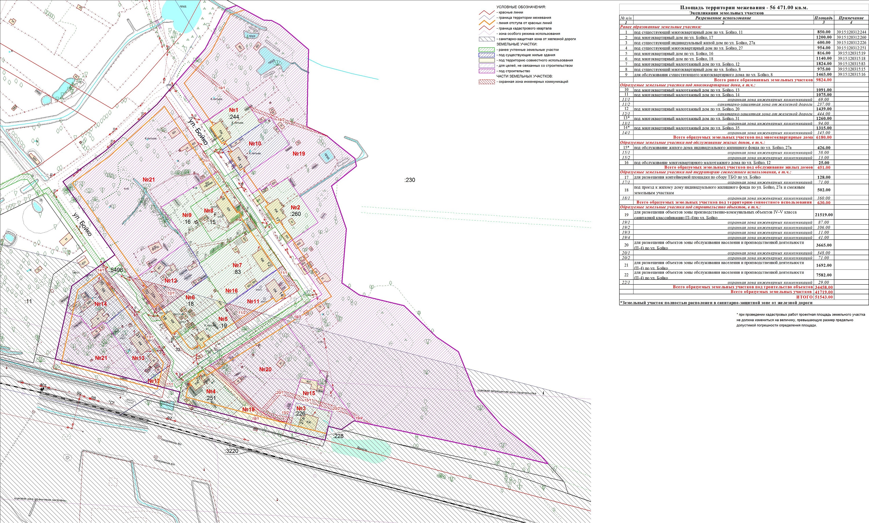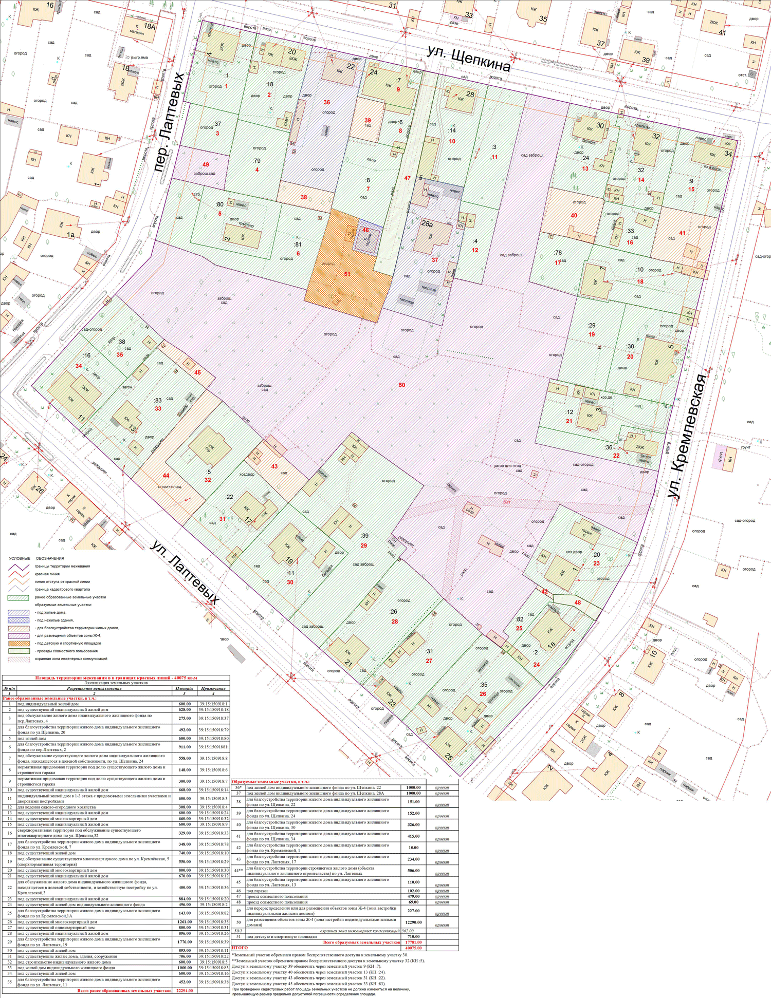 | Проект межевания территории в границах ул. Куйбышева – внутриквартального проезда – южной границы земельного участка с кадастровым номером 39:15:131931:77 по ул. Еловая аллея – пер. Куйбышева Ленинградского района города Калининграда | Оповещение Проект границ | Заключение | ||