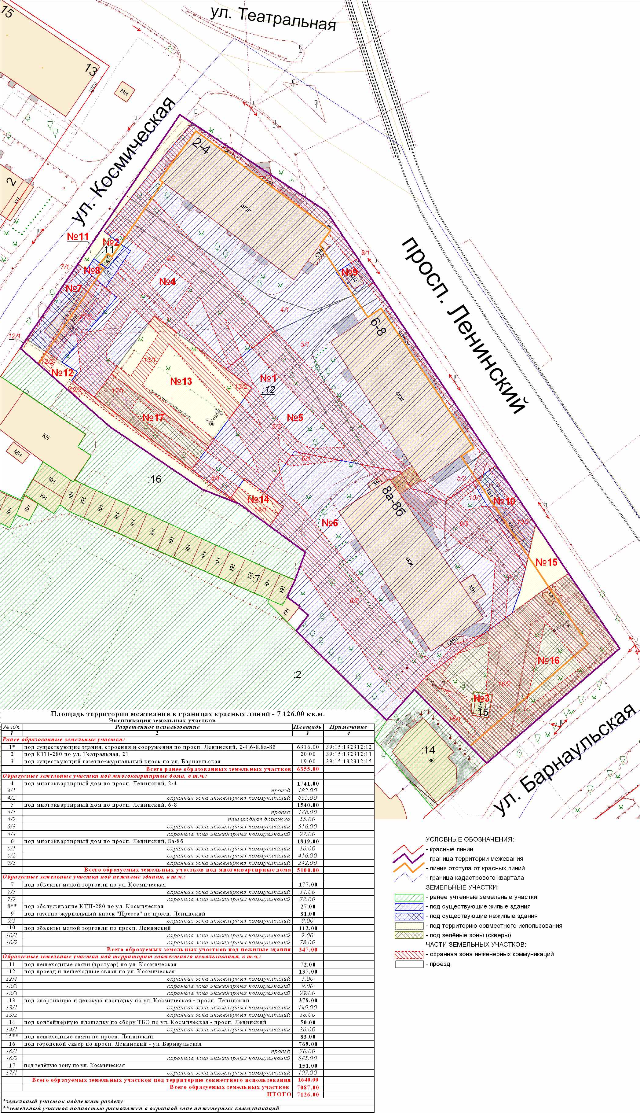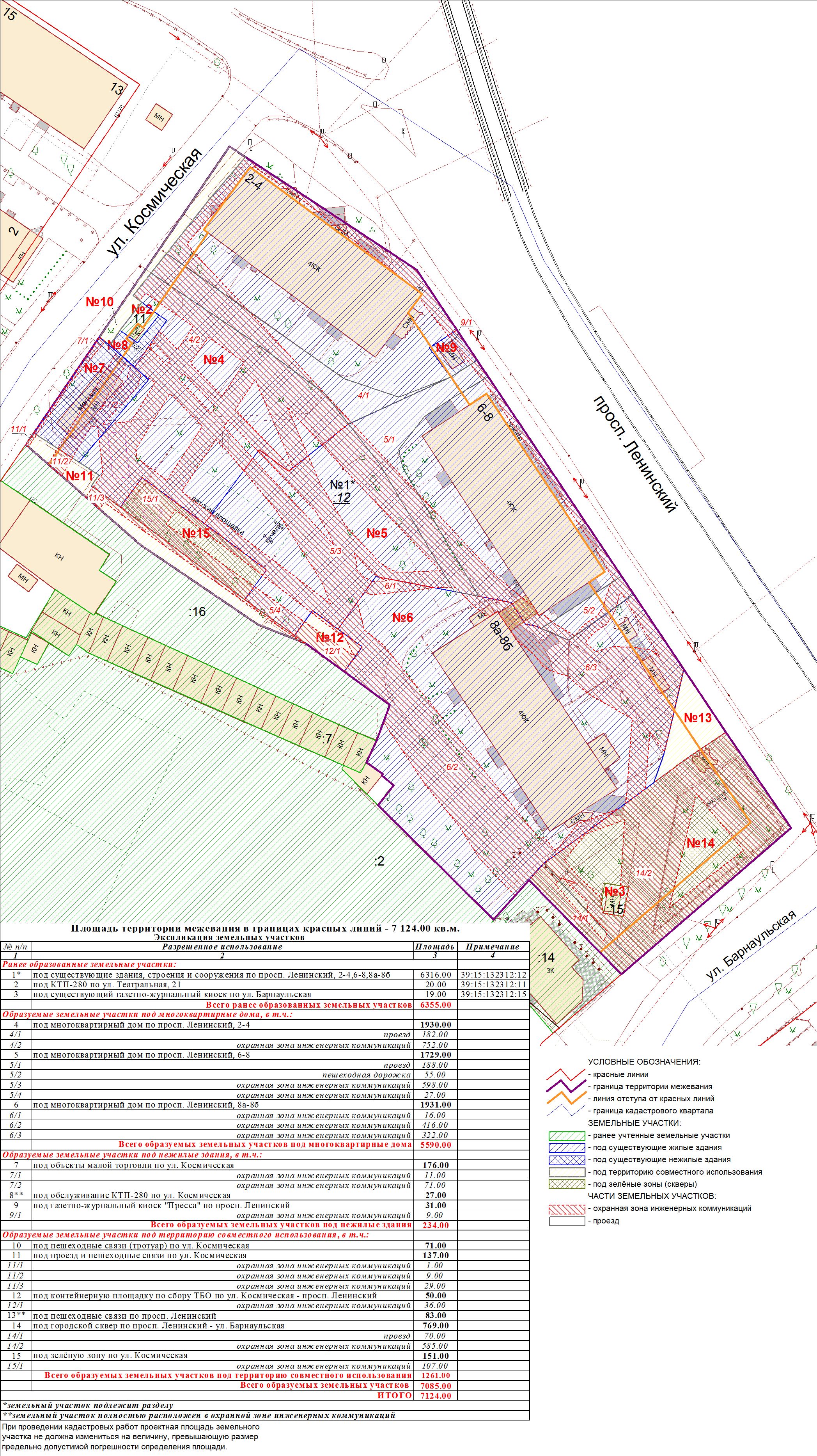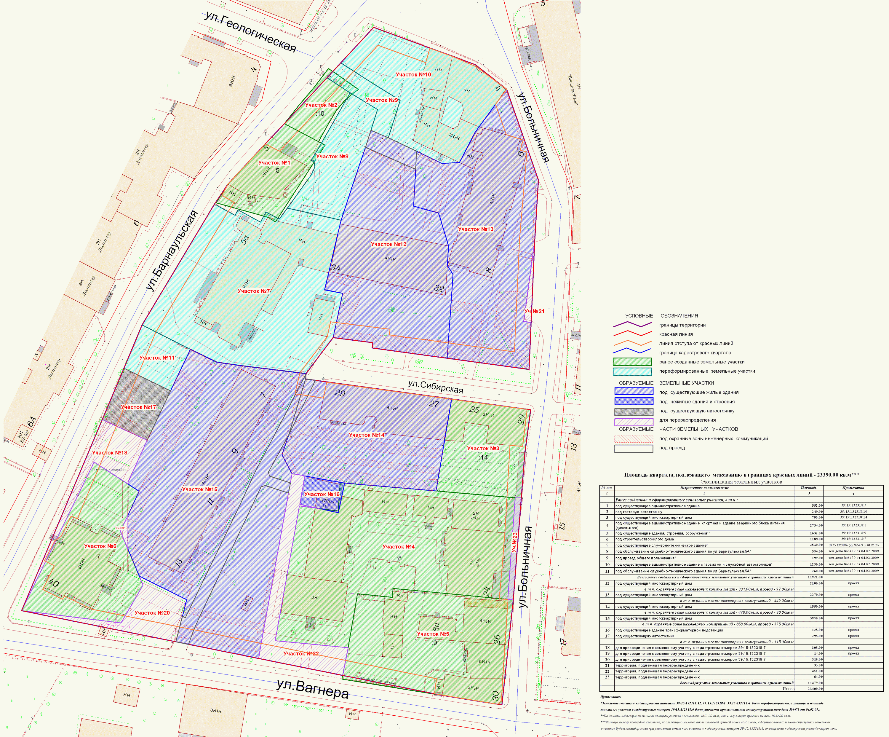 | 118 | Проект межевания квартала в границах красных линий улиц Барнаульская-Больничная-Вагнера | публичные слушания назначены на 28.10.2009 в 17-00 по адресу: ул.Фрунзе, 71 (администрация Ленинградского района, каб.25) | Проект границ | Заключение по итогам публичных слушаний п.м ЗАКЛ №3993 от 11.11.09 |