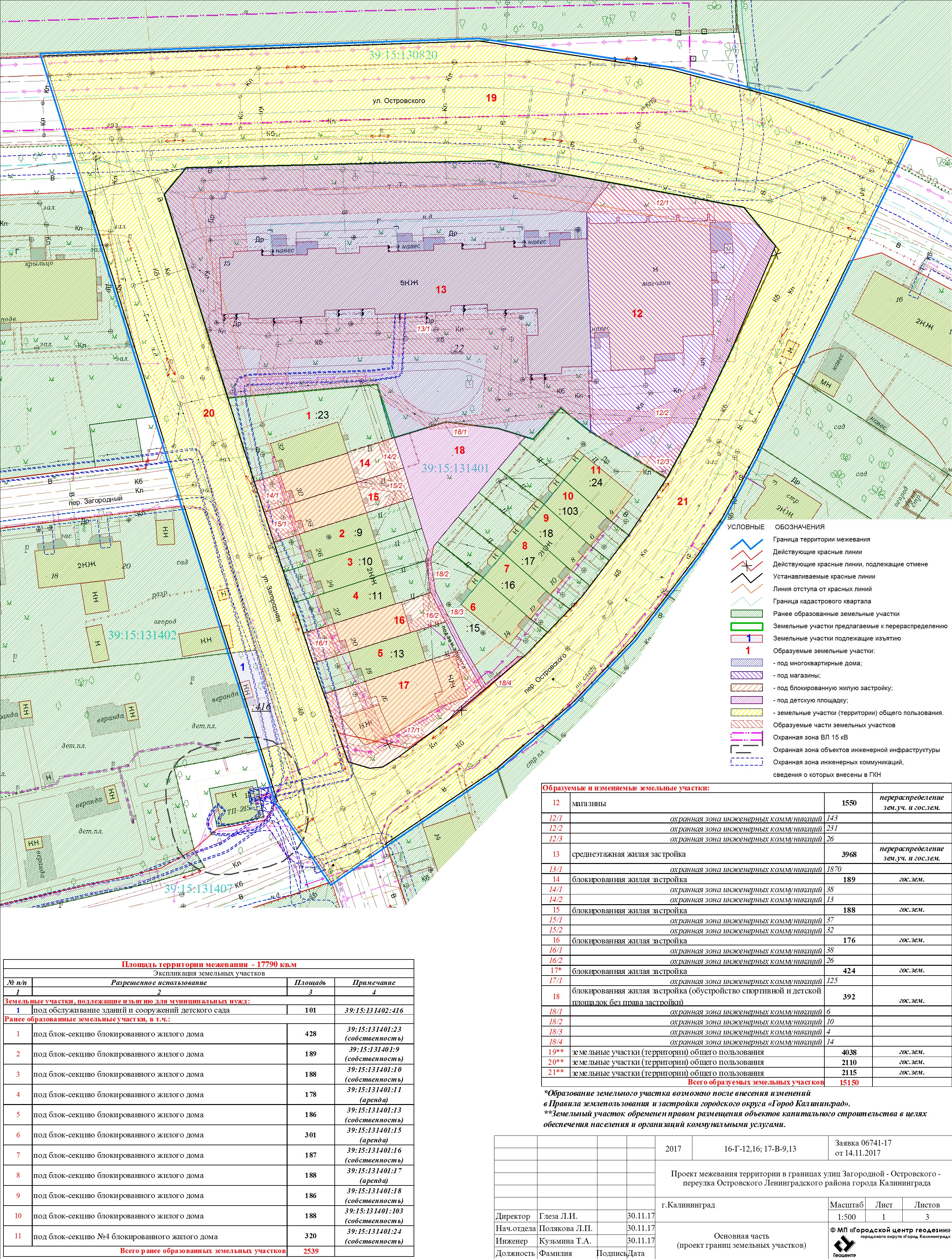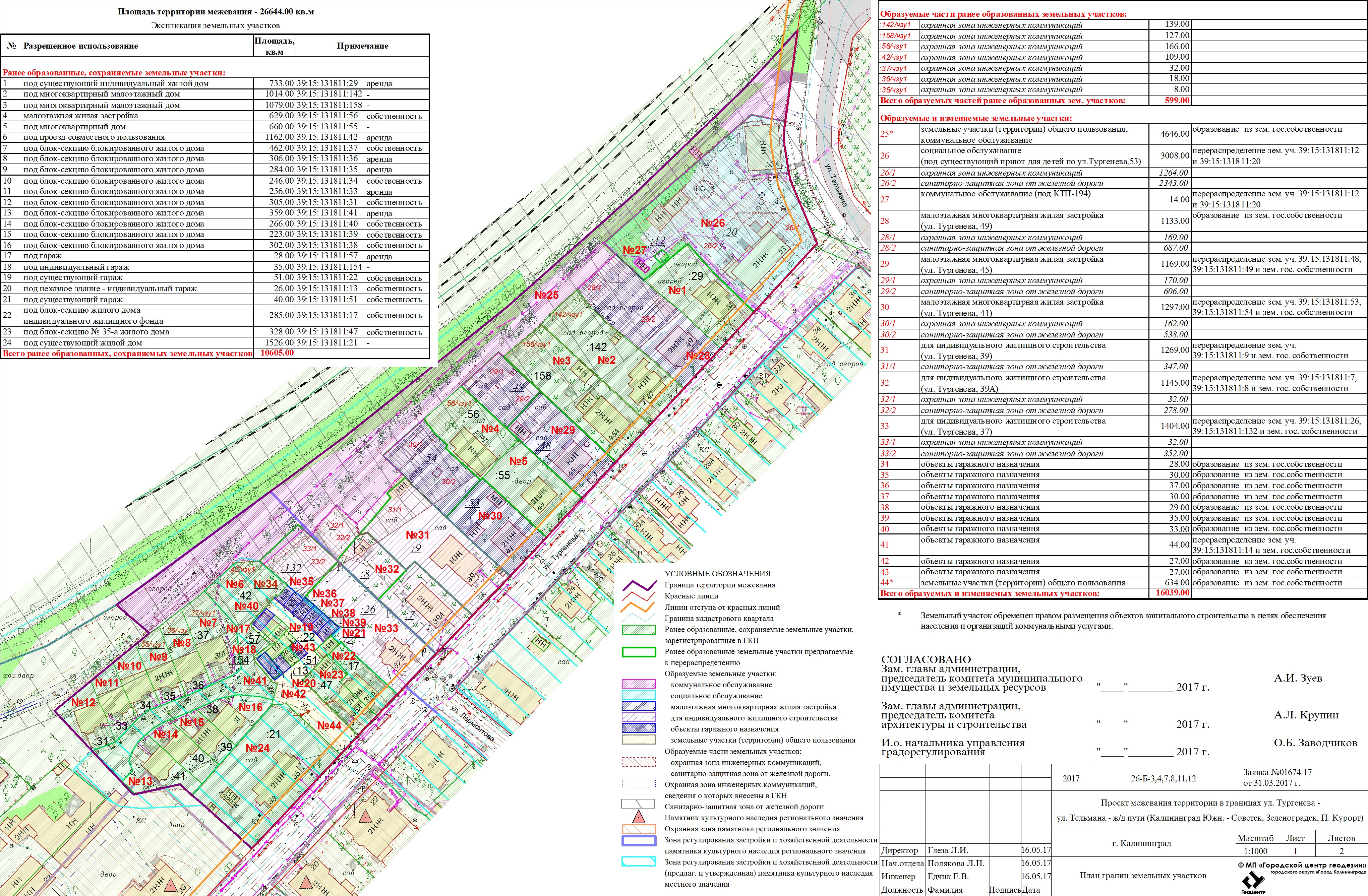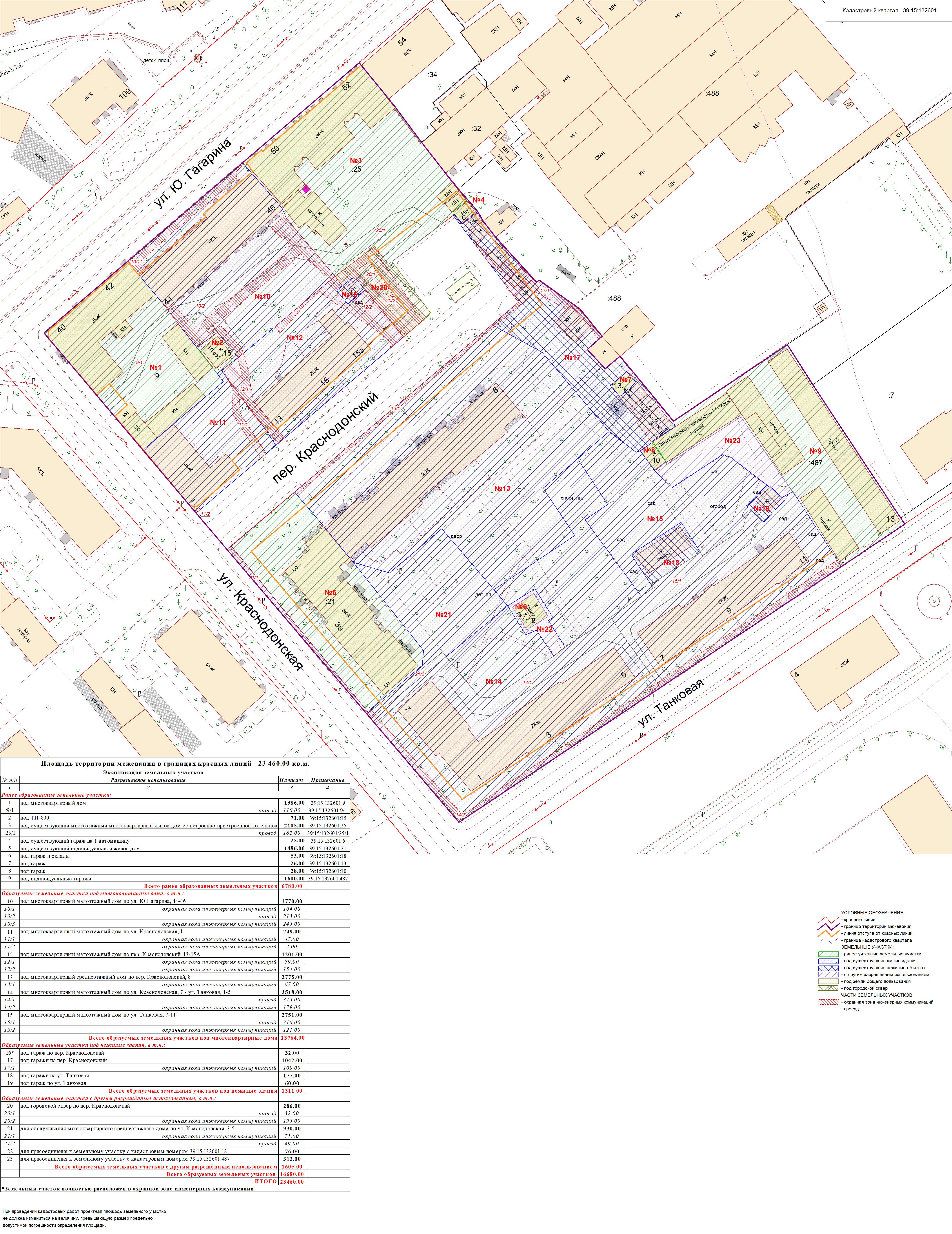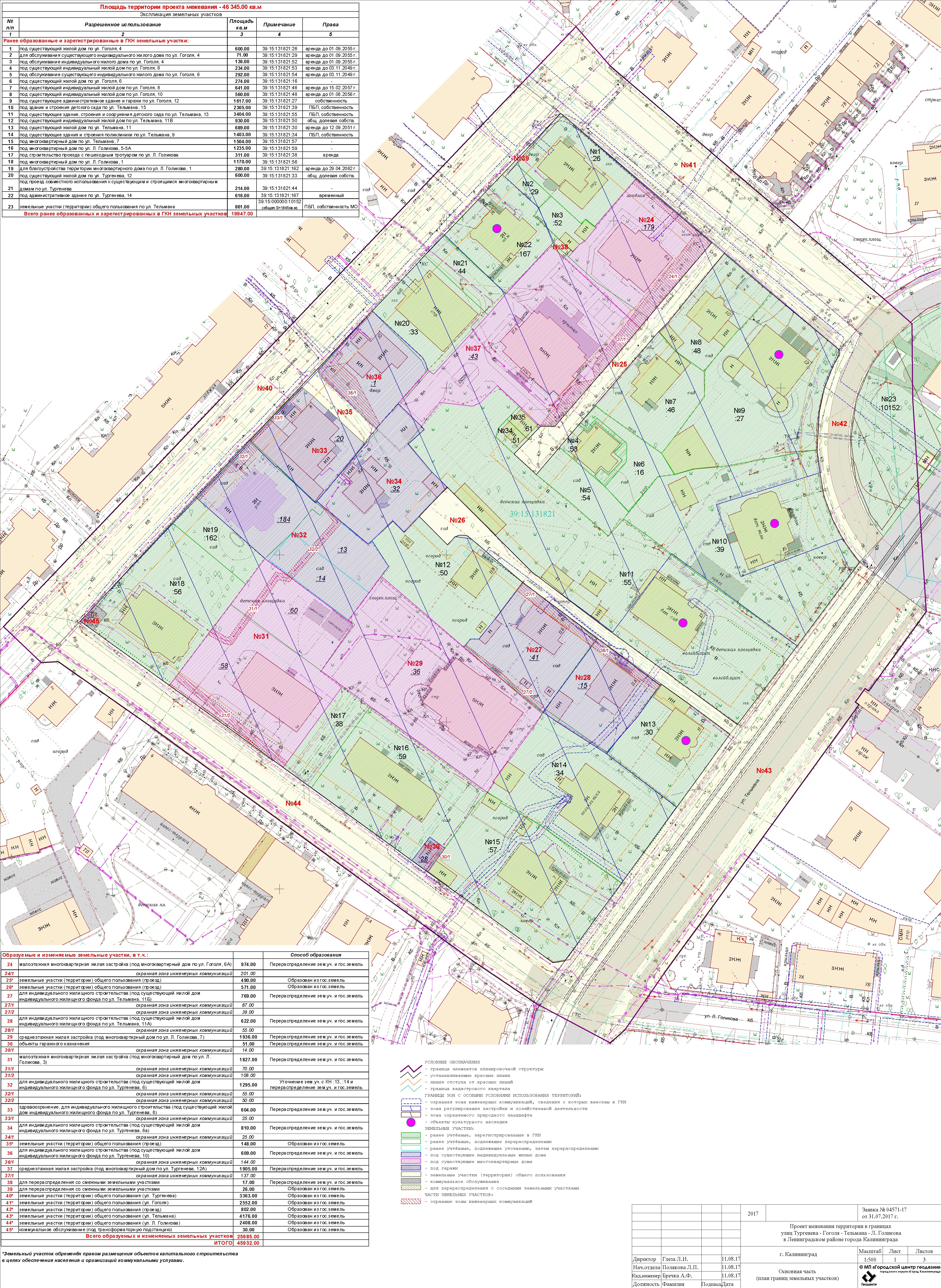 | Проект межевания территории в границах красных линий ул. Тургенева – ул. Тельмана – ж/д пути (Калининград Южн. – Советск, Зеленоградск, П. Курорт) в г. Калининграде | Проект границ | Заключение | ||