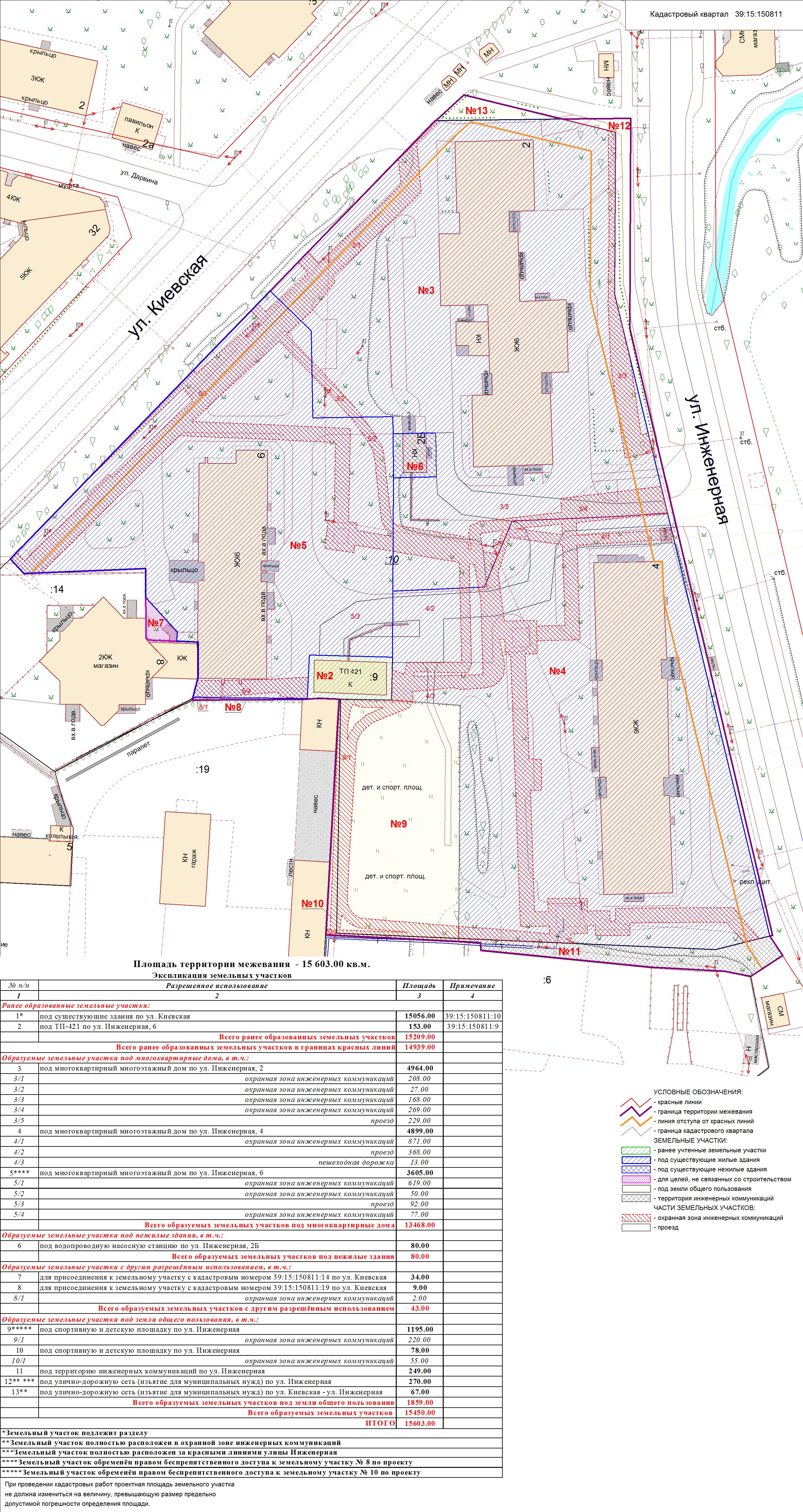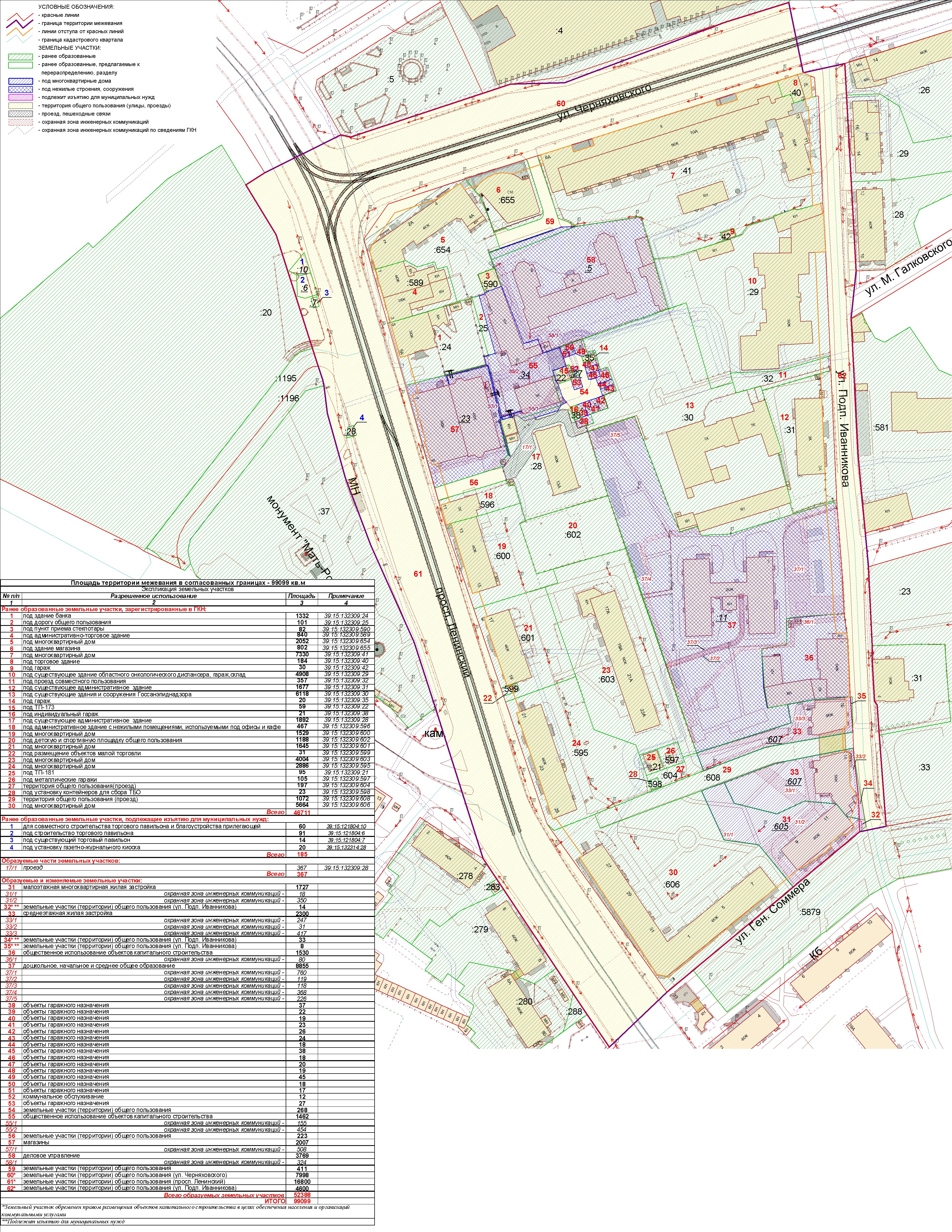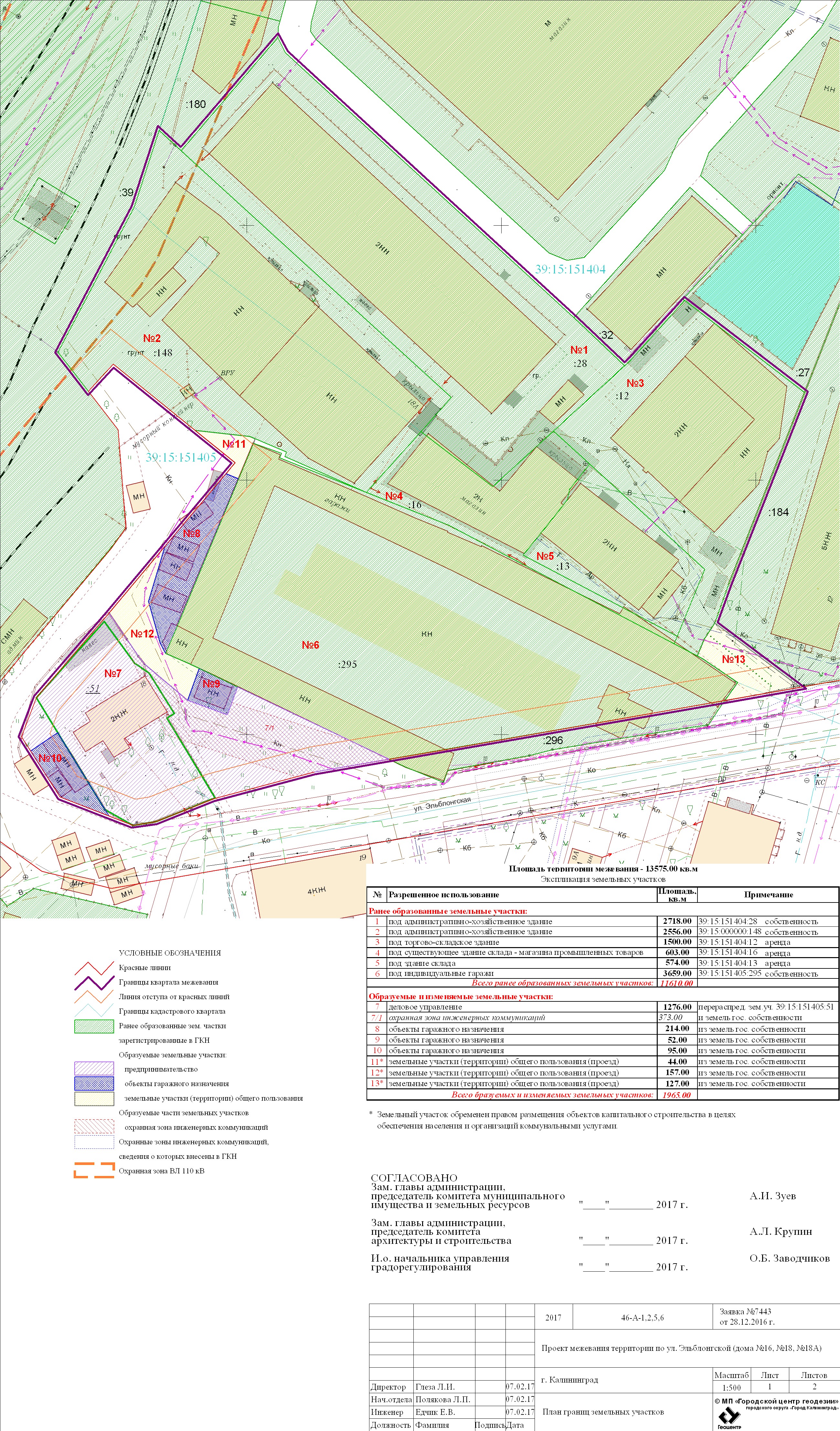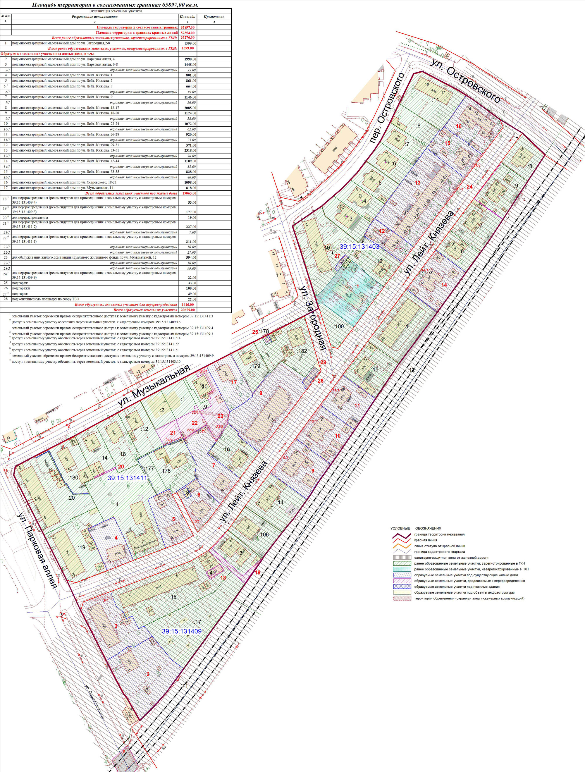 | Проект межевания территории в границах красных линий ул. Тургенева – ул. Тельмана – ж/д пути (Калининград Южн. – Советск, Зеленоградск, П. Курорт) в г. Калининграде | Проект границ | Заключение | ||