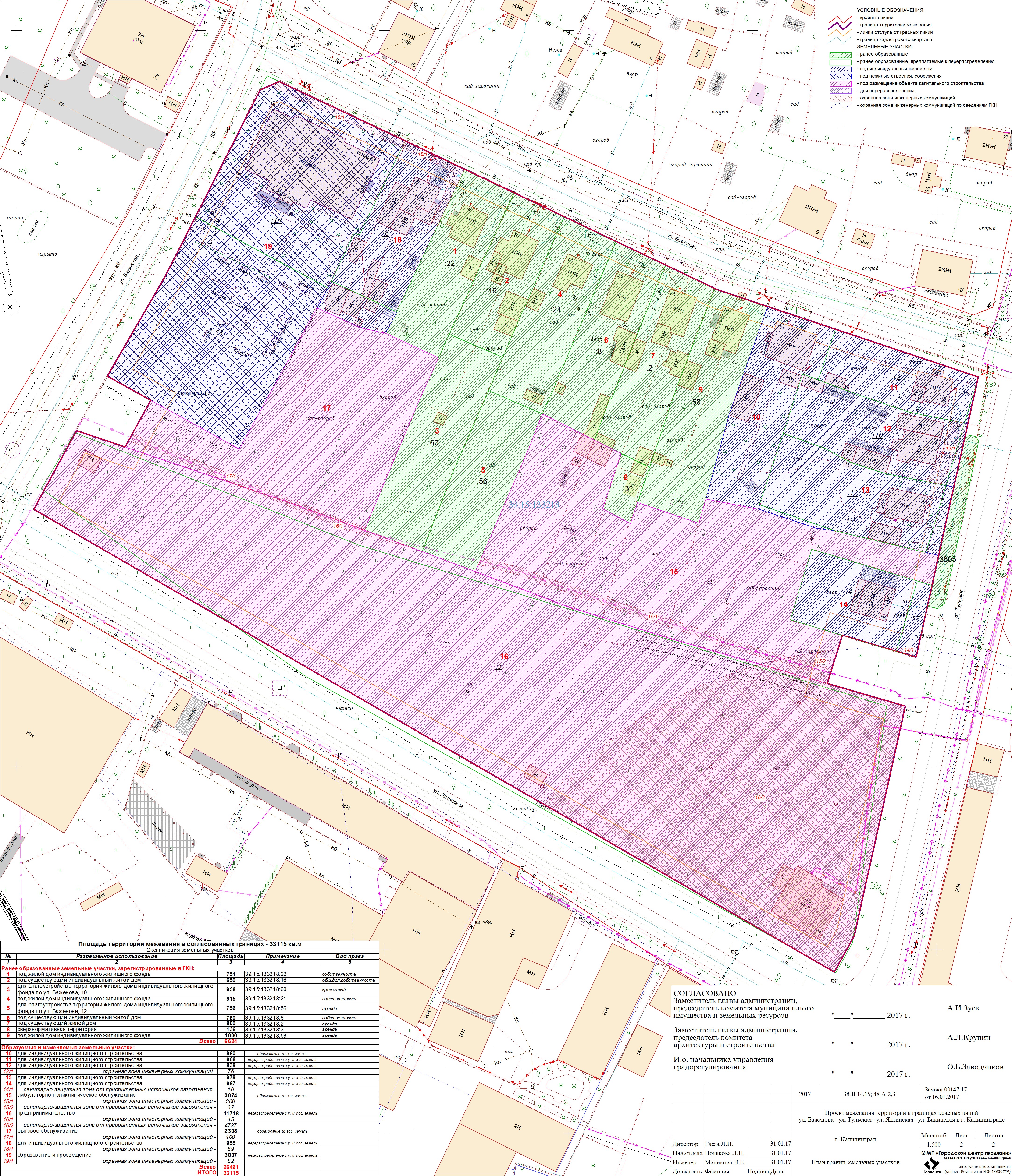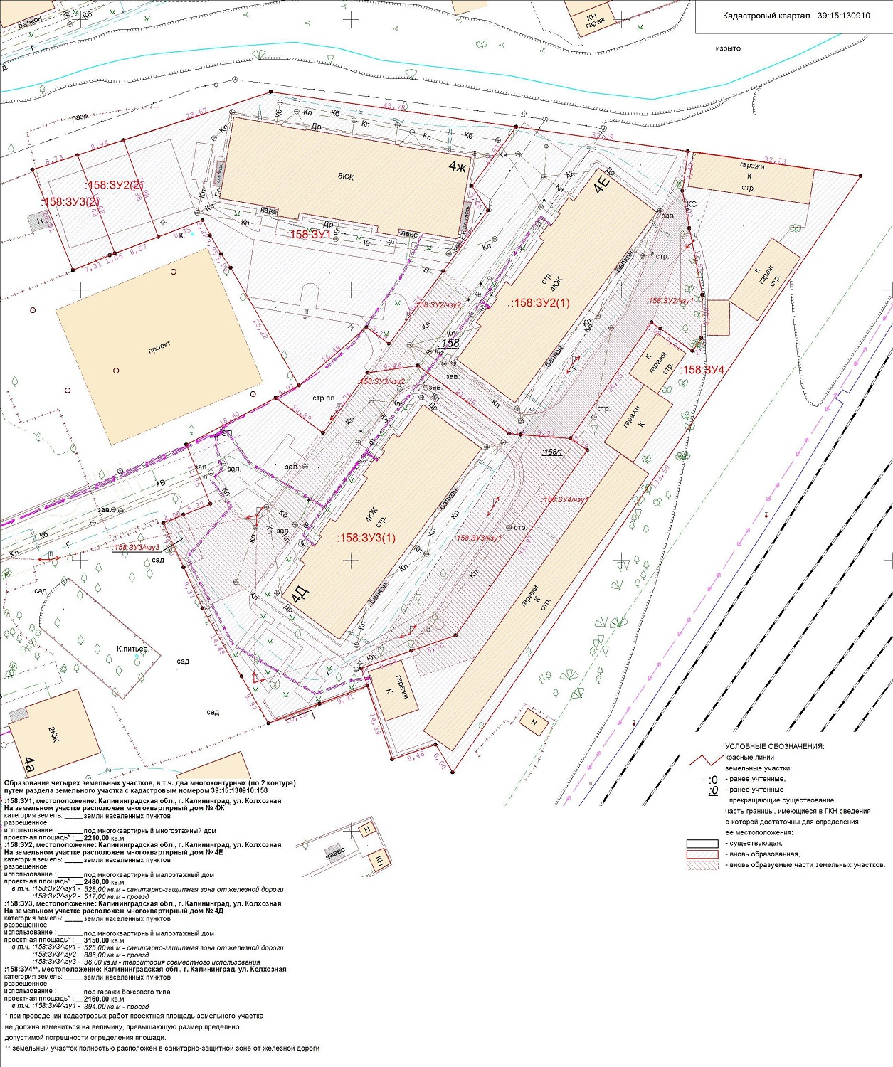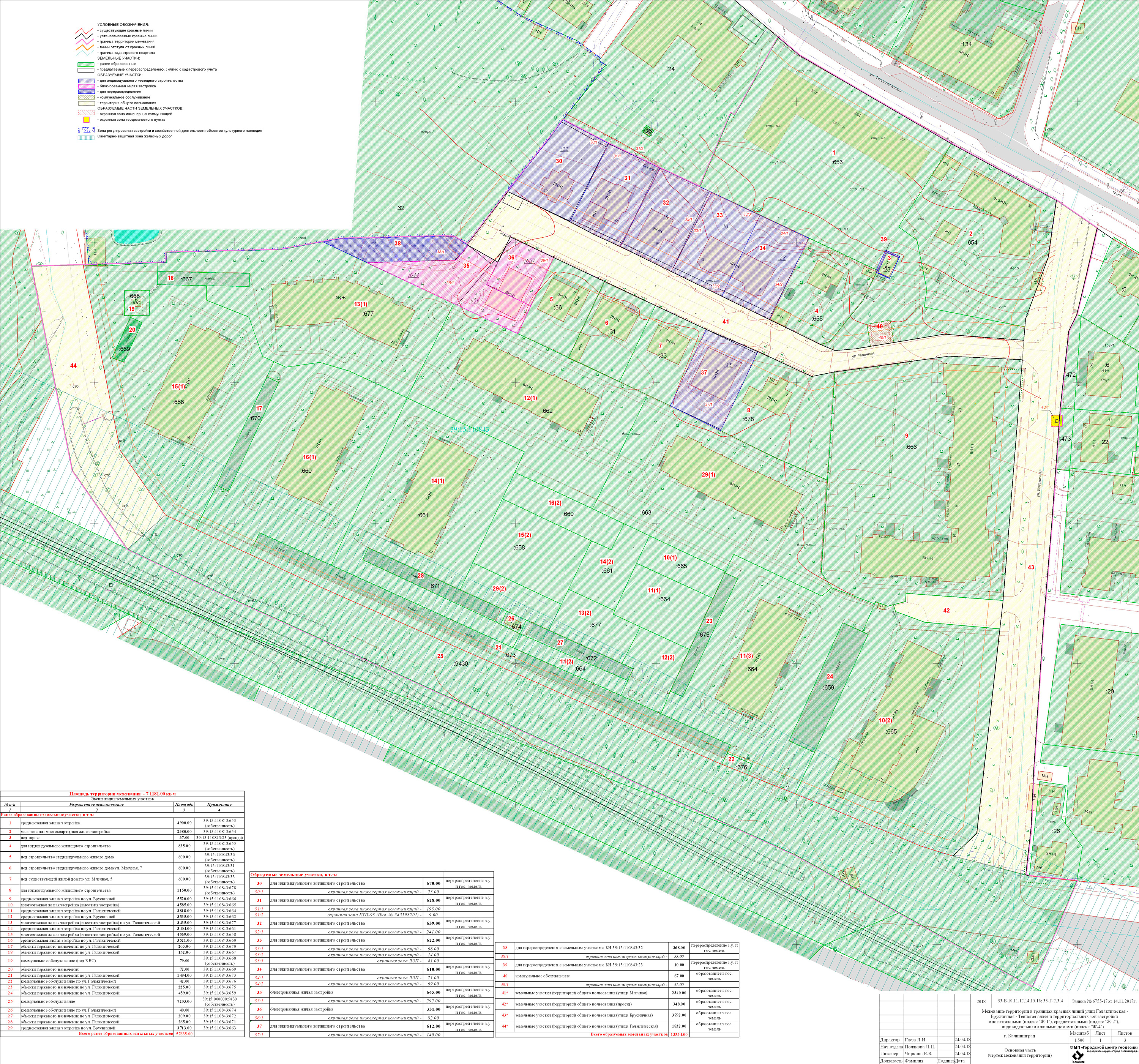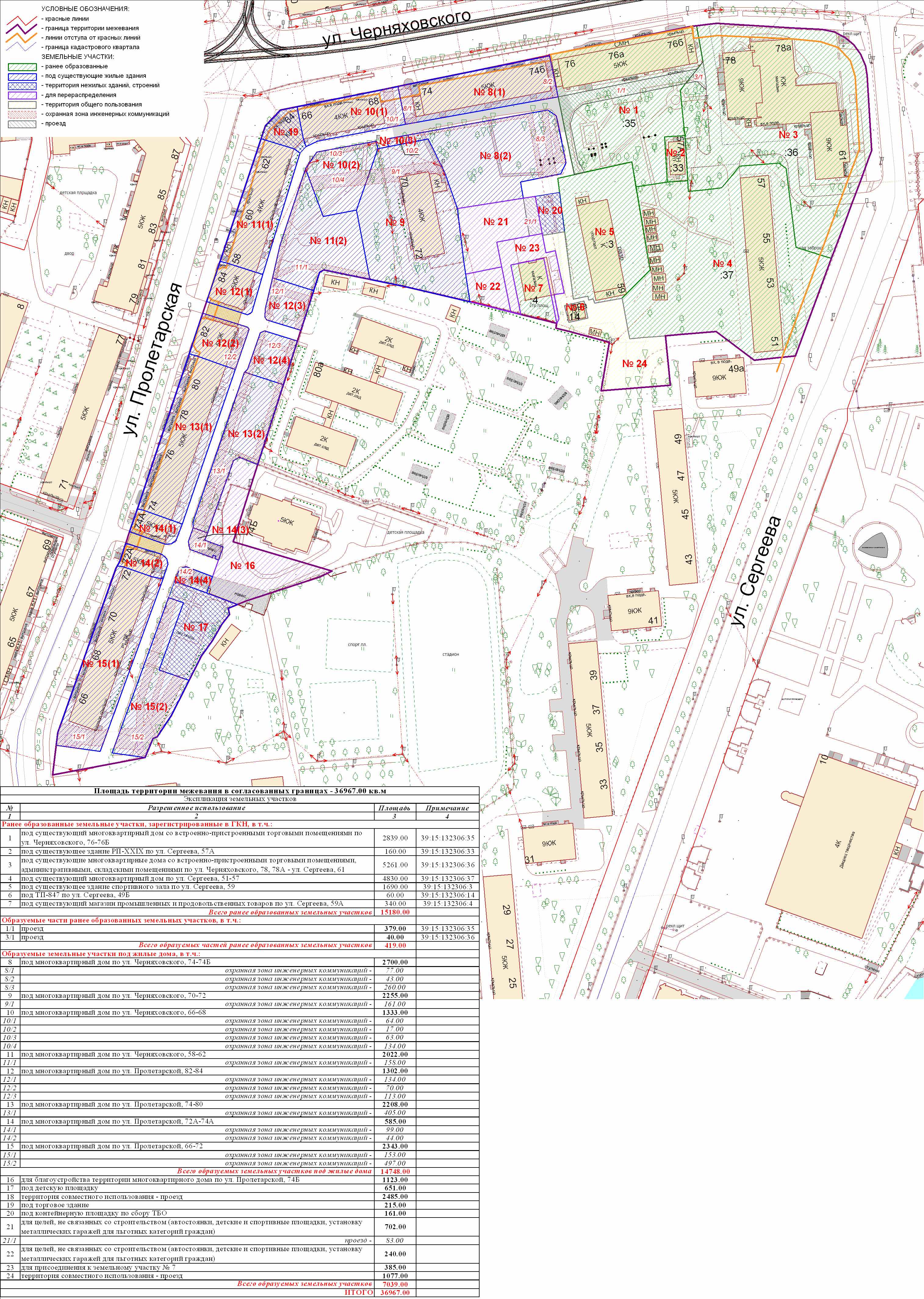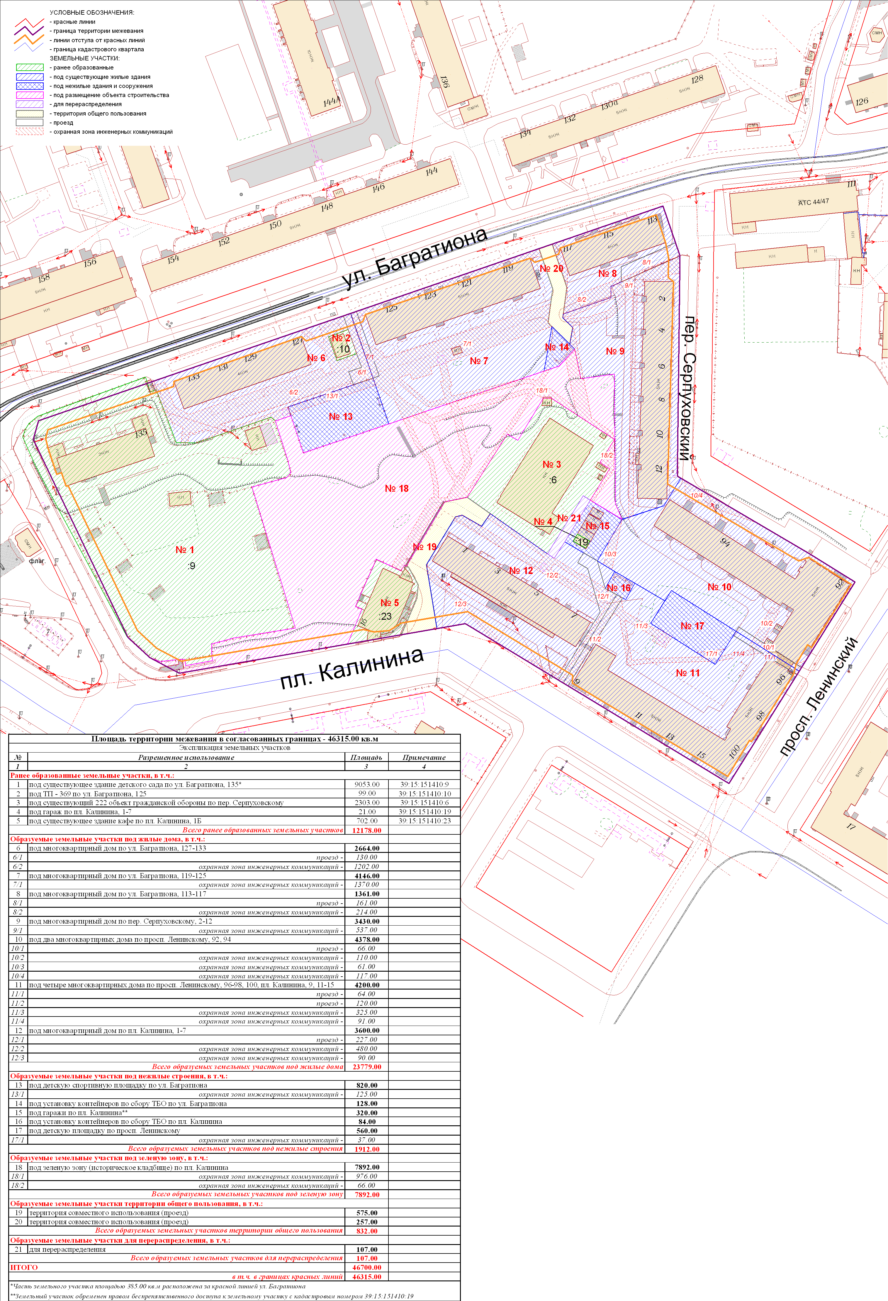 | Проект межевания территории в границах красных линий ул. Тургенева – ул. Тельмана – ж/д пути (Калининград Южн. – Советск, Зеленоградск, П. Курорт) в г. Калининграде | Проект границ | Заключение | ||