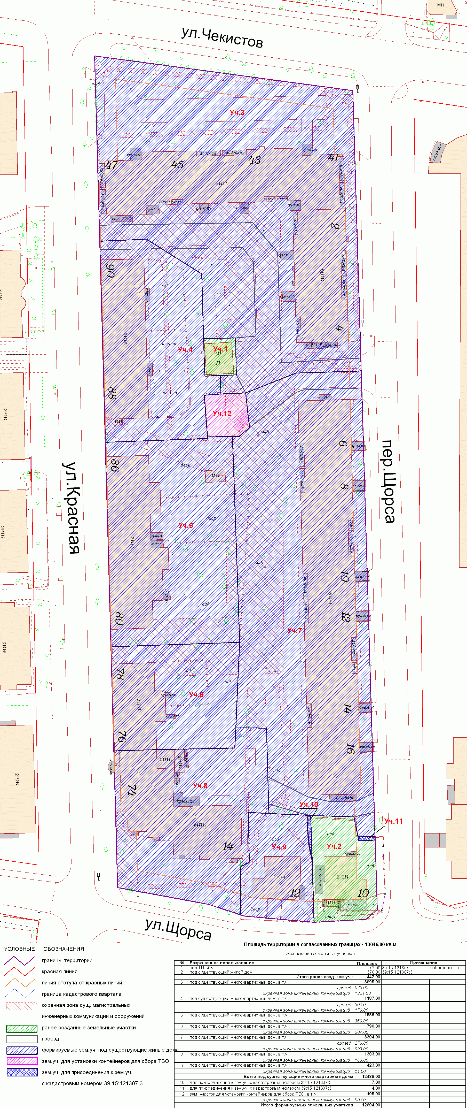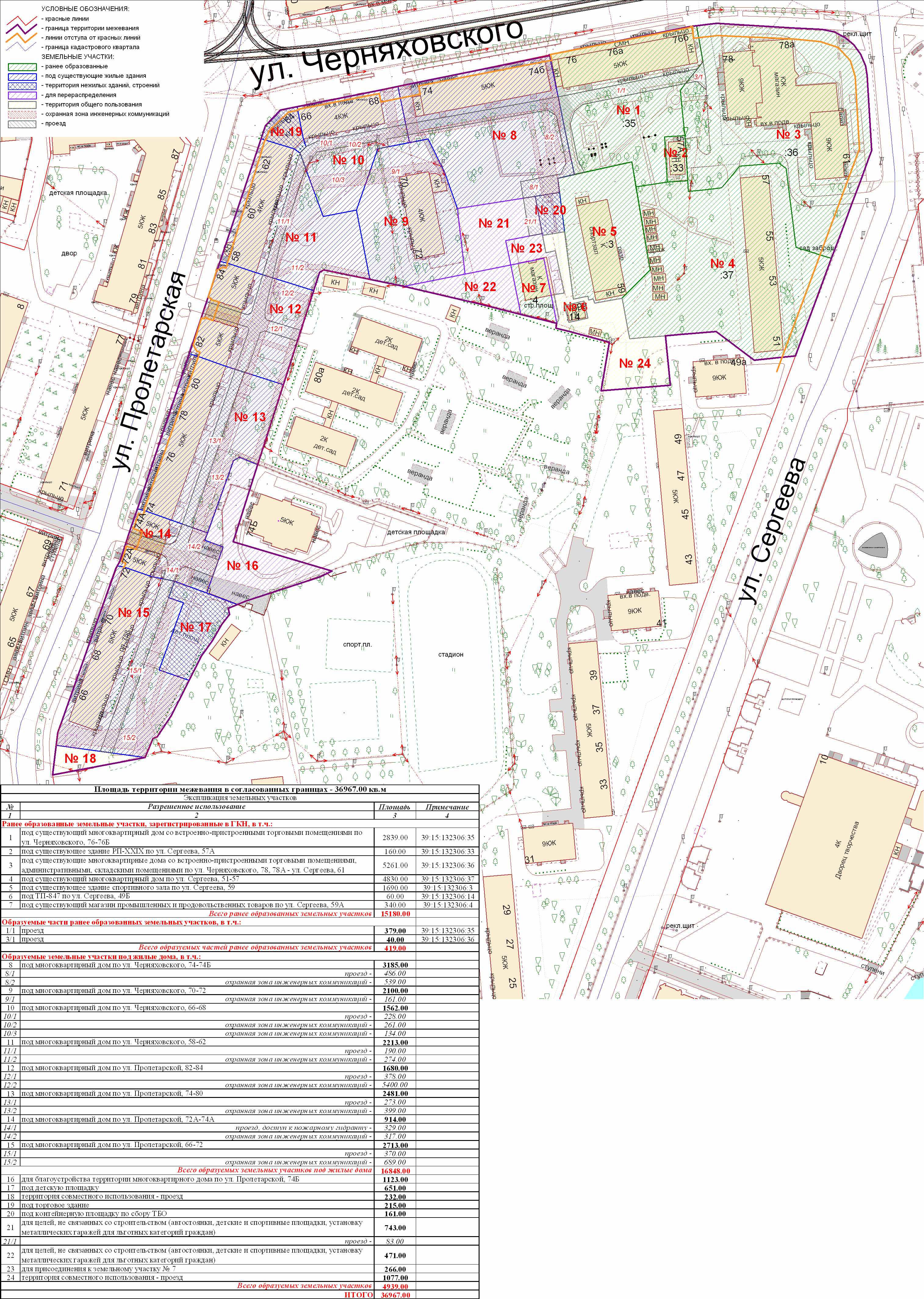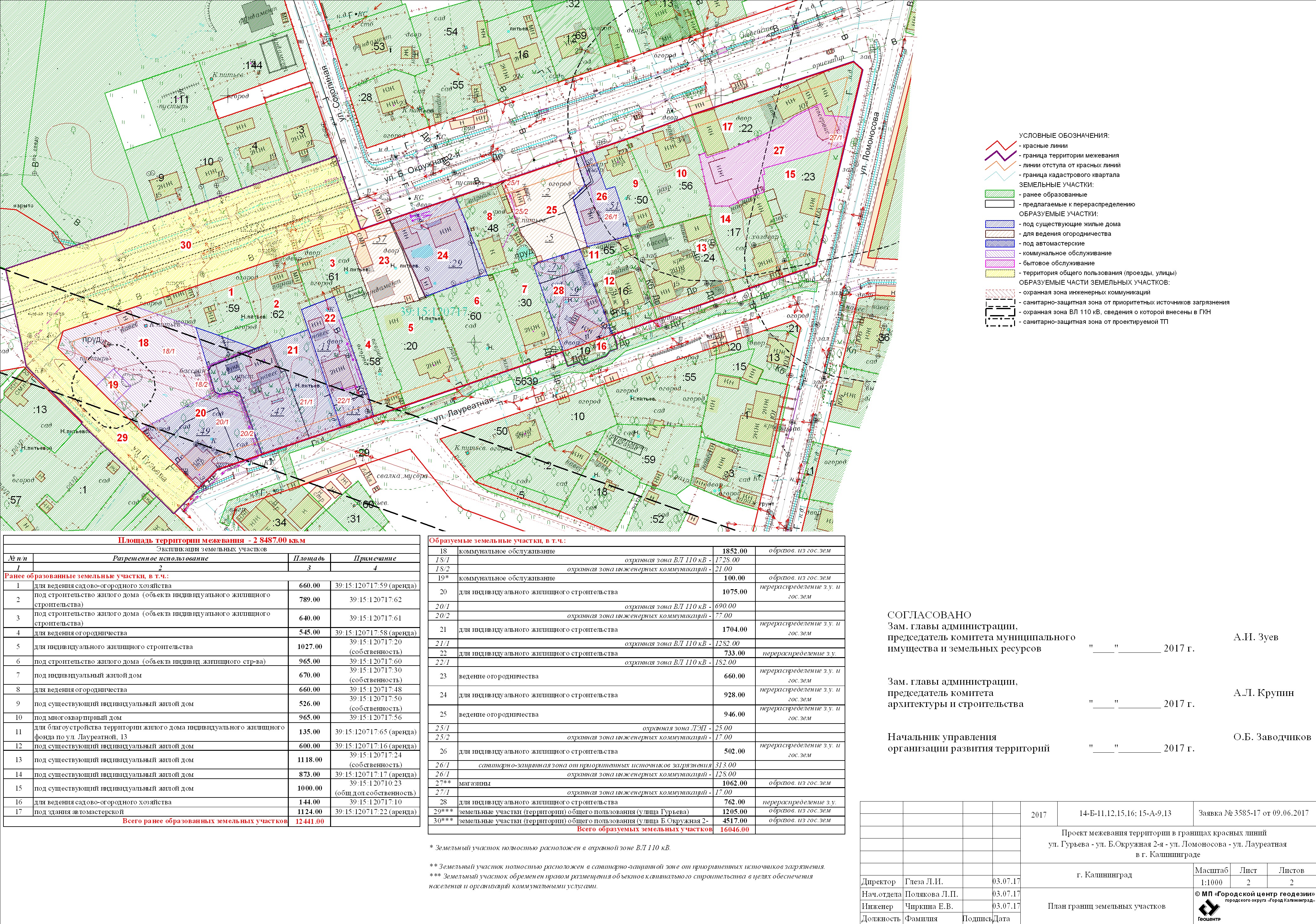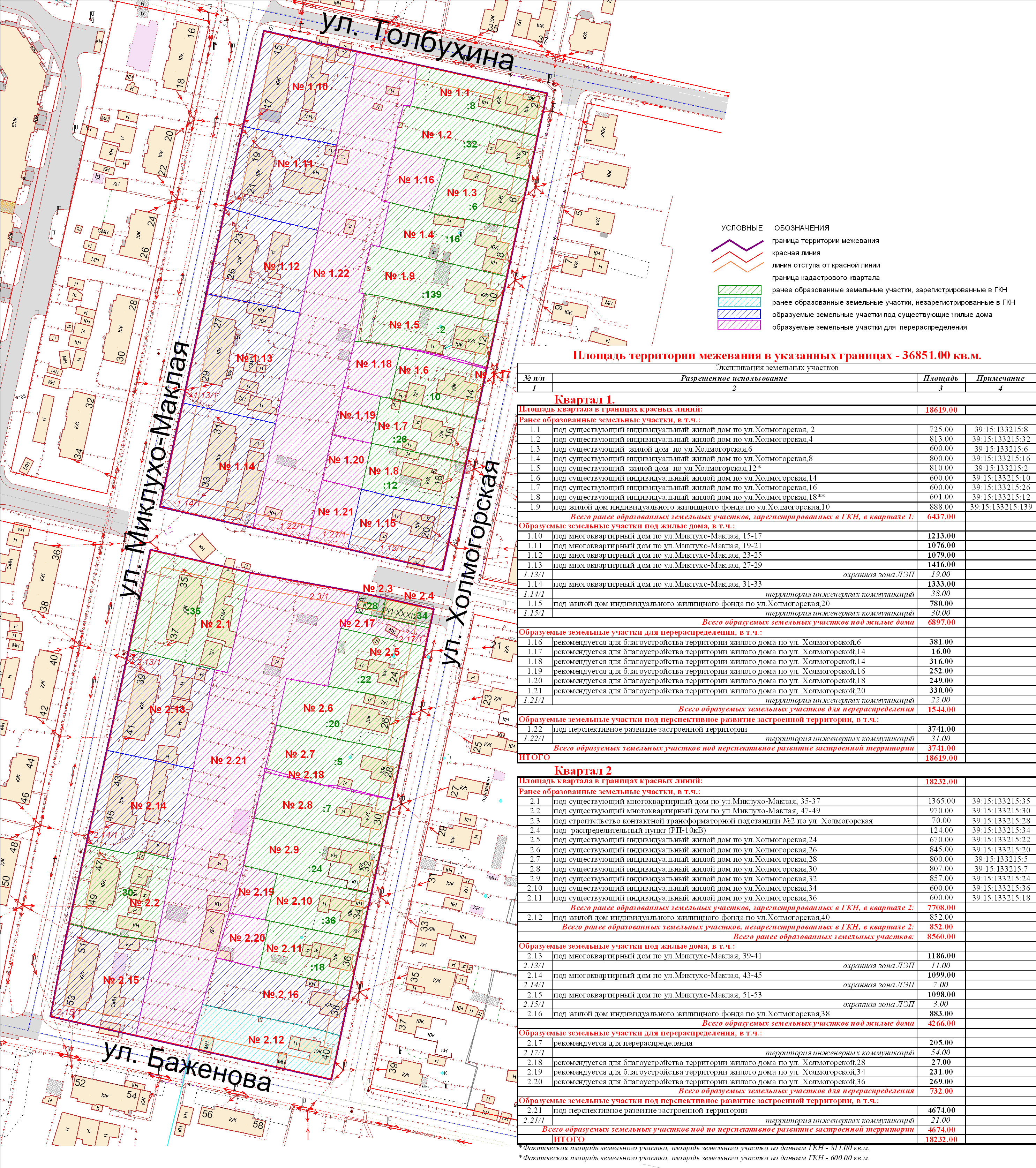 | Проект межевания территории в границах красных линий ул. Тургенева – ул. Тельмана – ж/д пути (Калининград Южн. – Советск, Зеленоградск, П. Курорт) в г. Калининграде | Проект границ | Заключение | ||