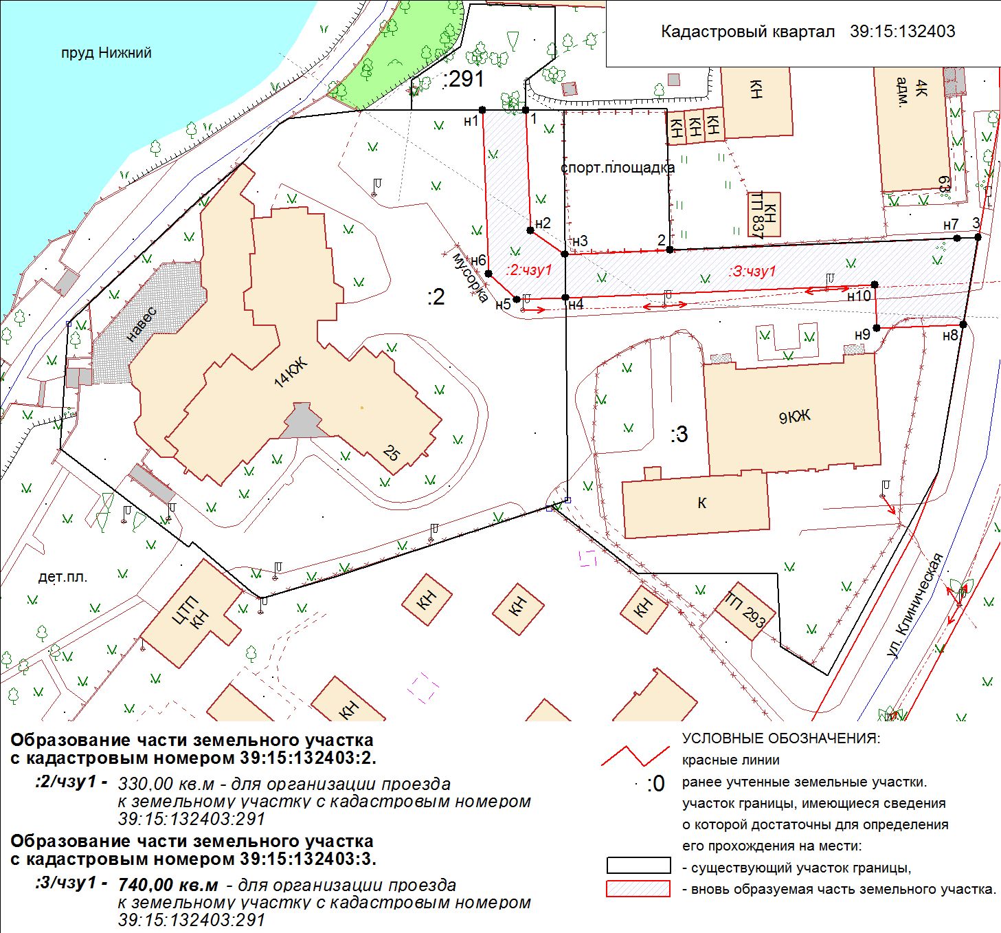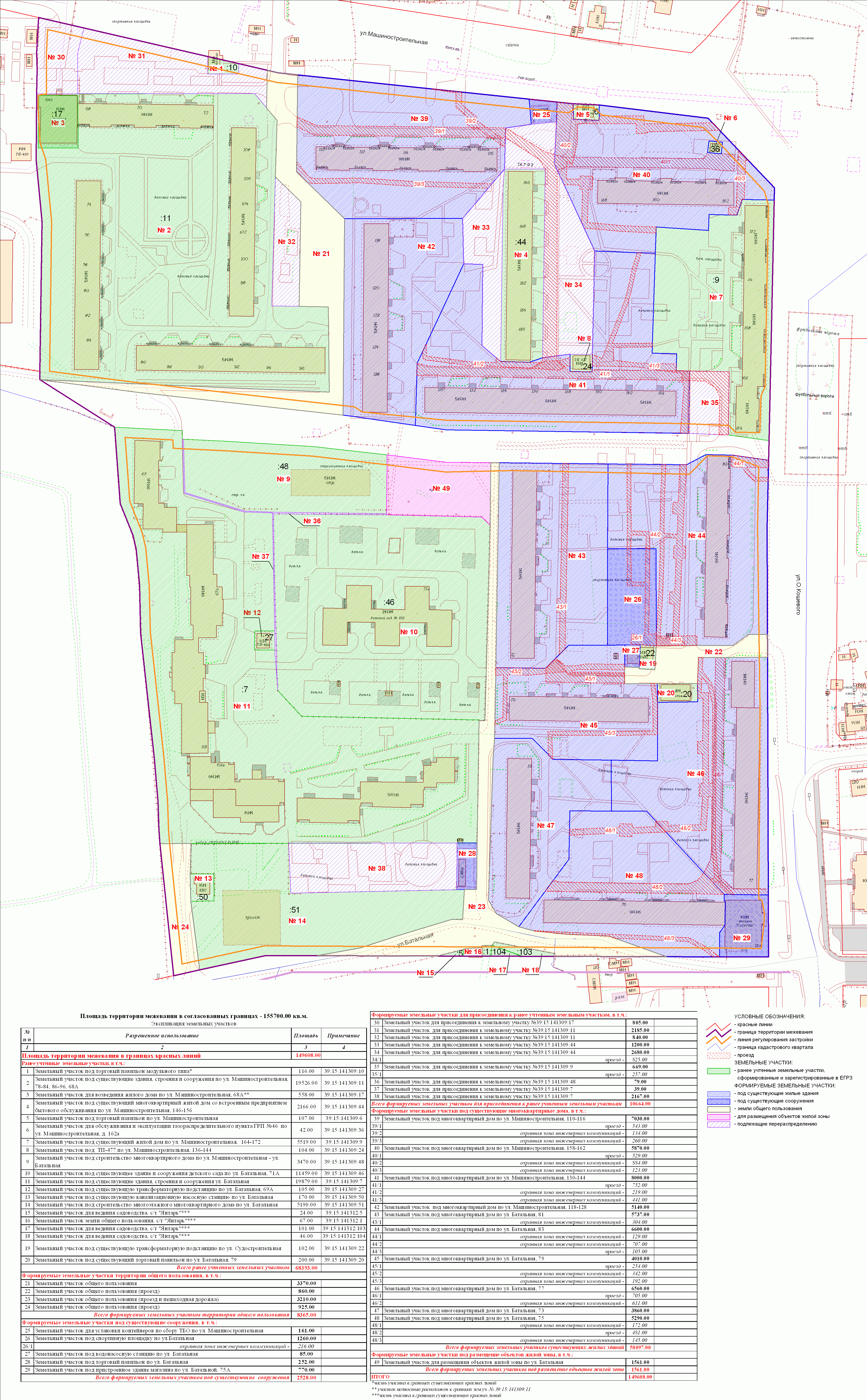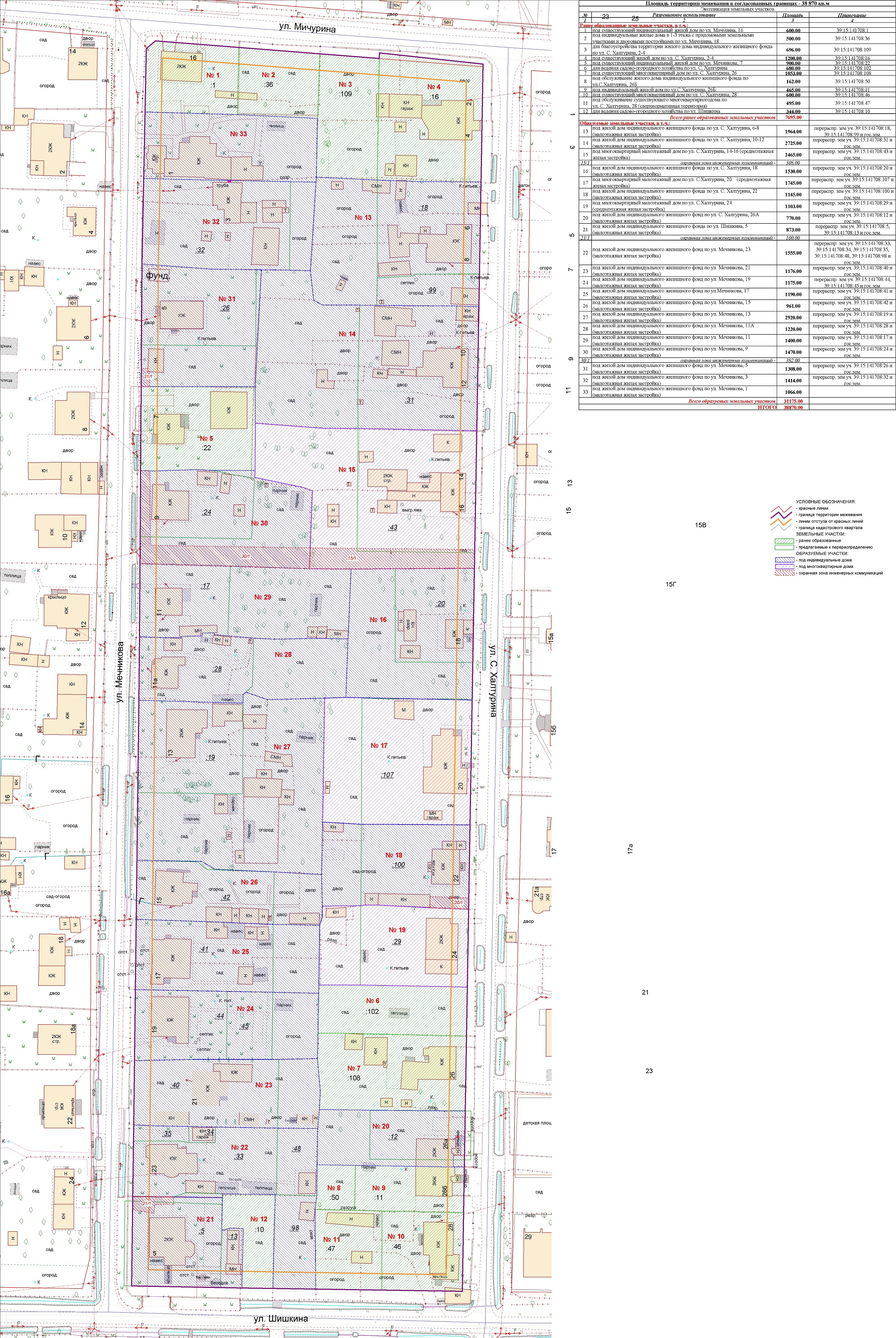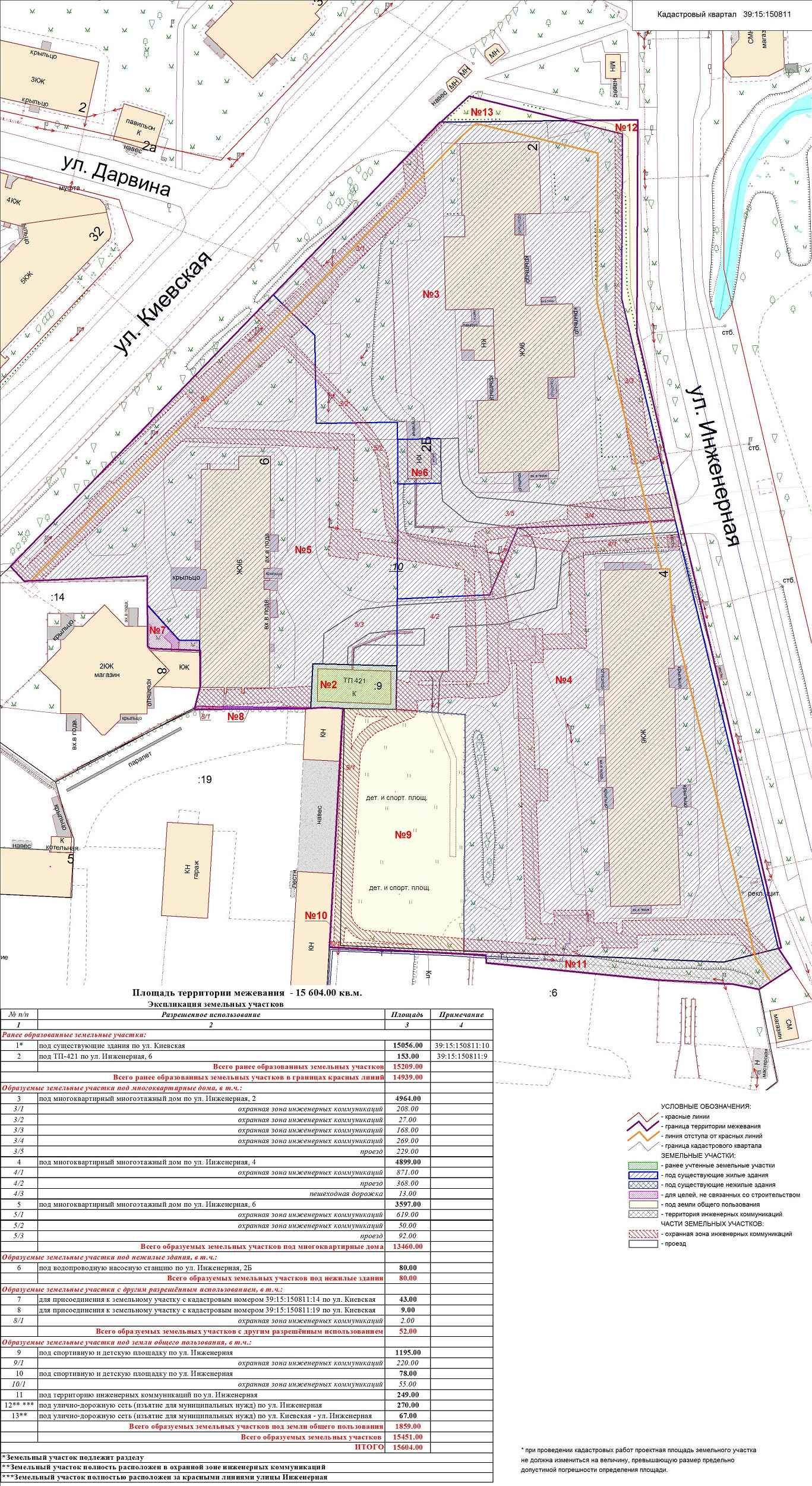 | Проект межевания территории в границах красных линий ул. Тургенева – ул. Тельмана – ж/д пути (Калининград Южн. – Советск, Зеленоградск, П. Курорт) в г. Калининграде | Проект границ | Заключение | ||