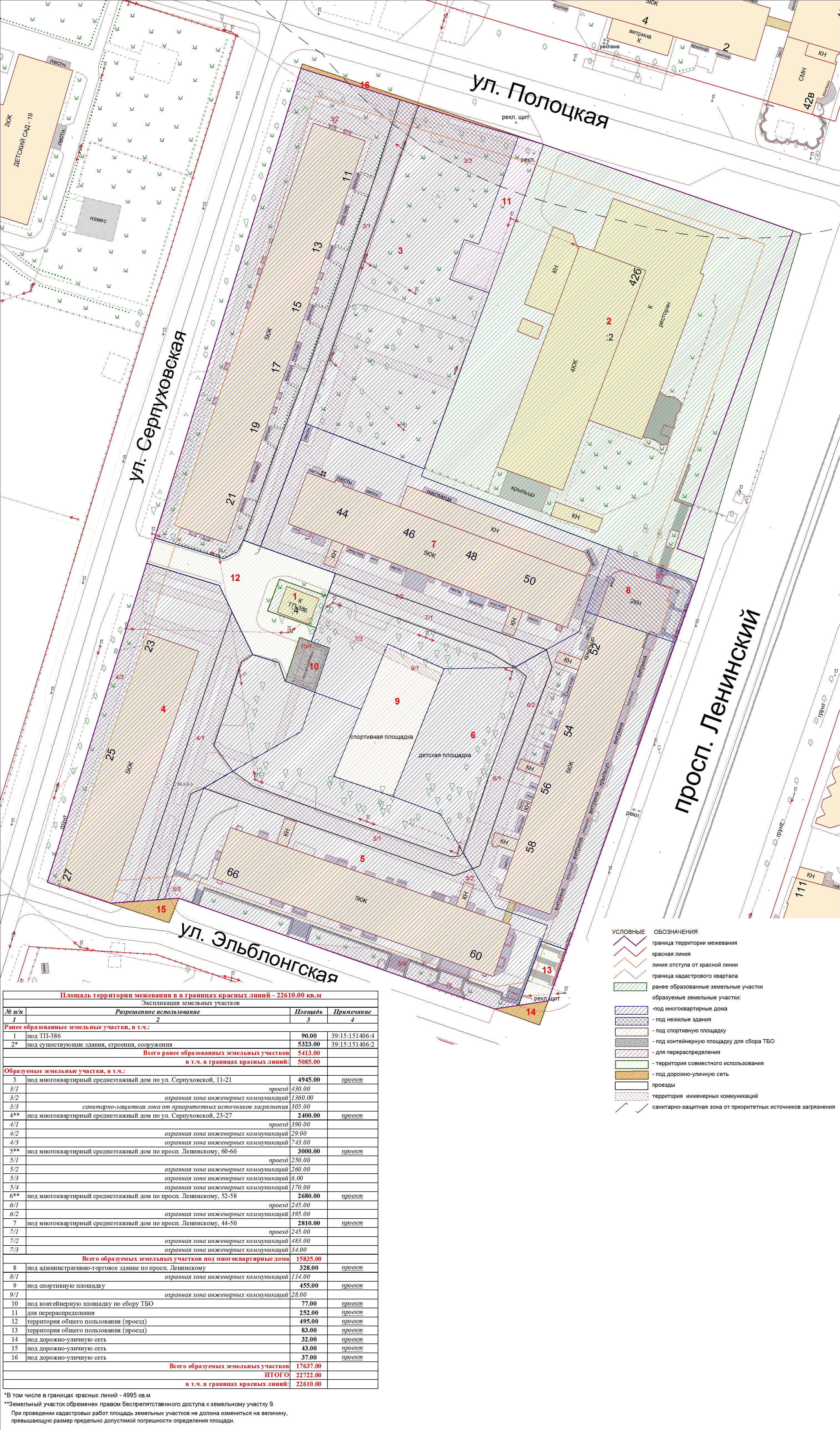 | Проект межевания территории в границах улиц Лескова – Некрасова – Ленинградской Ленинградского района города Калининграда | Публичные слушания назначены на 17 апреля 2019 г. в 17 часов по адресу г. Калининград, ул. Фрунзе, 71, каб. 25А (административное здание) | Оповещение Постановление Основной чертеж Опорный план Пояснительная записка | Заключение | |