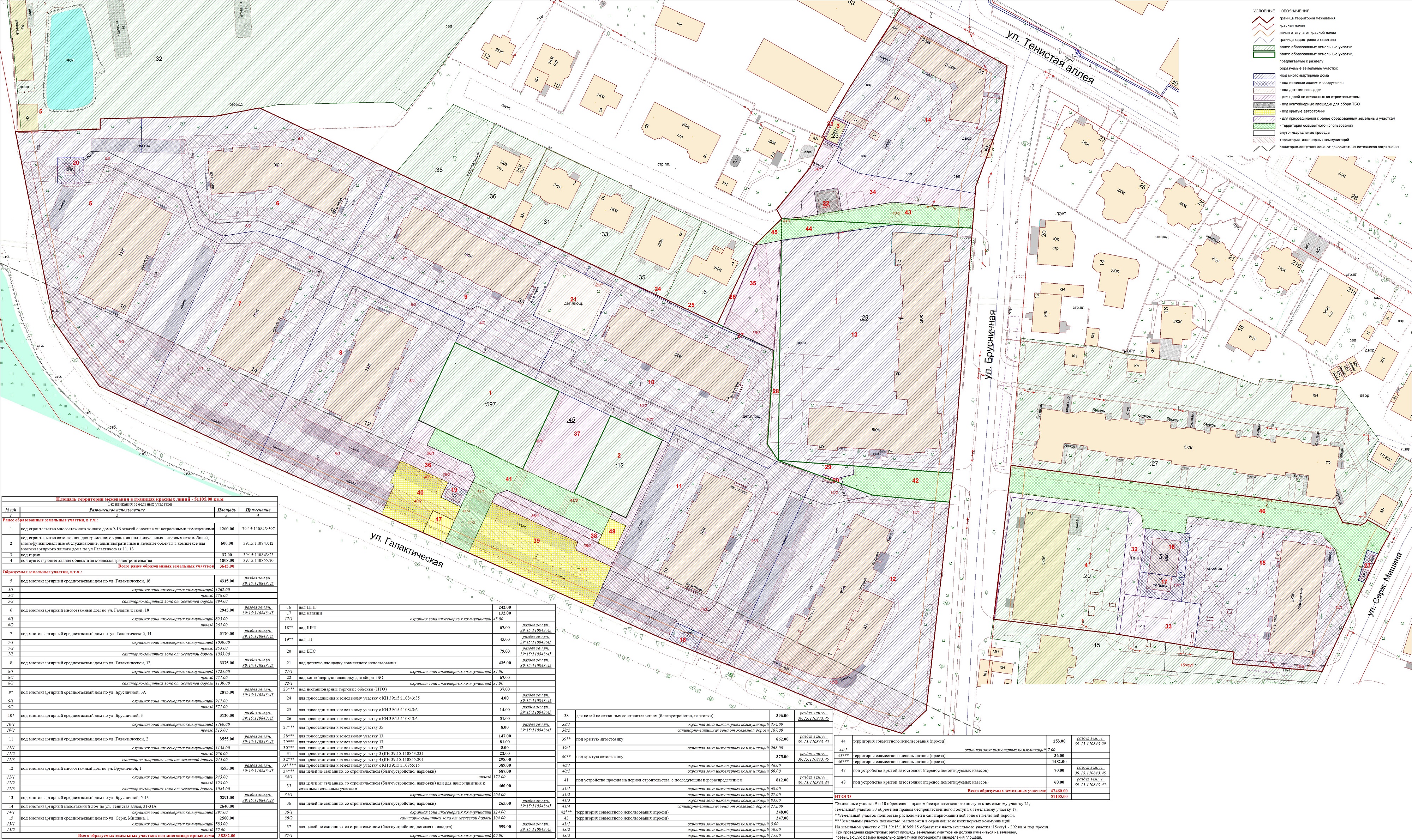 | Проект межевания территории в границах красных линий улиц Галактическая – Брусничная – Тенистая аллея и территориальных зон застройки многоэтажными (индекс «Ж-1»), среднеэтажными (индекс «Ж-2»), индивидуальными жилыми домами (индекс «Ж-4»). | Публичные слушания по проекту межевания территории в границах красных линий улиц Галактическая – Брусничная – Тенистая аллея и территориальных зон застройки многоэтажными (индекс «Ж-1»), среднеэтажными (индекс «Ж-2»), индивидуальными жилыми домами (индекс «Ж-4») состоятся 30.08.2018 в 17 часов по адресу: г. Калининград, ул. Чайковского, 52, кабинет № 206 (административное здание). | Постановление Проект границ | Заключение | |