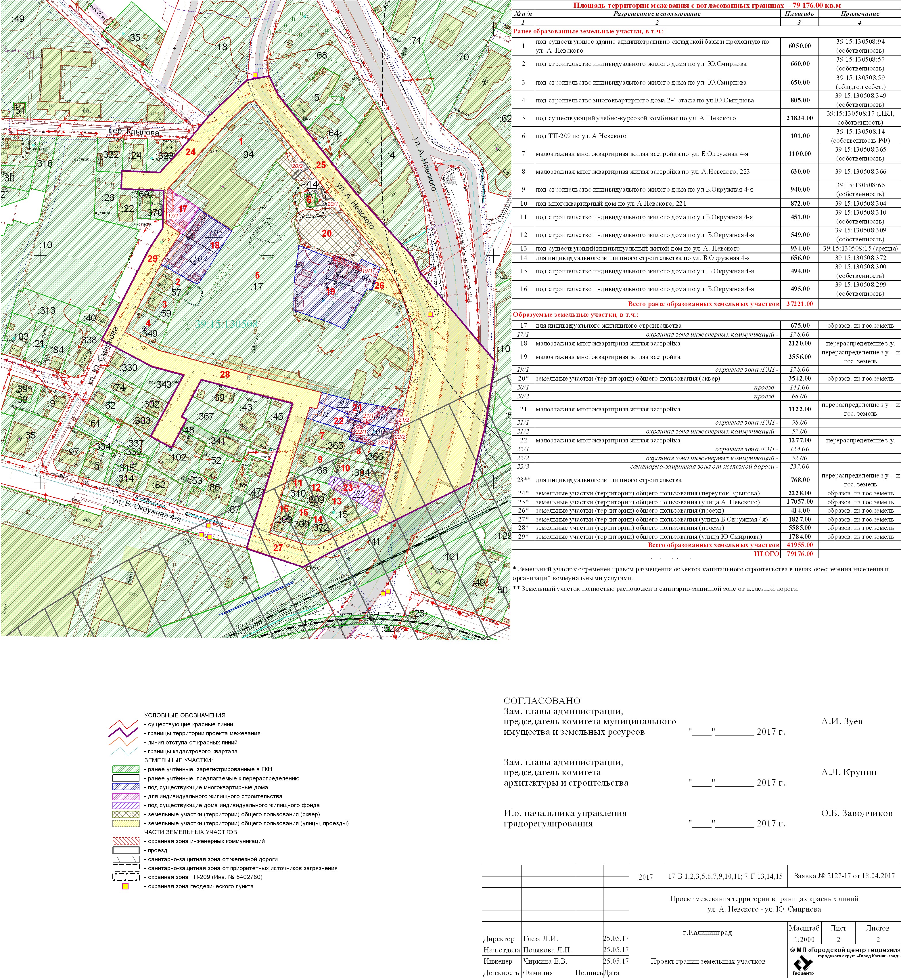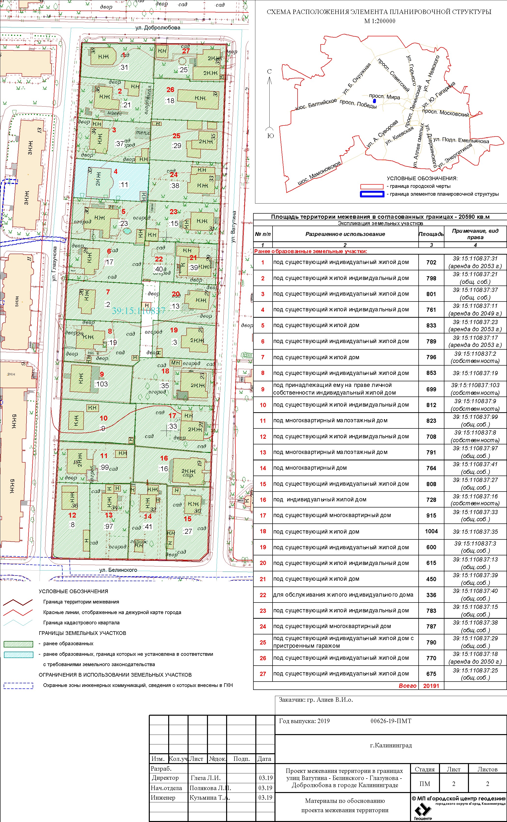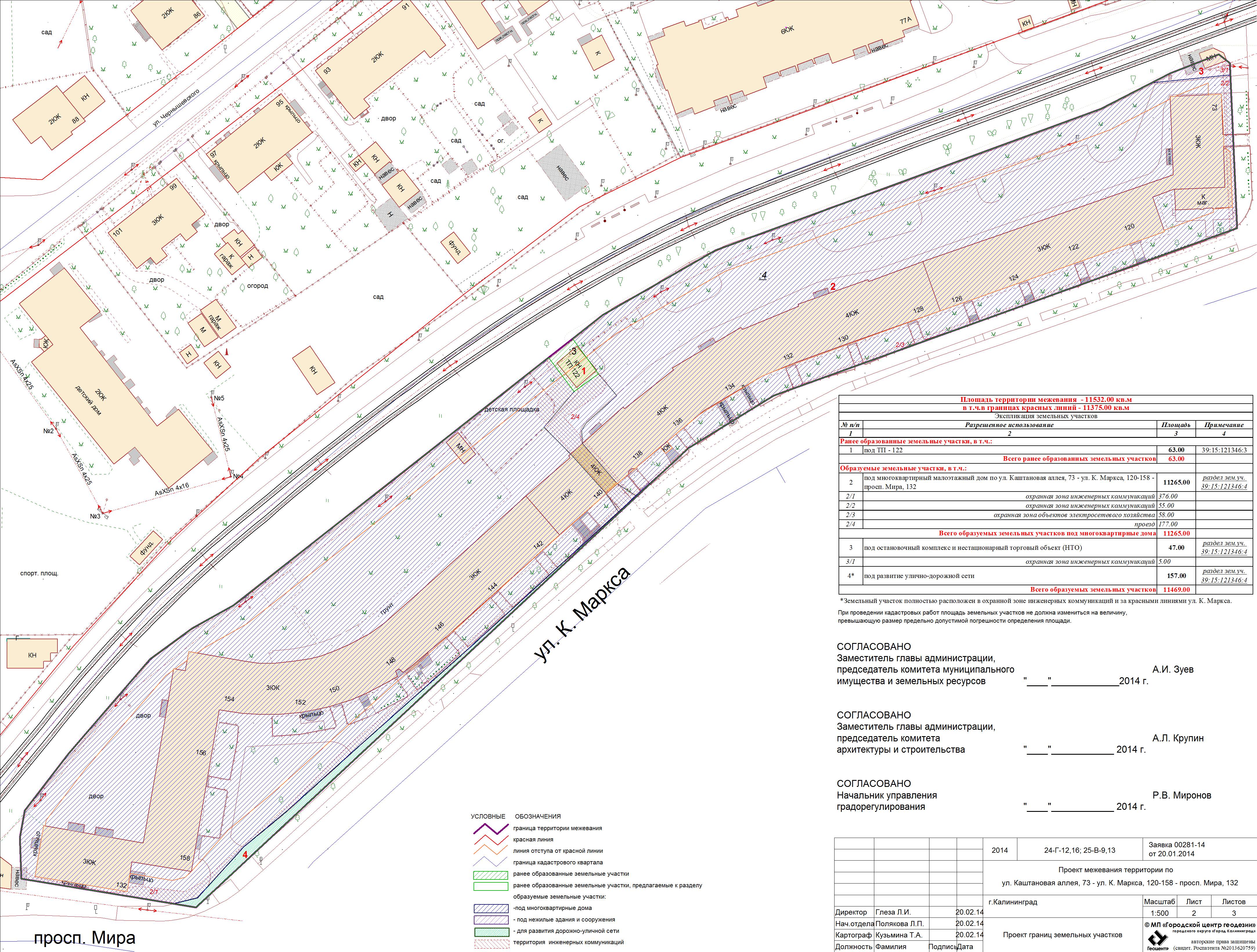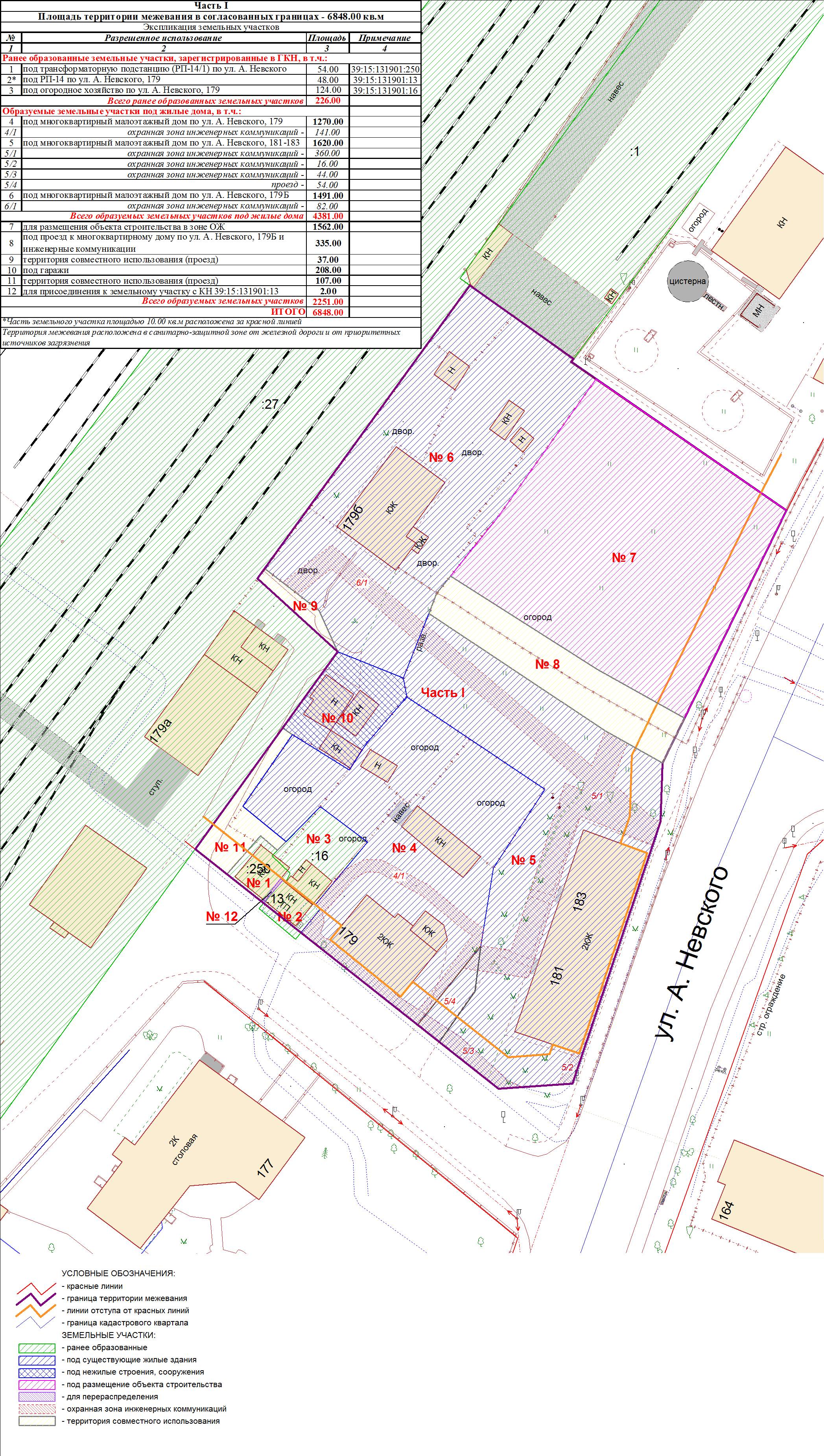 | Проект межевания территории в границах ул. А.Невского – ул. Ю. Смирнова в г. Калининграде | Проект границ | Заключение | ||