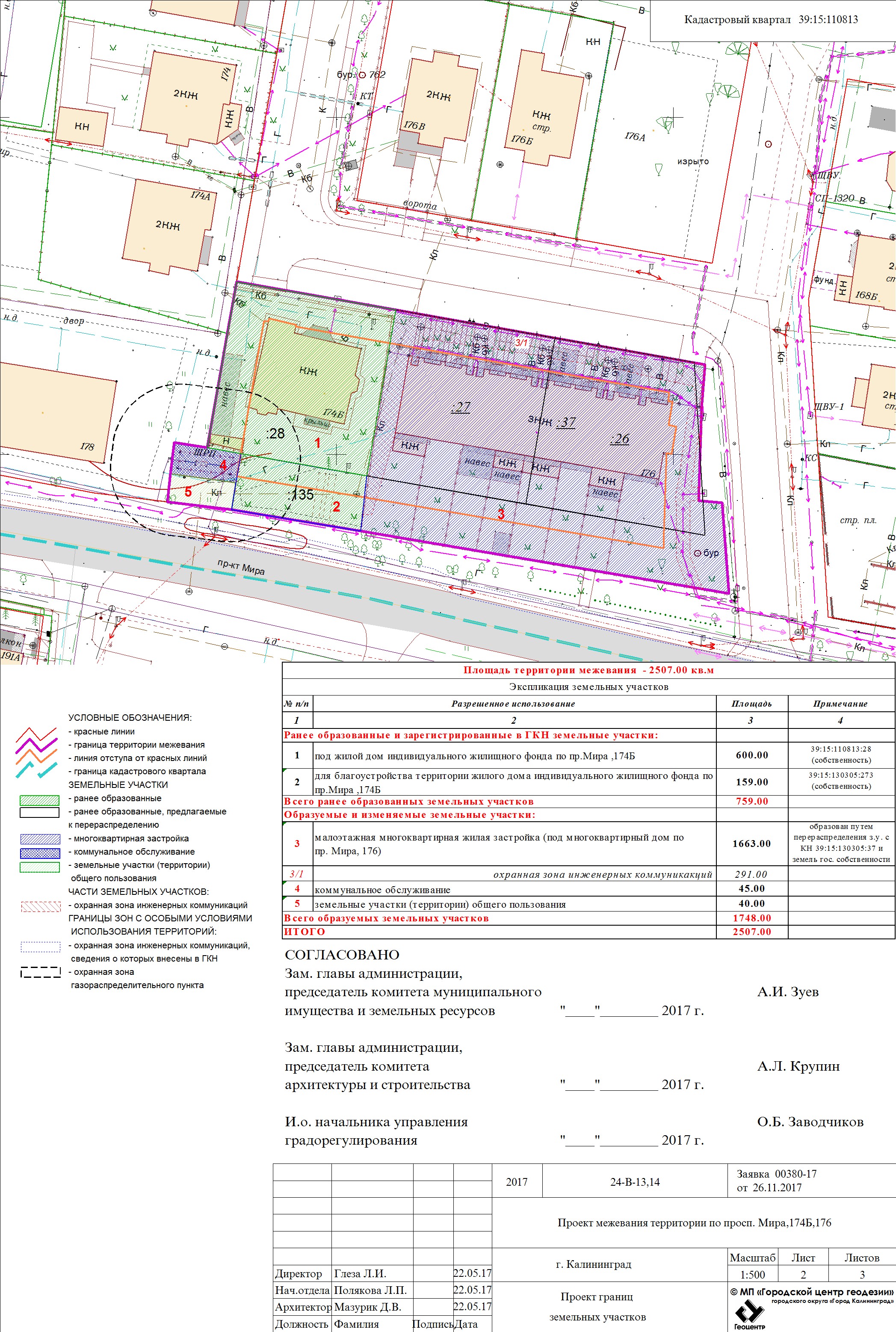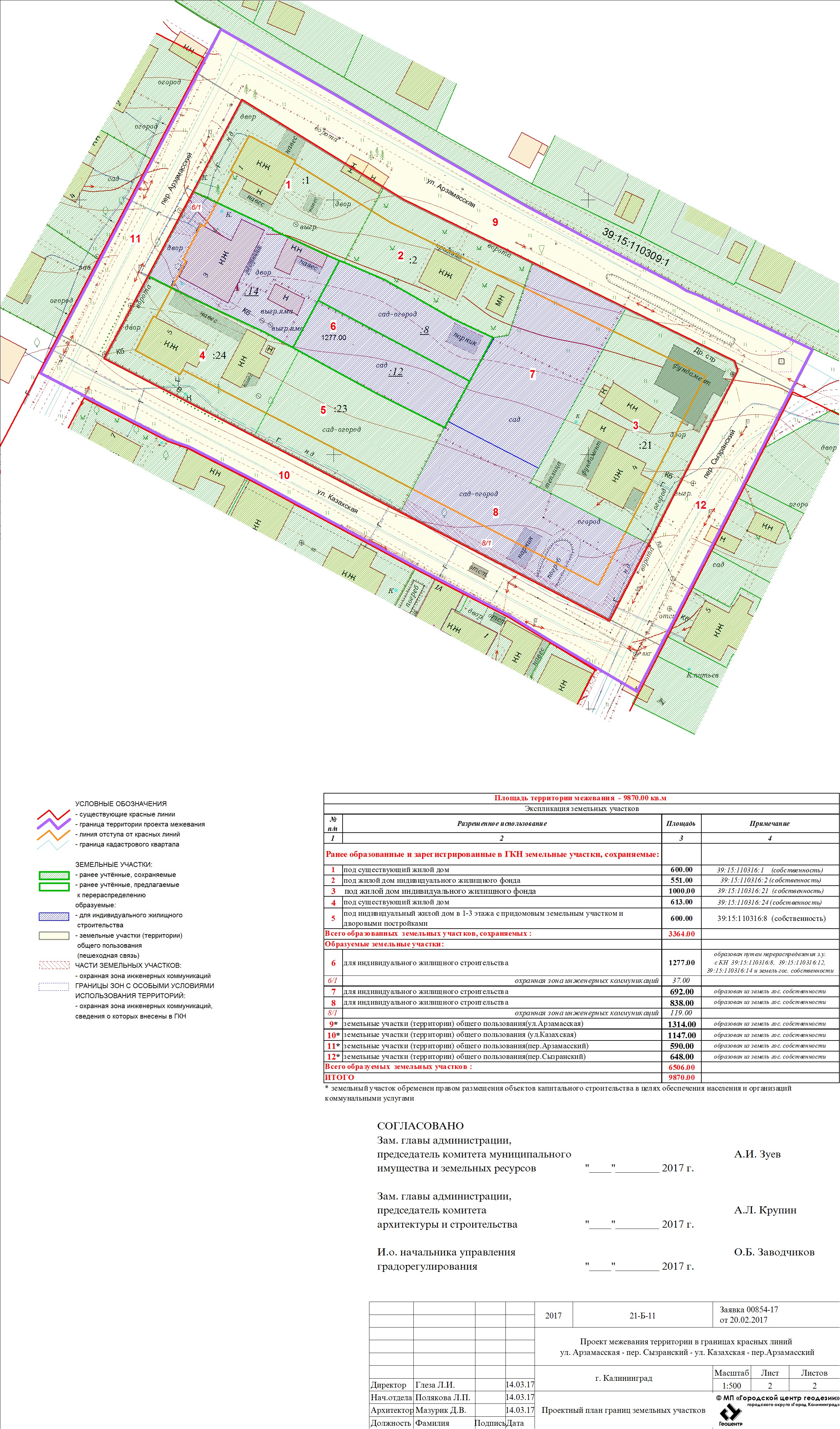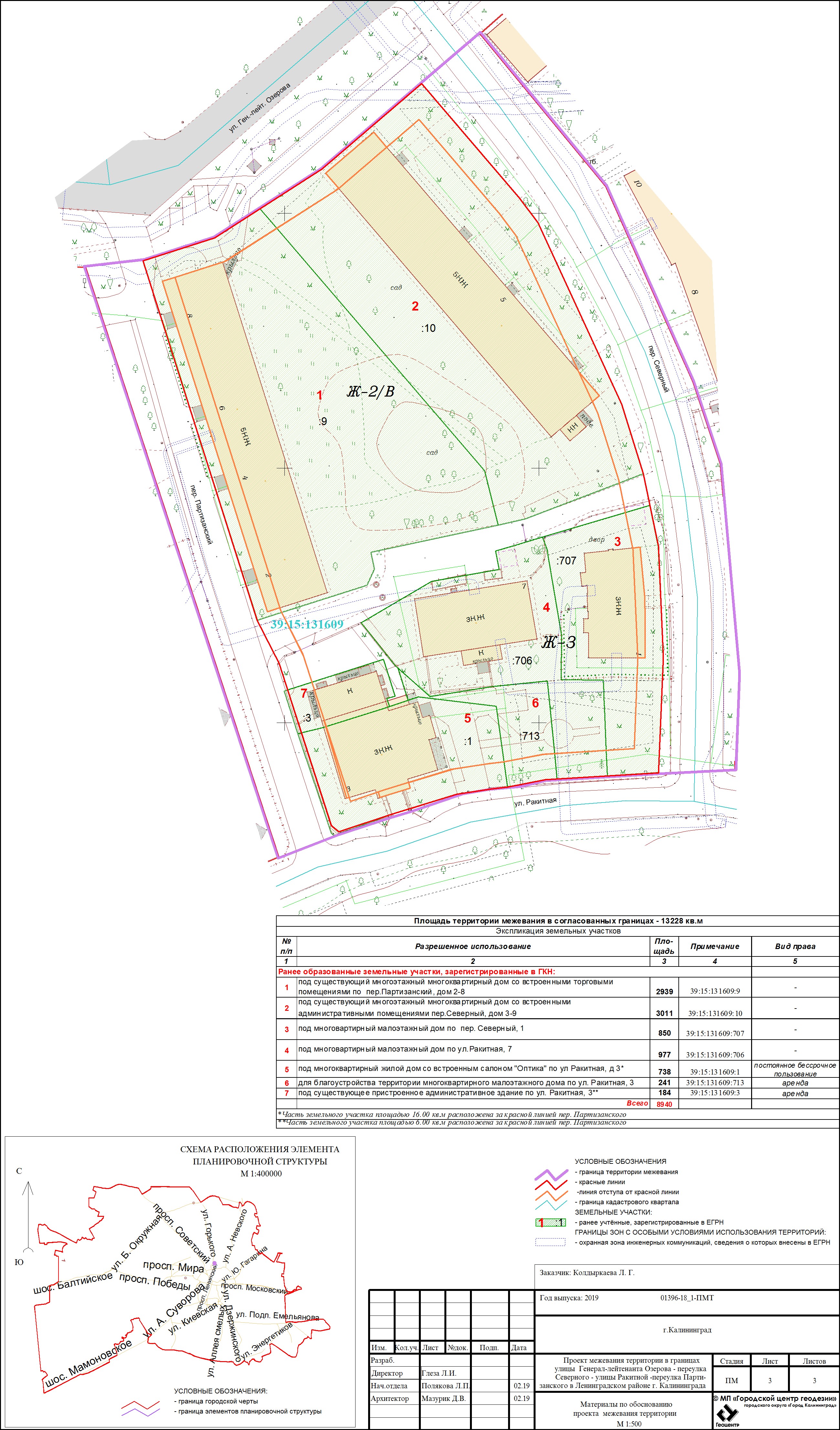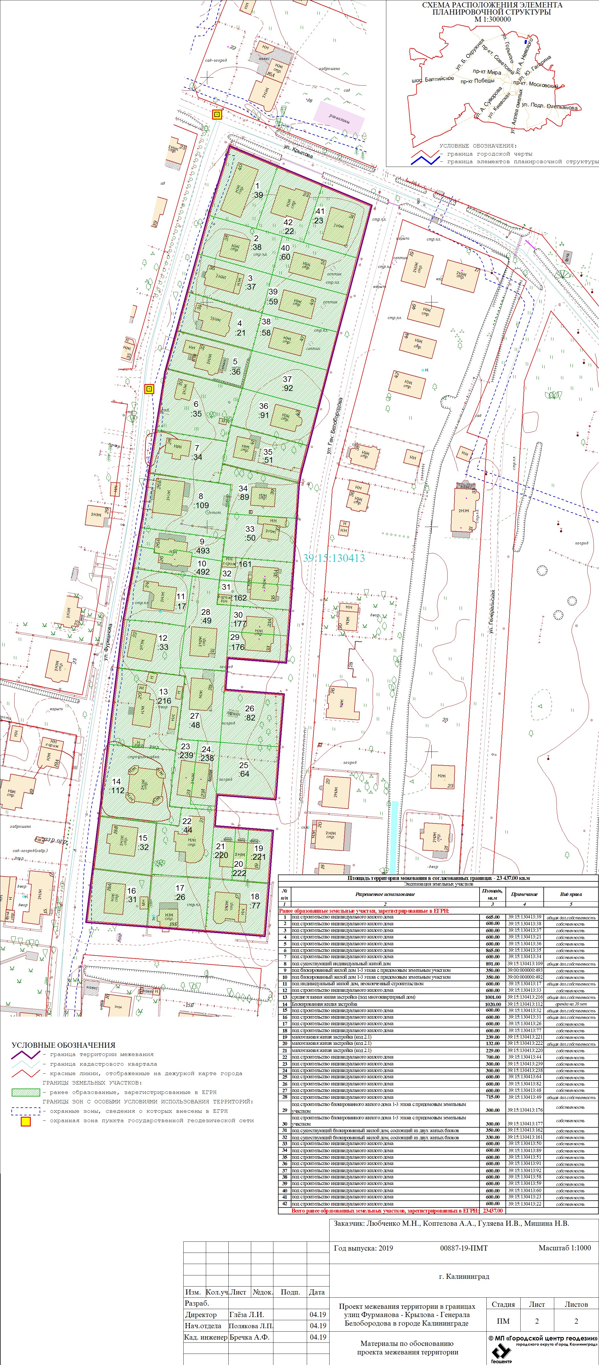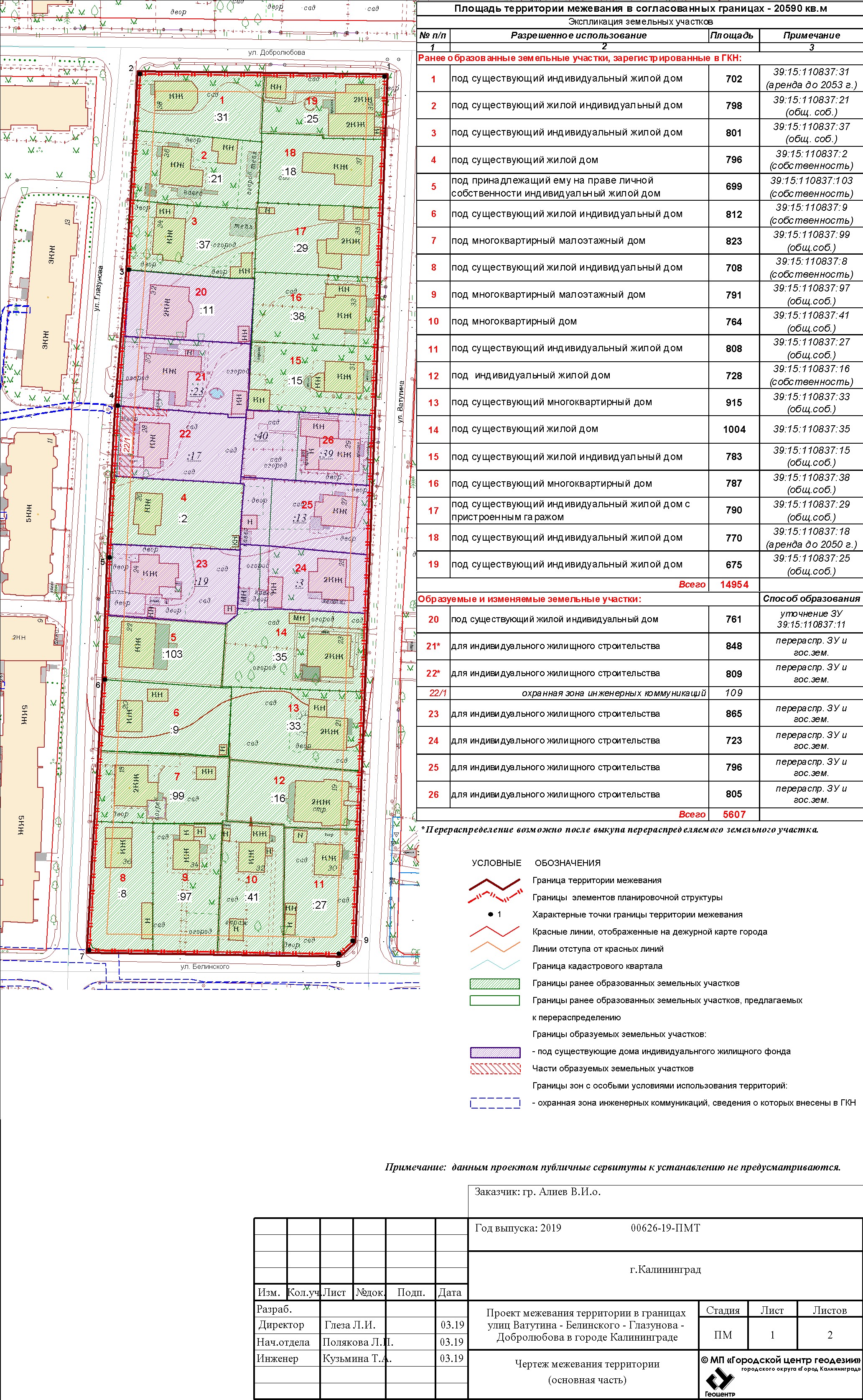 | Проект межевания территории в границах ул. А.Невского – ул. Ю. Смирнова в г. Калининграде | Проект границ | Заключение | ||