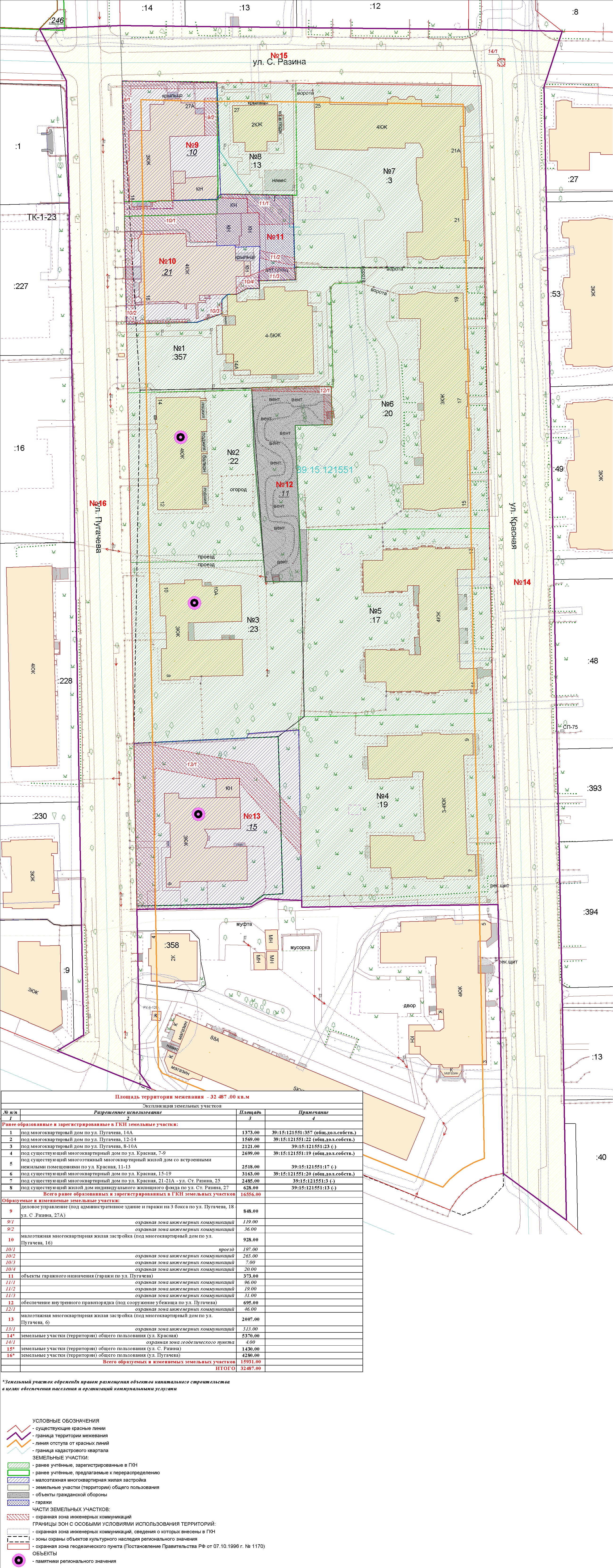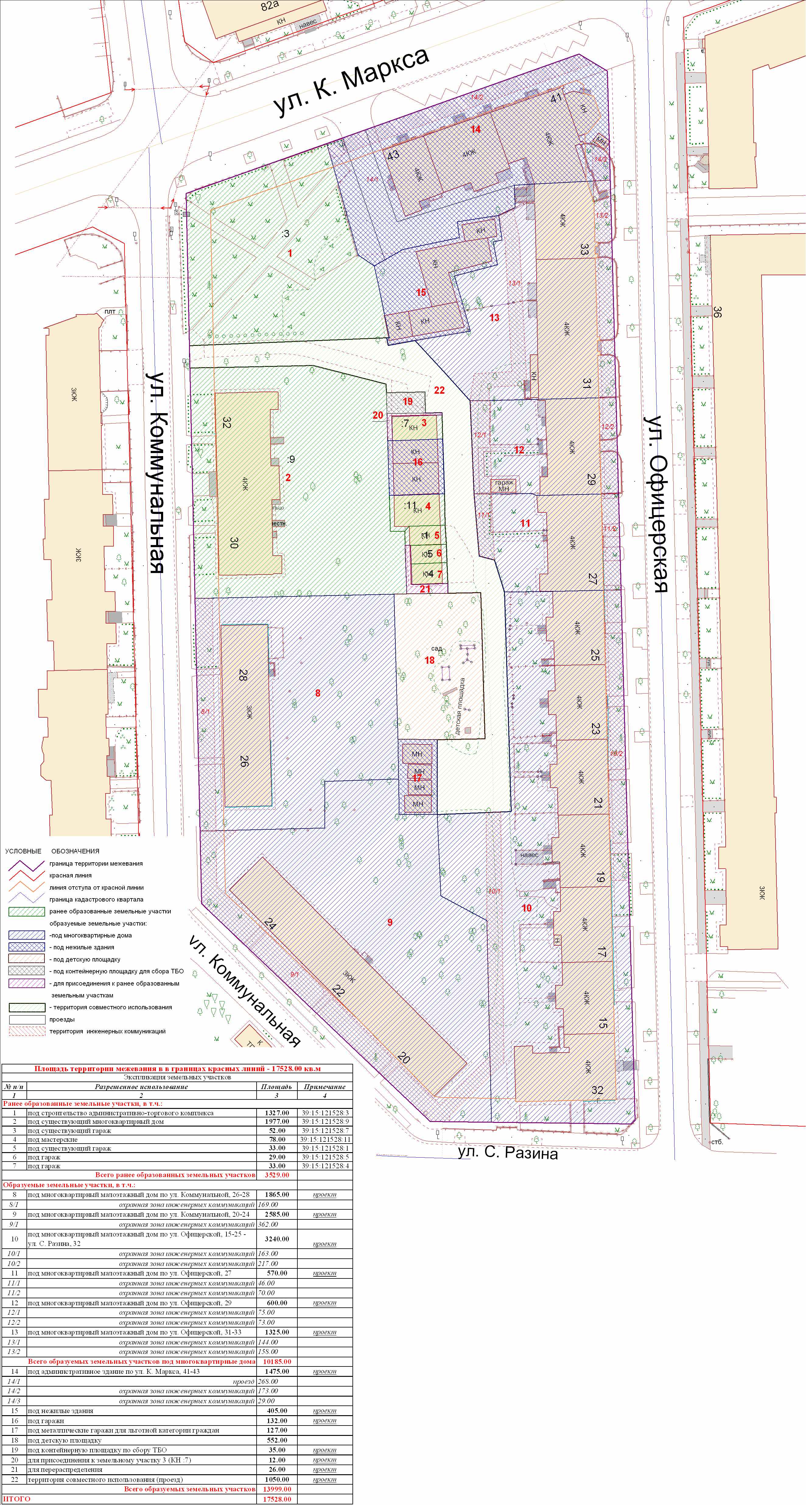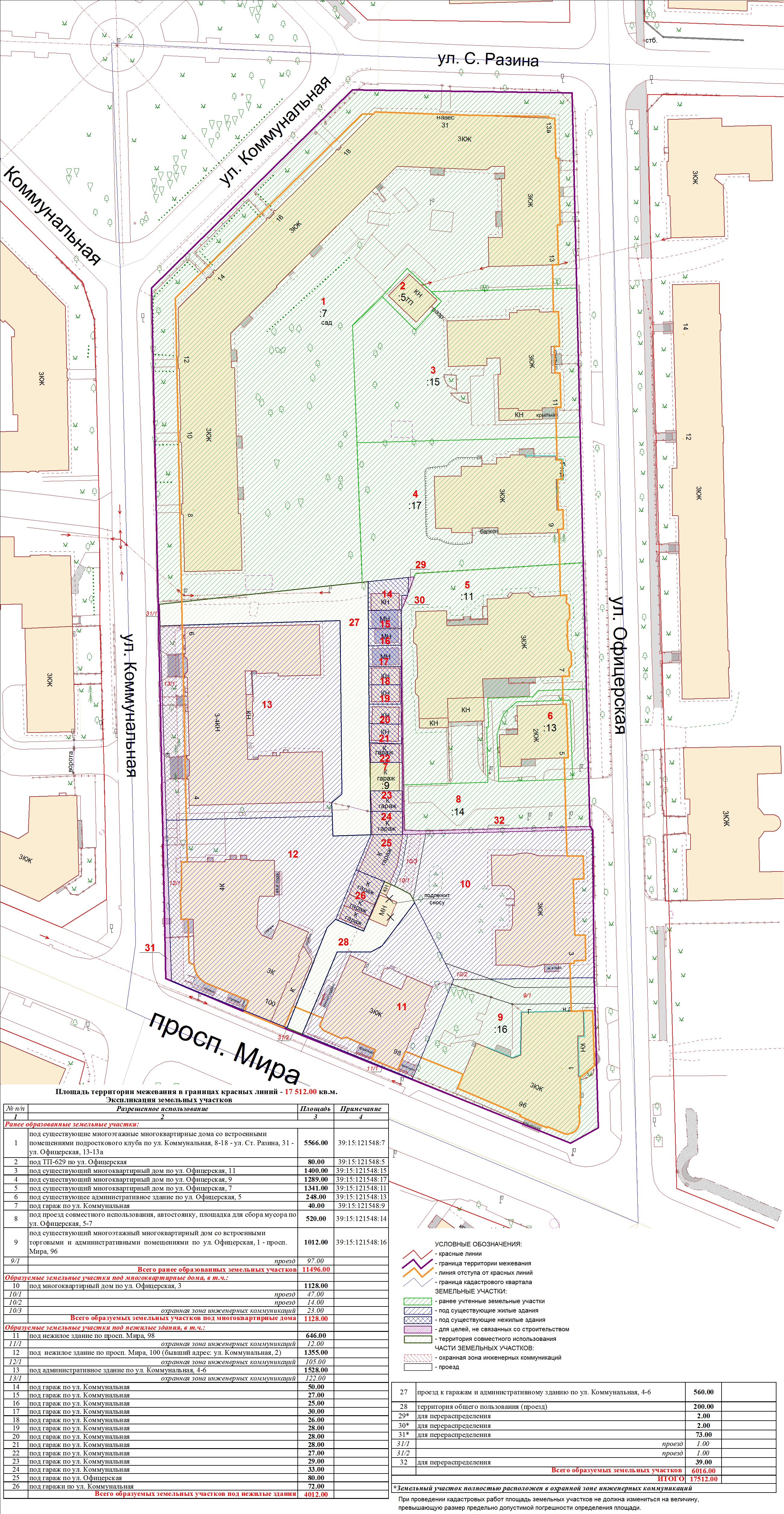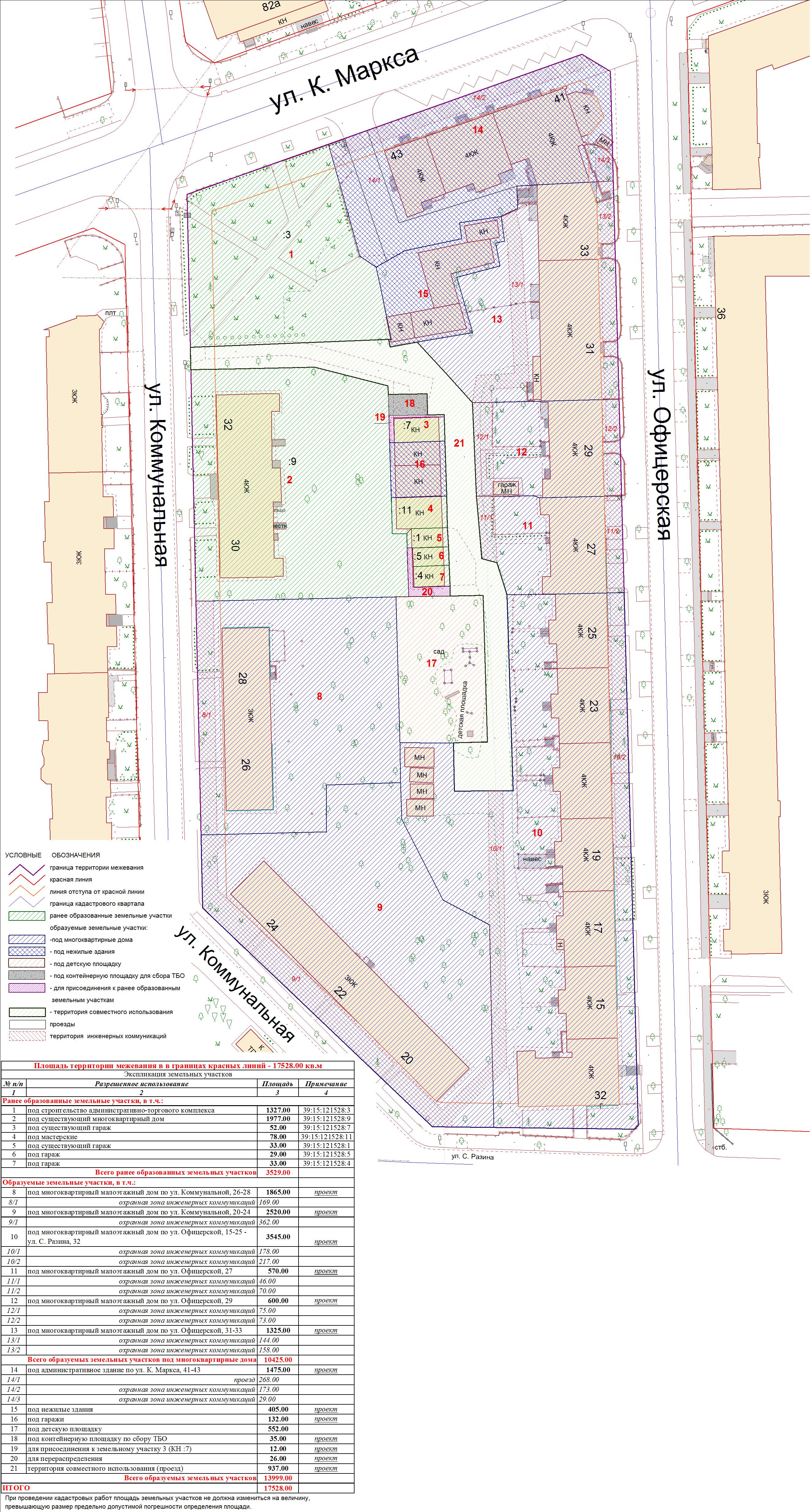| 180 | Проект межевания квартала в границах красных линий улиц Пугачева - С.Разина - Офицерская - К.Маркса | 04.08.2011 г. в 17.00 в здании администрации Центрального района ГО «Город Калининград» (ул. К. Маркса, 43, актовый зал, 4-й этаж) | Постановление о проведении публичных слушаний Проект границ | Заключение |
