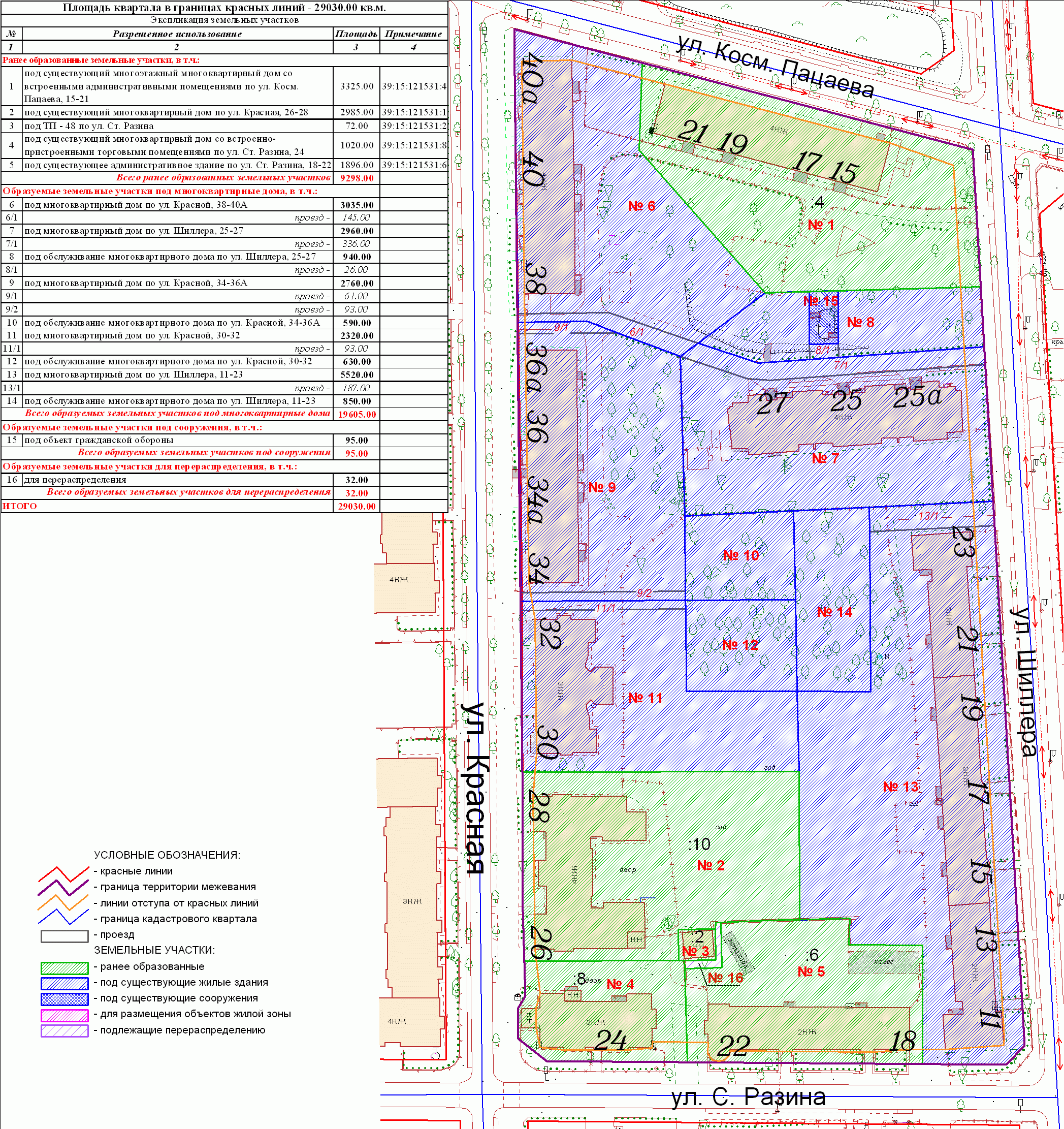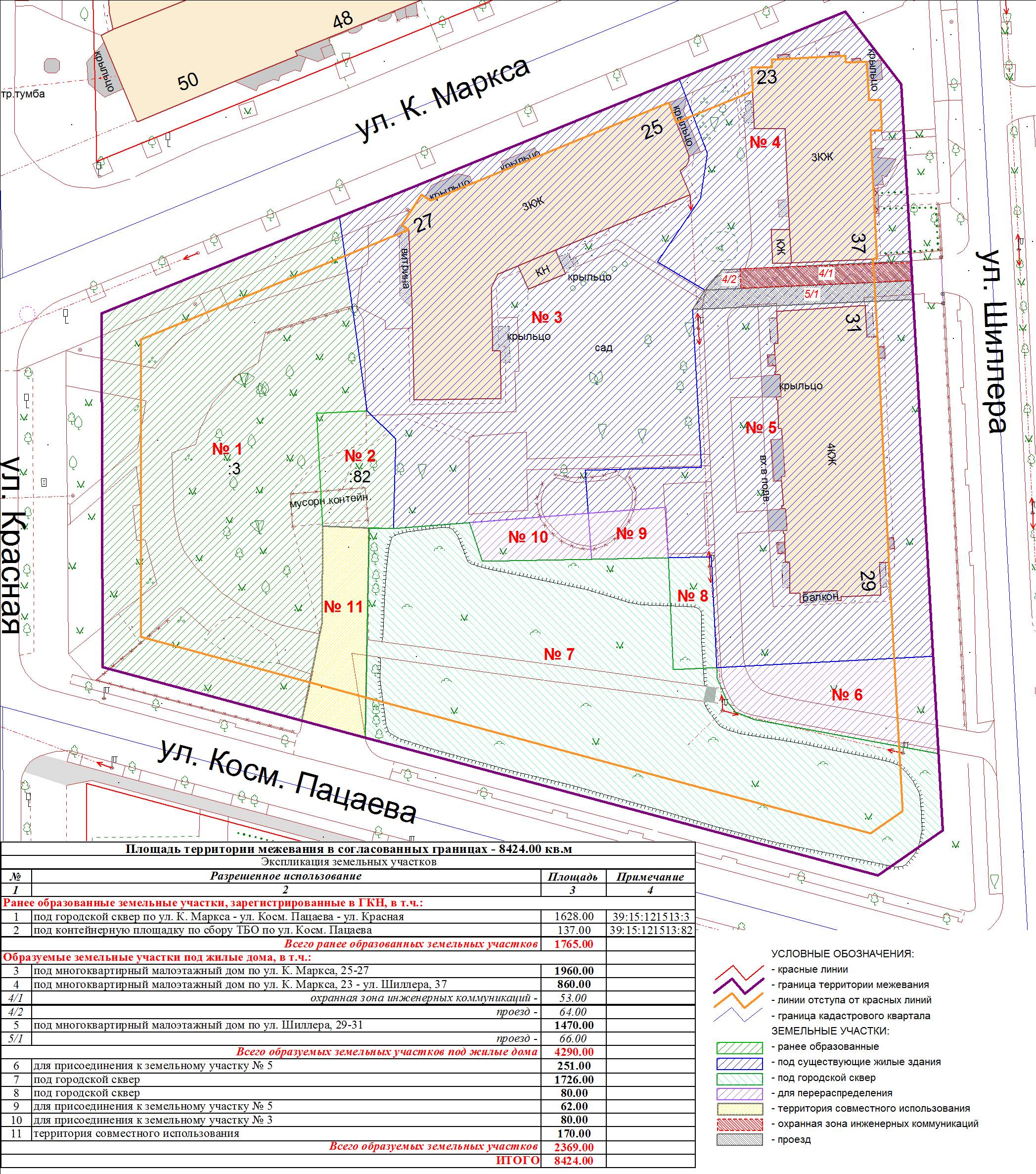 | 102 | Проект межевания квартала в границах красных линий улиц Красная – Косм. Пацаева – Шиллера – С. Разина | 22.07.2010 в 17-00 по адресу: ул.К.Маркса, 43 (администрация Центрального района, 4 этаж, актовый зал) | Проект границ | Заключение |